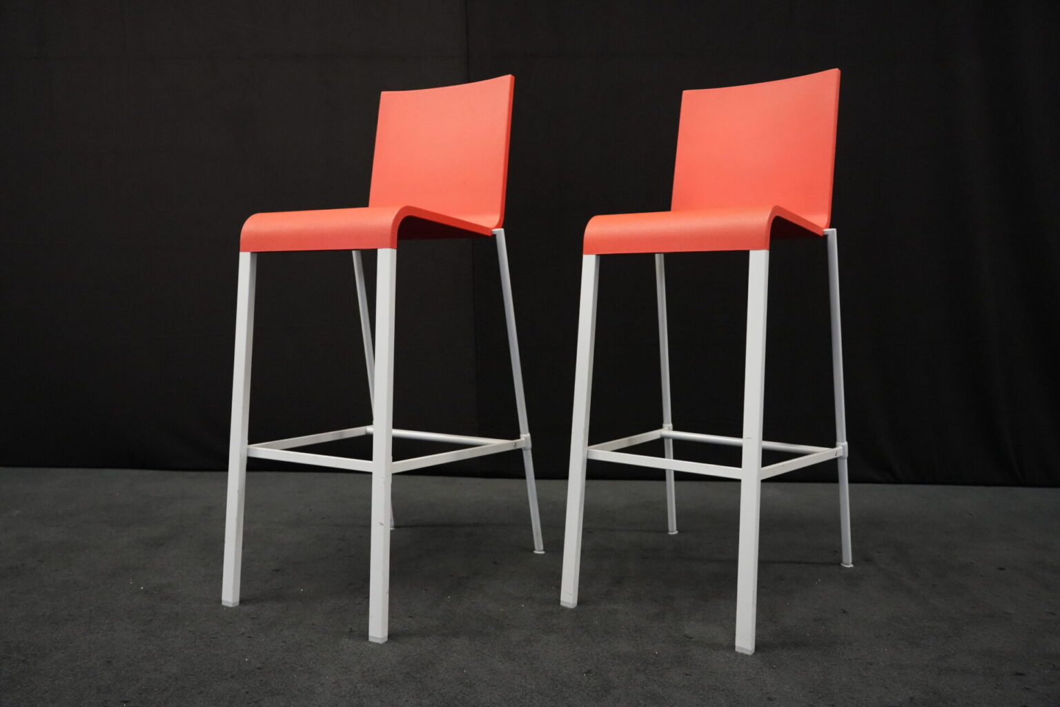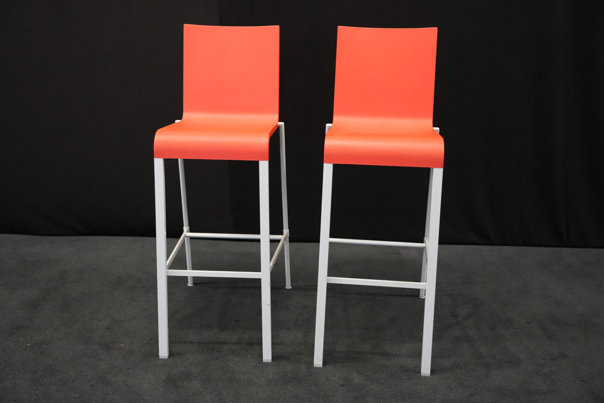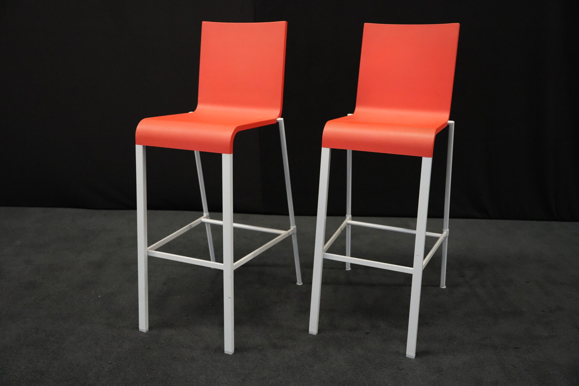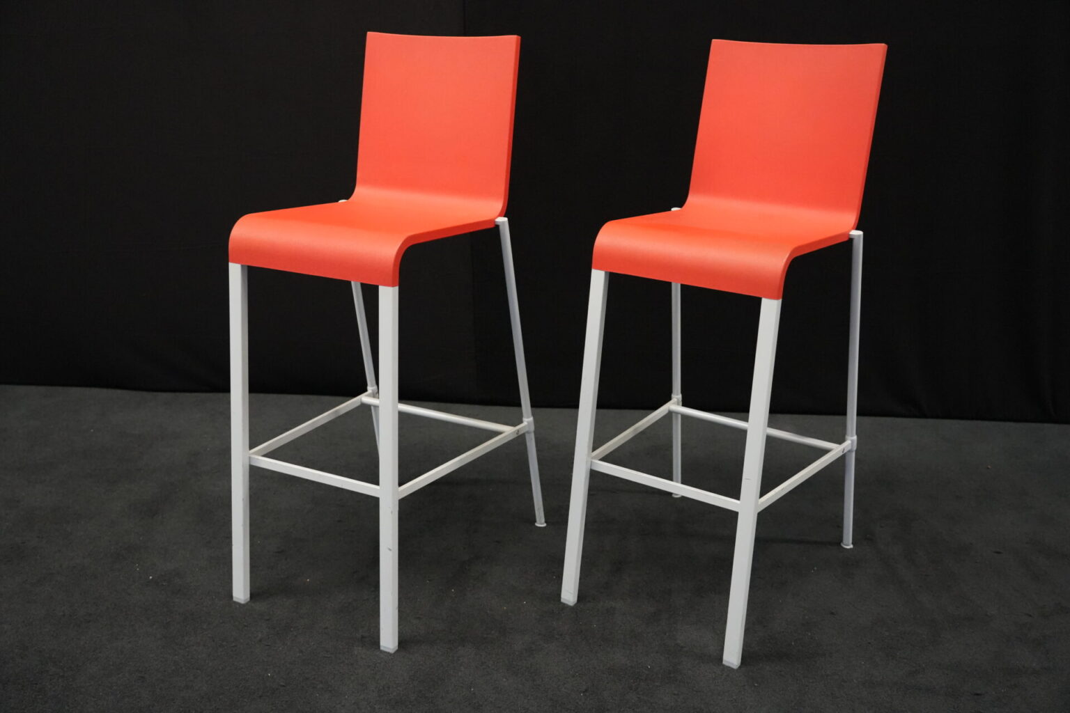 2x Vitra .03 Barhocker Rot | Marke: Vitra | Sitz: Kunststoff / rot | Gestell: Metall | Abmessungen: H: 114cm | SH: 80cm | B: 43cm | T: 62 cm
