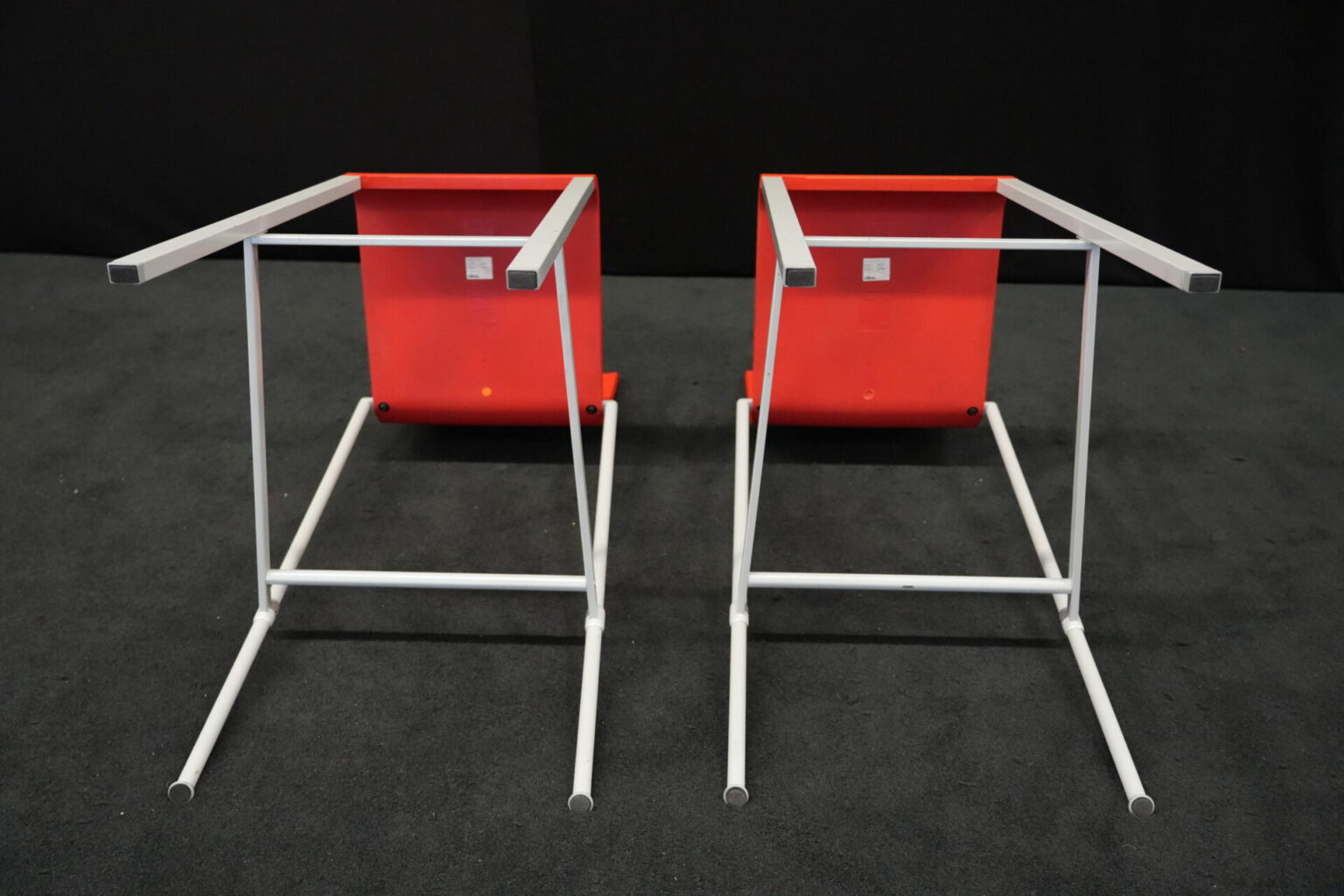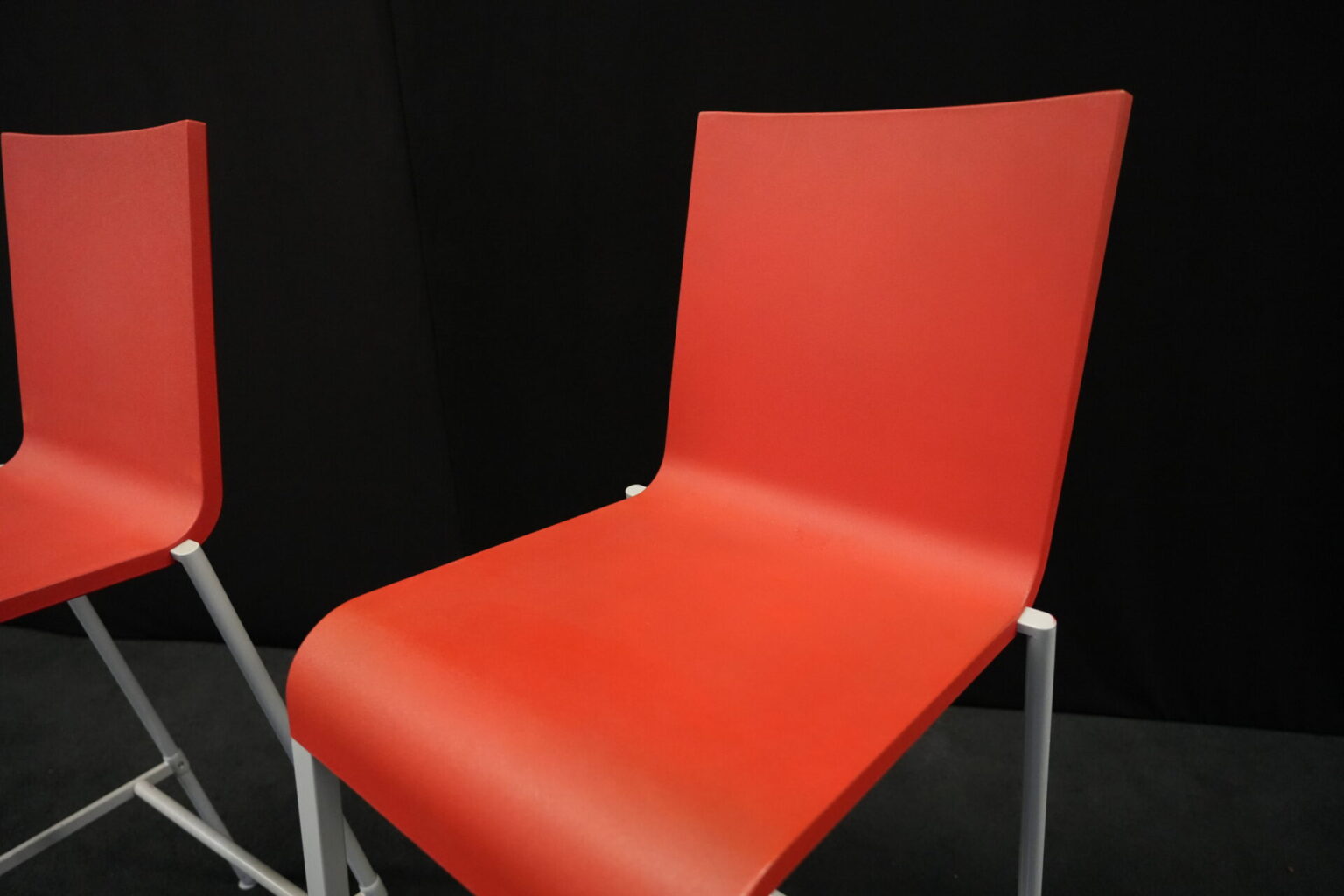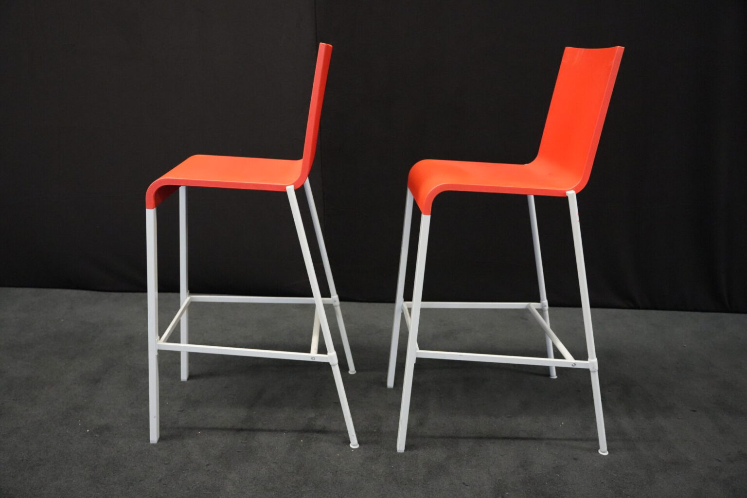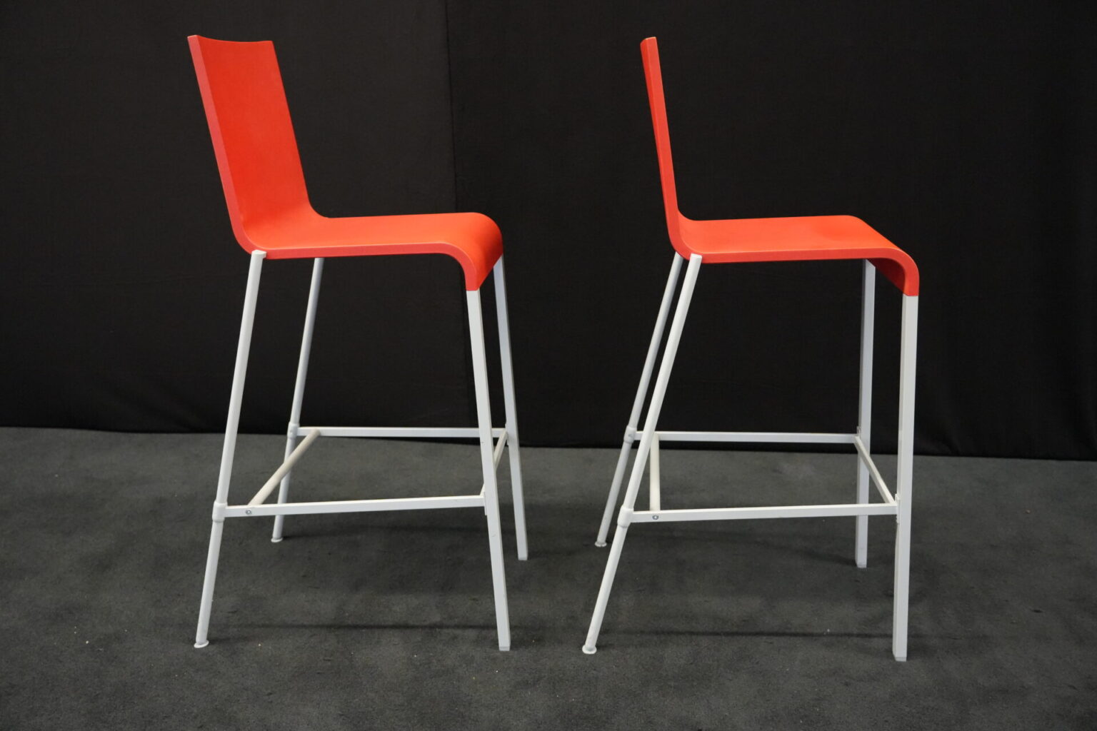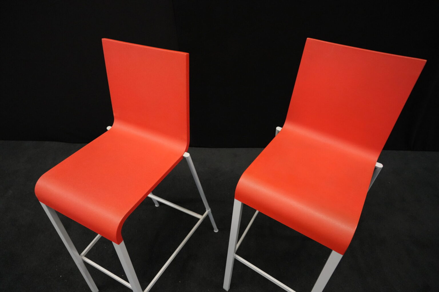 2x Vitra .03 Barhocker Rot | Marke: Vitra | Sitz: Kunststoff / rot | Gestell: Metall | Abmessungen: H: 114cm | SH: 80cm | B: 43cm | T: 62 cm