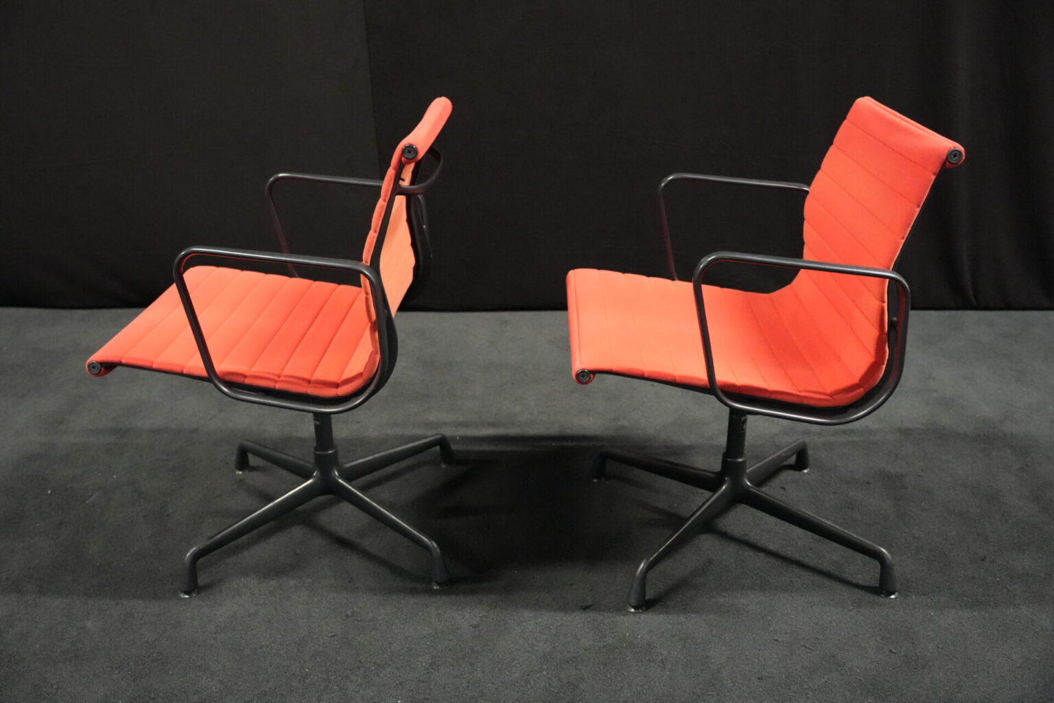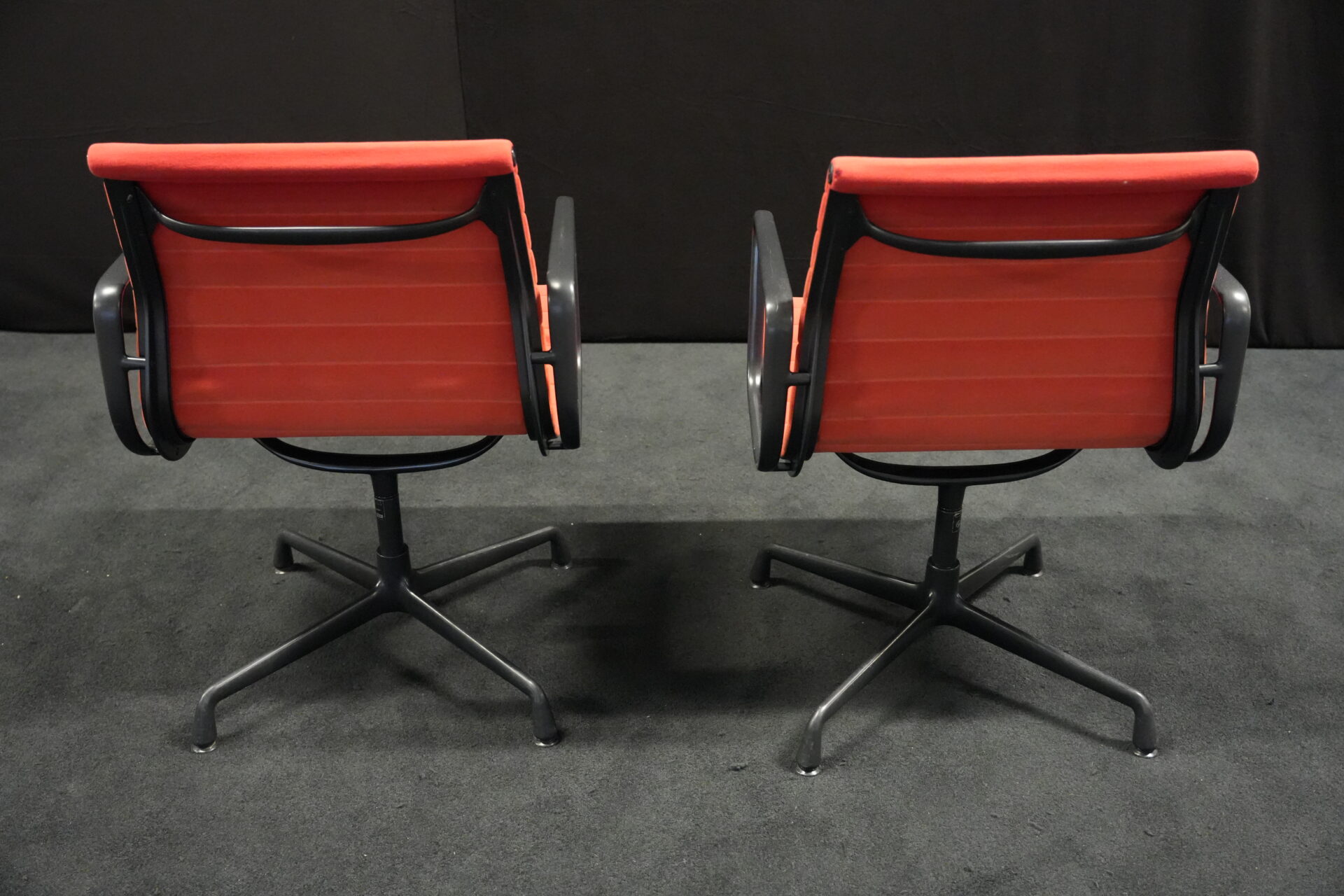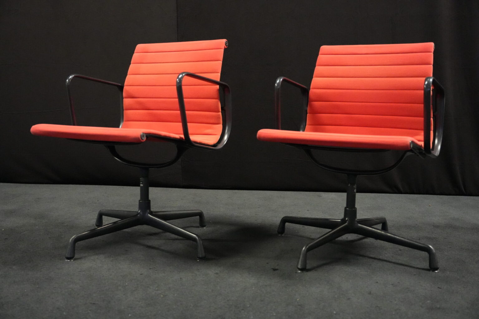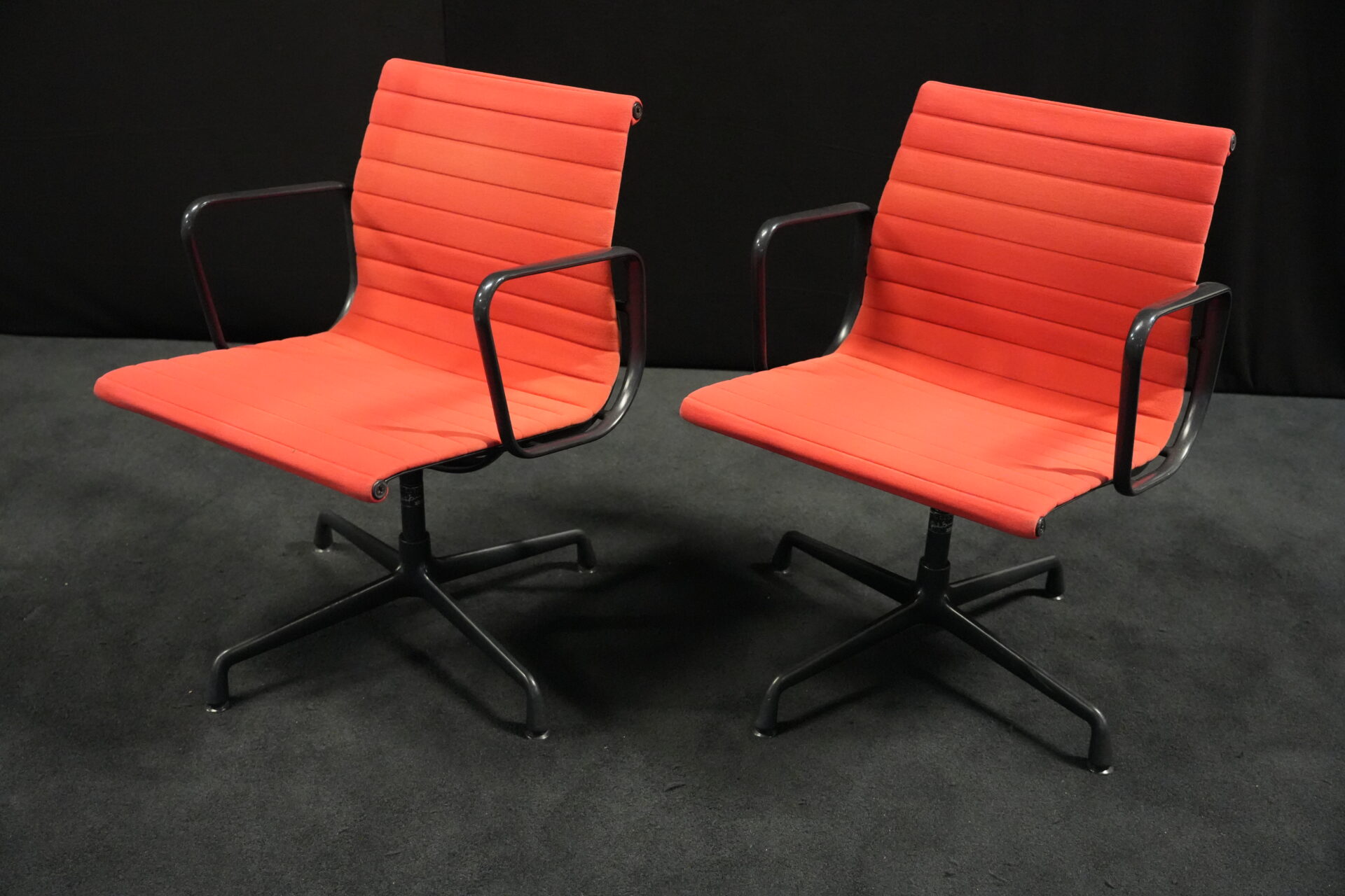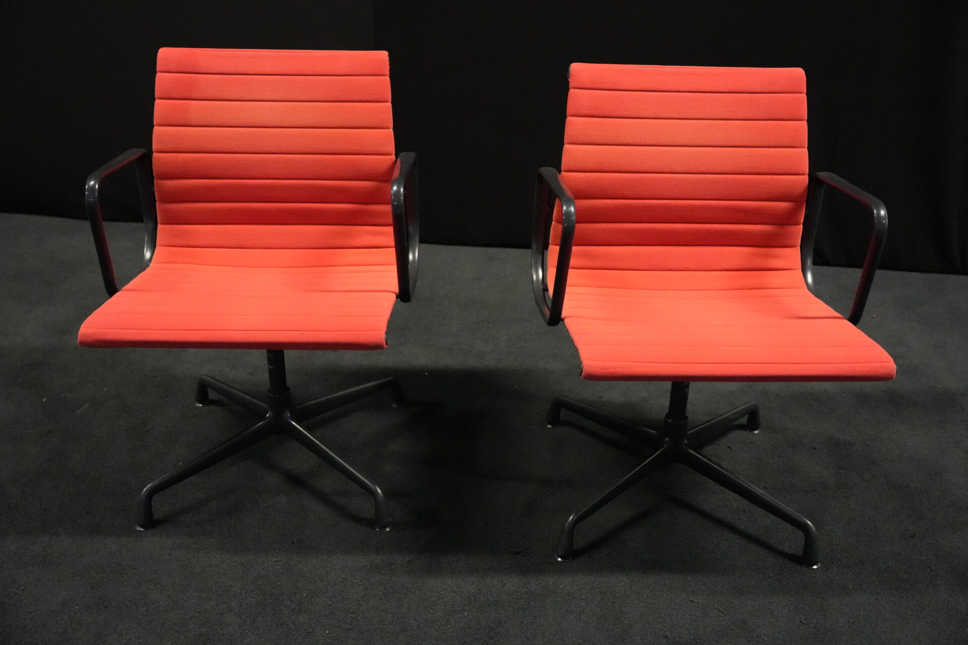 2x Vitra EA 108 Hopsak / rot (drehbar) | Marke: Vitra | Bezug: Hopsak / rot | Gestell: Aluminium-Druckguss schwarz |Ausstattung: drehbar mit Armlehnen mittelhohe Rückenlehne 4-Sternfuß | Abmessungen: H: 83cm | SH: 40cm | B: 58cm | T: 59cm
