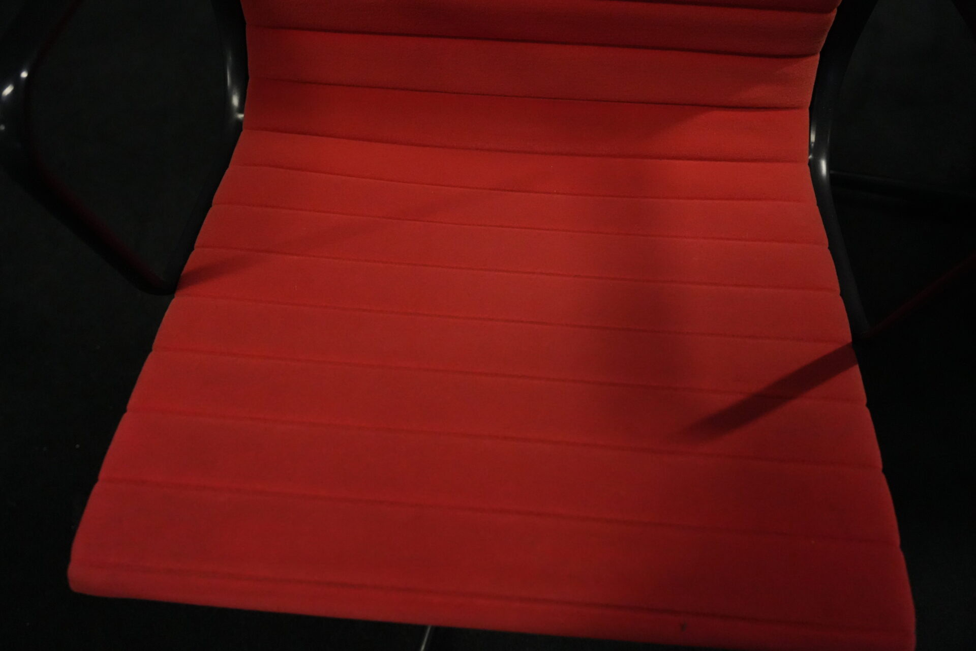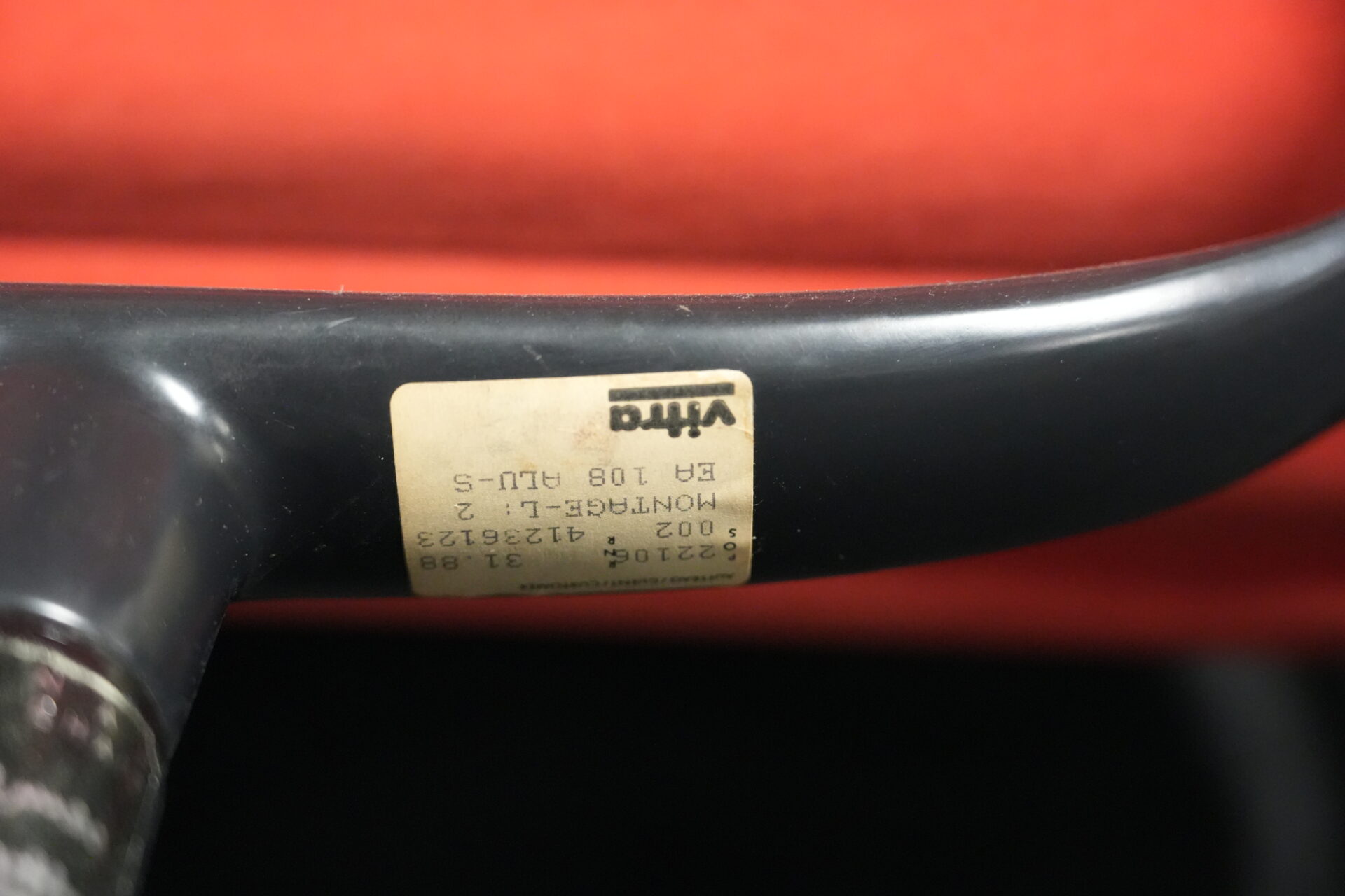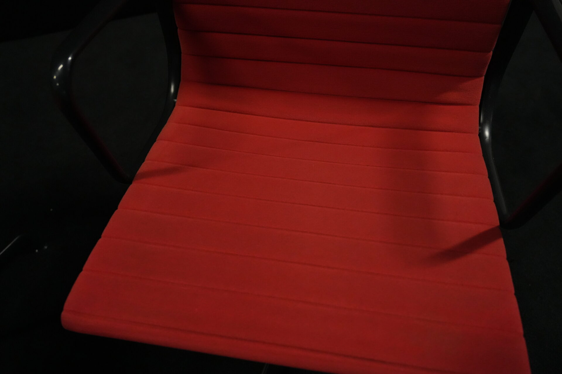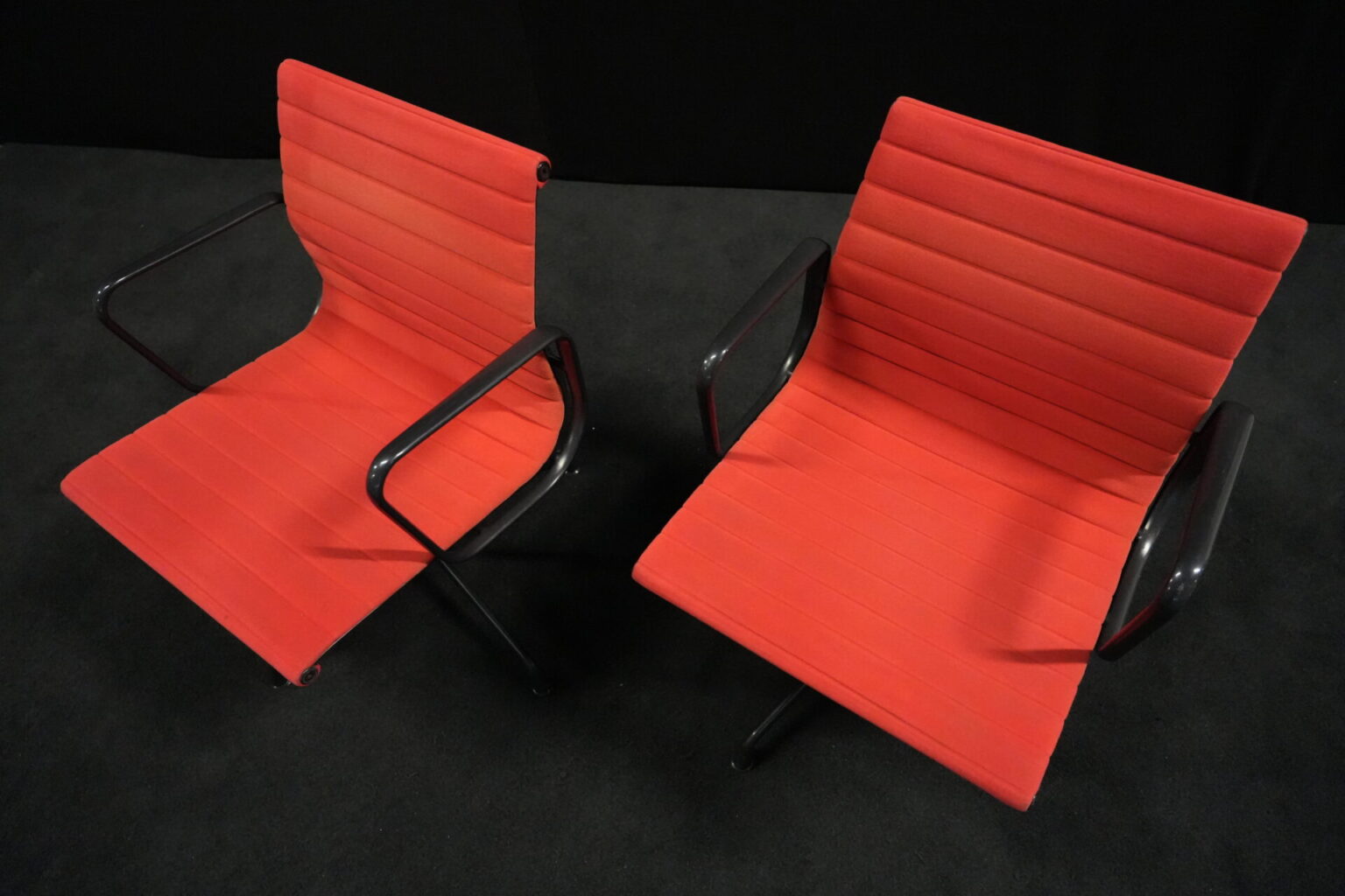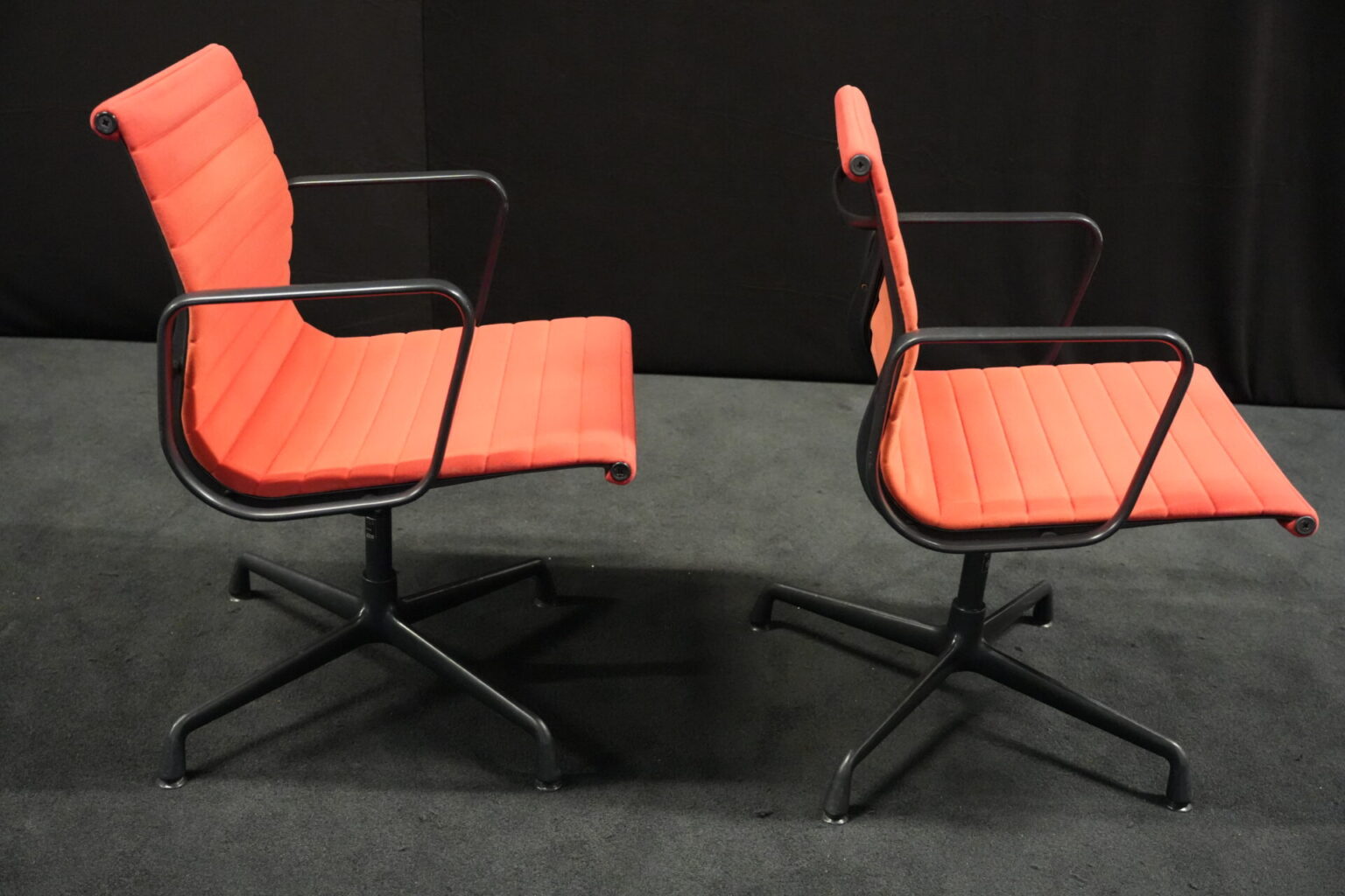 2x Vitra EA 108 Hopsak / rot (drehbar) | Marke: Vitra | Bezug: Hopsak / rot | Gestell: Aluminium-Druckguss schwarz |Ausstattung: drehbar mit Armlehnen mittelhohe Rückenlehne 4-Sternfuß | Abmessungen: H: 83cm | SH: 40cm | B: 58cm | T: 59cm