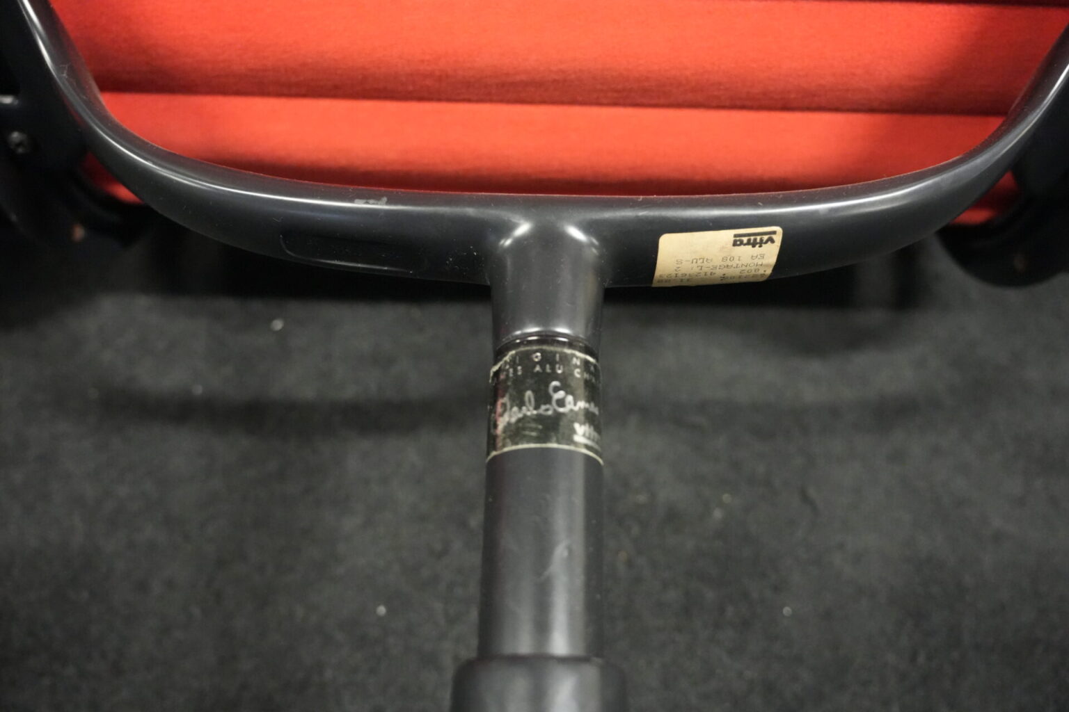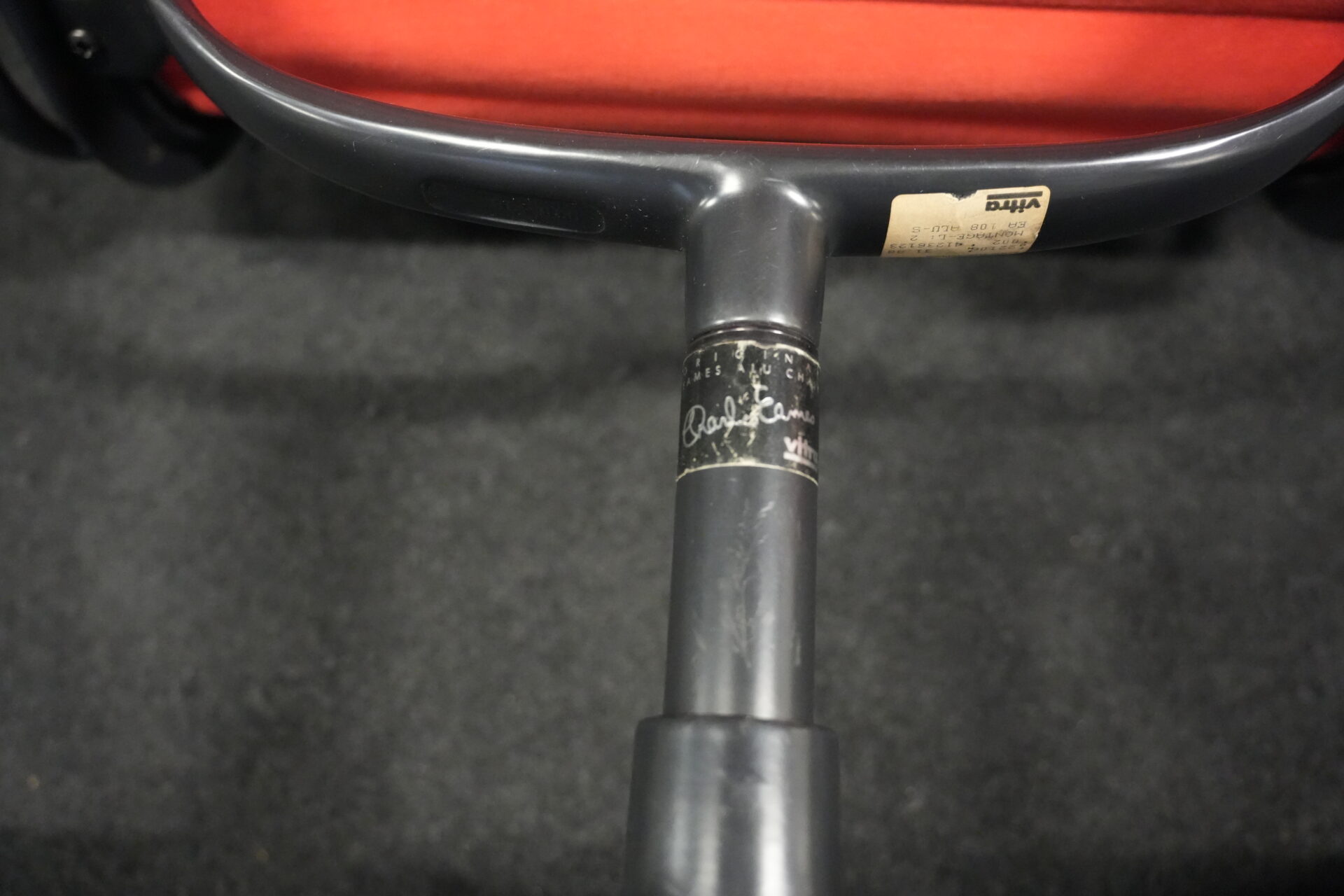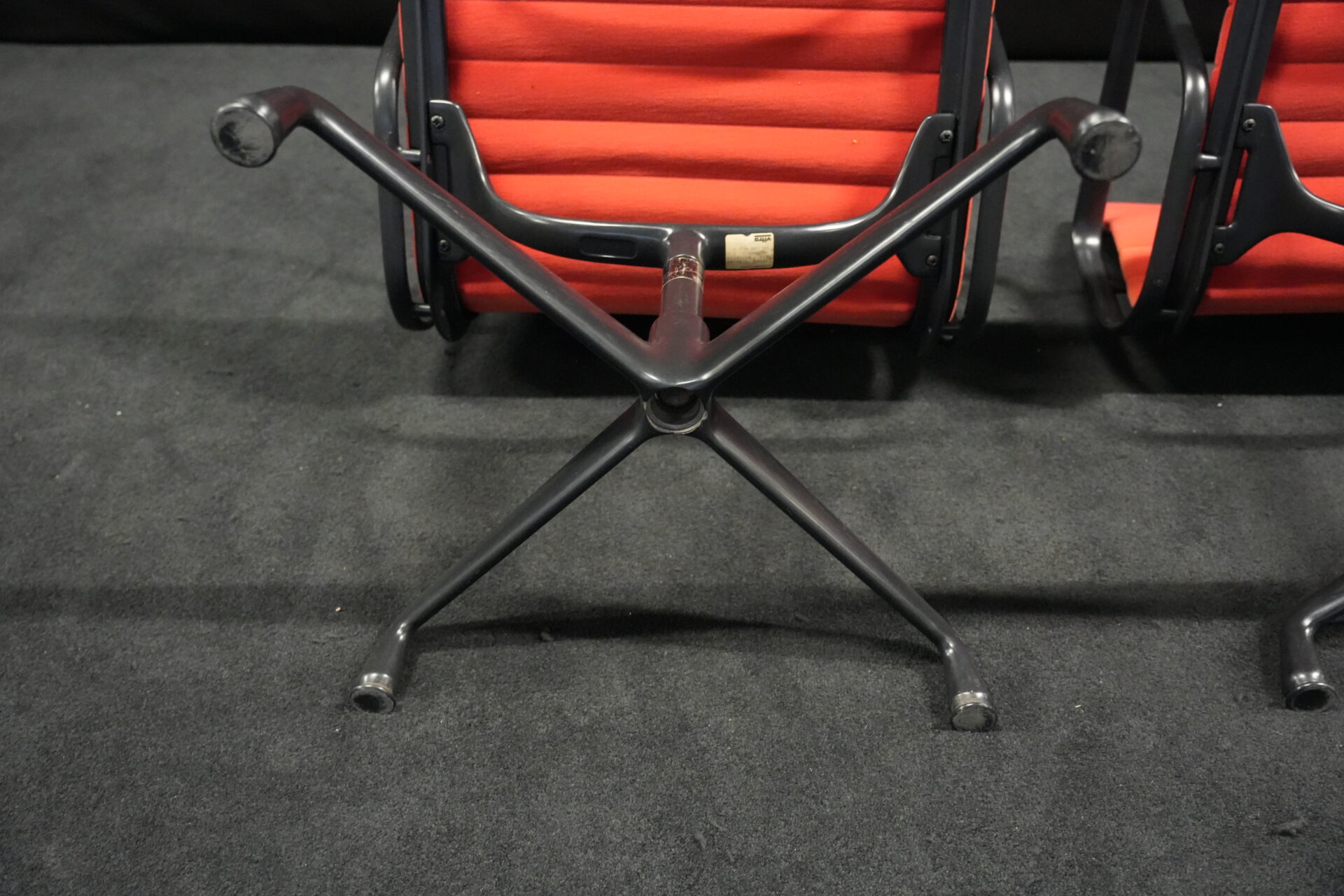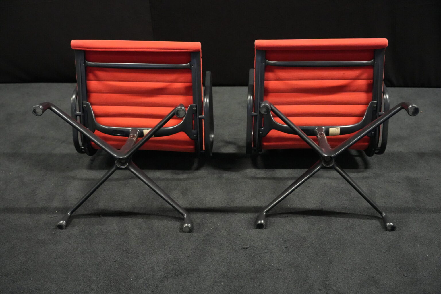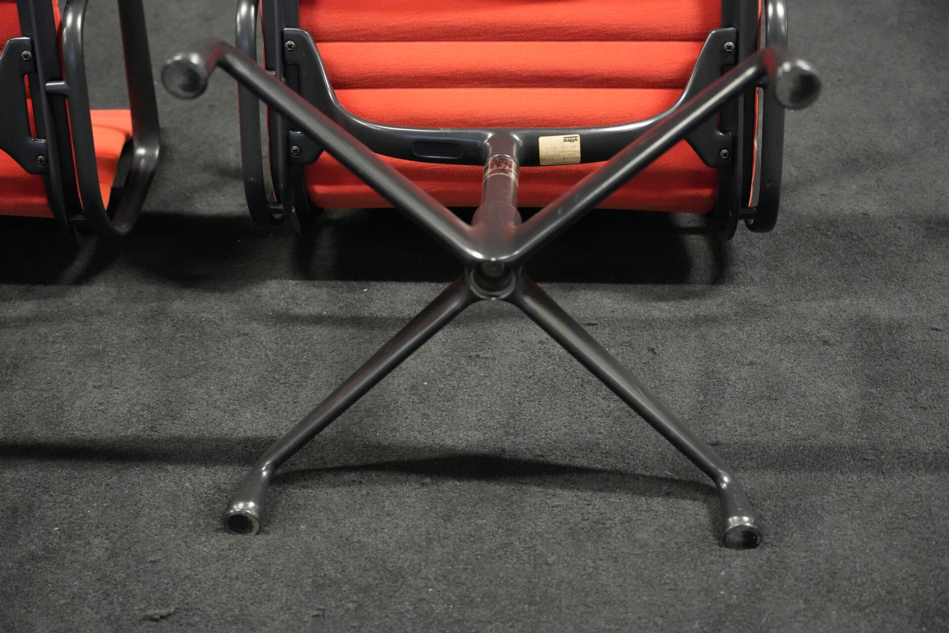 2x Vitra EA 108 Hopsak / rot (drehbar) | Marke: Vitra | Bezug: Hopsak / rot | Gestell: Aluminium-Druckguss schwarz |Ausstattung: drehbar mit Armlehnen mittelhohe Rückenlehne 4-Sternfuß | Abmessungen: H: 83cm | SH: 40cm | B: 58cm | T: 59cm