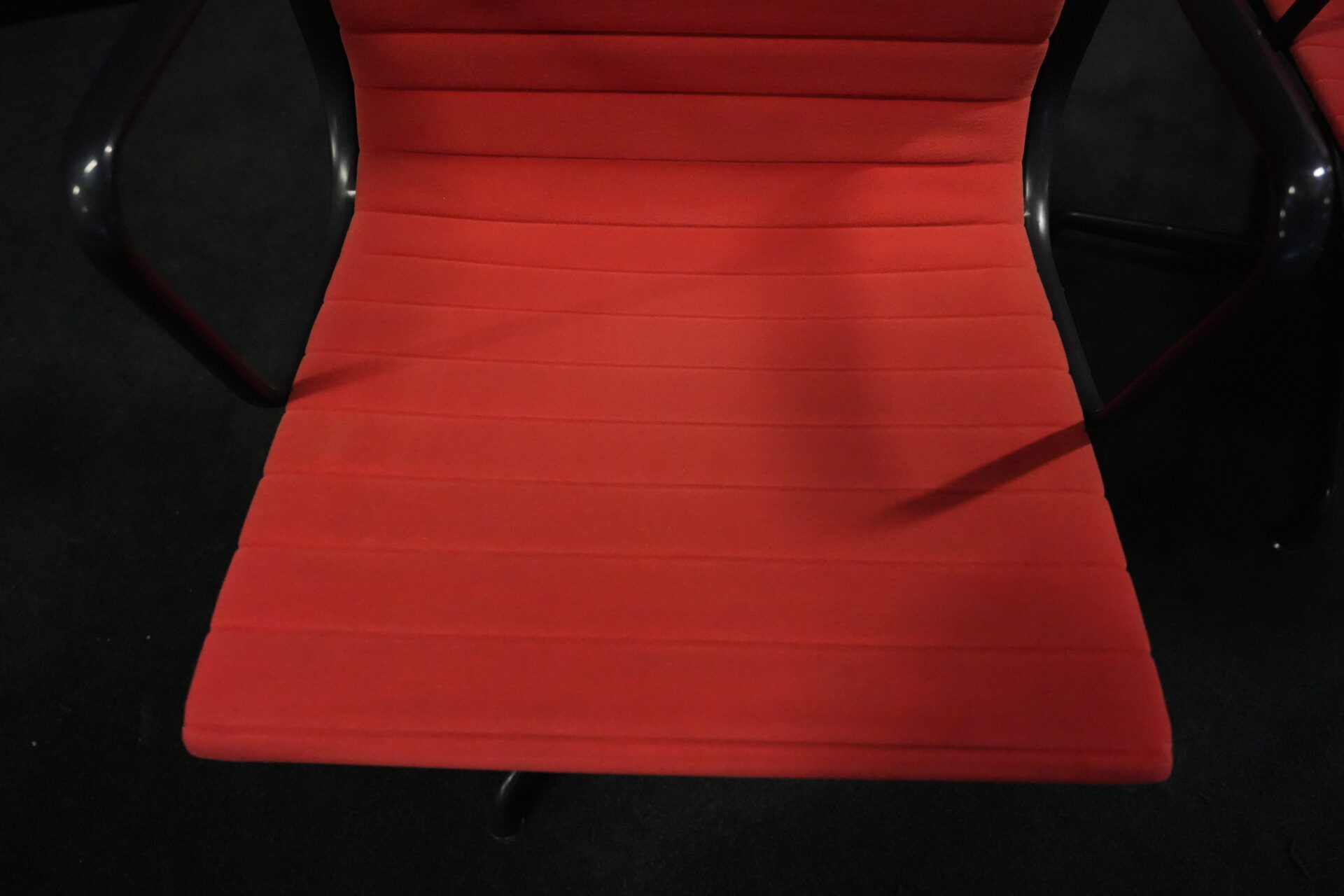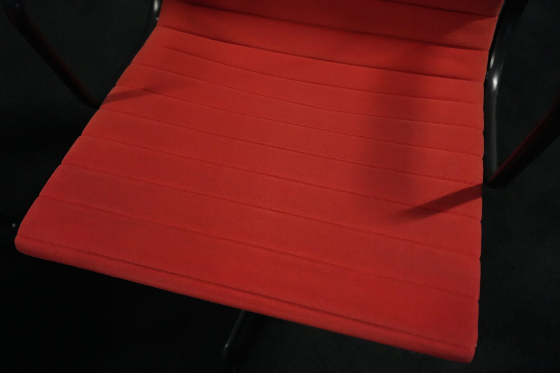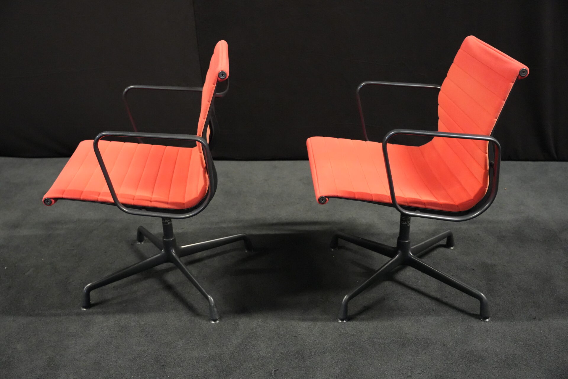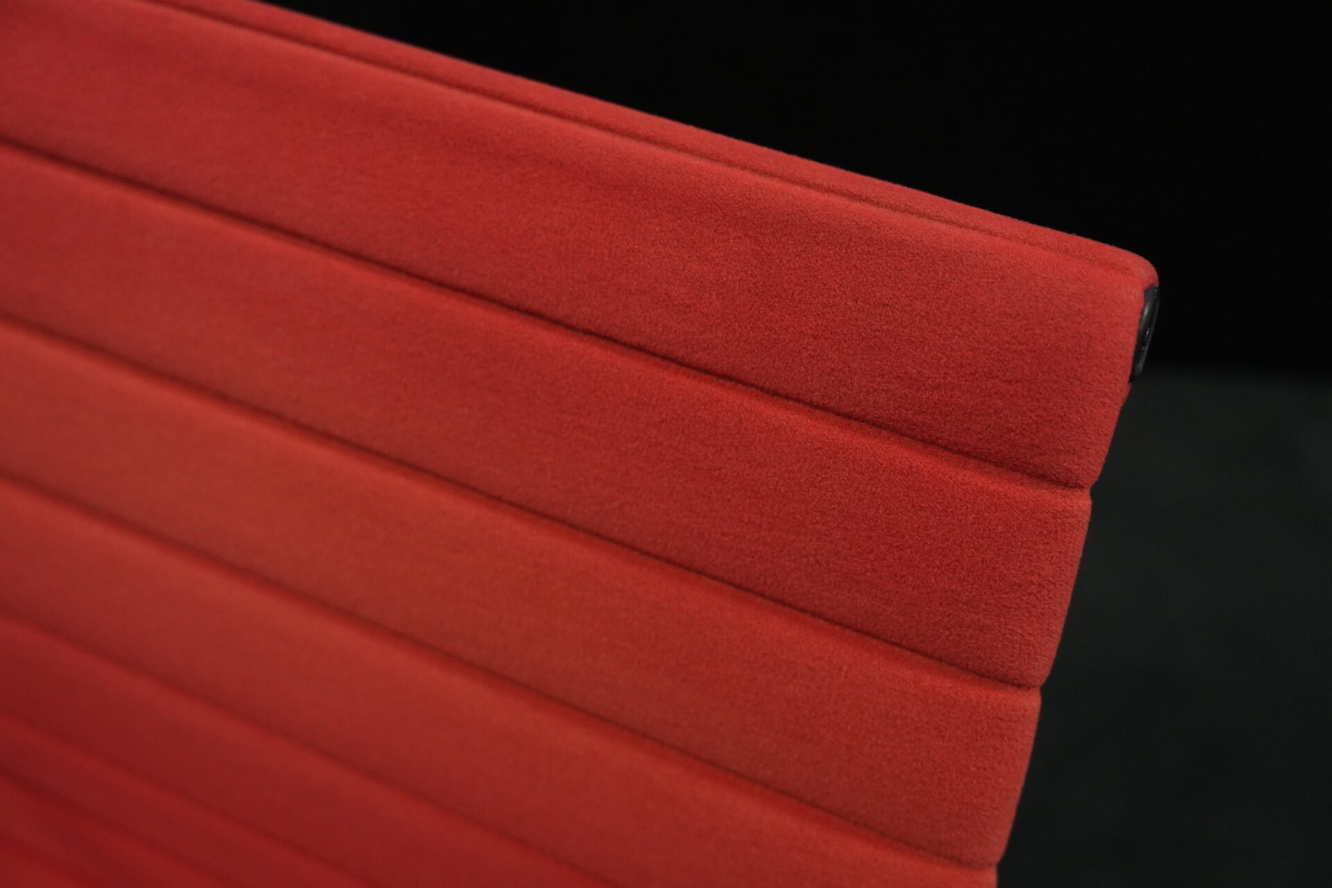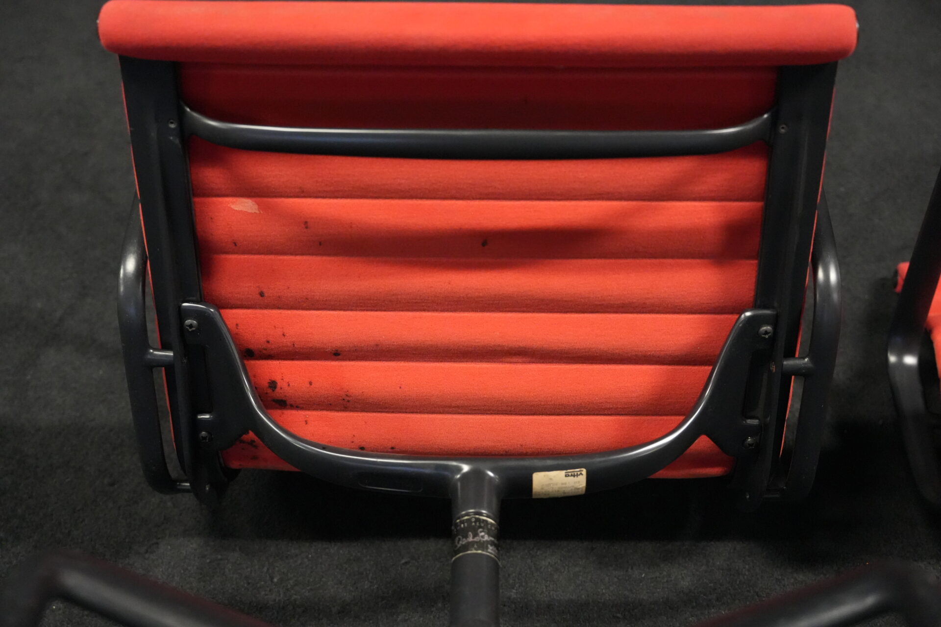 2x Vitra EA 108 Hopsak / rot (drehbar) | Marke: Vitra | Bezug: Hopsak / rot | Gestell: Aluminium-Druckguss schwarz |Ausstattung: drehbar mit Armlehnen mittelhohe Rückenlehne 4-Sternfuß | Abmessungen: H: 83cm | SH: 40cm | B: 58cm | T: 59cm