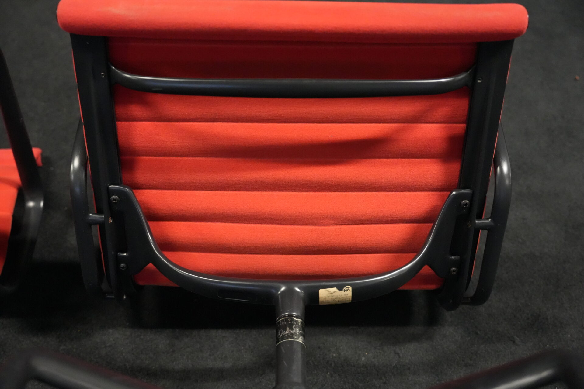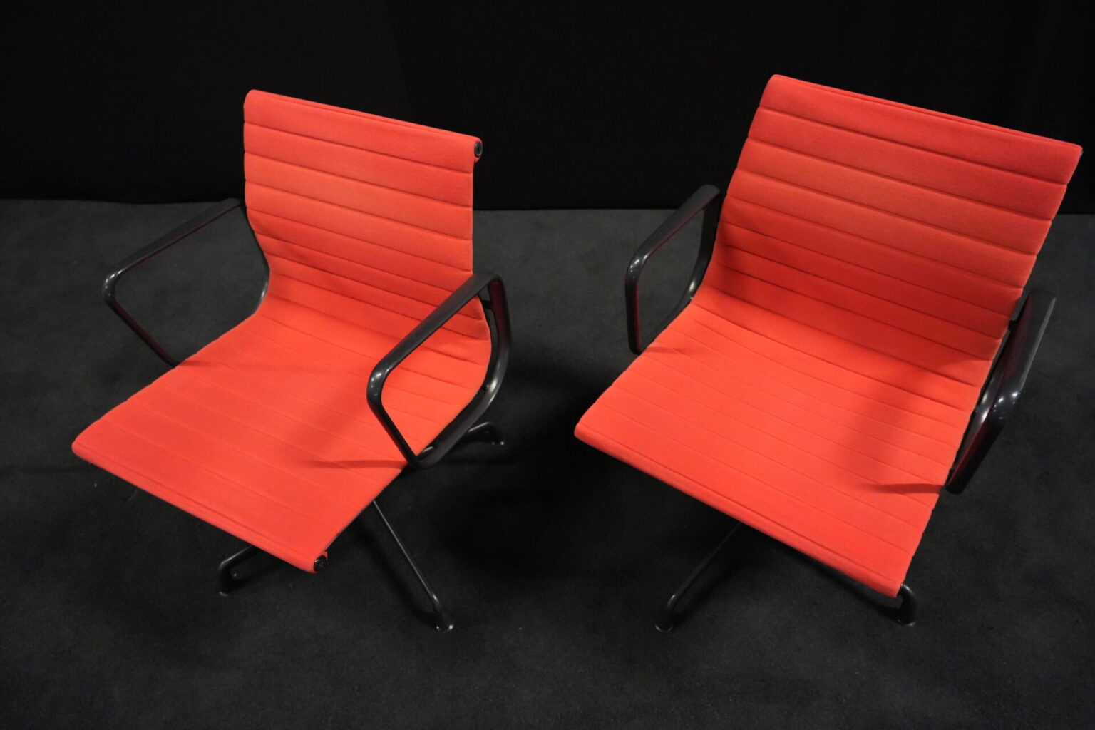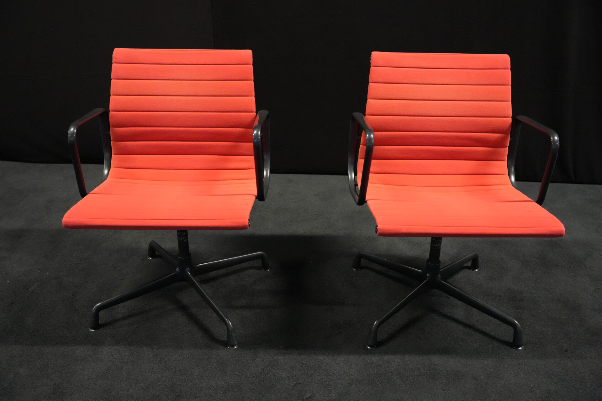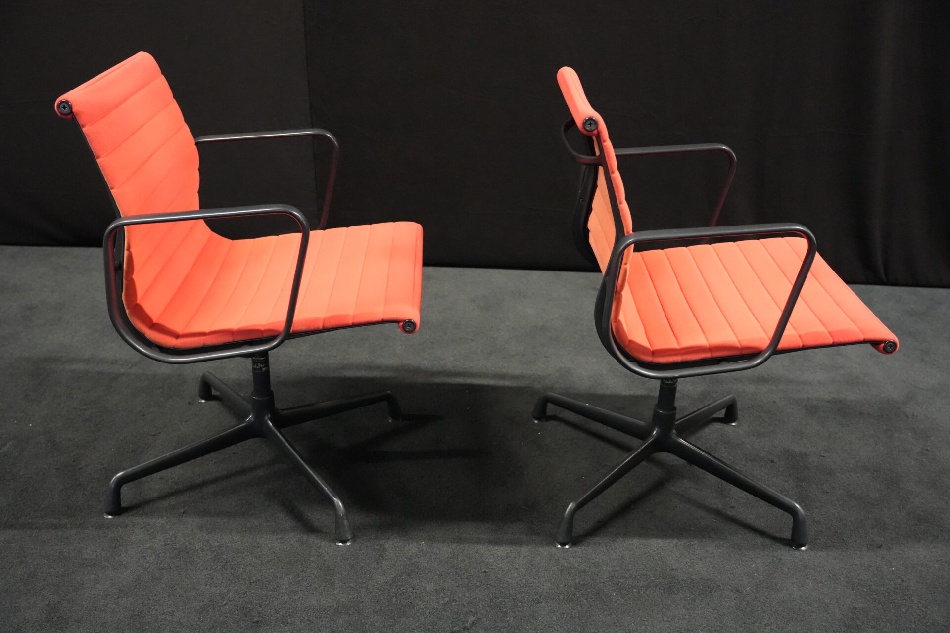 2x Vitra EA 108 Hopsak / rot (drehbar) | Marke: Vitra | Bezug: Hopsak / rot | Gestell: Aluminium-Druckguss schwarz |Ausstattung: drehbar mit Armlehnen mittelhohe Rückenlehne 4-Sternfuß | Abmessungen: H: 83cm | SH: 40cm | B: 58cm | T: 59cm