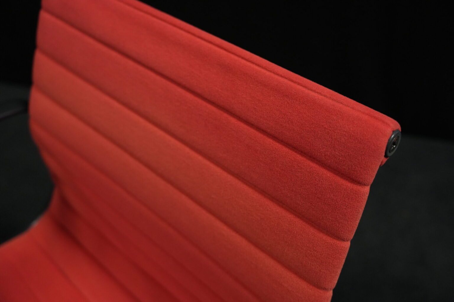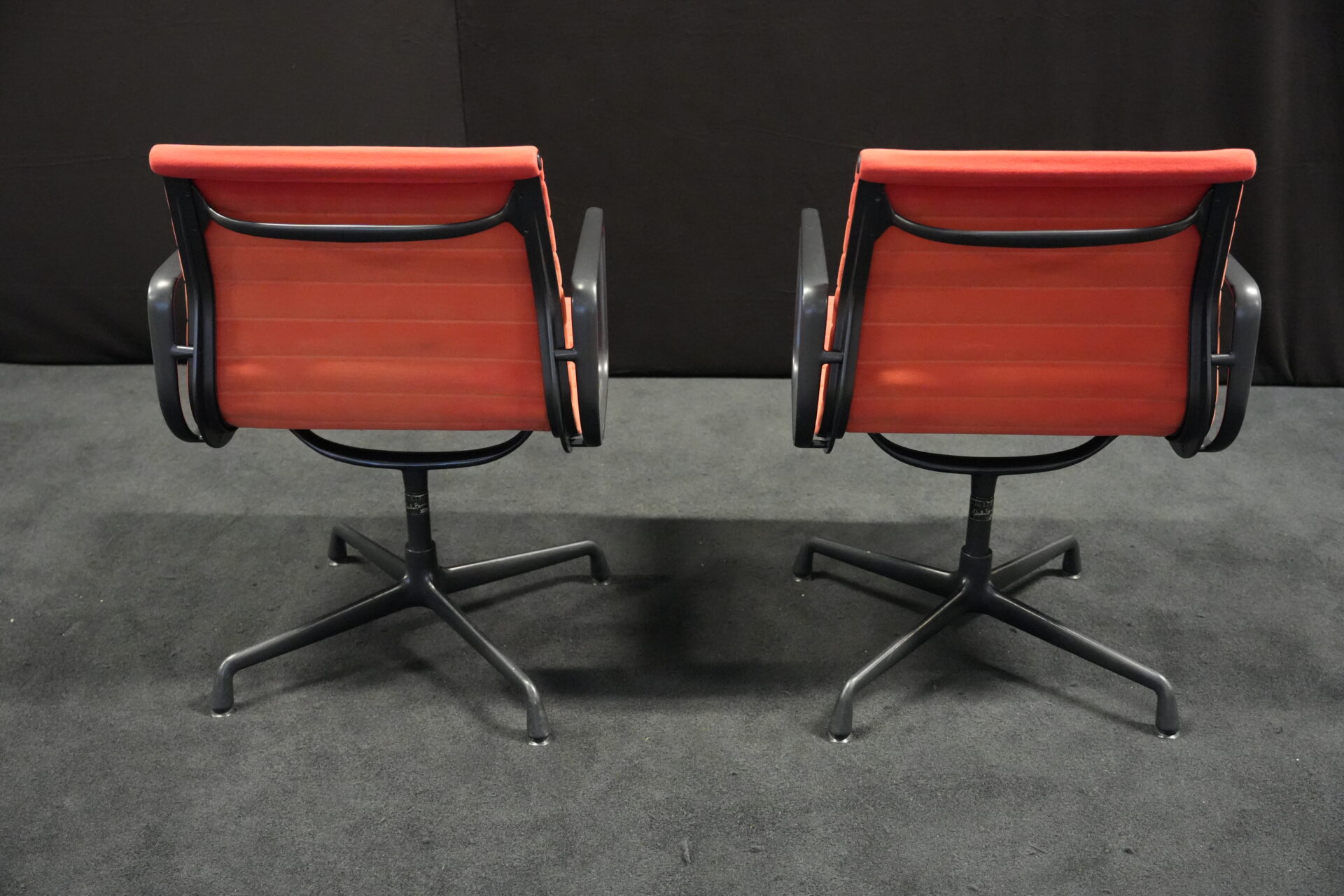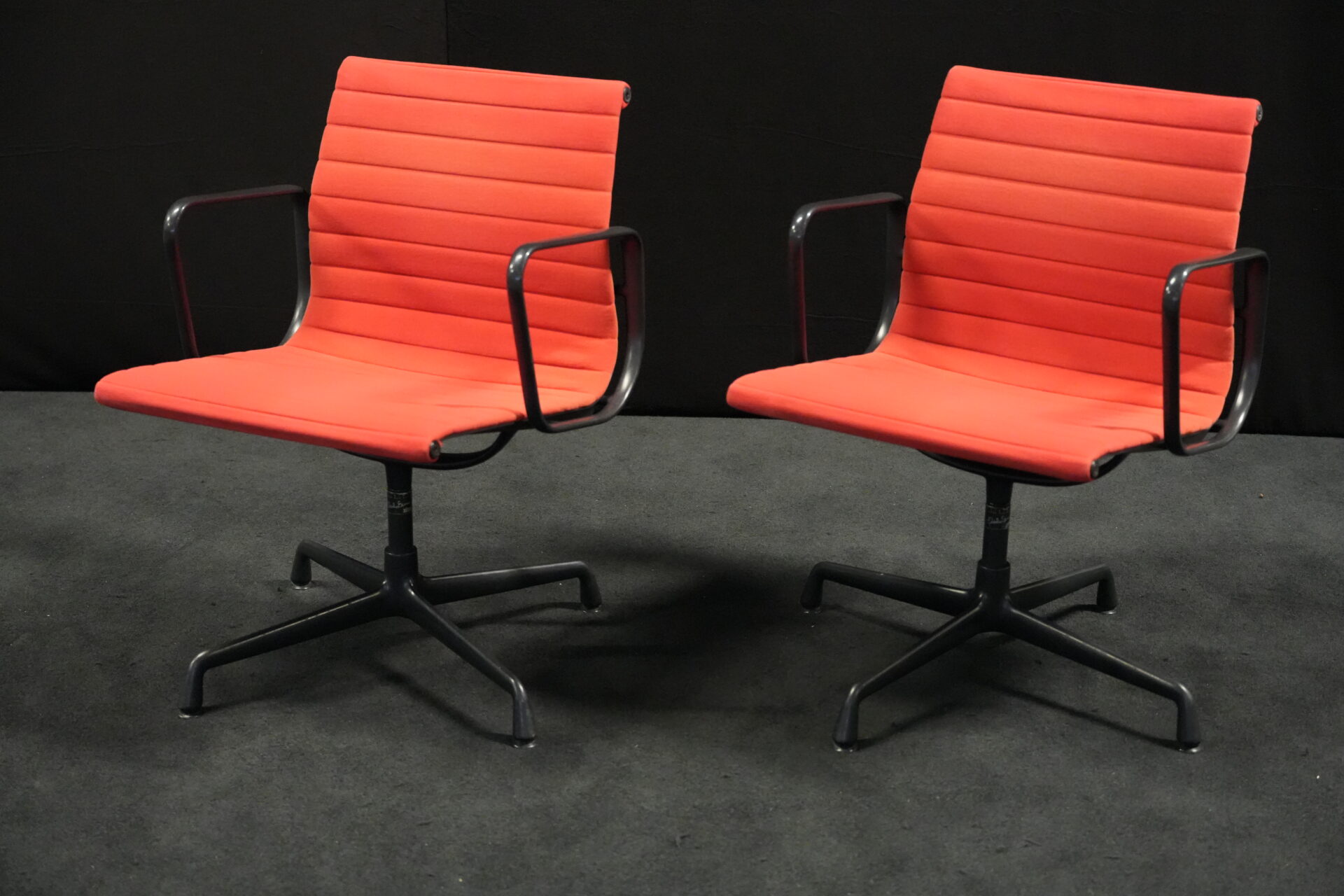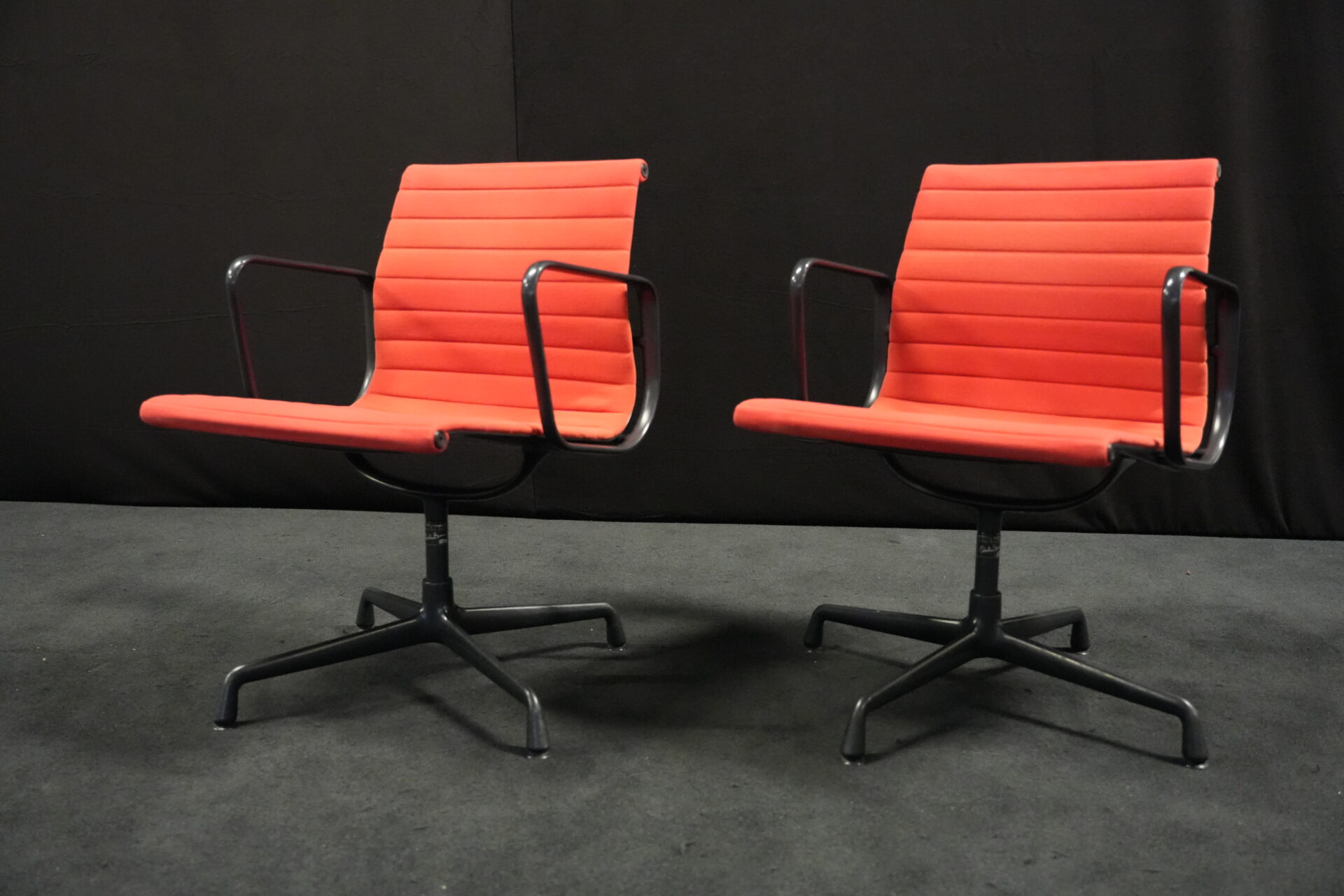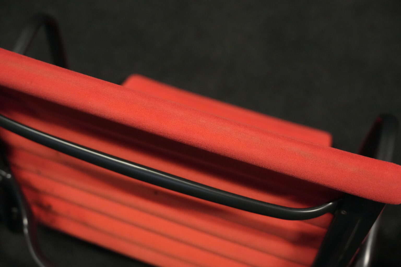 2x Vitra EA 108 Hopsak / rot (drehbar) | Marke: Vitra | Bezug: Hopsak / rot | Gestell: Aluminium-Druckguss schwarz |Ausstattung: drehbar mit Armlehnen mittelhohe Rückenlehne 4-Sternfuß | Abmessungen: H: 83cm | SH: 40cm | B: 58cm | T: 59cm