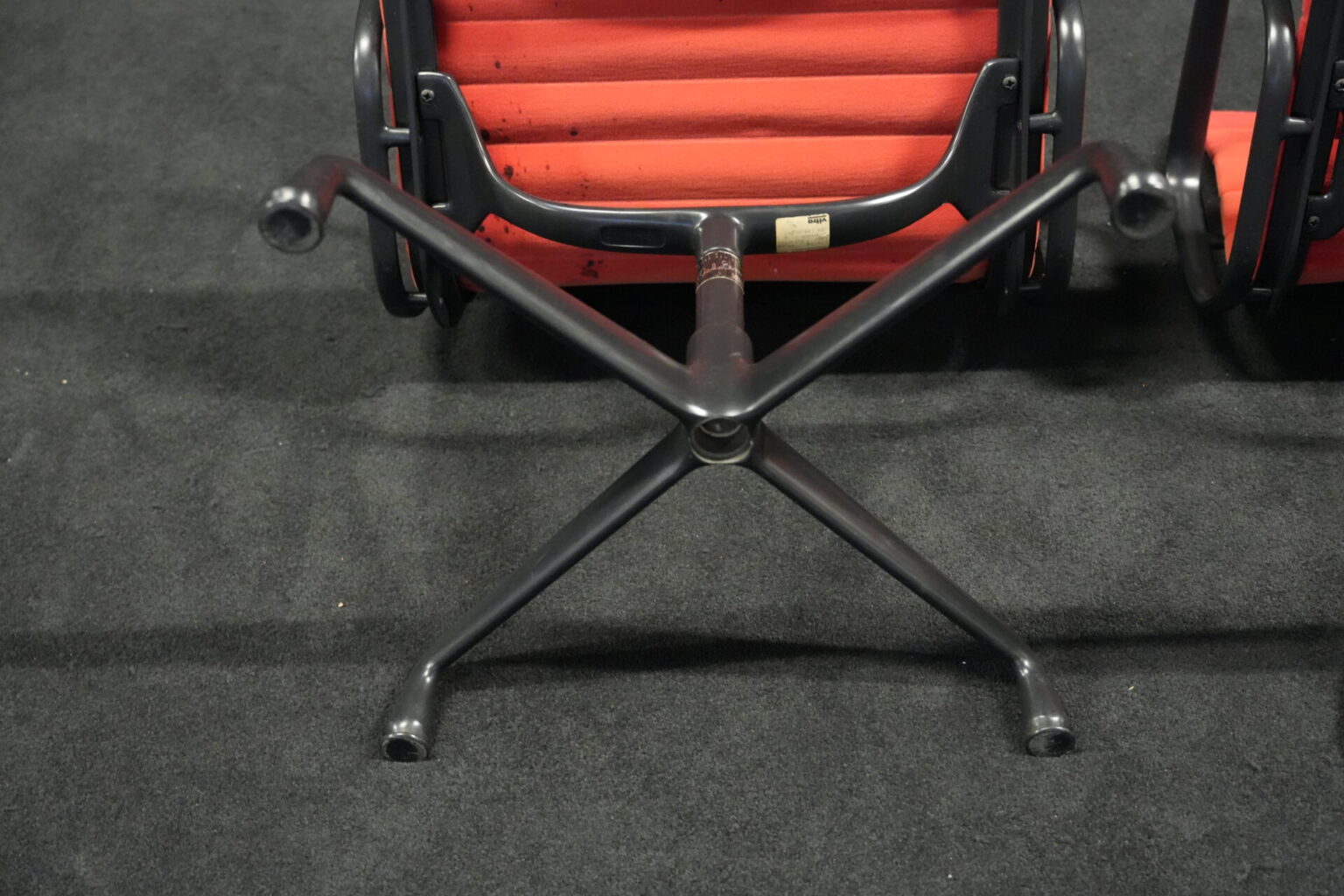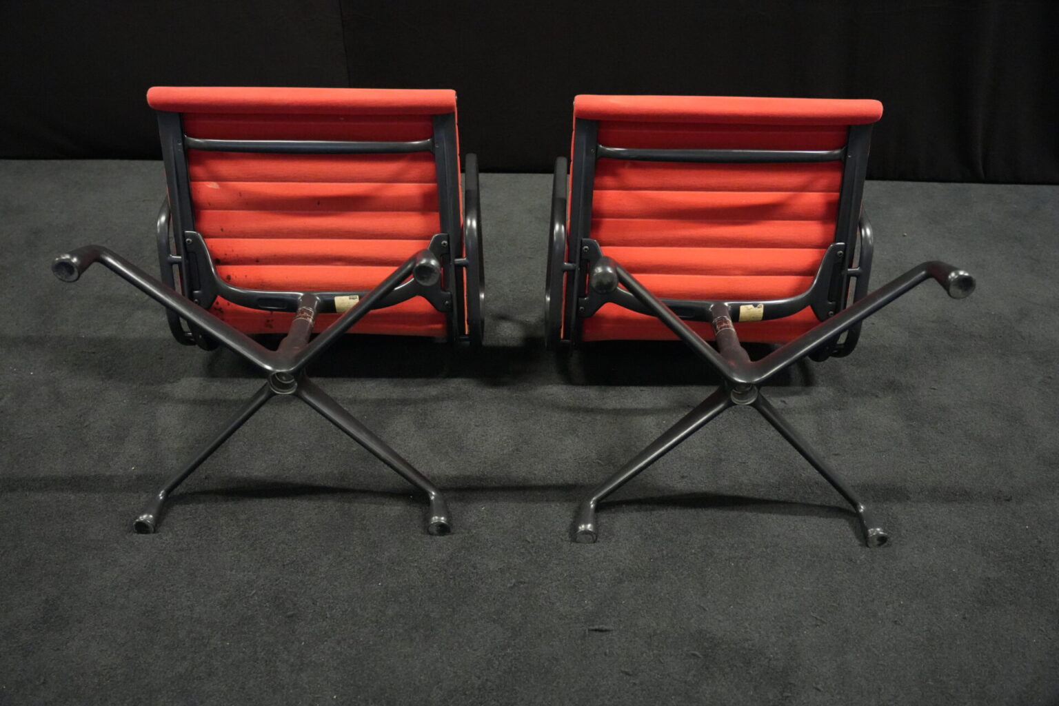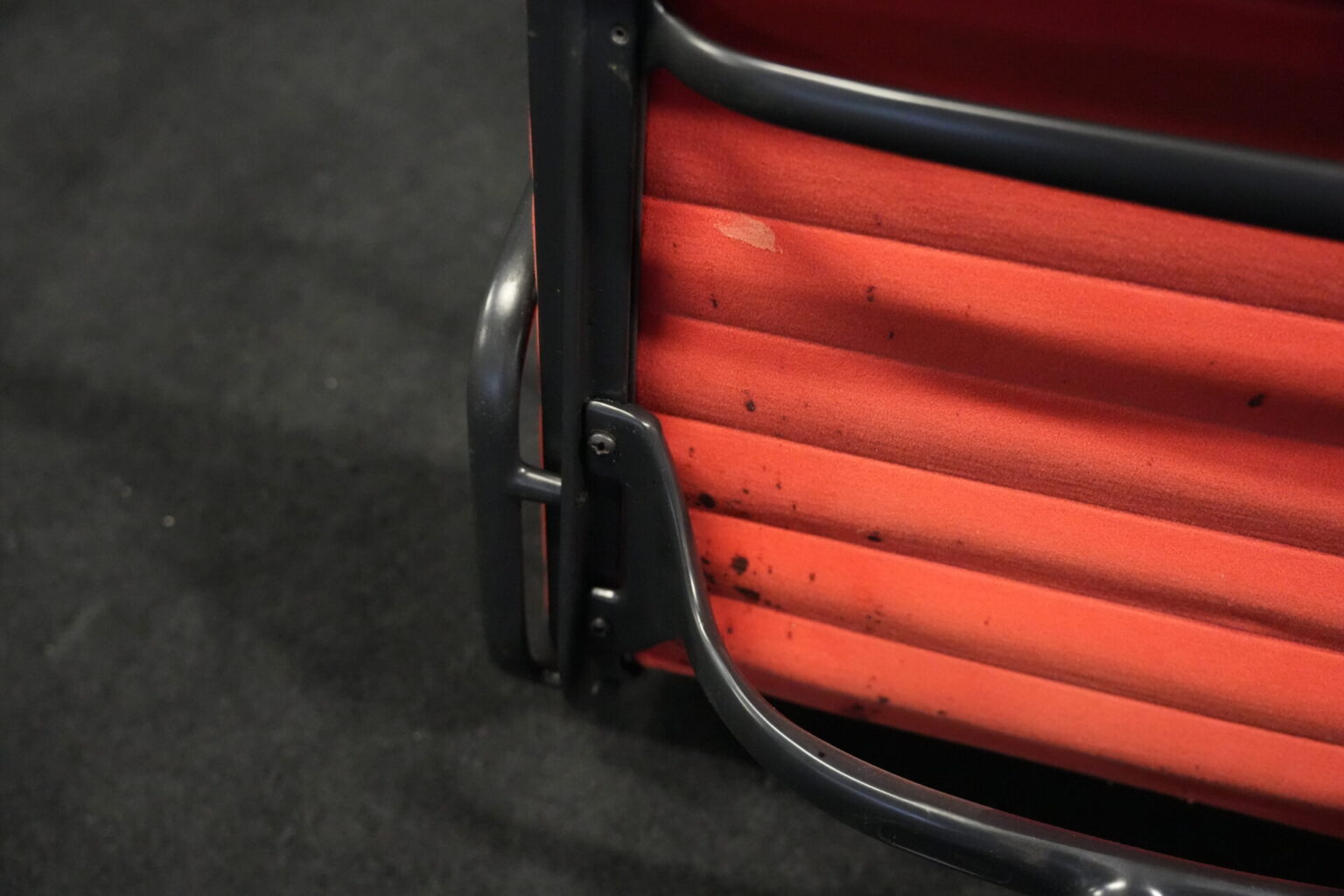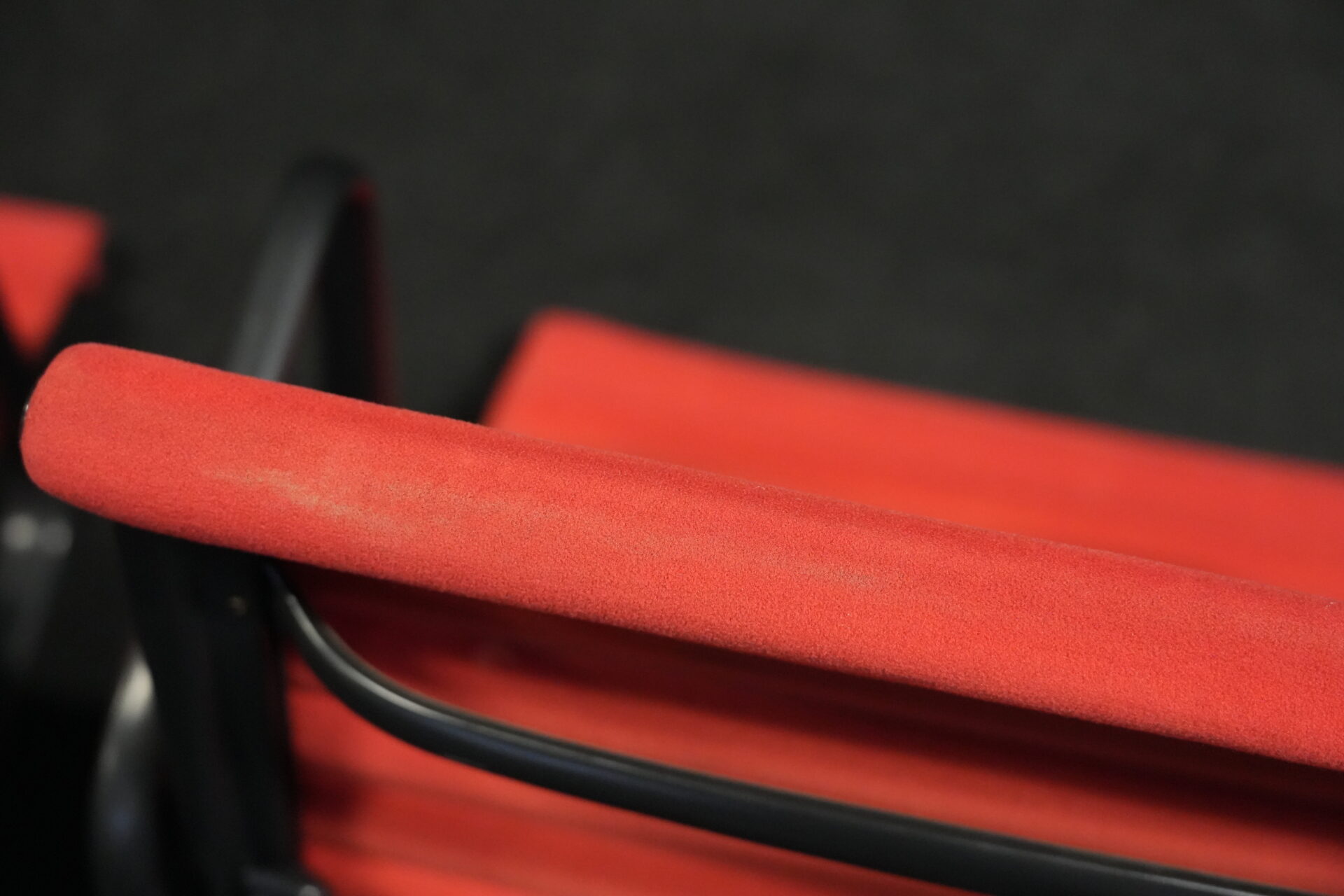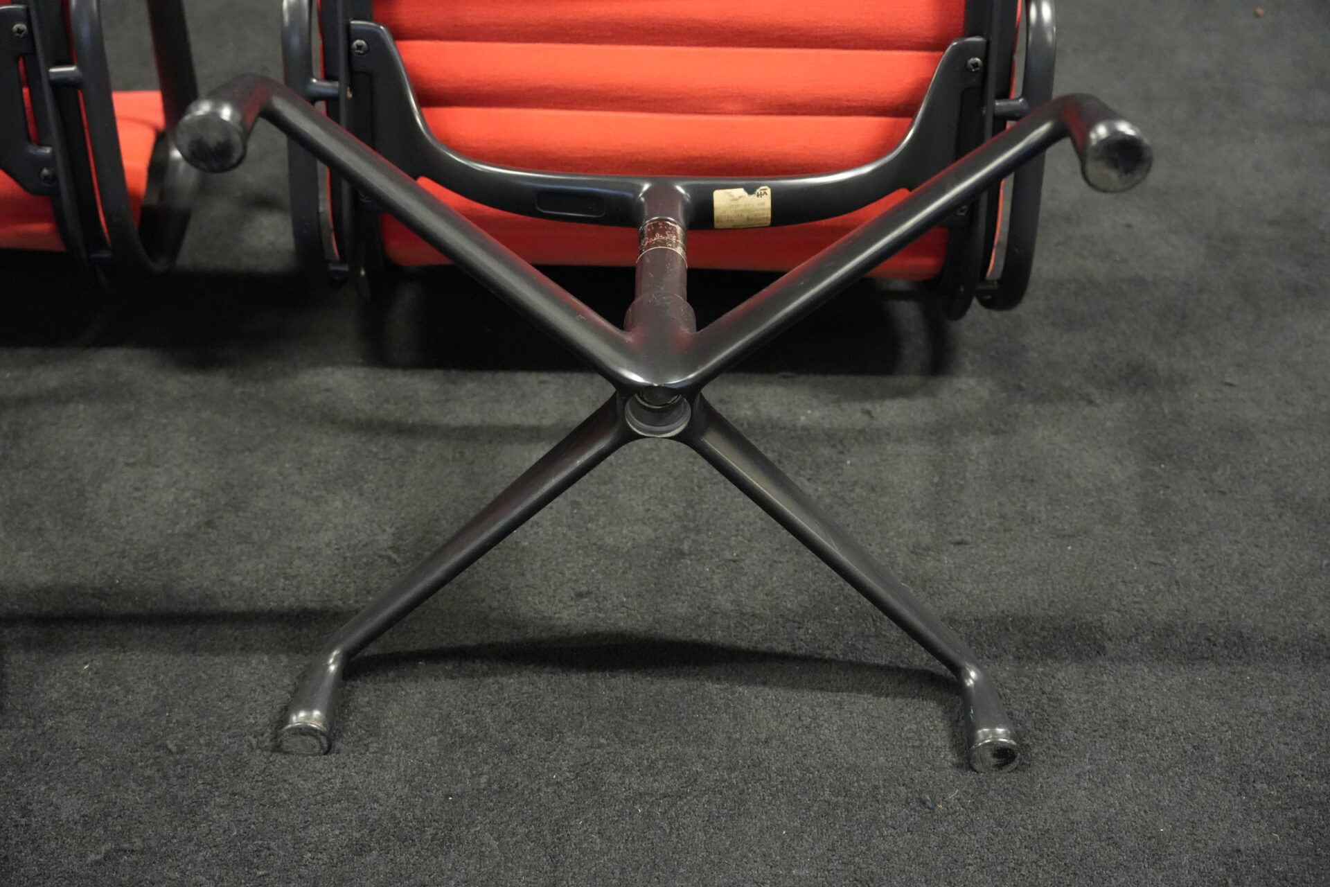 2x Vitra EA 108 Hopsak / rot (drehbar) | Marke: Vitra | Bezug: Hopsak / rot | Gestell: Aluminium-Druckguss schwarz |Ausstattung: drehbar mit Armlehnen mittelhohe Rückenlehne 4-Sternfuß | Abmessungen: H: 83cm | SH: 40cm | B: 58cm | T: 59cm