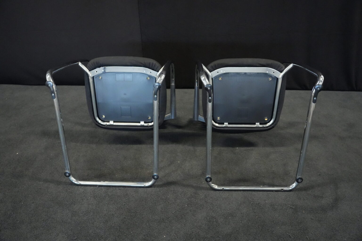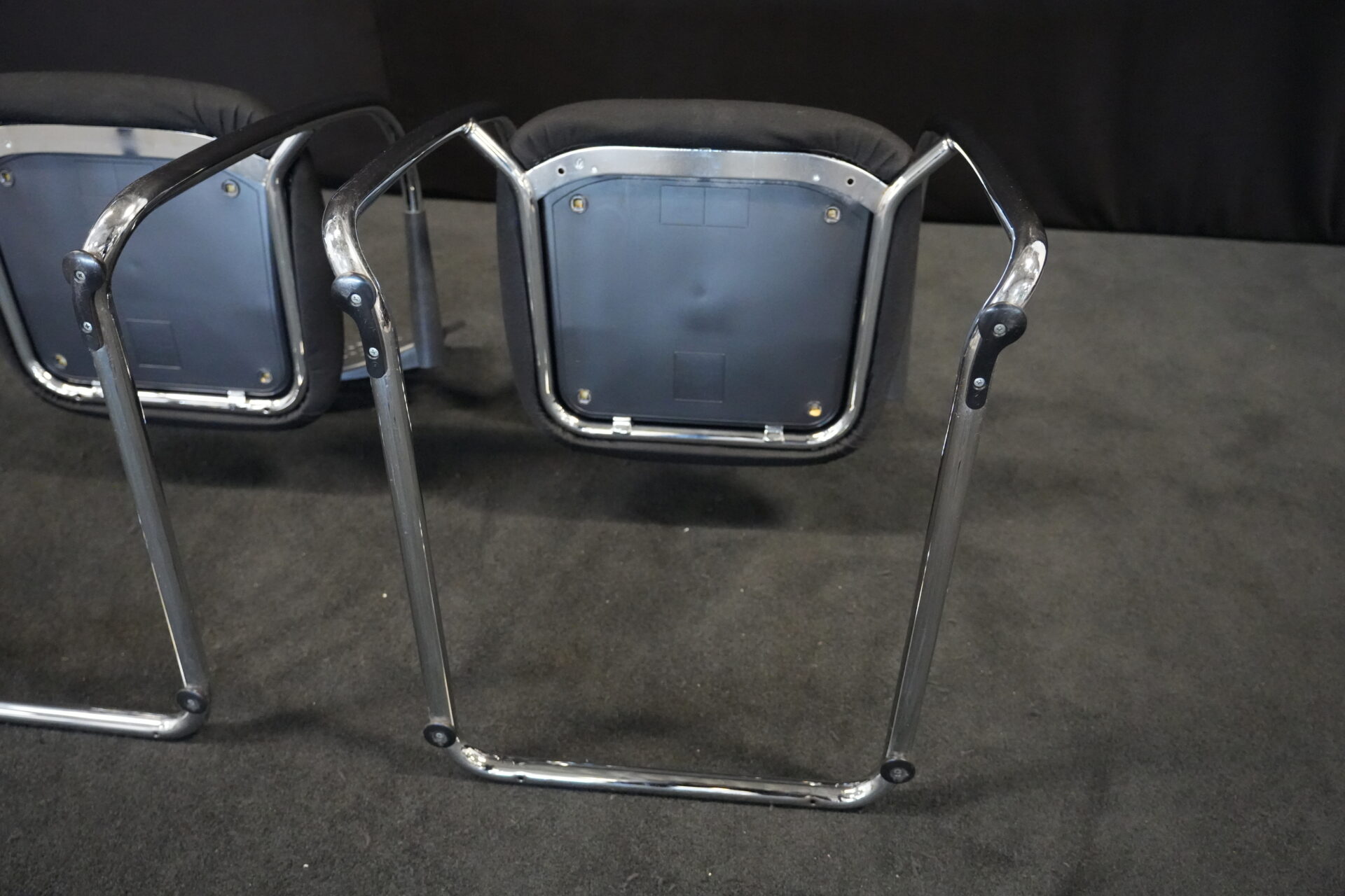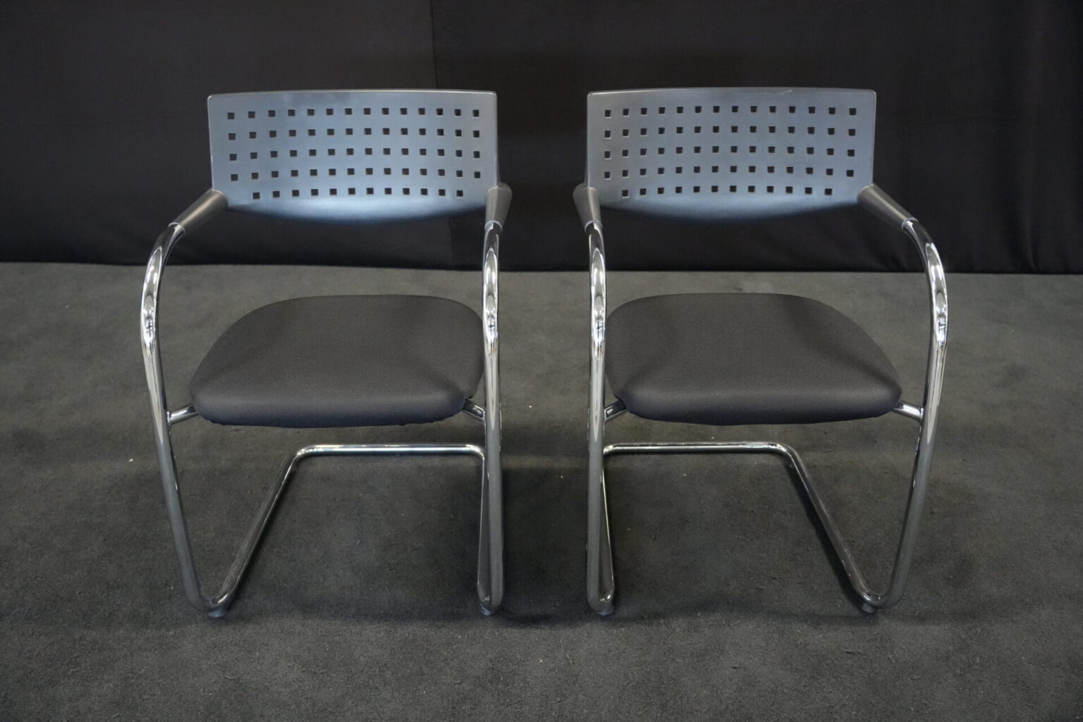 2x Vitra VisaVis Freischwinger Stoff / Schwarz | Bezug: Stoff / schwarz | Rückenlehne: Kunststoff / schwarz | Gestell: verchromt | Ausstattung: mit Armlehnen | Abmessungen: H: 80cm | SH: 41cm | B: 55cm | T: 58 cm