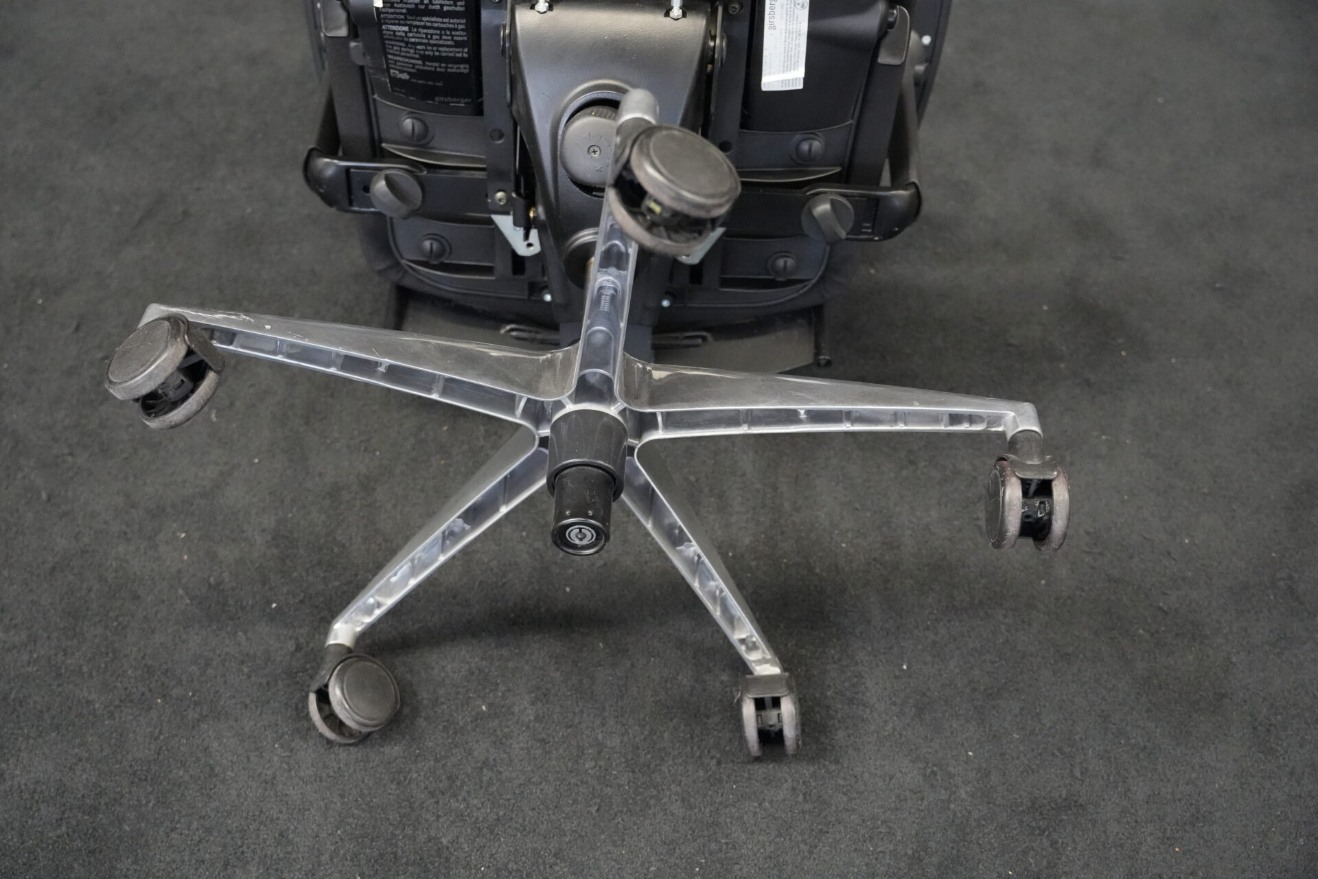 Girsberger Bürostuhl stoff / schwarz | Marke: Girsberger | Bezug: stoff / schwarz | Ausstattung: höhenverstellbare Armlehnen, Sterngestell mit Rollen, höhenverstellbar und drehbar | Abmessungen: 115cm | SH: 42-56cm | B: 66cm | T: 50cm