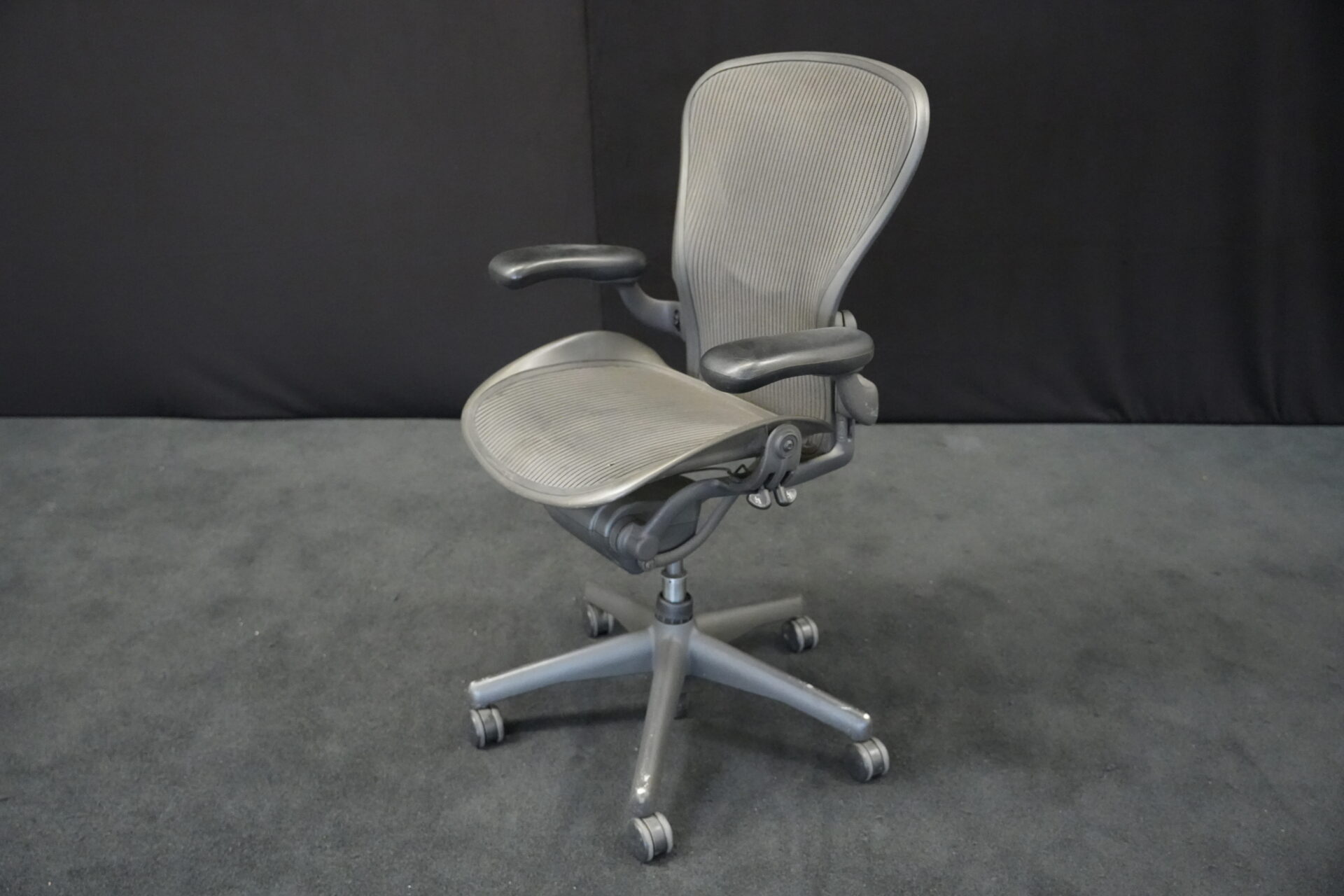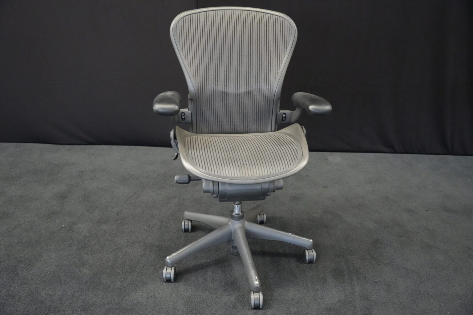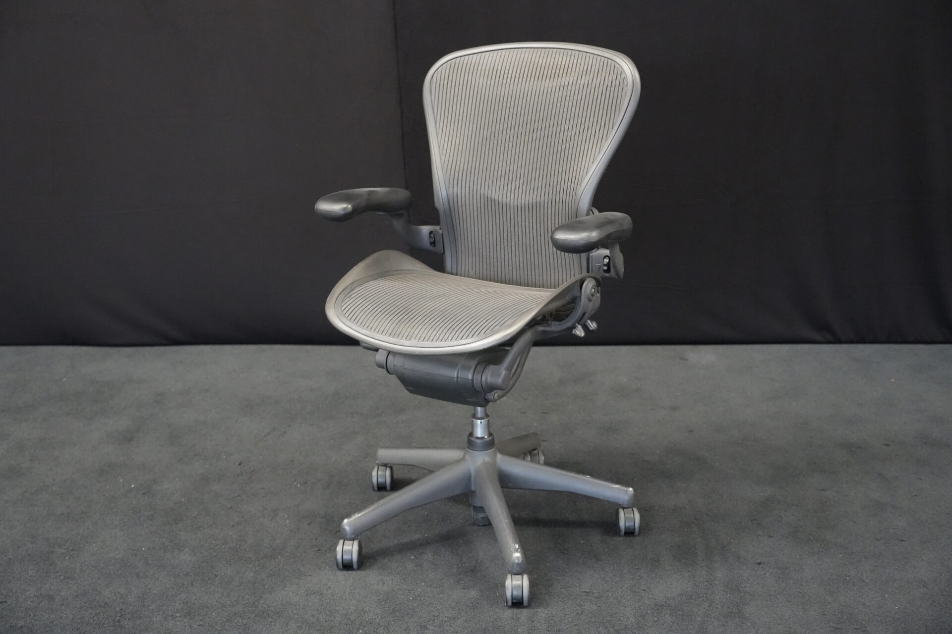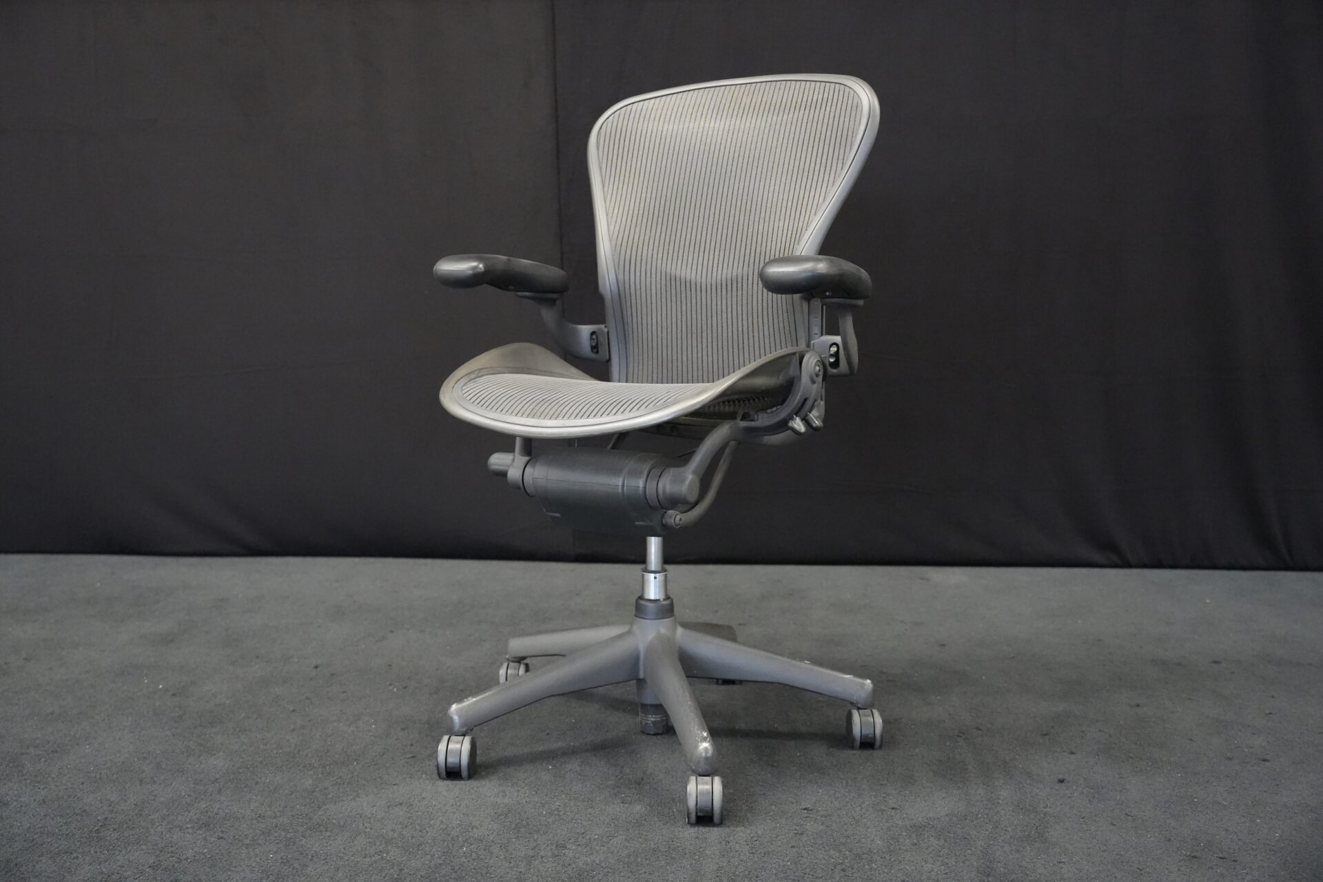 Herman Miller Bürodrehstuhl Aeron Classic Netz / Grau | Marke: Herman Miller | Bezug: Netz / grau | Gestell: Metall / grau | Ausstattung: höhenverstellbare Armlehnen aus Kunststoff