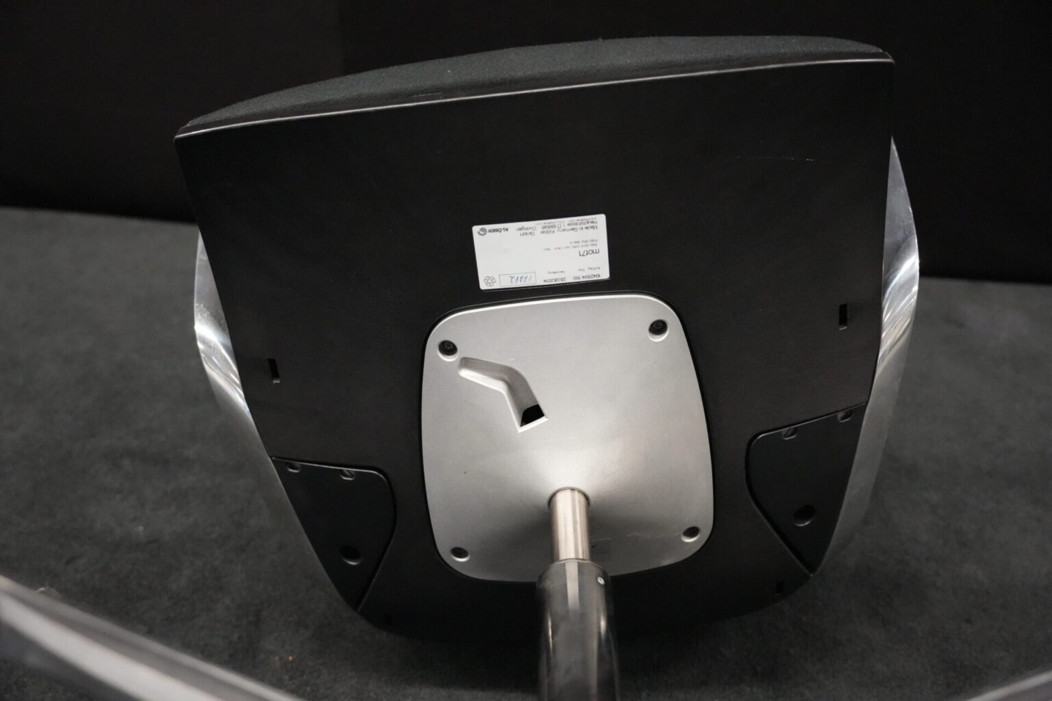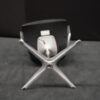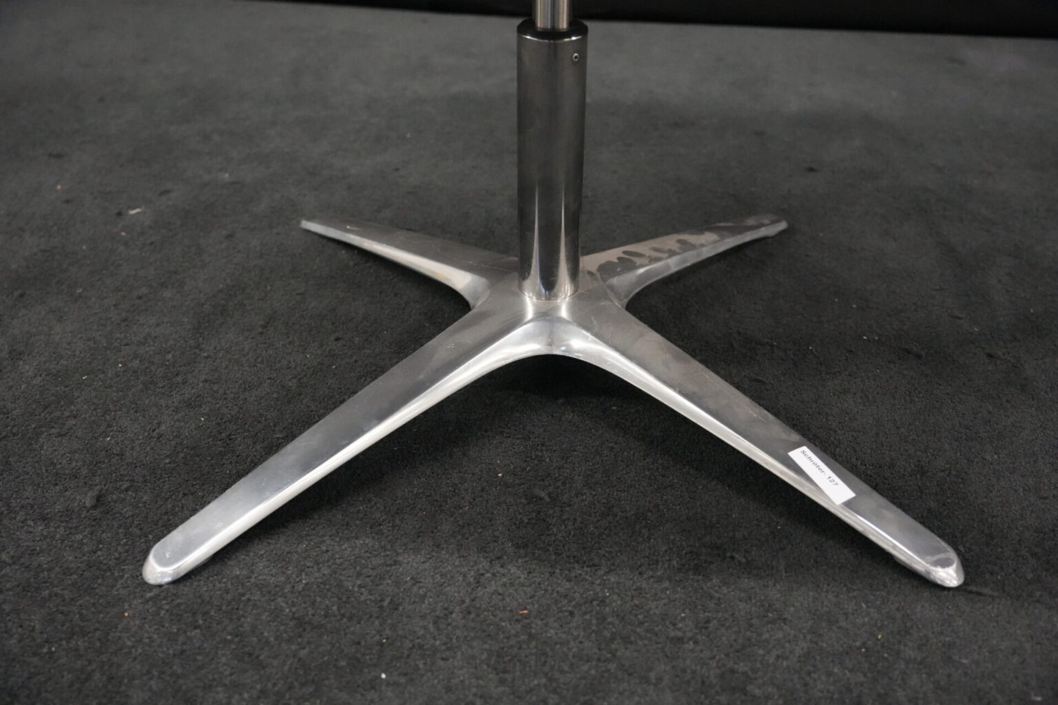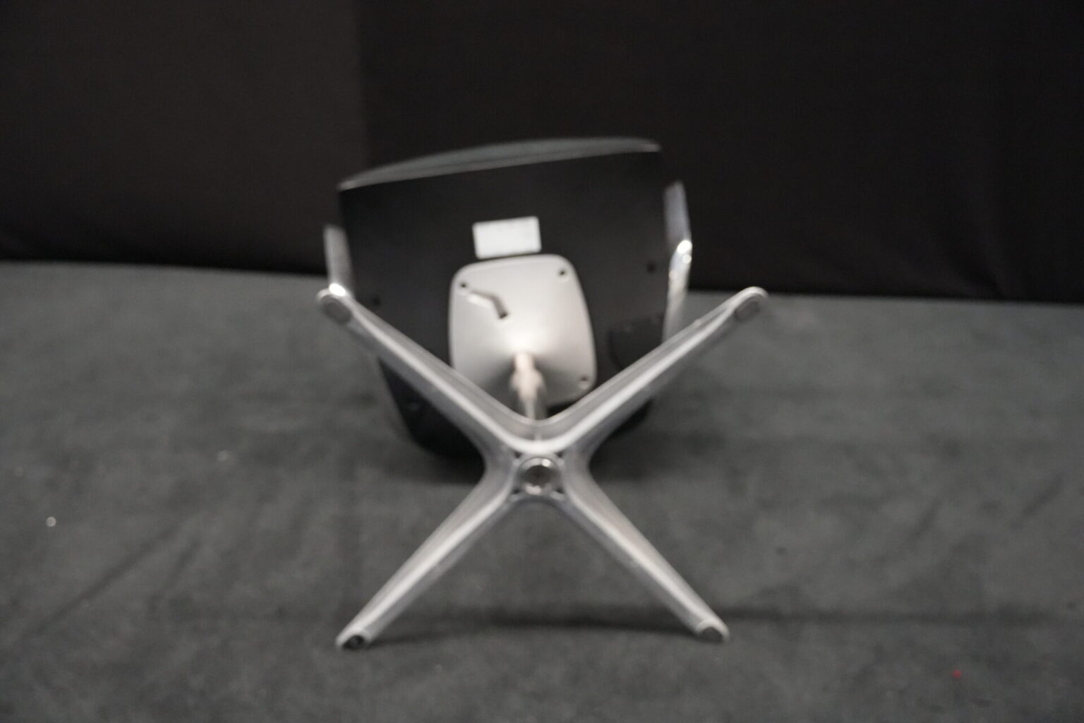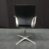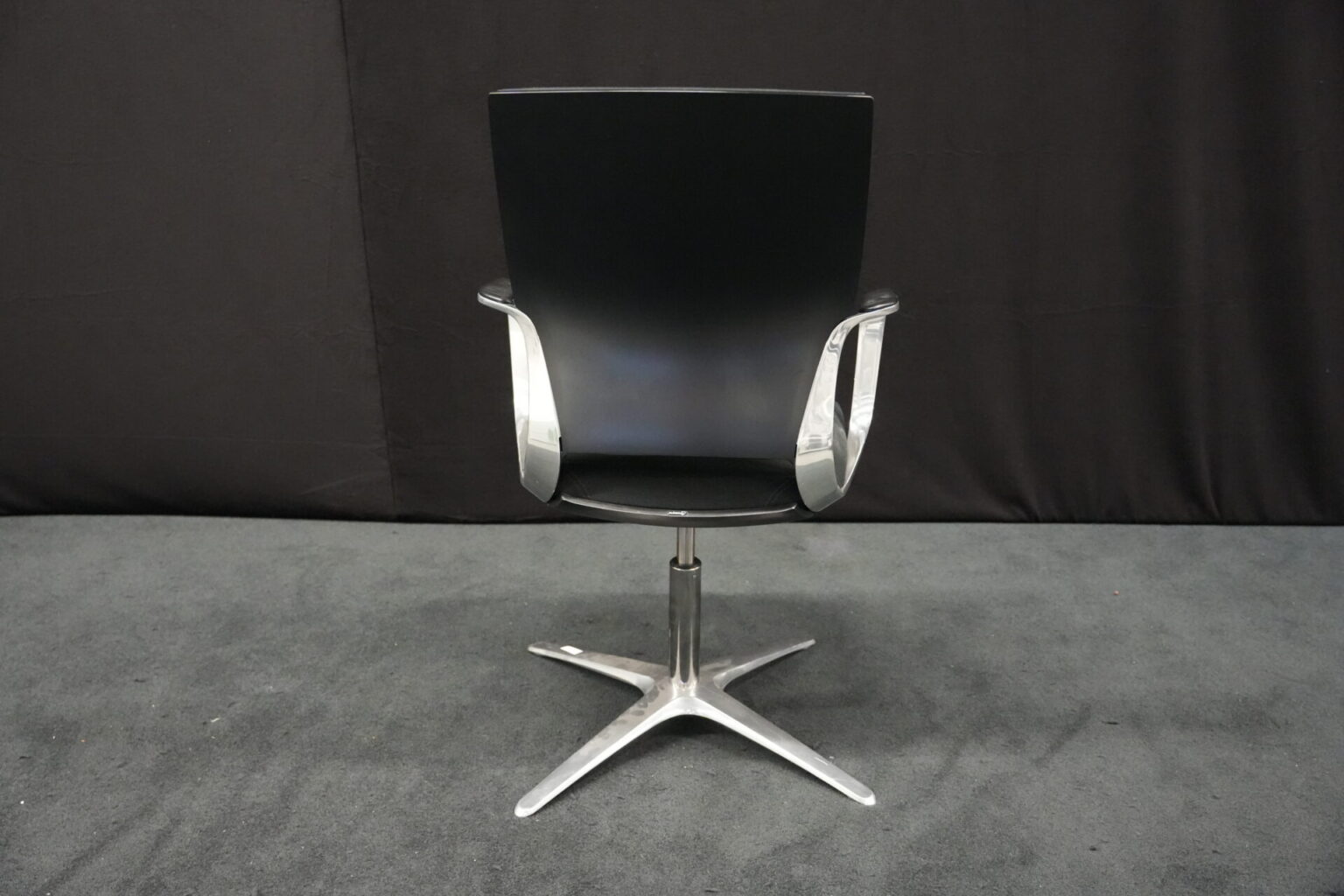 Klöber Konferenzstuhl Stoff / Schwarz | Marke: Klöber | Rückenlehne: Kunststoff / schwarz | Bezug: Stoff / schwarz | Gestell: Metall | Ausstattung: Metall-Armlehne mit Lederbezug, X-Form-Beine ohne Rollen, drehbar (geht sofort an die Anfangsposition zurück) | Abmessung: H: 102cm | SH: 50cm | B:58 cm | T:50 cm