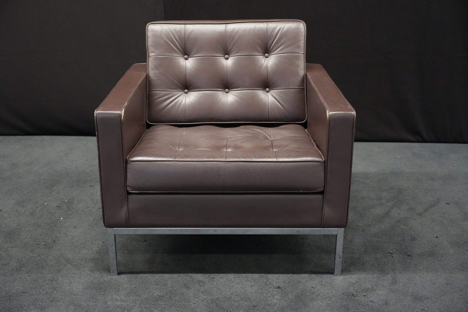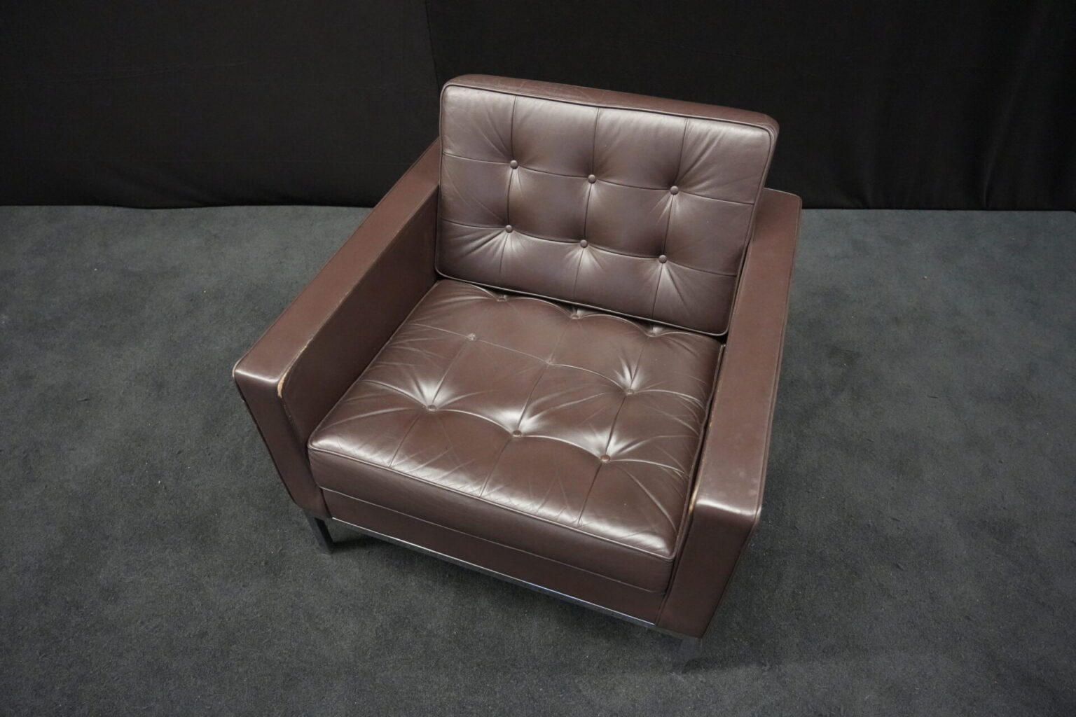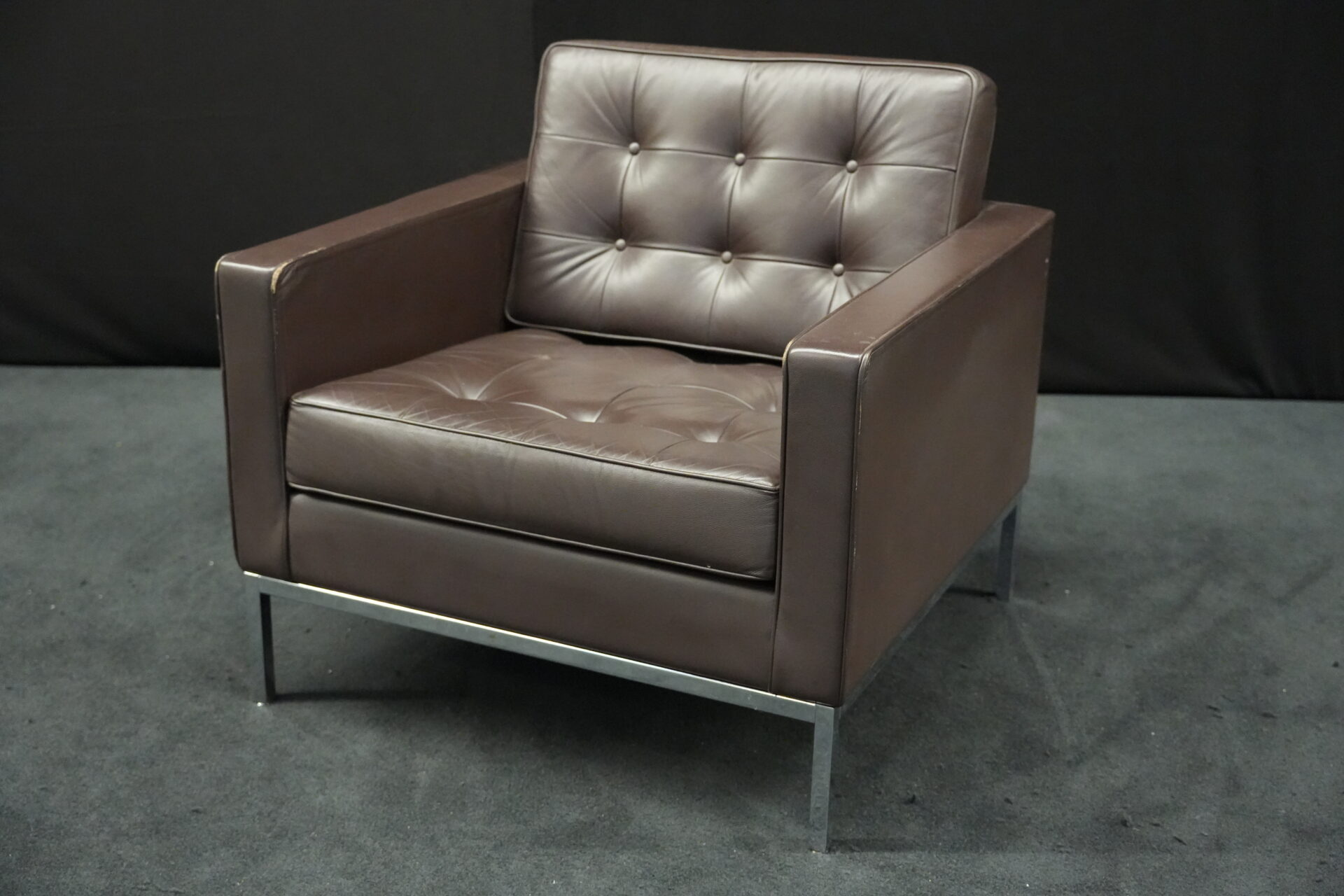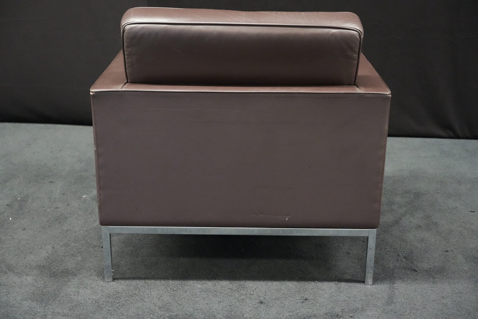 Knoll International Florence Sessel Leder / Braun | Marke: Knoll International | Gestell: strichmatt verchromt | Bezug: Leder / braun | Abmessunge: H: 81cm | SH: 40cm | B: 81cm | T: 82cm