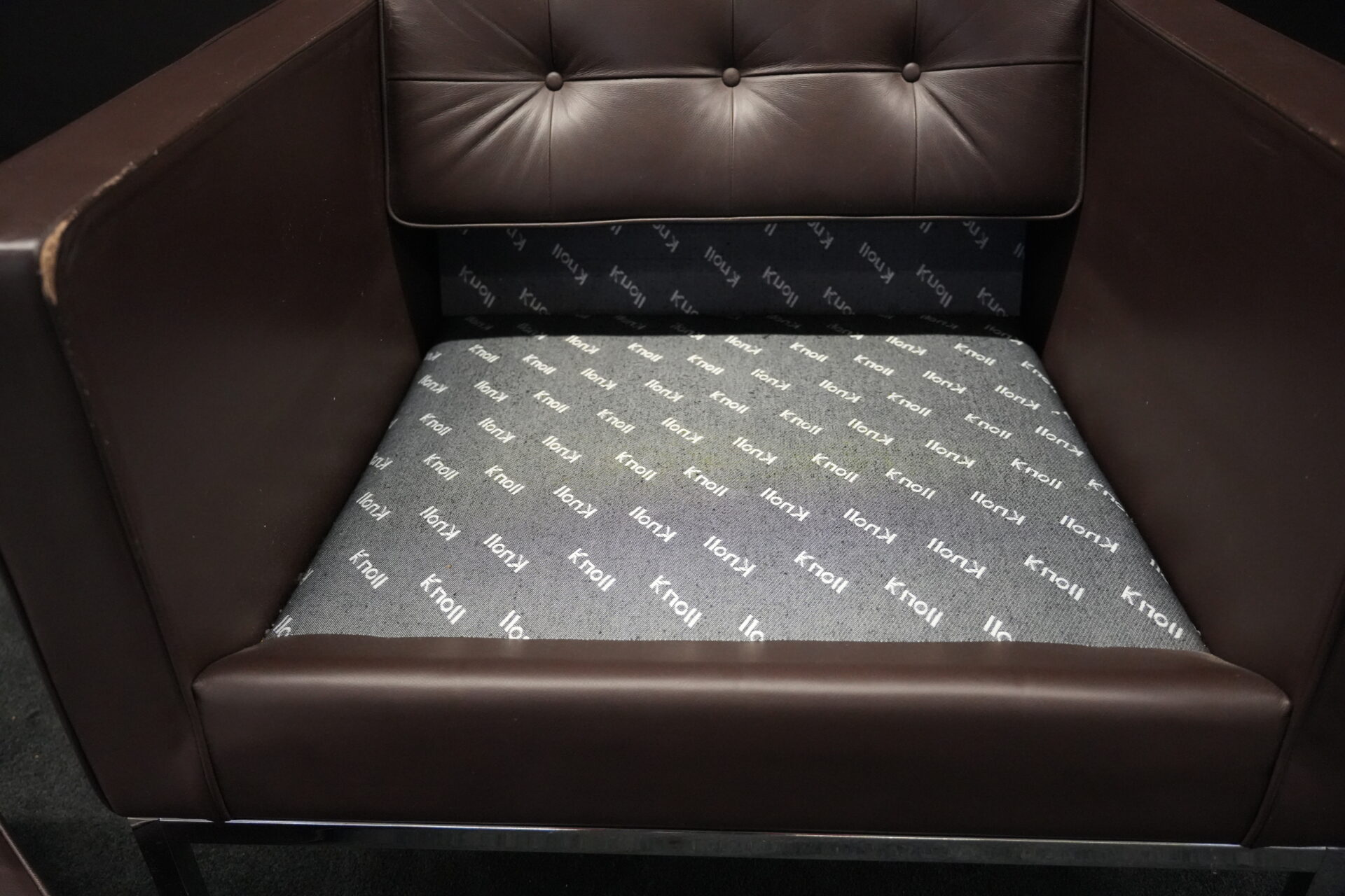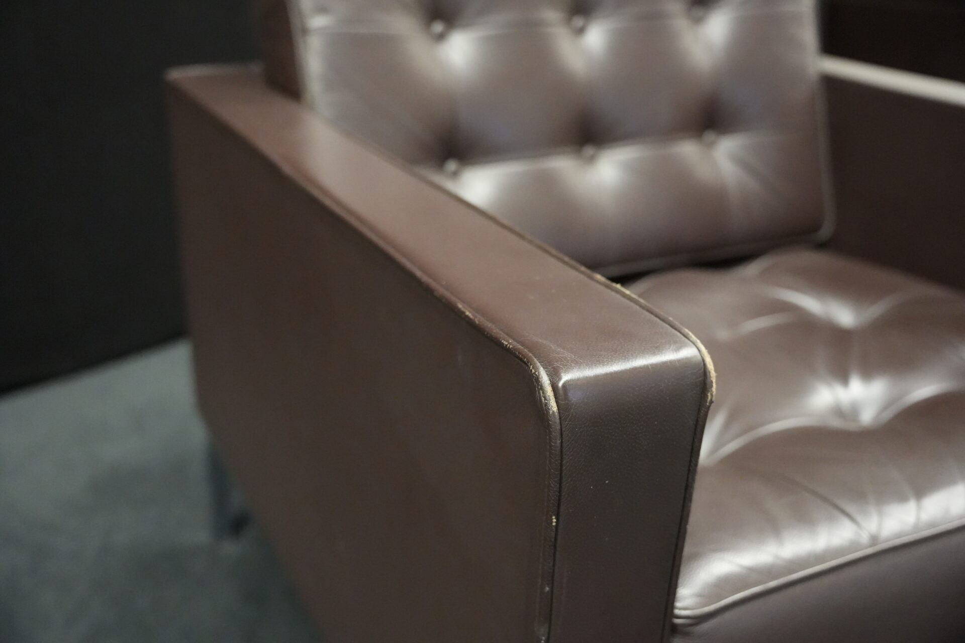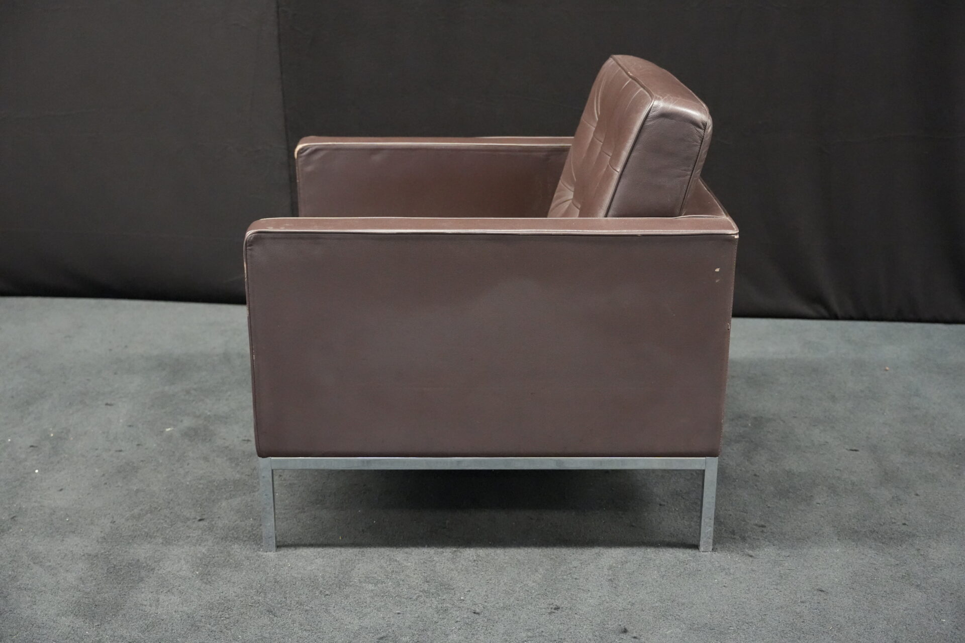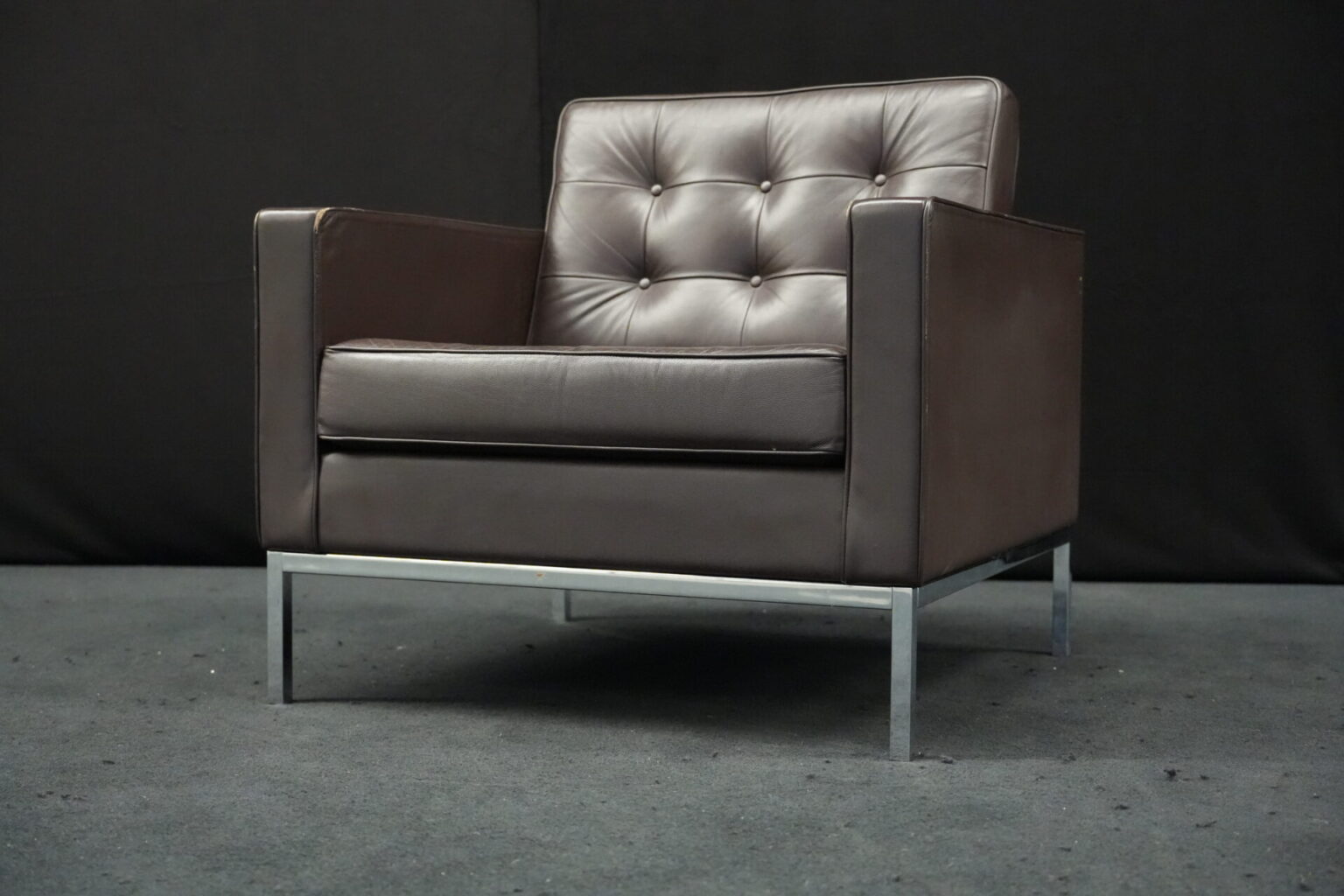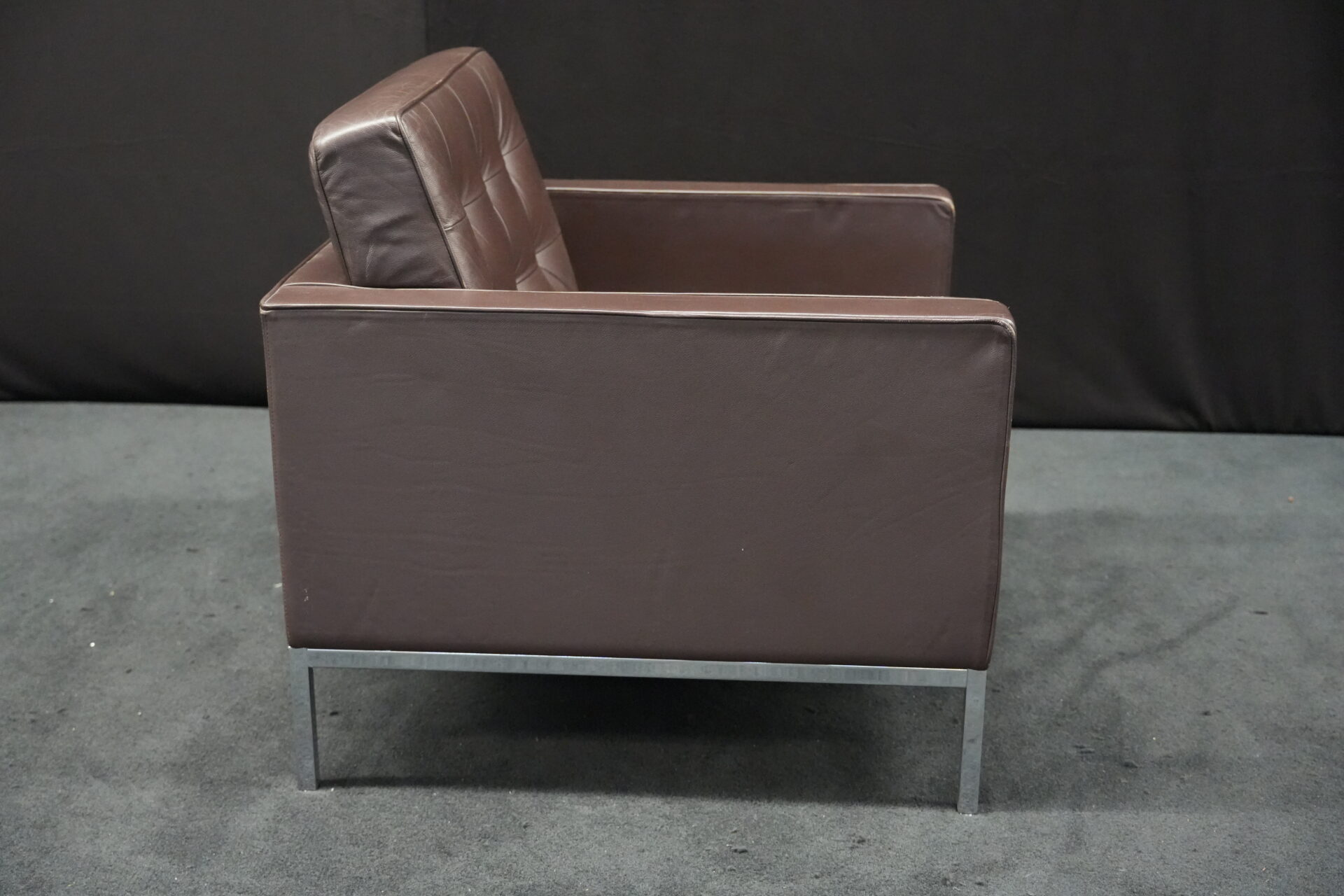 Knoll International Florence Sessel Leder / Braun | Marke: Knoll International | Gestell: strichmatt verchromt | Bezug: Leder / braun | Abmessunge: H: 81cm | SH: 40cm | B: 81cm | T: 82cm