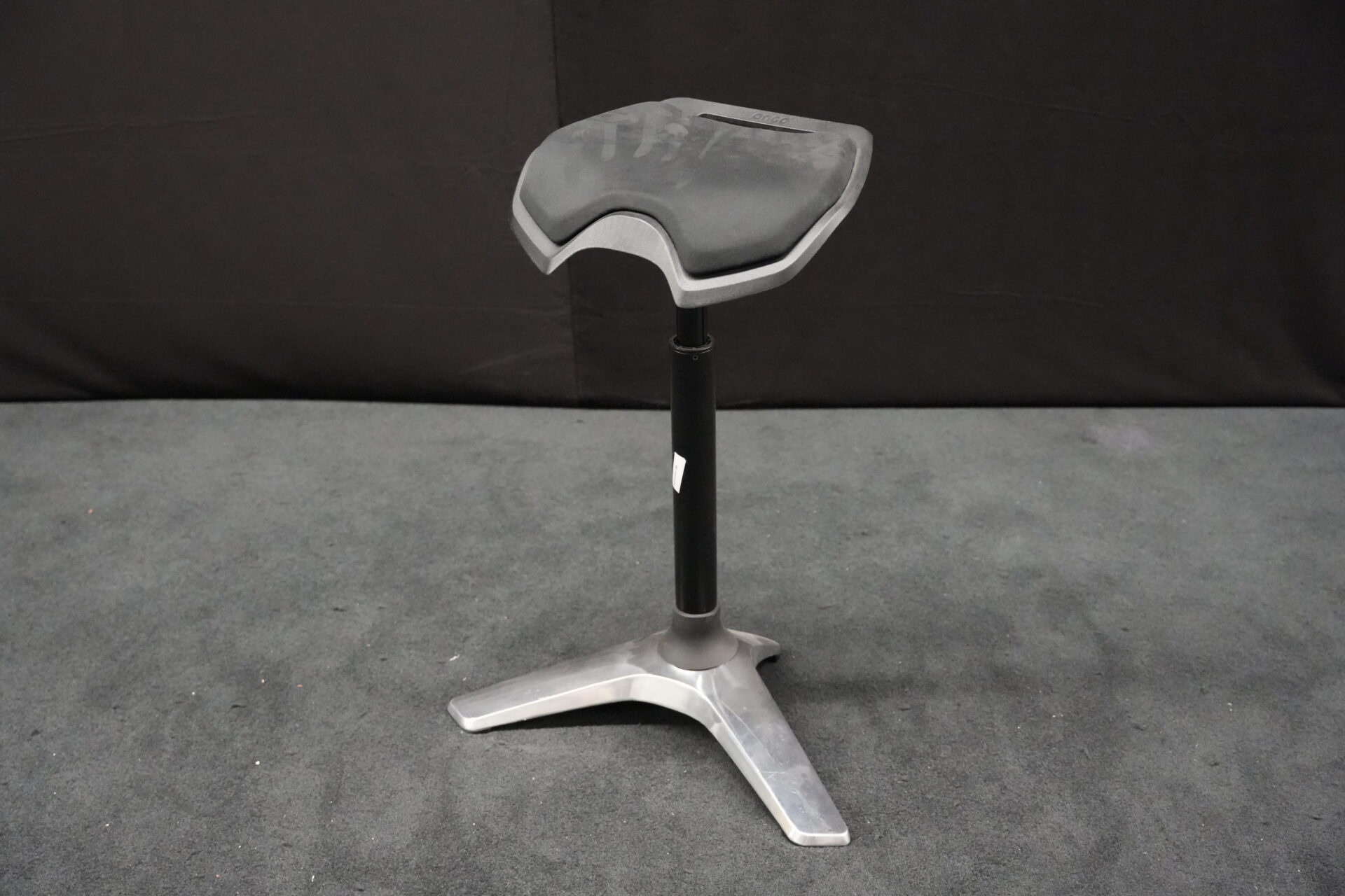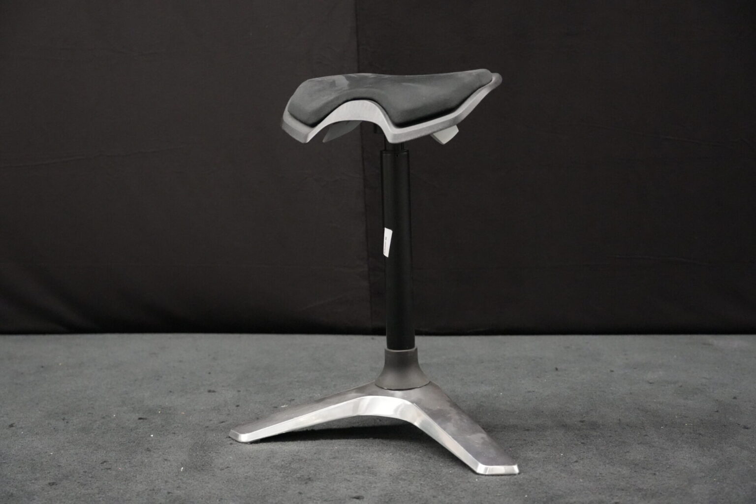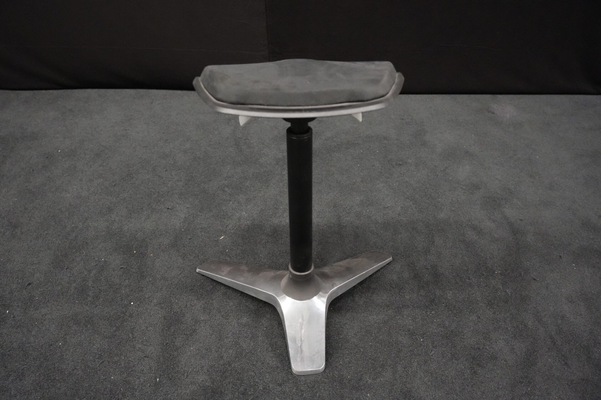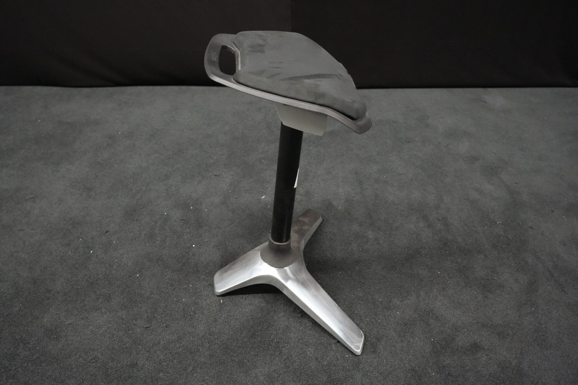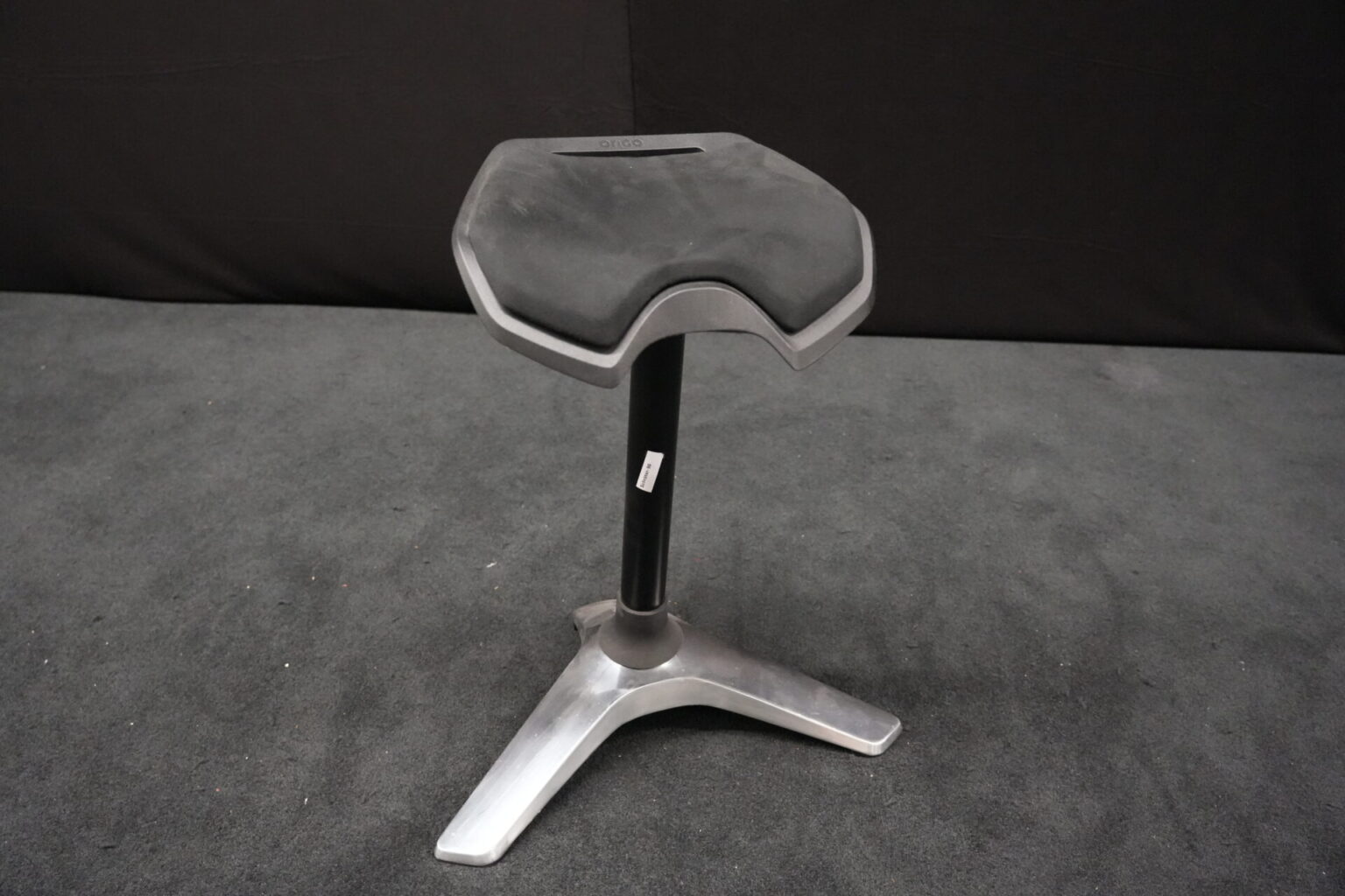 ONGO Stand mit Sattelsitz mit Polster | Marke: ONGO | Sitz: Polster in Mikrofaserviles / schwarz | Gestell: Kunststoff / schwarz | Ausstattung: dreibeiniger Fuß aus Aluminium, höhenverstellbar durch Gasdruckfeder mit automatischer Rückstellung | Abmessung: H: 61-90cm | Sitzfläche: 37x30cm