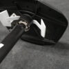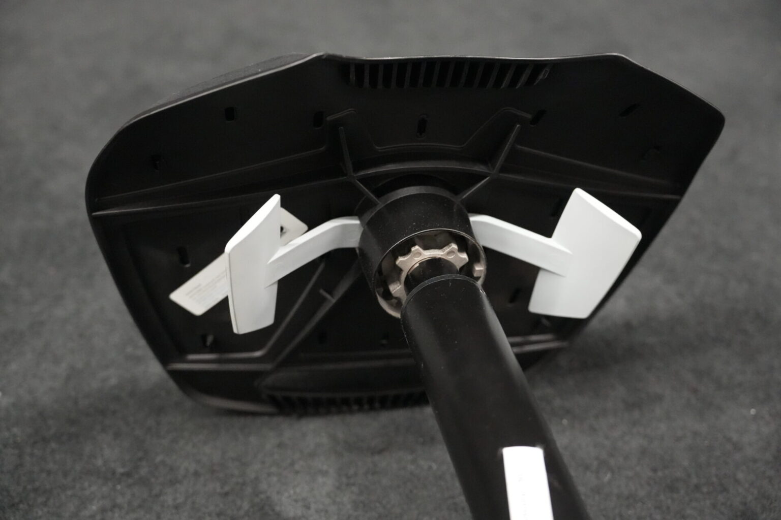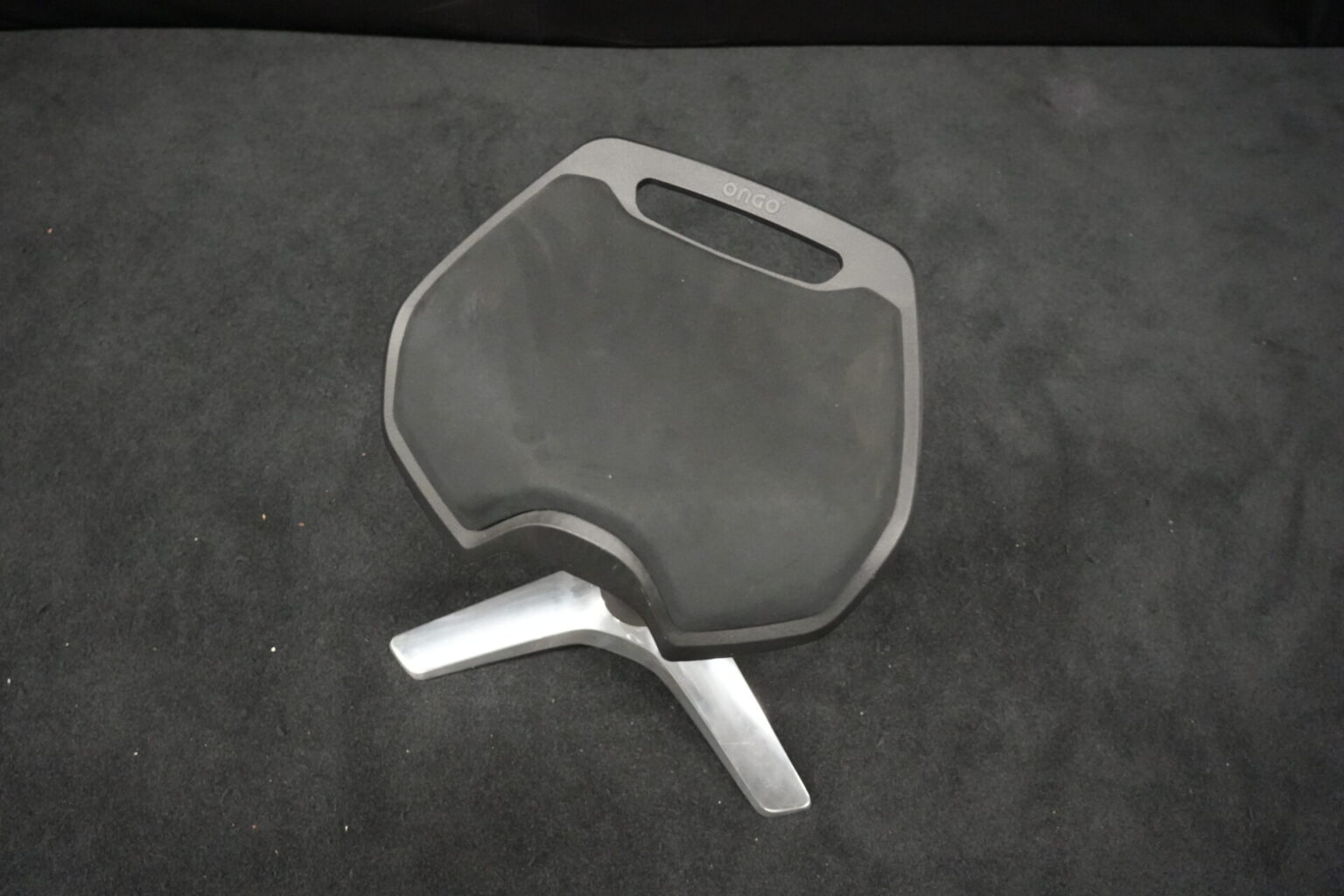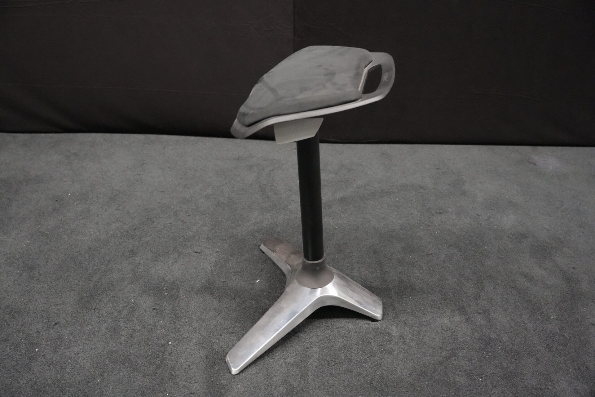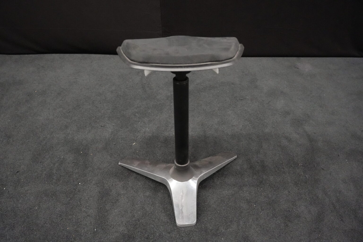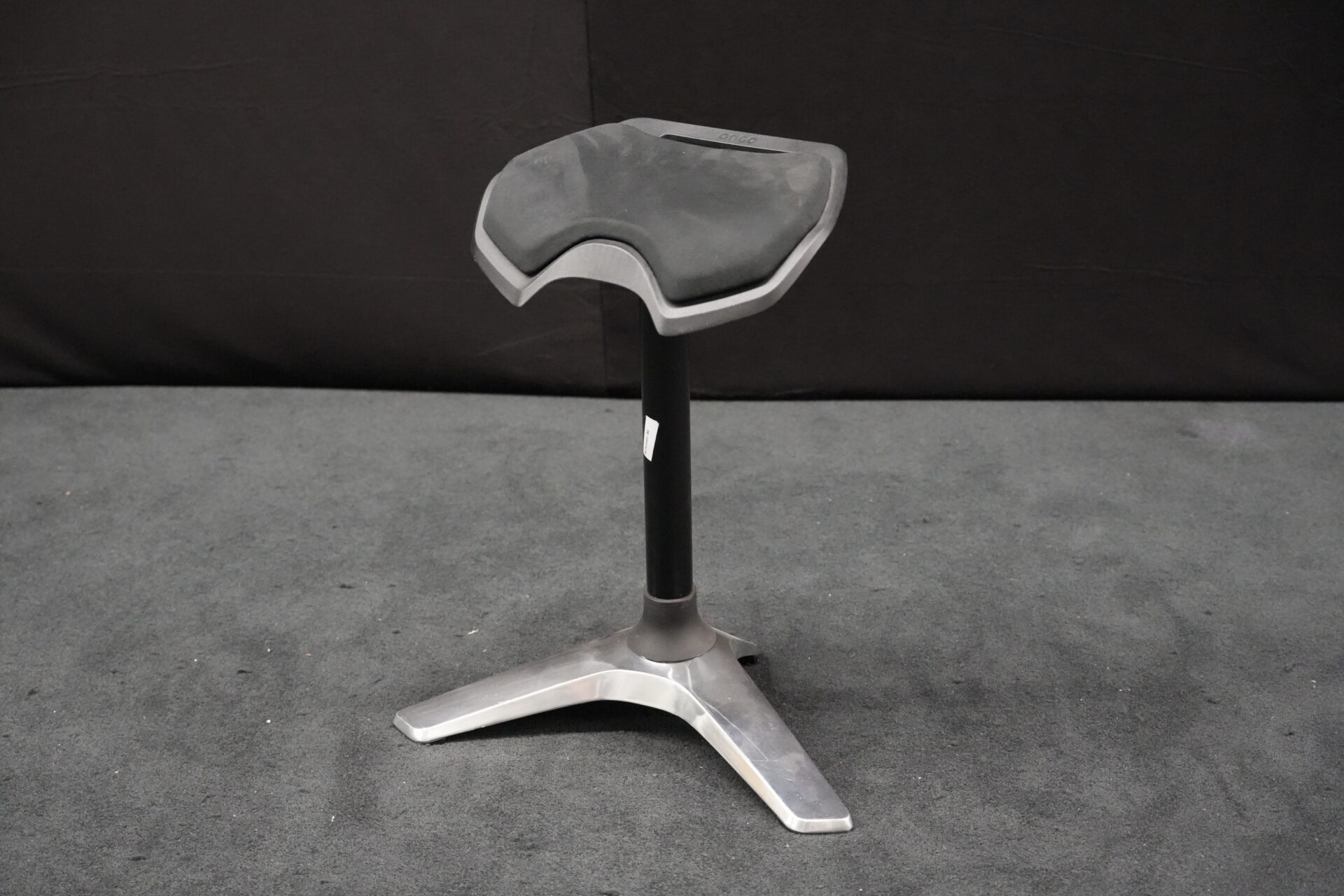 ONGO Stand mit Sattelsitz mit Polster | Marke: ONGO | Sitz: Polster in Mikrofaserviles / schwarz | Gestell: Kunststoff / schwarz | Ausstattung: dreibeiniger Fuß aus Aluminium, höhenverstellbar durch Gasdruckfeder mit automatischer Rückstellung | Abmessung: H: 61-90cm | Sitzfläche: 37x30cm