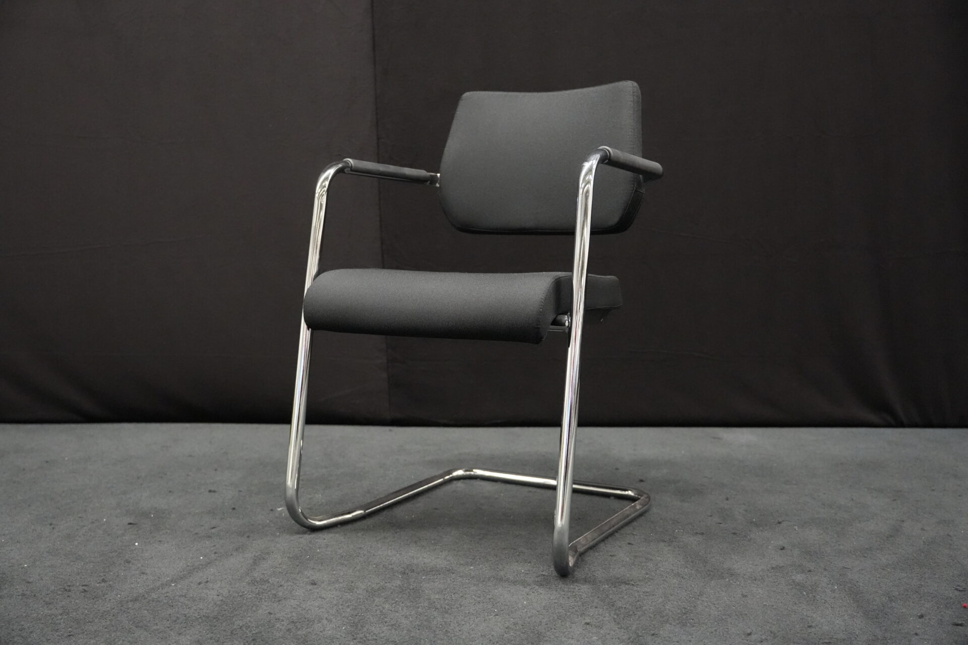 Sedia Verde Besucher- und Konferenzstuhl Slide – Chrom | Marke: Sedia Verde | Bezug Stoff / schwarz | Gestell: Chrom | Abmessungen: H: 85cm | SH: 48cm | B: 60cm | T: 60cm
