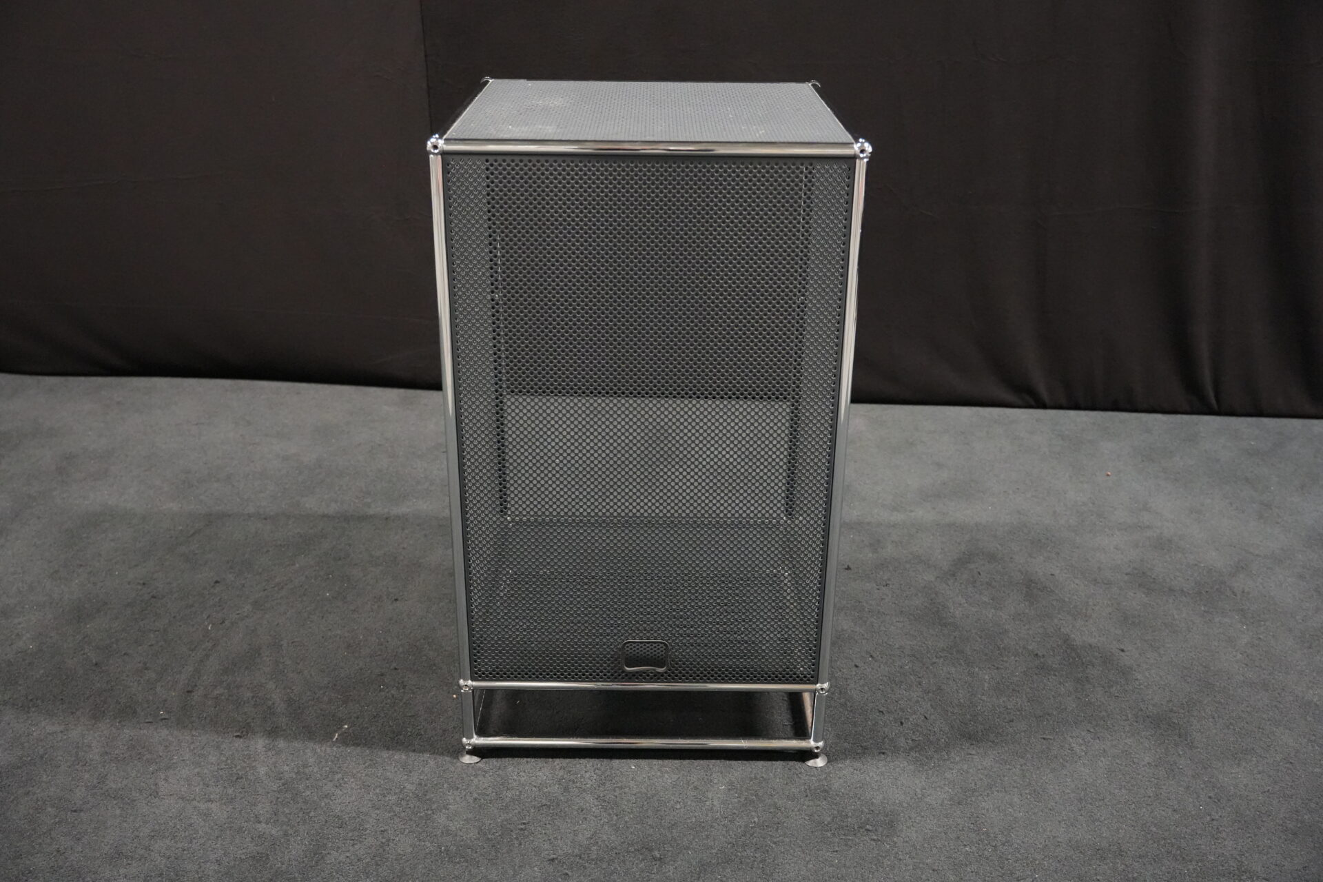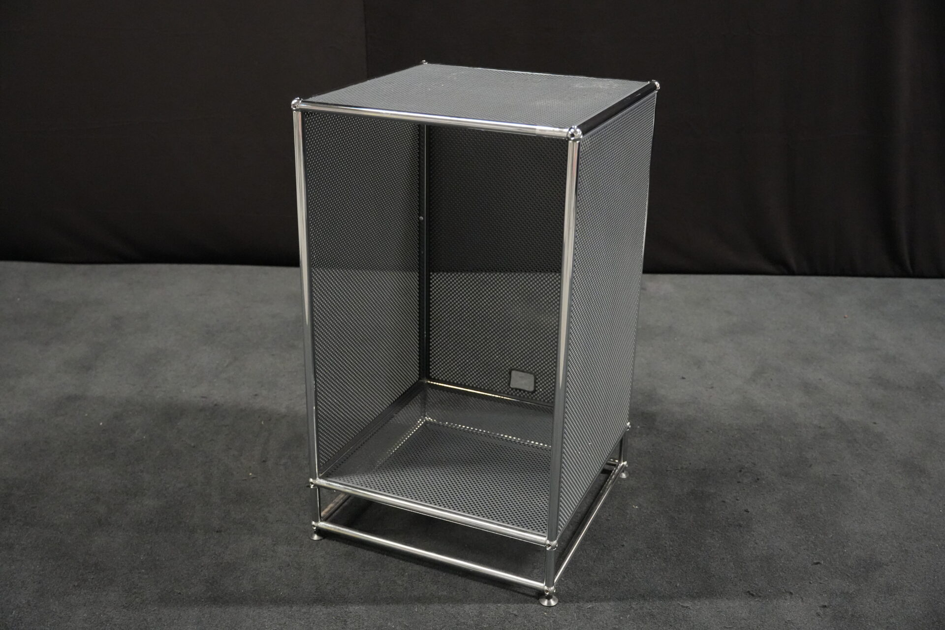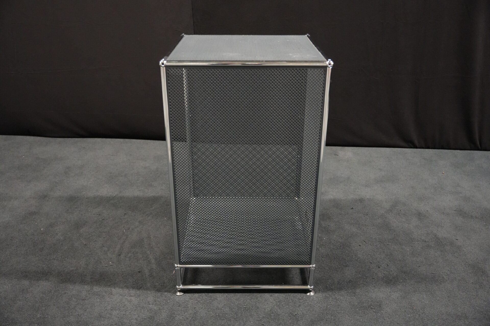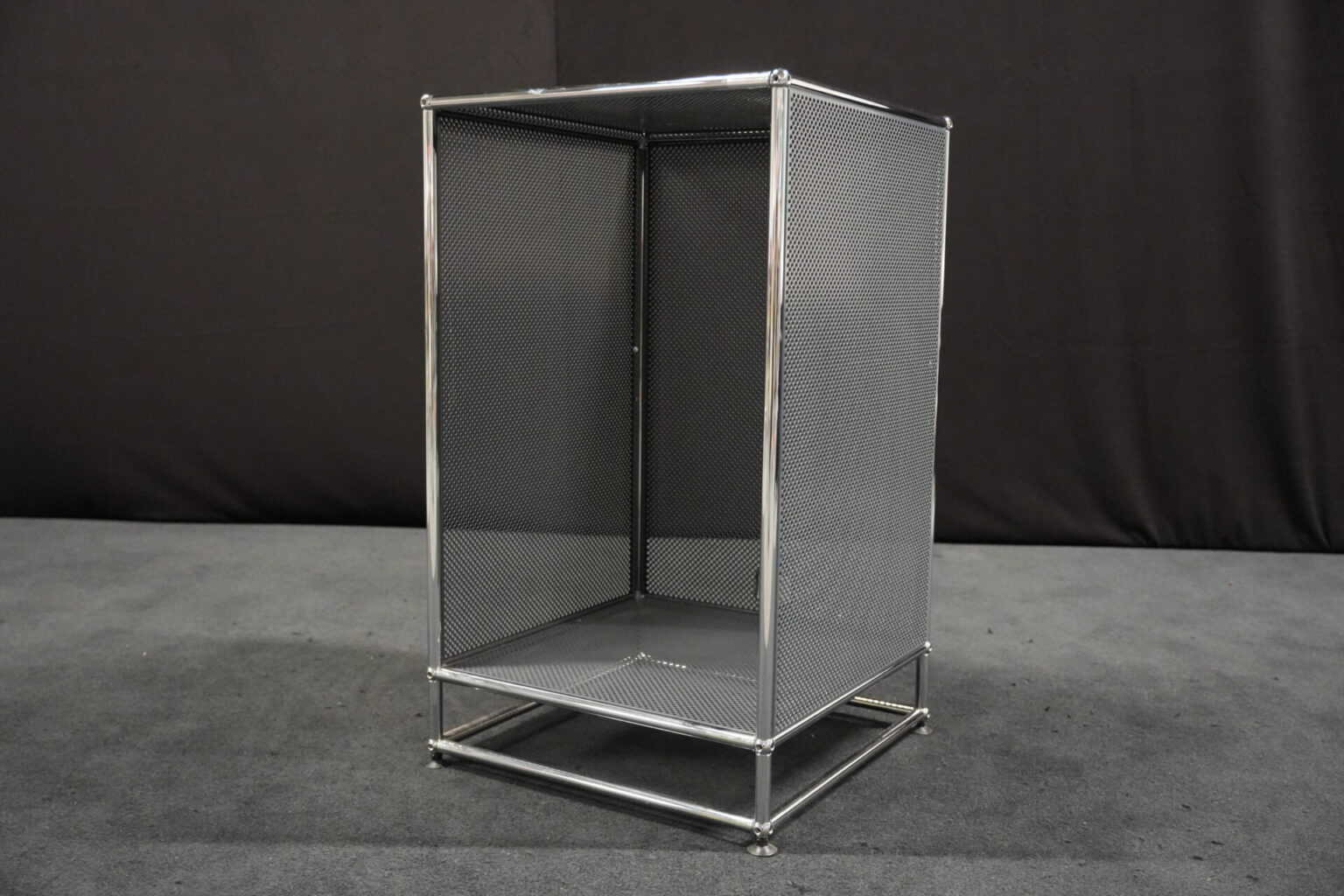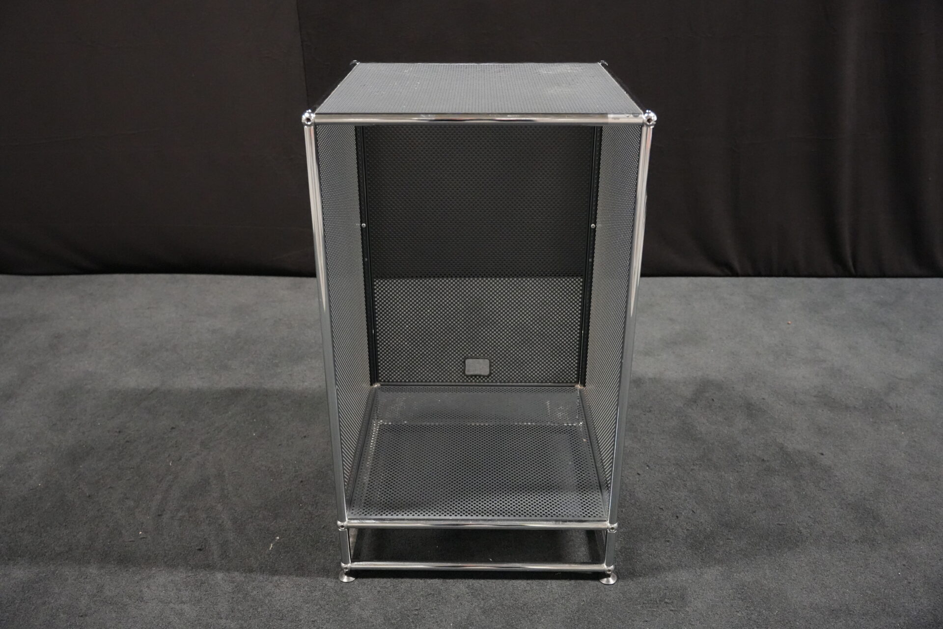 USM Haller Regal mit perfortiertem Blech in Anthrazitgrau RAL 7016 |Marke: USM Haller | Gestell: verchromt | Aufbau: von einer Seite geöffnet | Abmessungen: H: 90cm | B: 50cm | T: 50cm
