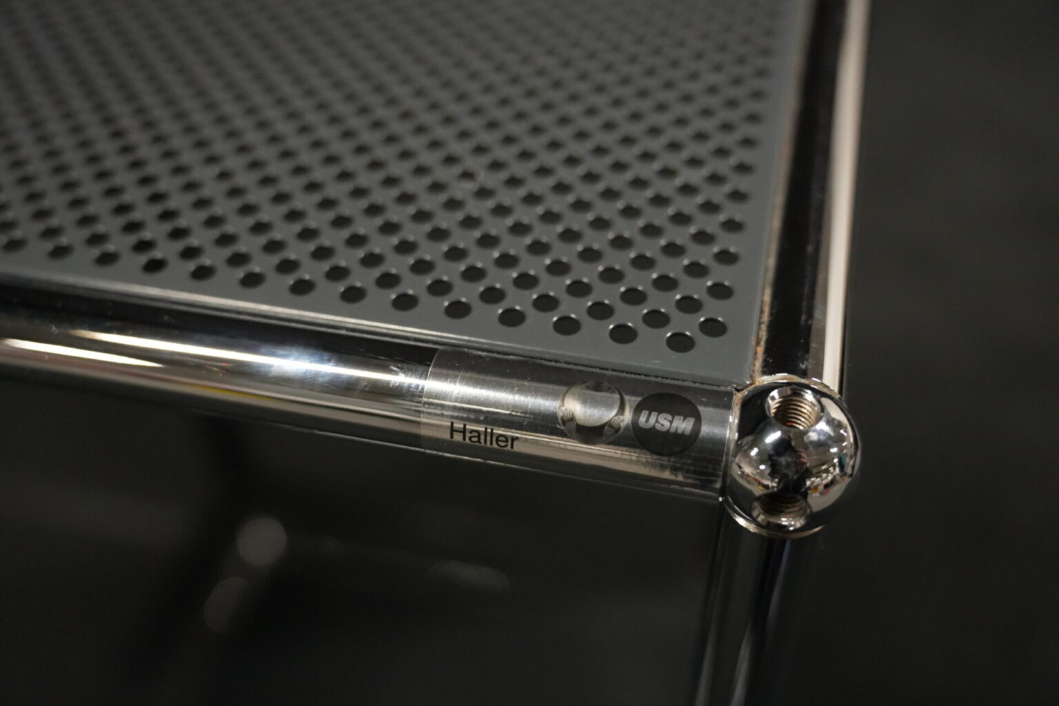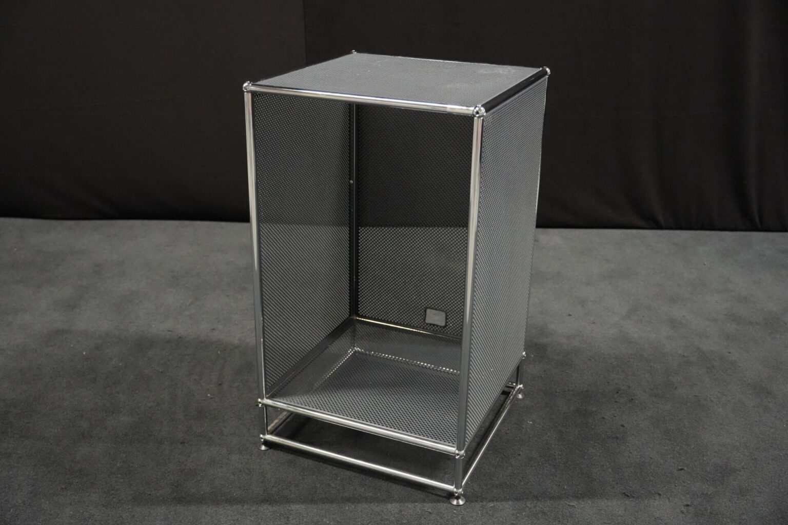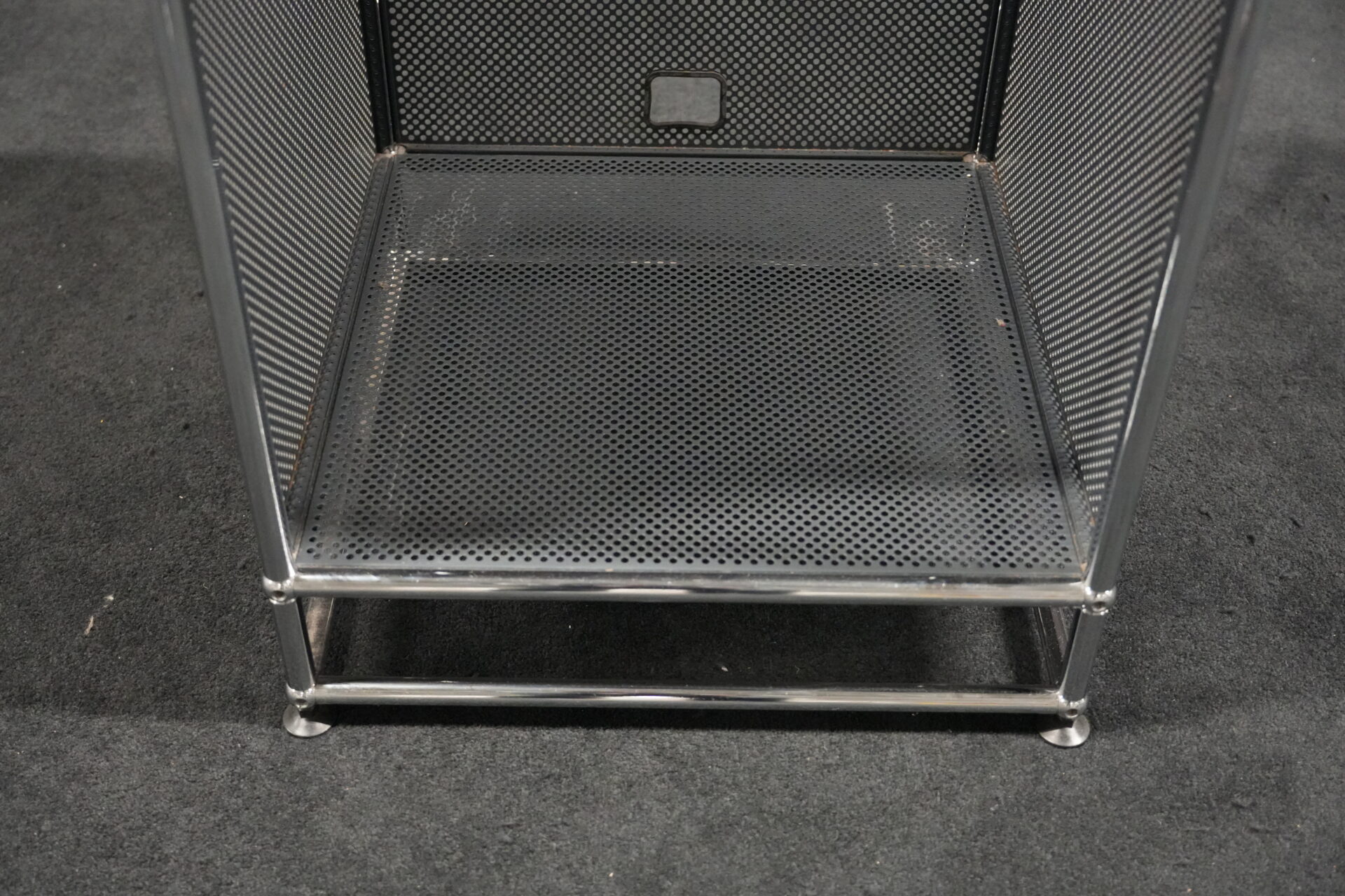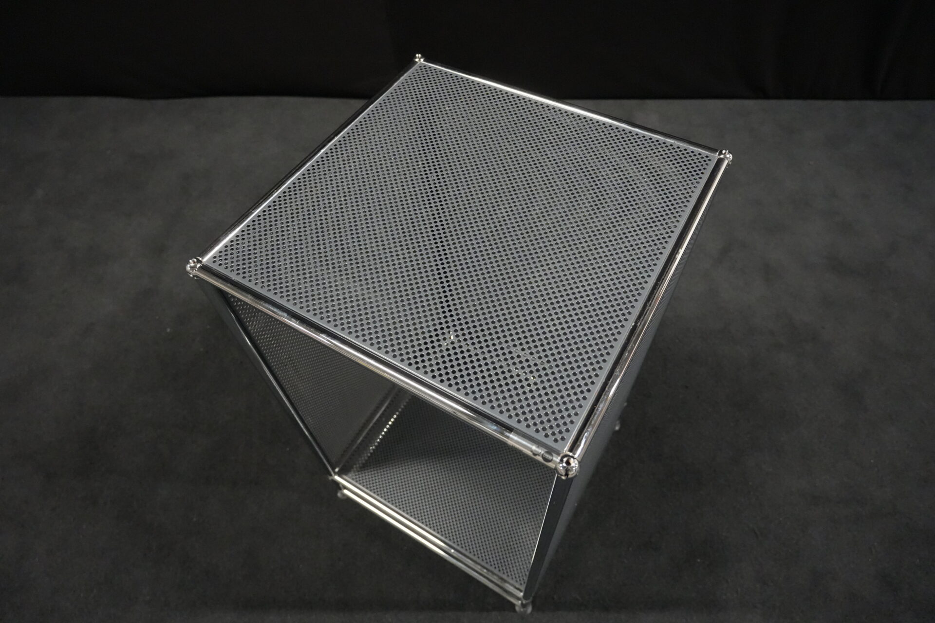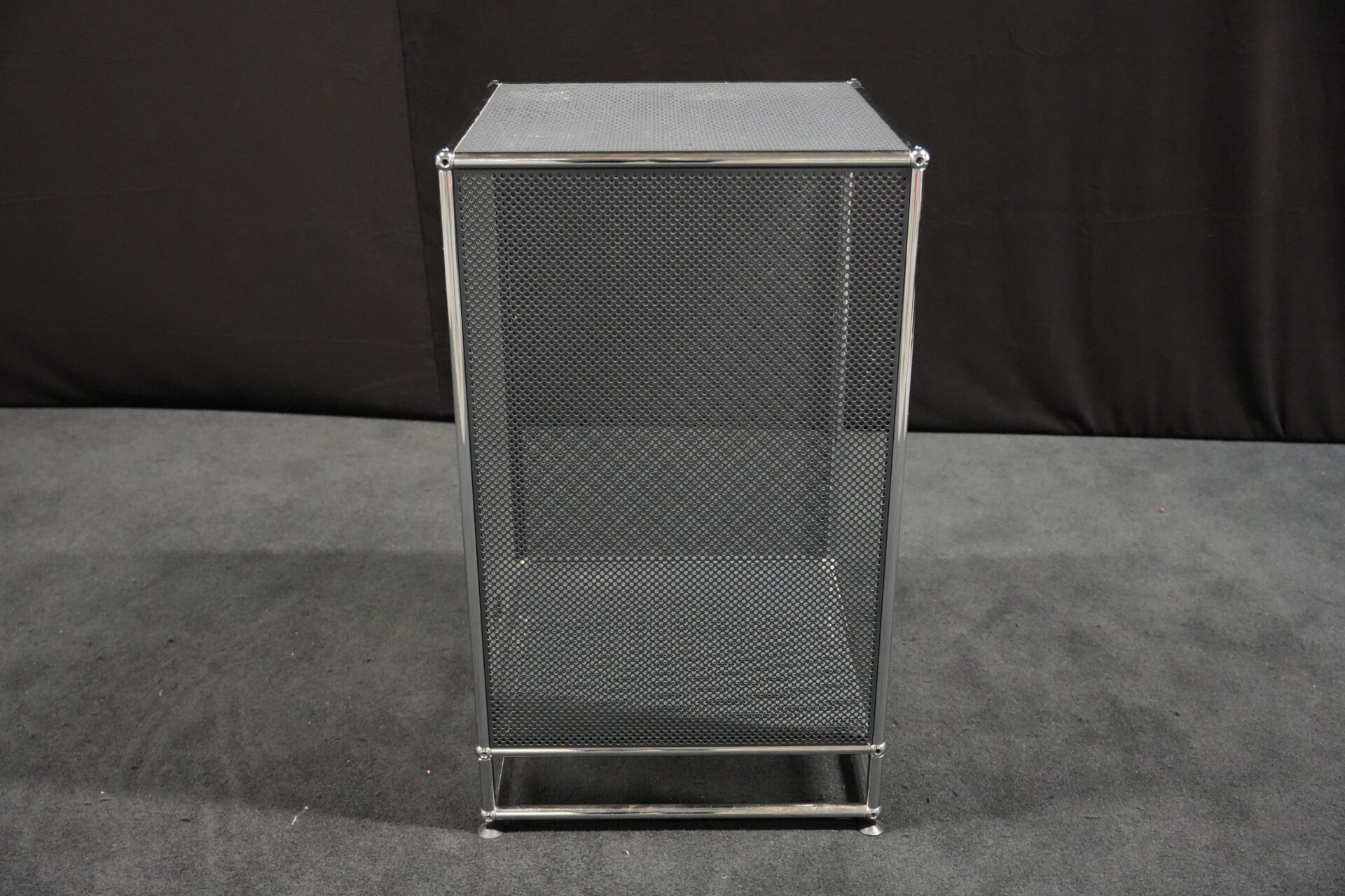 USM Haller Regal mit perfortiertem Blech in Anthrazitgrau RAL 7016 |Marke: USM Haller | Gestell: verchromt | Aufbau: von einer Seite geöffnet | Abmessungen: H: 90cm | B: 50cm | T: 50cm