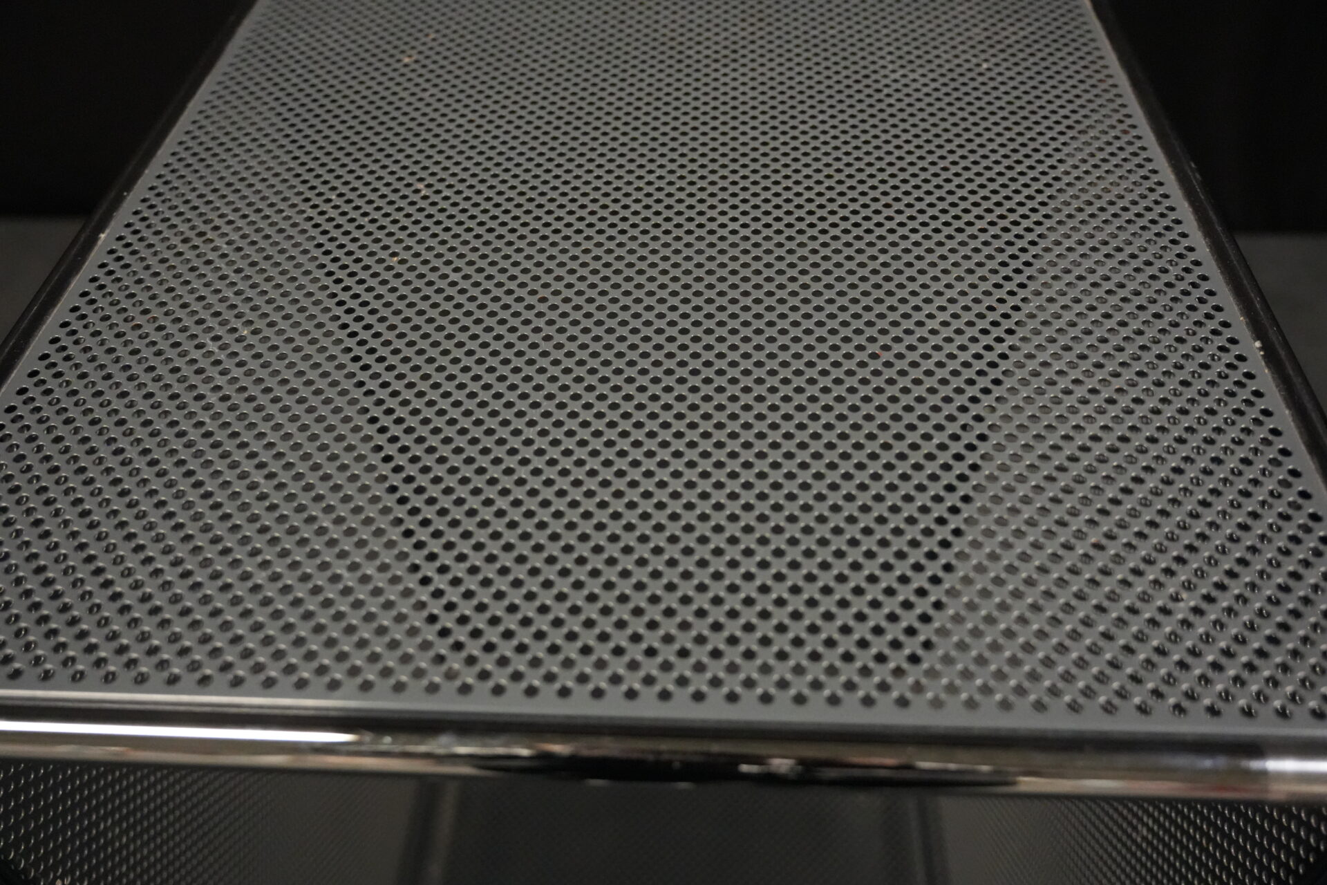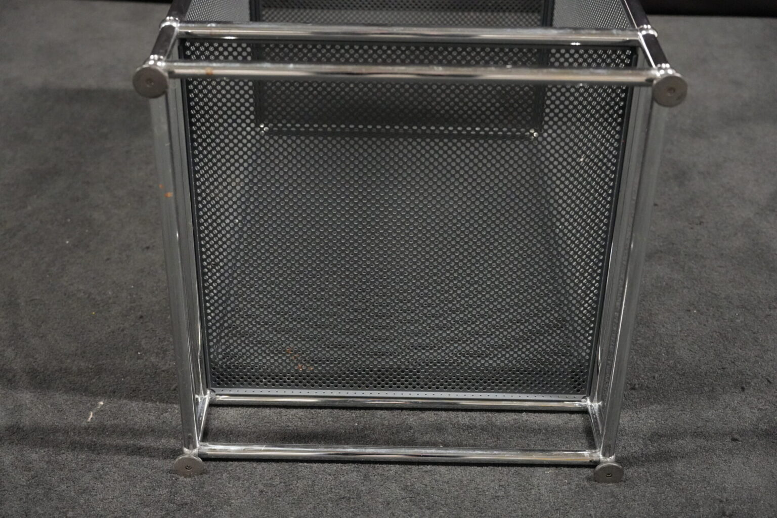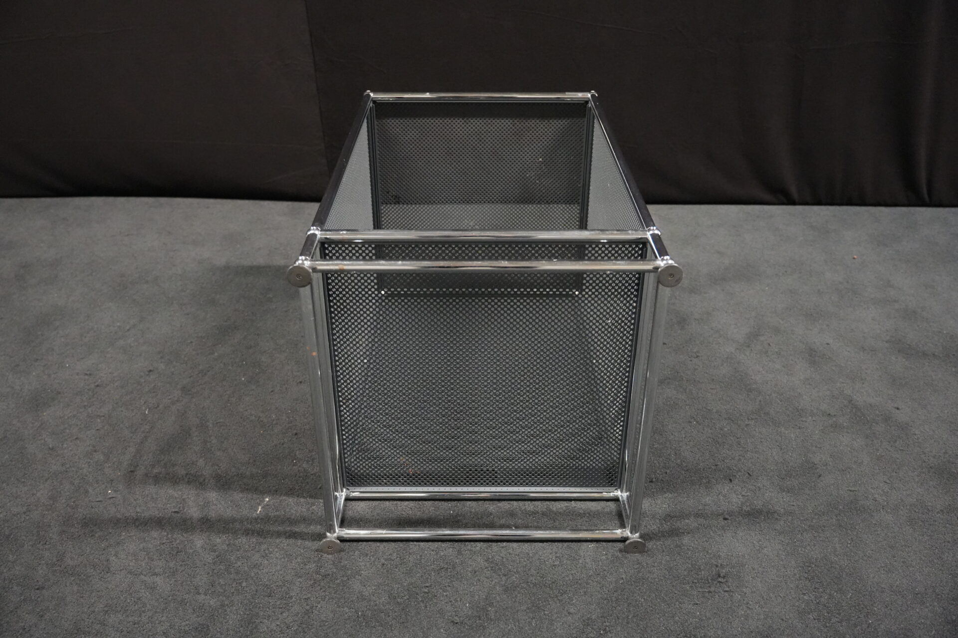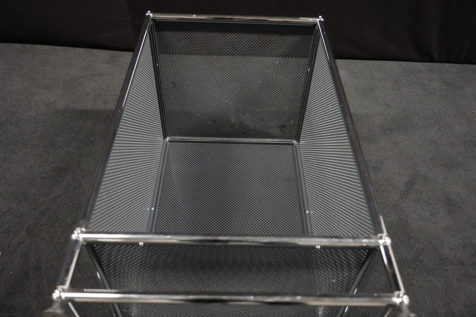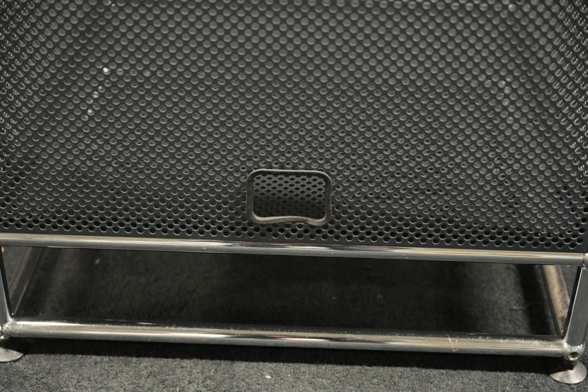 USM Haller Regal mit perfortiertem Blech in Anthrazitgrau RAL 7016 |Marke: USM Haller | Gestell: verchromt | Aufbau: von einer Seite geöffnet | Abmessungen: H: 90cm | B: 50cm | T: 50cm