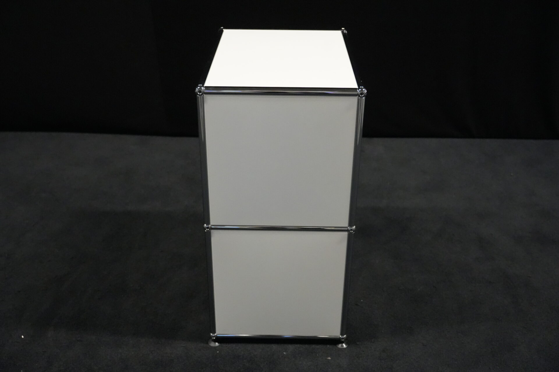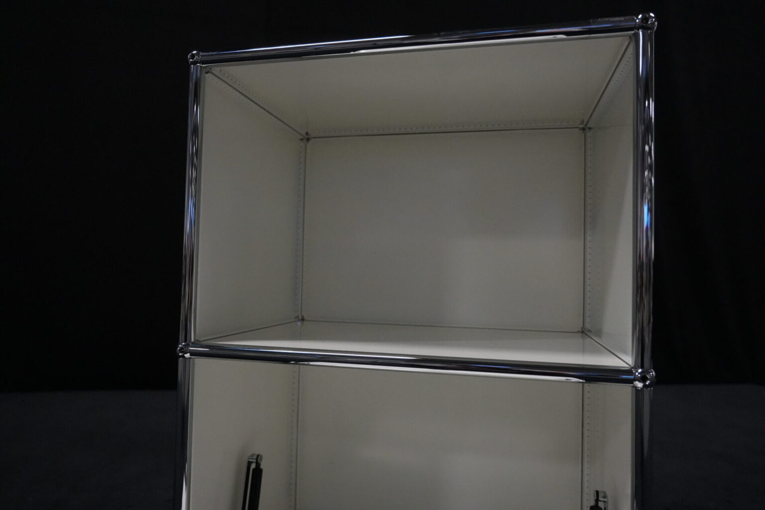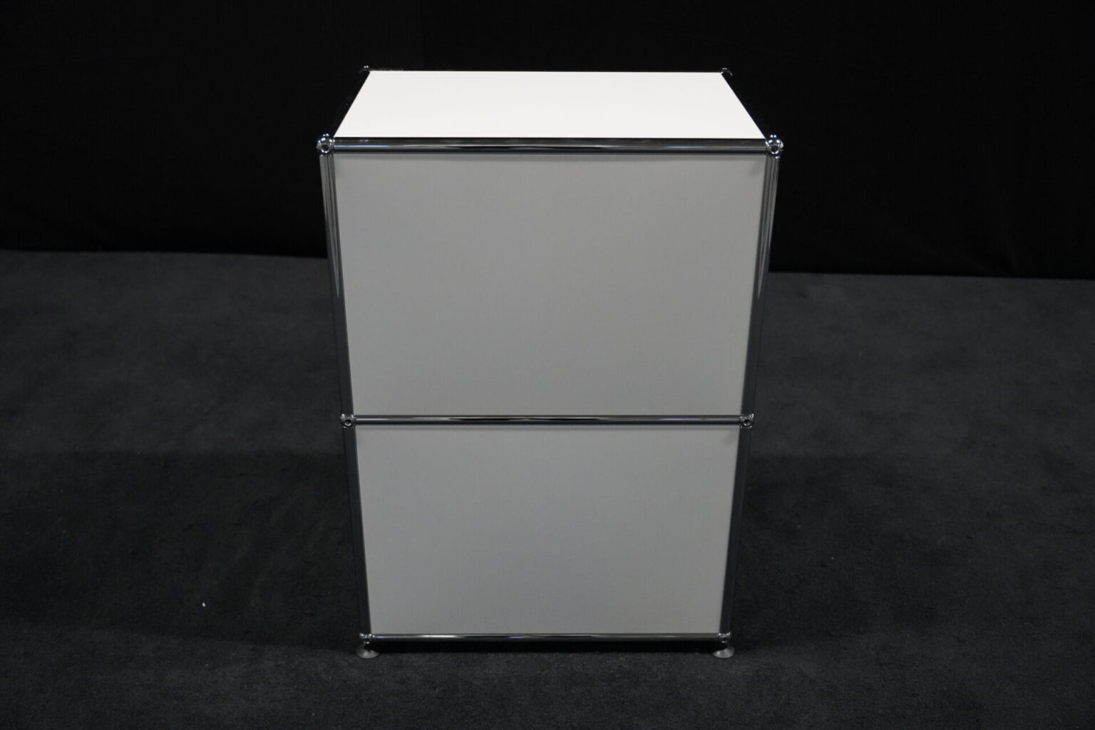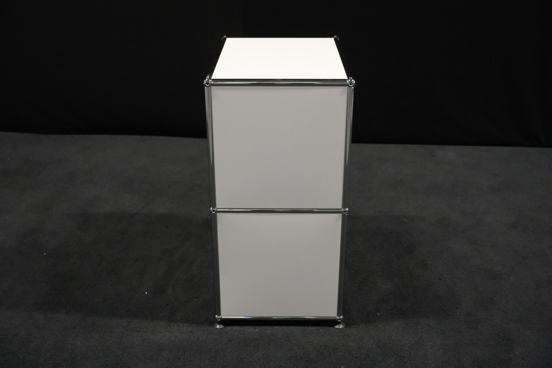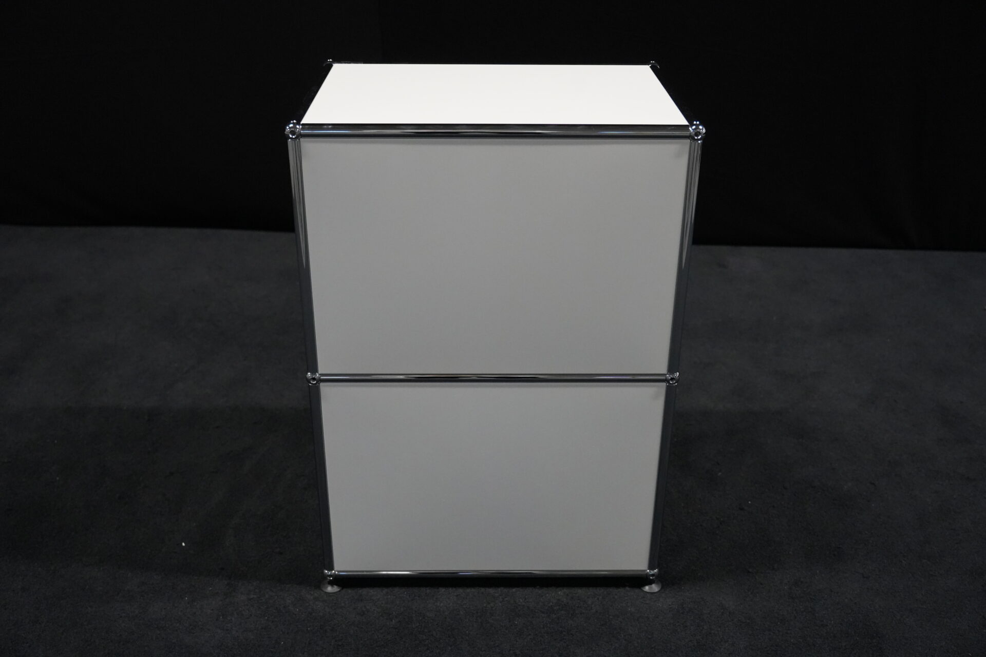USM Haller Sideboard Reinweiß RAL 9010 mit 2 Fächern und 1x Klapptür (unten) | Marke: USM Haller | Farbe: Reinweiß | Ausstattung: eine Klapptür (unten), Nivelierfüße 4x | Abmessung: H: 74cm | B: 50cm | 35cm
