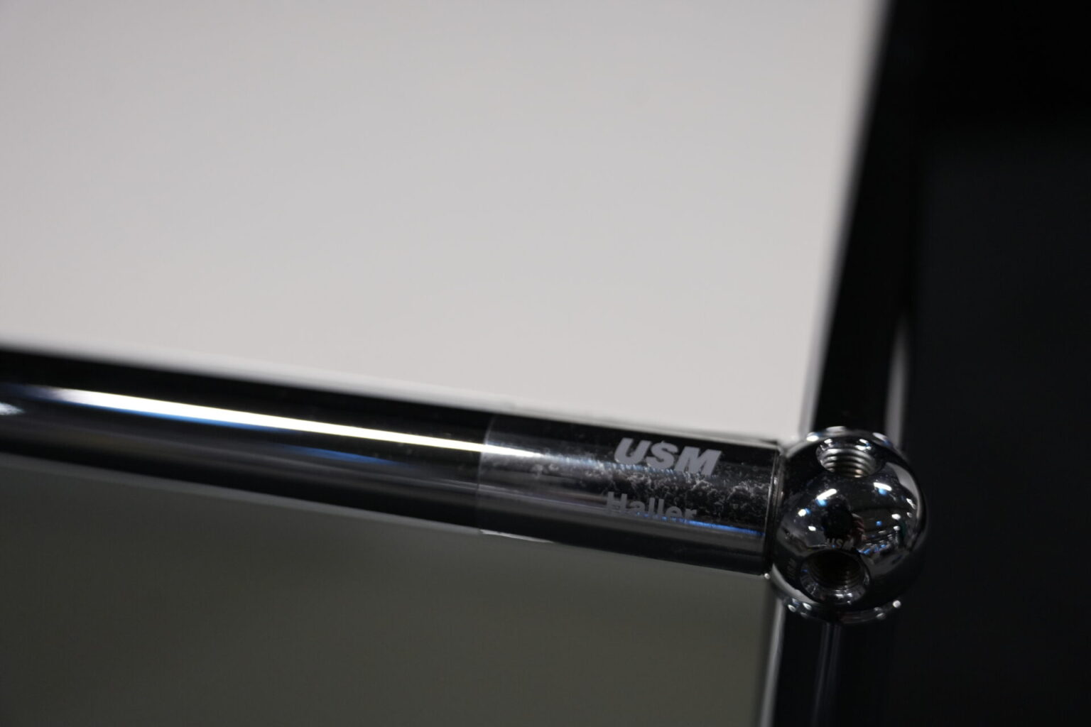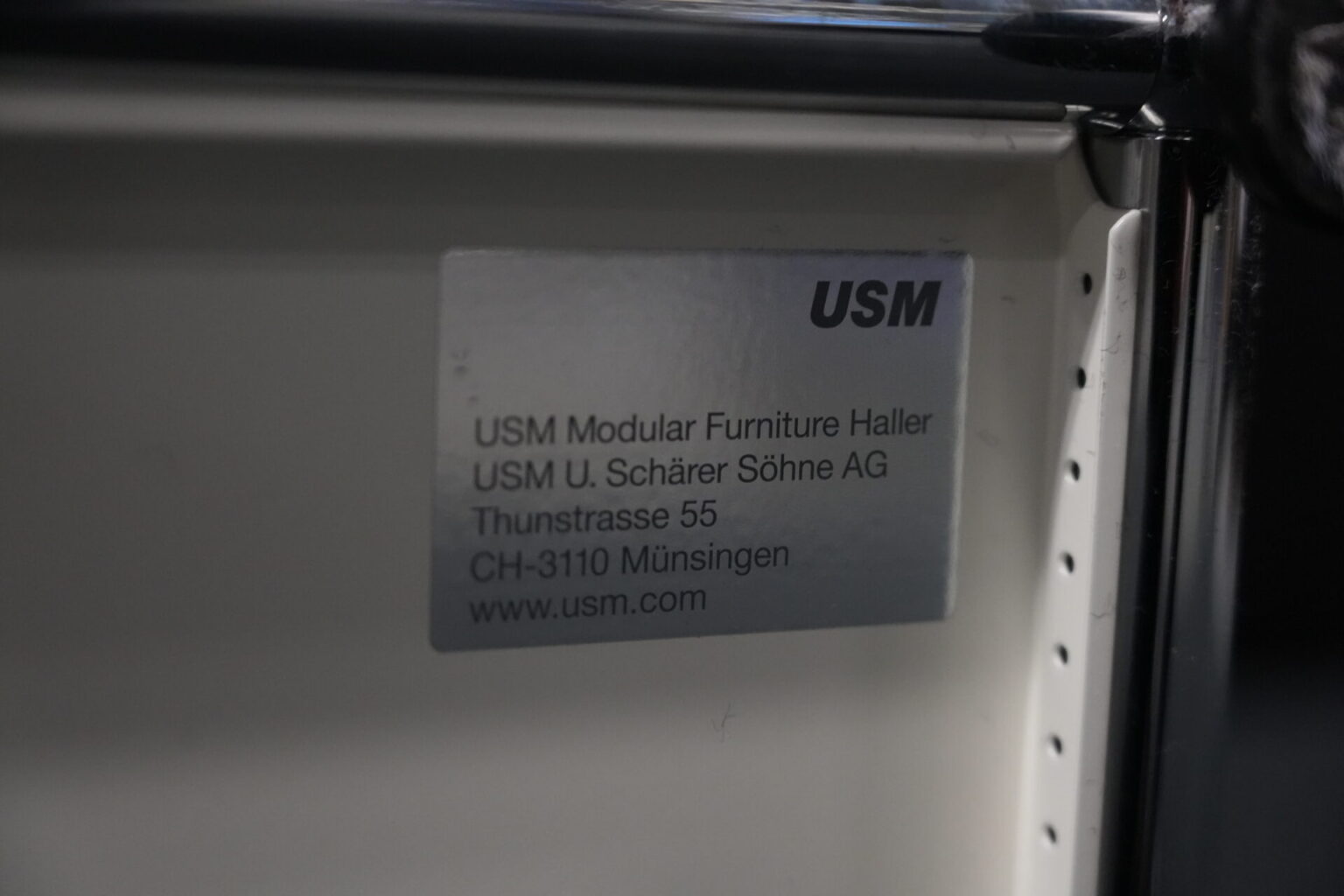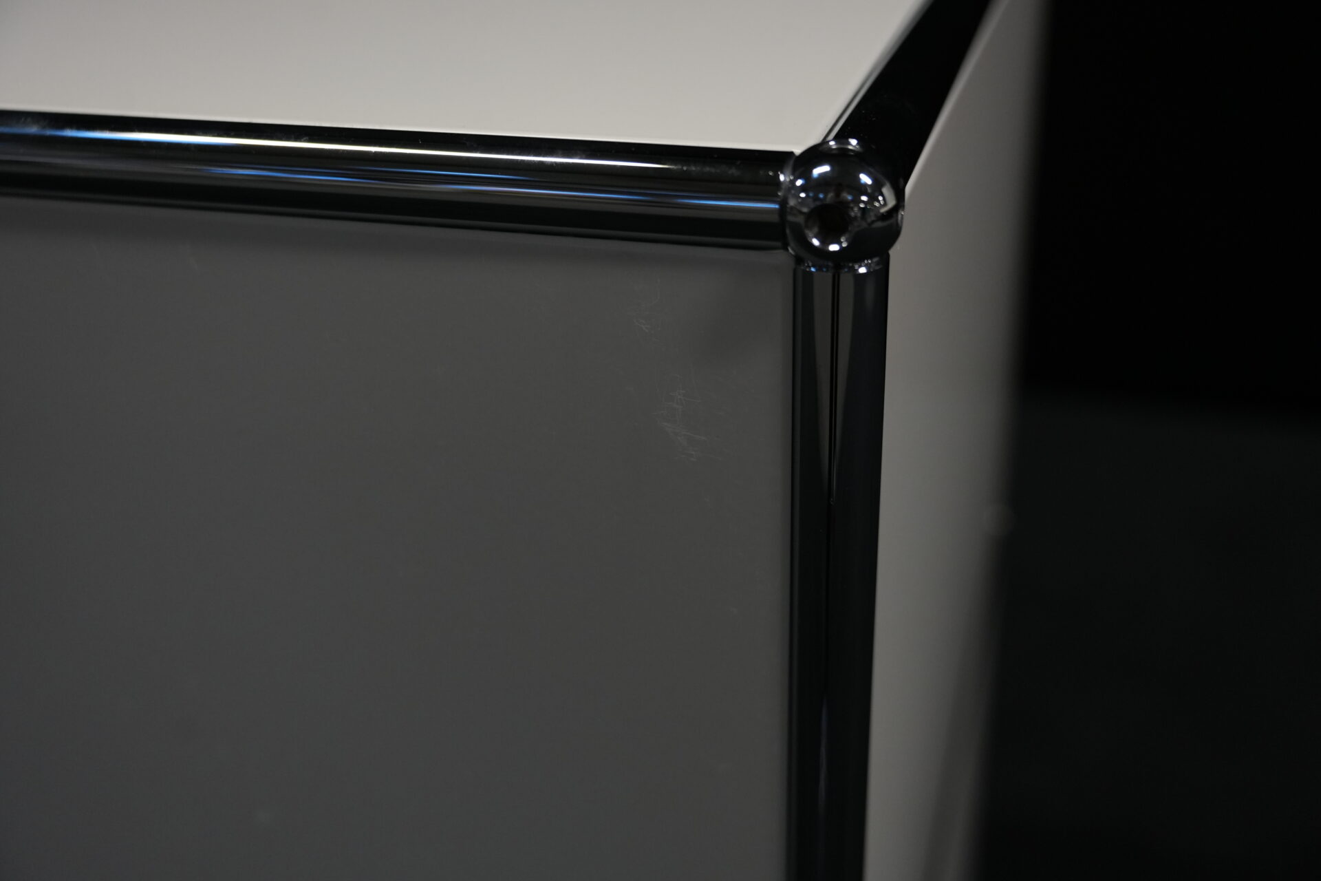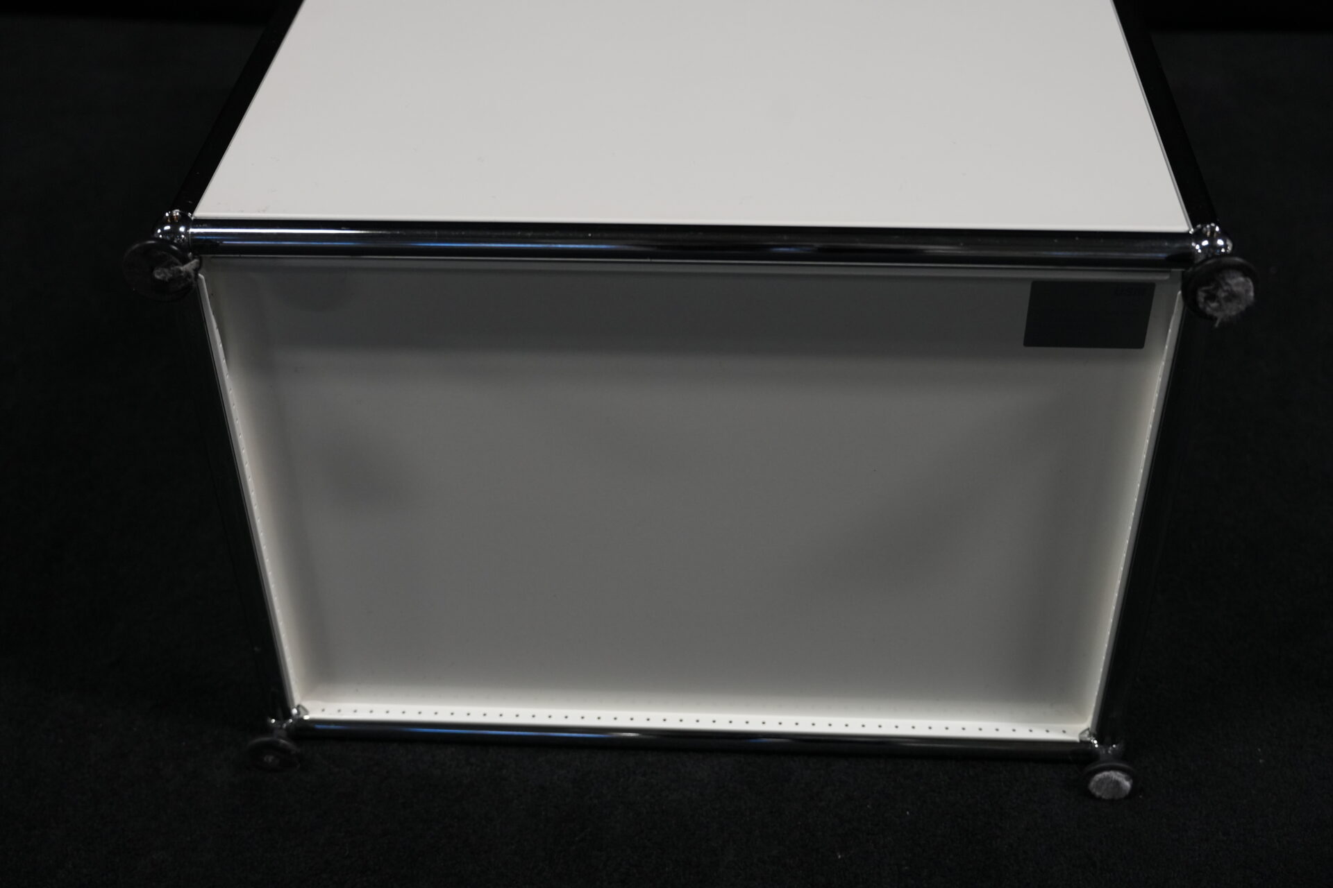 USM Haller Sideboard Reinweiß RAL 9010 mit 2 Fächern und 1x Klapptür (unten) | Marke: USM Haller | Farbe: Reinweiß | Ausstattung: eine Klapptür (unten), Nivelierfüße 4x | Abmessung: H: 74cm | B: 50cm | 35cm