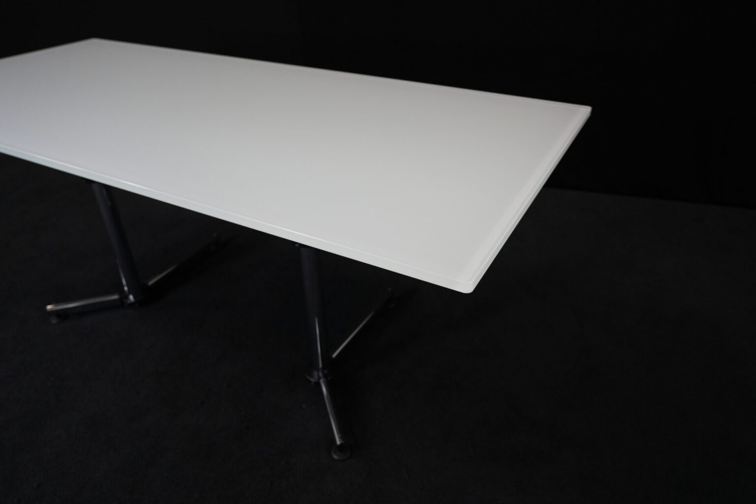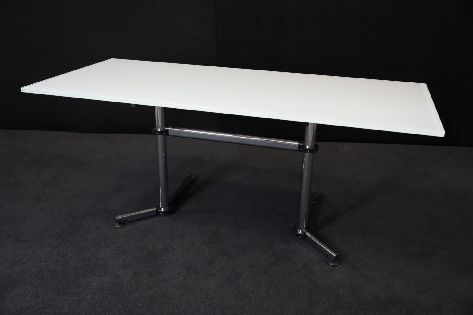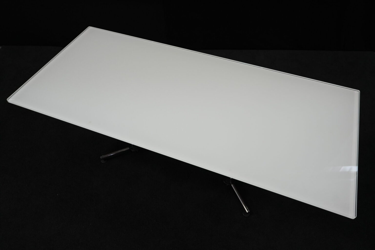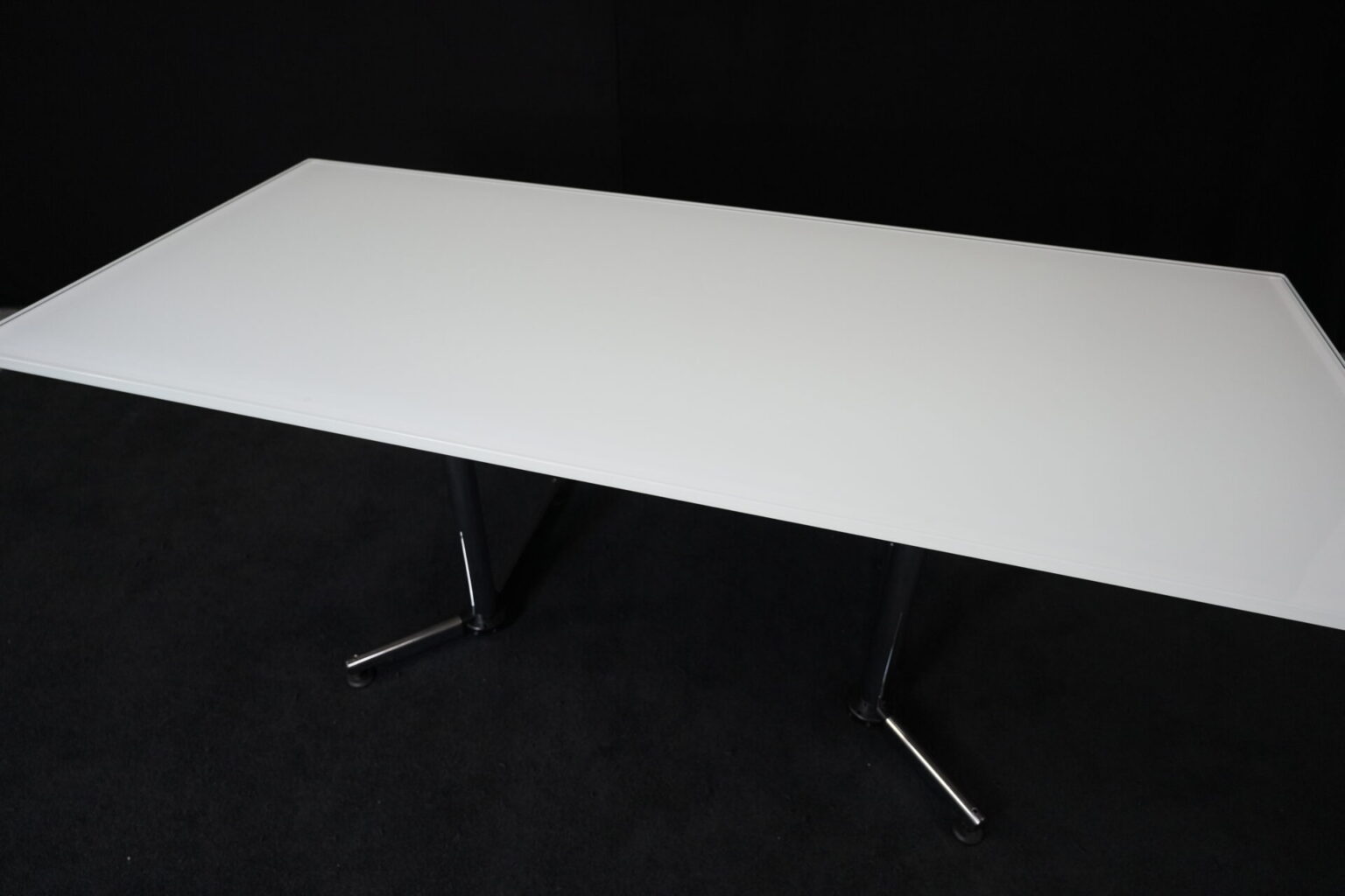 USM Kitos Schreibtisch / Konferenztisch Glas / weiß | Marke: USM Kitos | Tischplatte: Glas | weiß | Gestell: verchromt (nicht demontierbar) | Abmessungen: H: 74cm | B: 180cm | T: 80 cm
