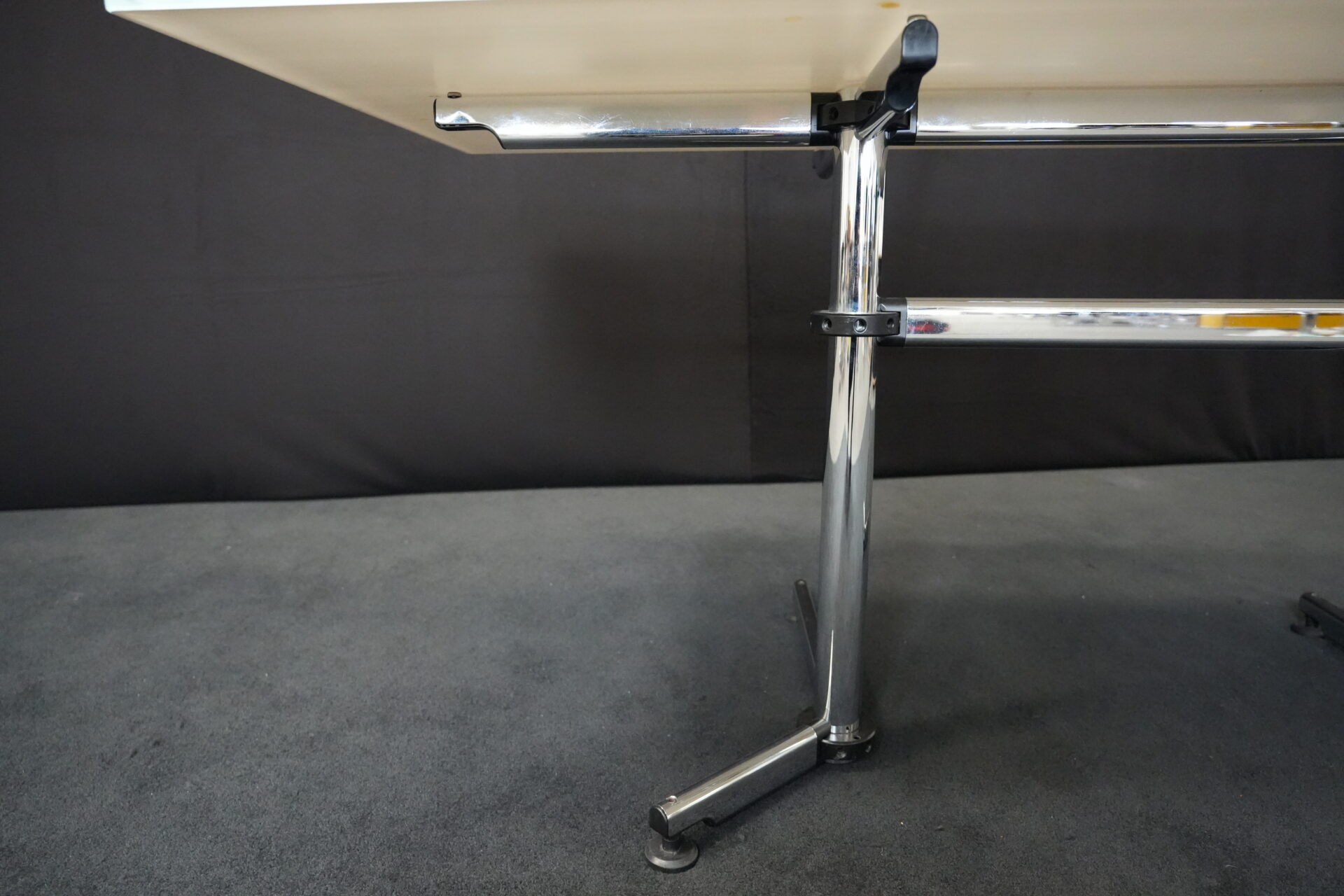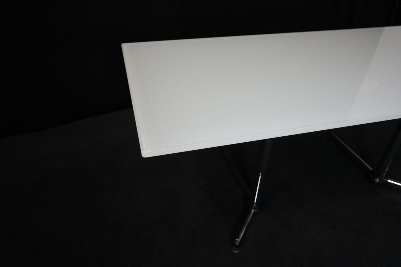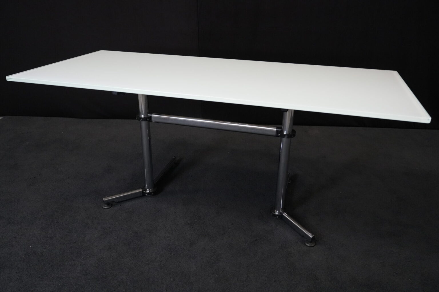 USM Kitos Schreibtisch / Konferenztisch Glas / weiß | Marke: USM Kitos | Tischplatte: Glas | weiß | Gestell: verchromt (nicht demontierbar) | Abmessungen: H: 74cm | B: 180cm | T: 80 cm