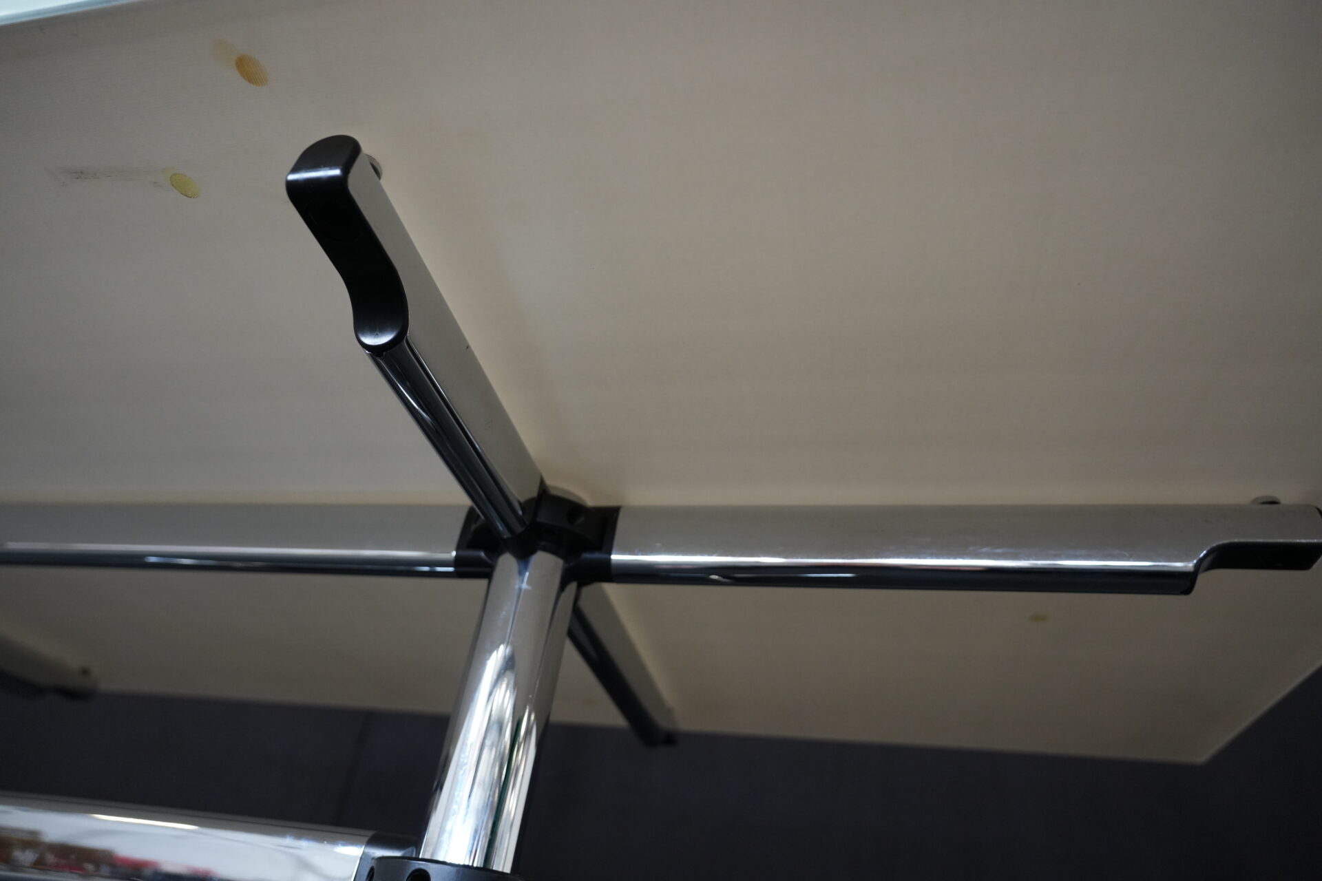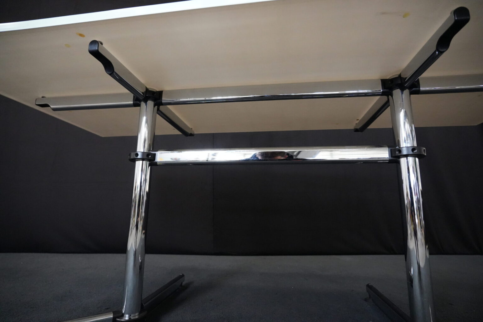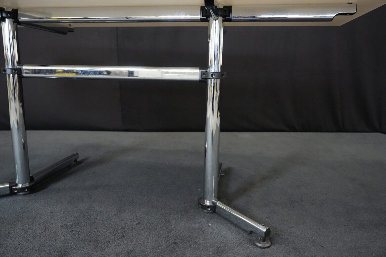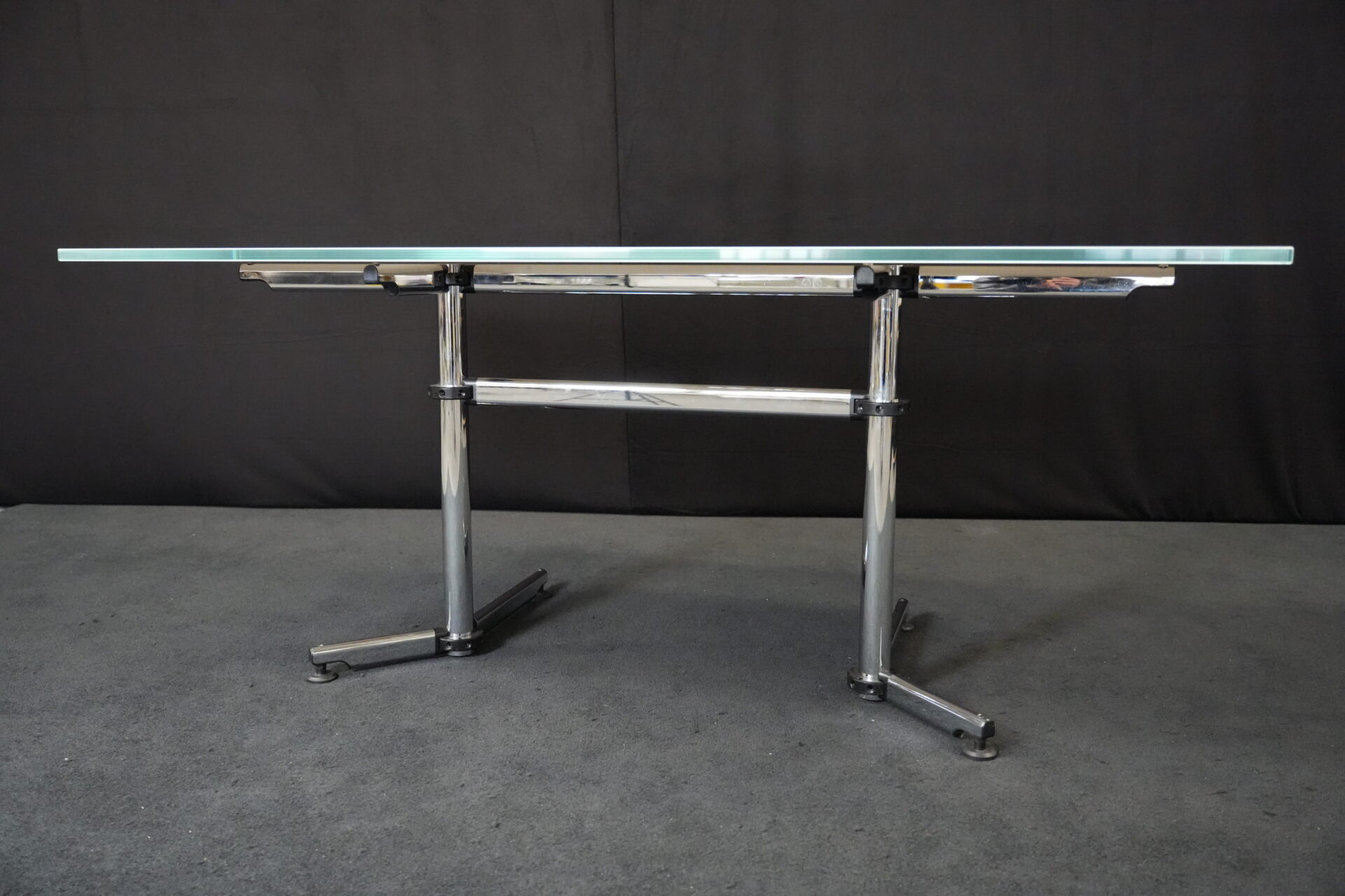 USM Kitos Schreibtisch / Konferenztisch Glas / weiß | Marke: USM Kitos | Tischplatte: Glas | weiß | Gestell: verchromt (nicht demontierbar) | Abmessungen: H: 74cm | B: 180cm | T: 80 cm