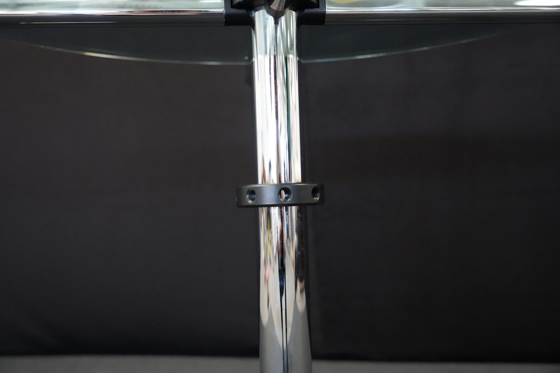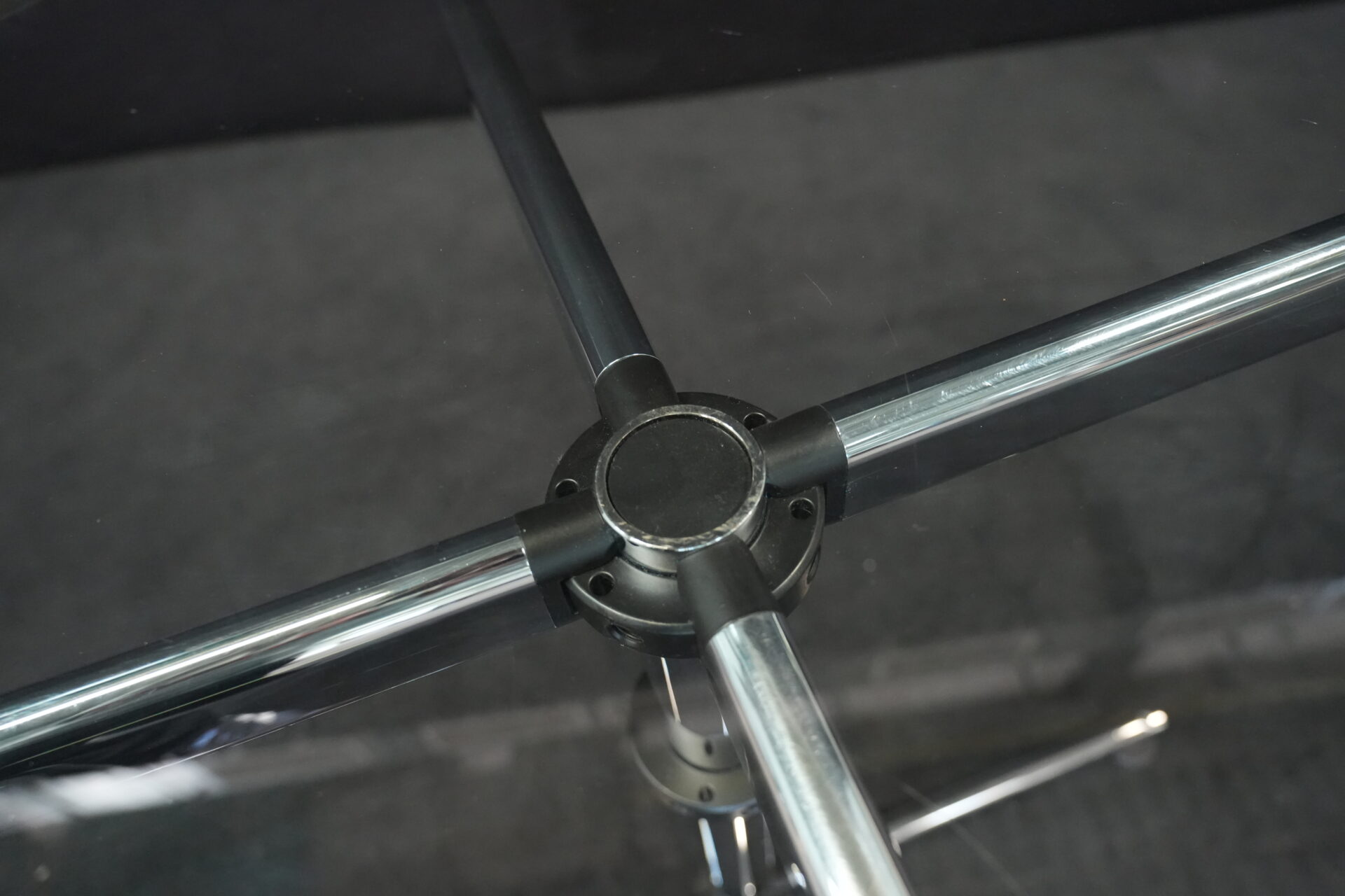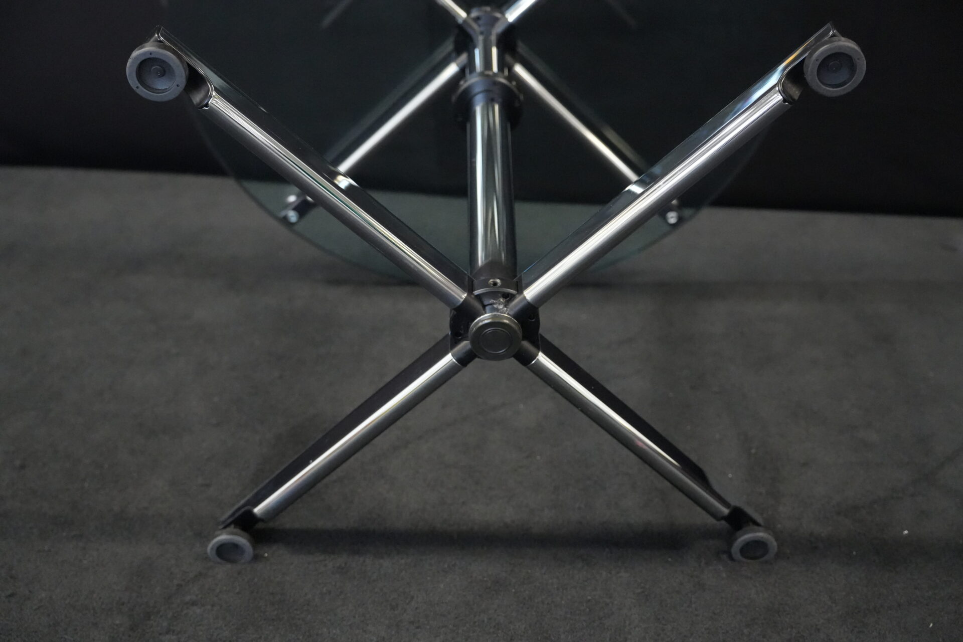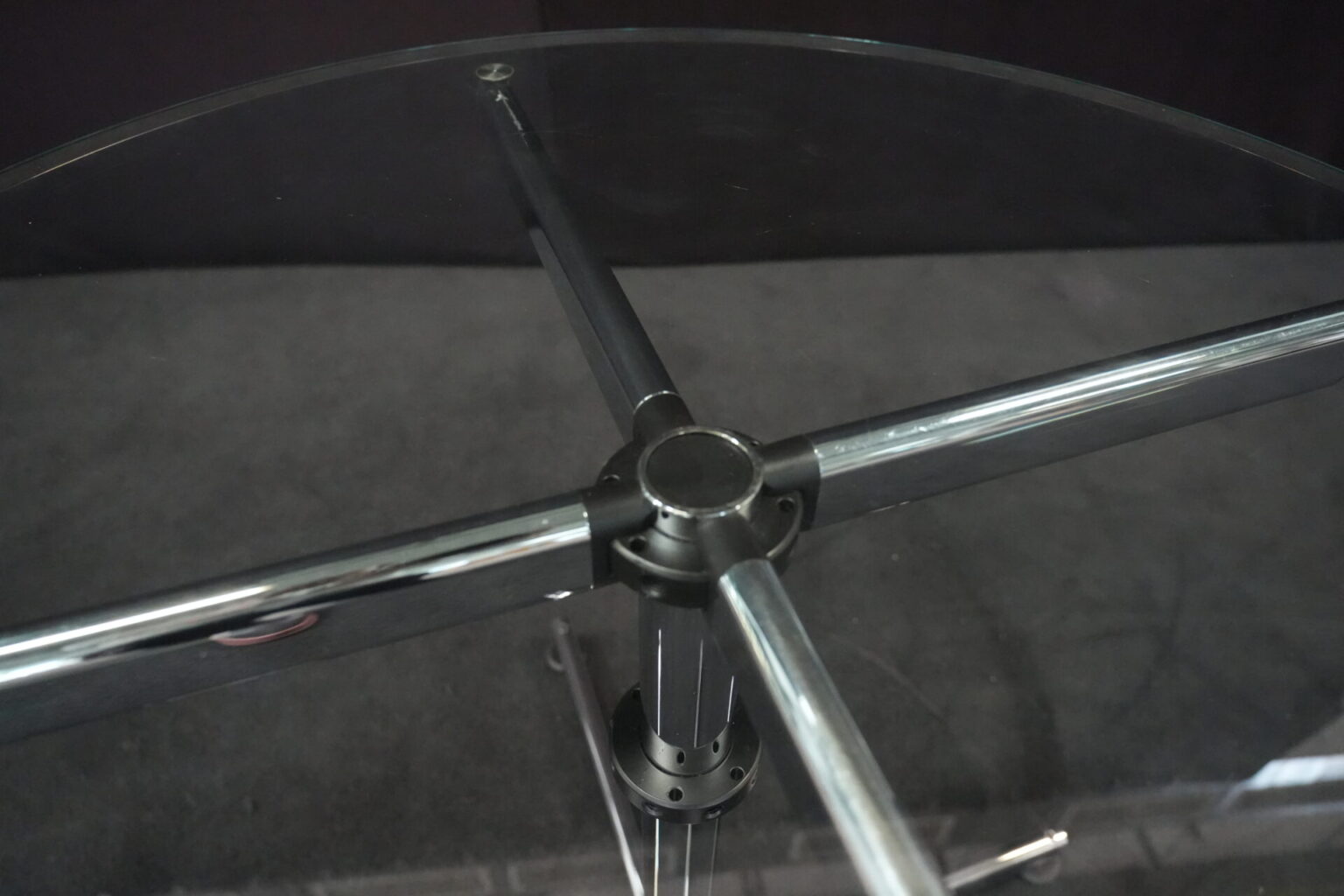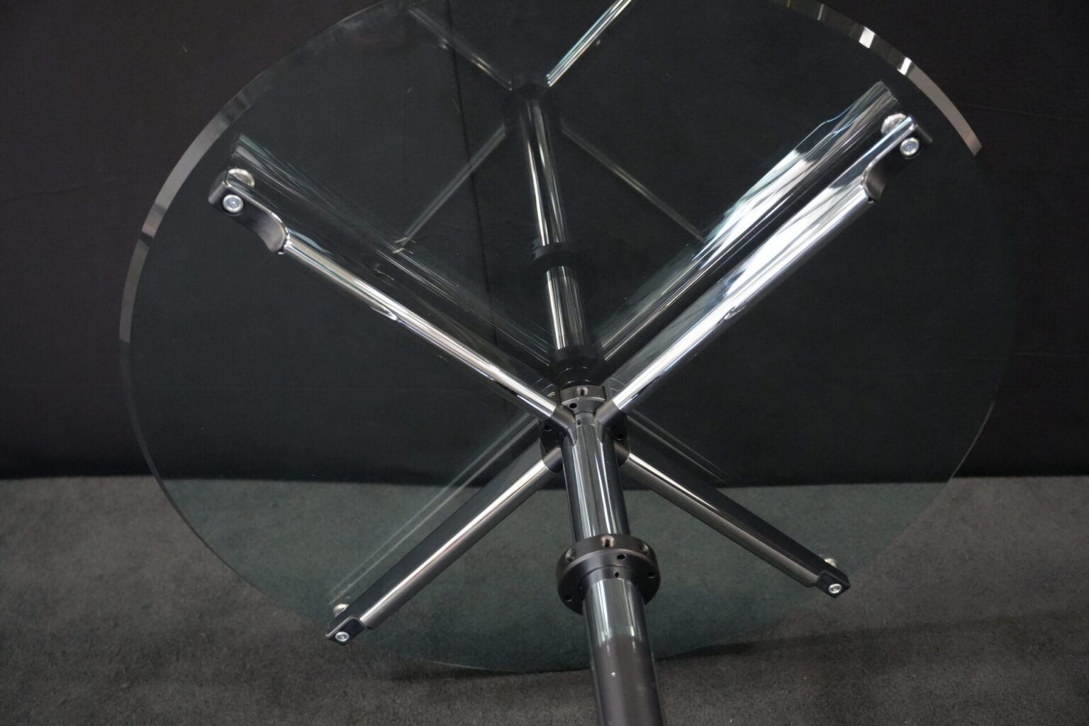 USM Kitos Besprechungstisch Klarglas | Marke: USM Kitos | Tischplatte: Klarglas | Gestell: Kitos / verchromt | Abmessungen: Tischplatte ø: 90cm | H: 74cm