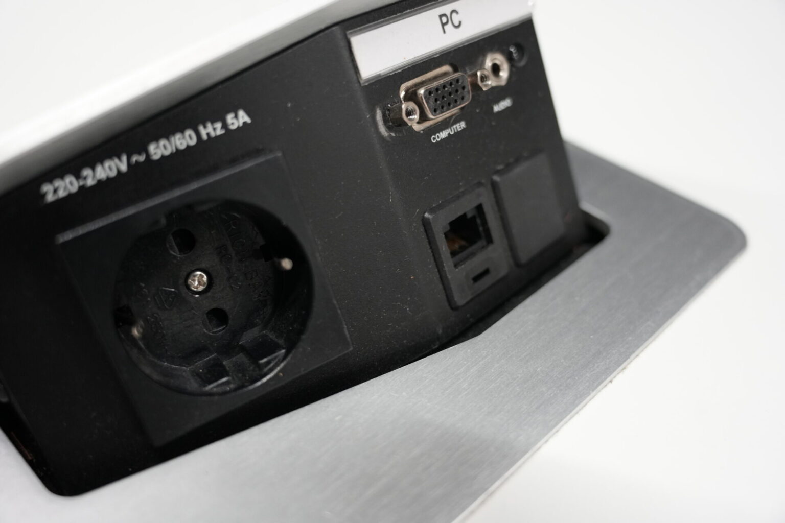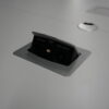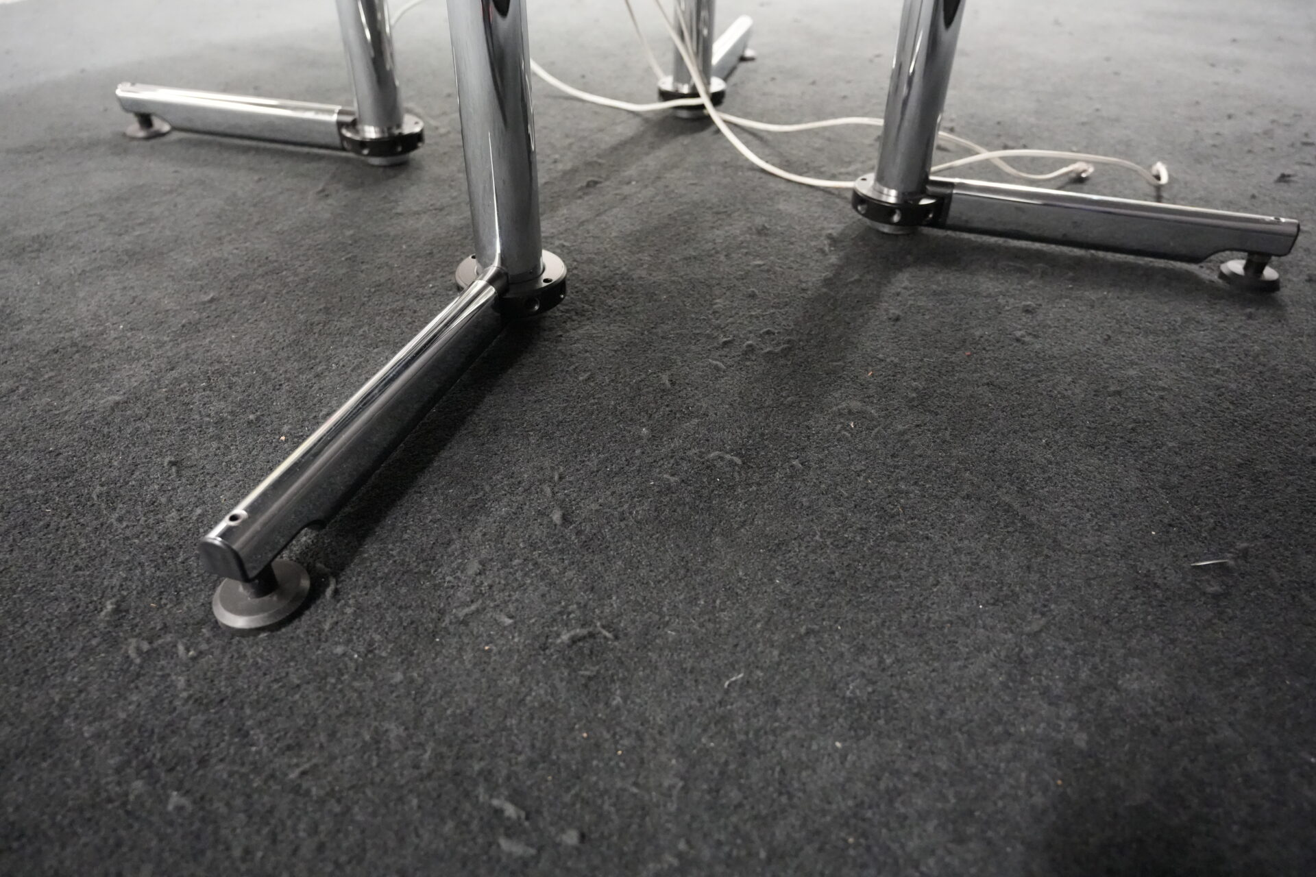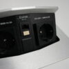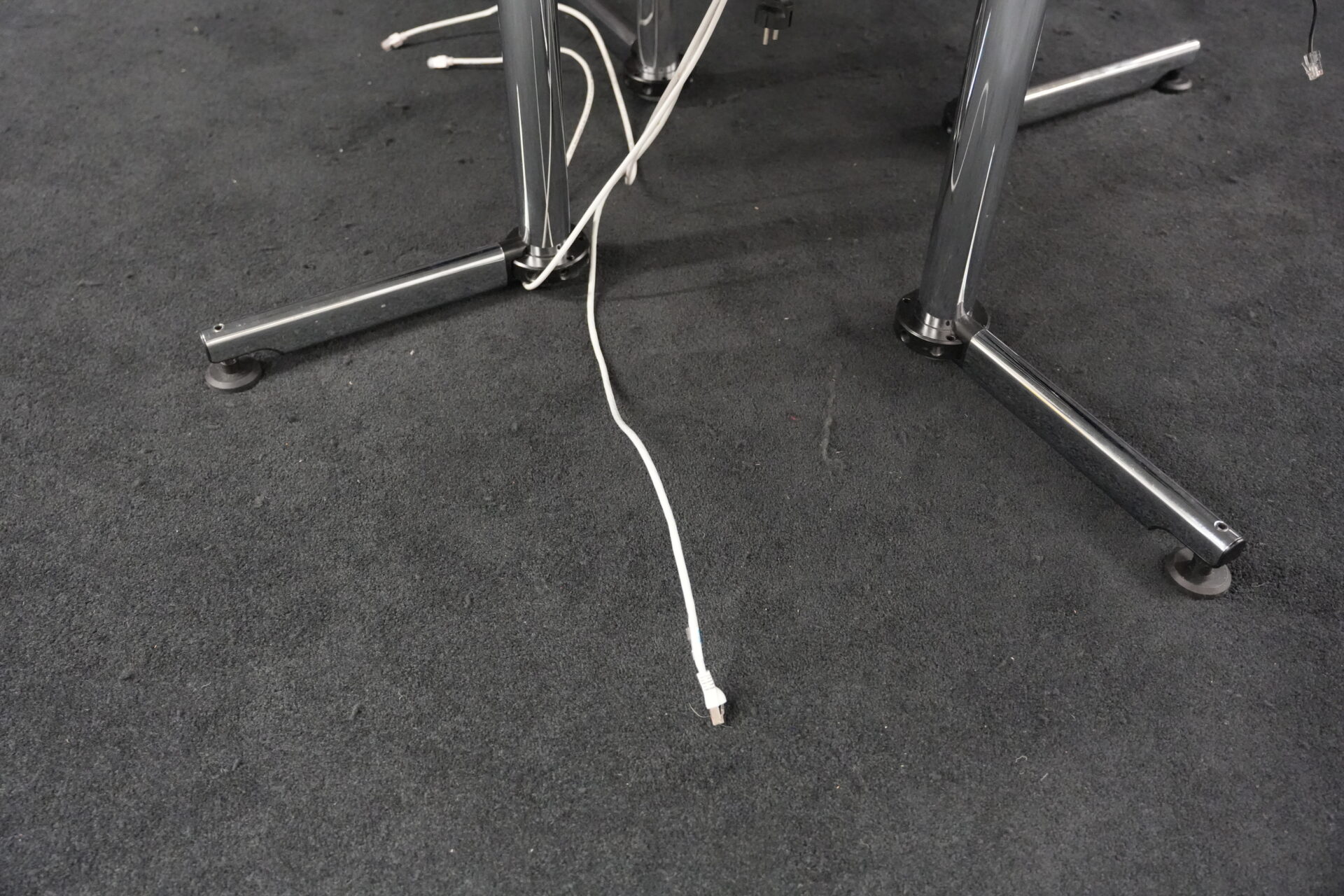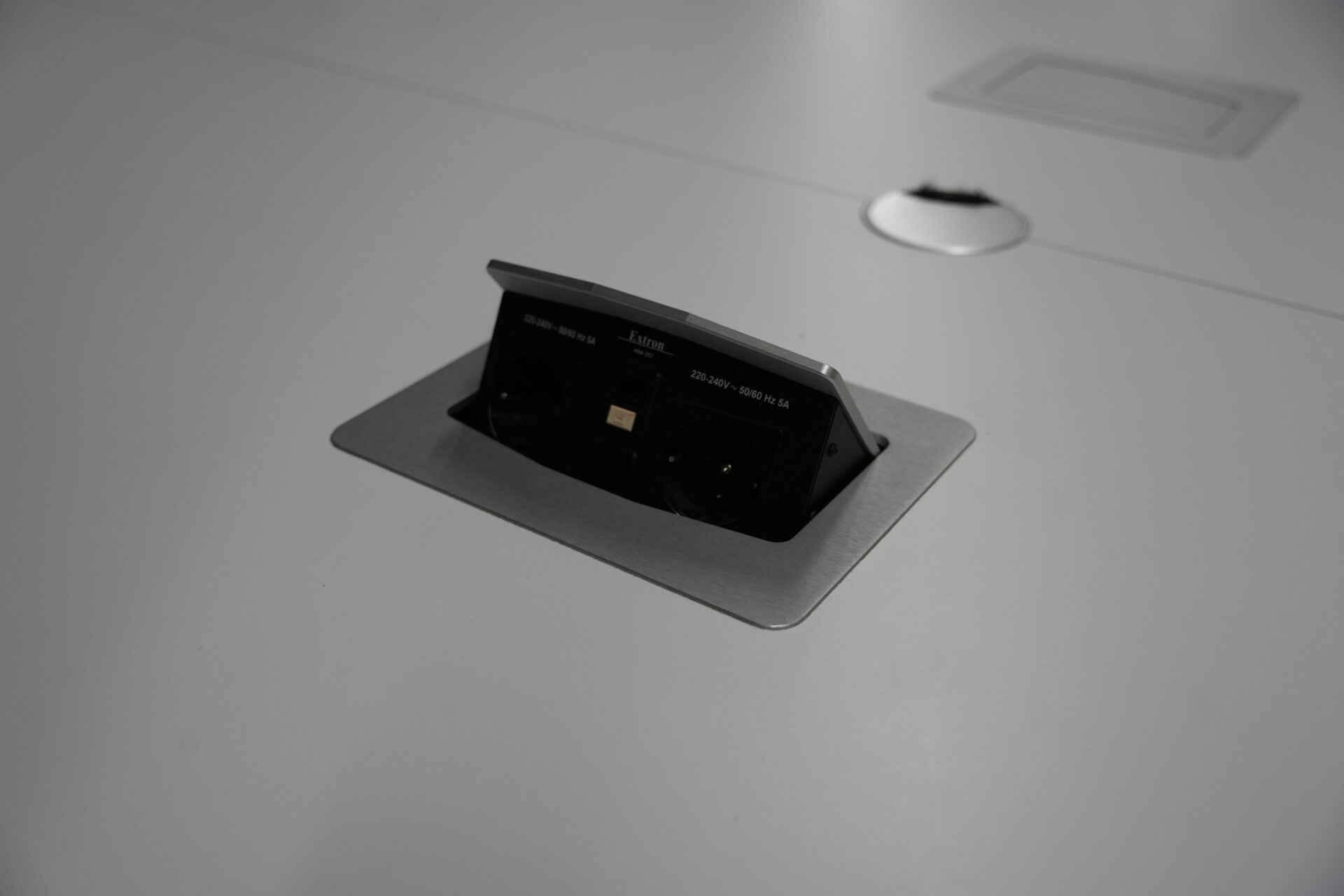 USM Kitos Konferenztisch Kunstharz / weiß | Marke: USM Kitos | Tischplatte: weiß | Gestell: Kitos verchromt | Ausstattung: Kabeleinlass, 2x integrierte Steckdosen | Abmessungen: Tischplatte ø: 170cm | H: 75cm