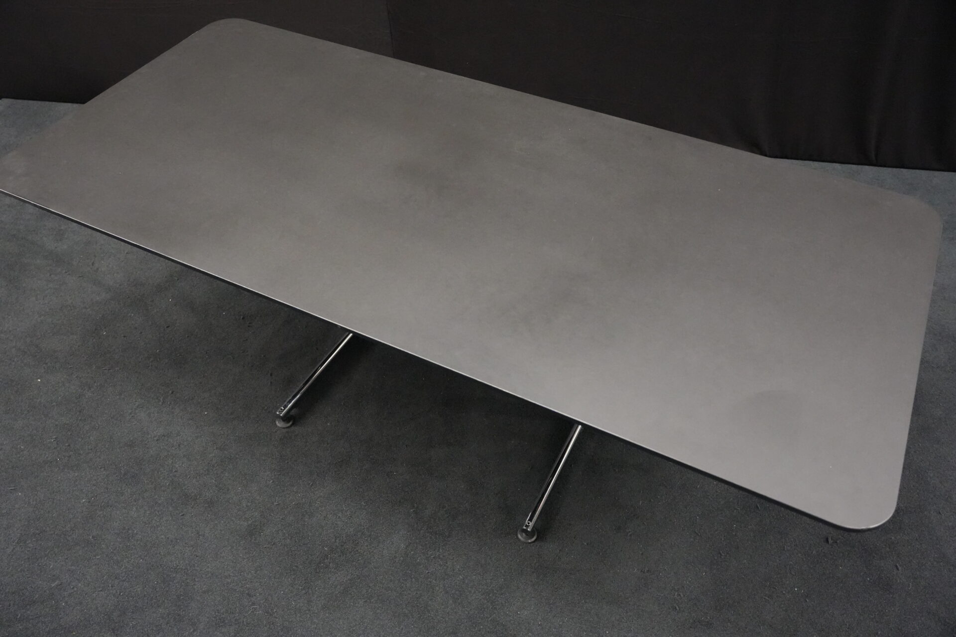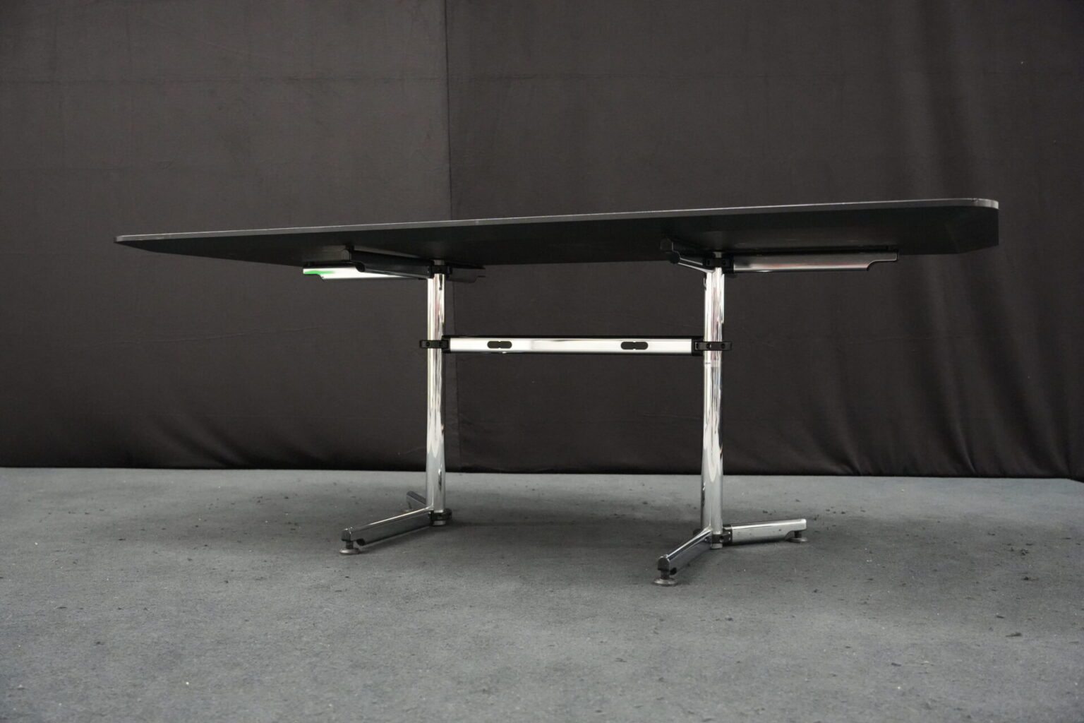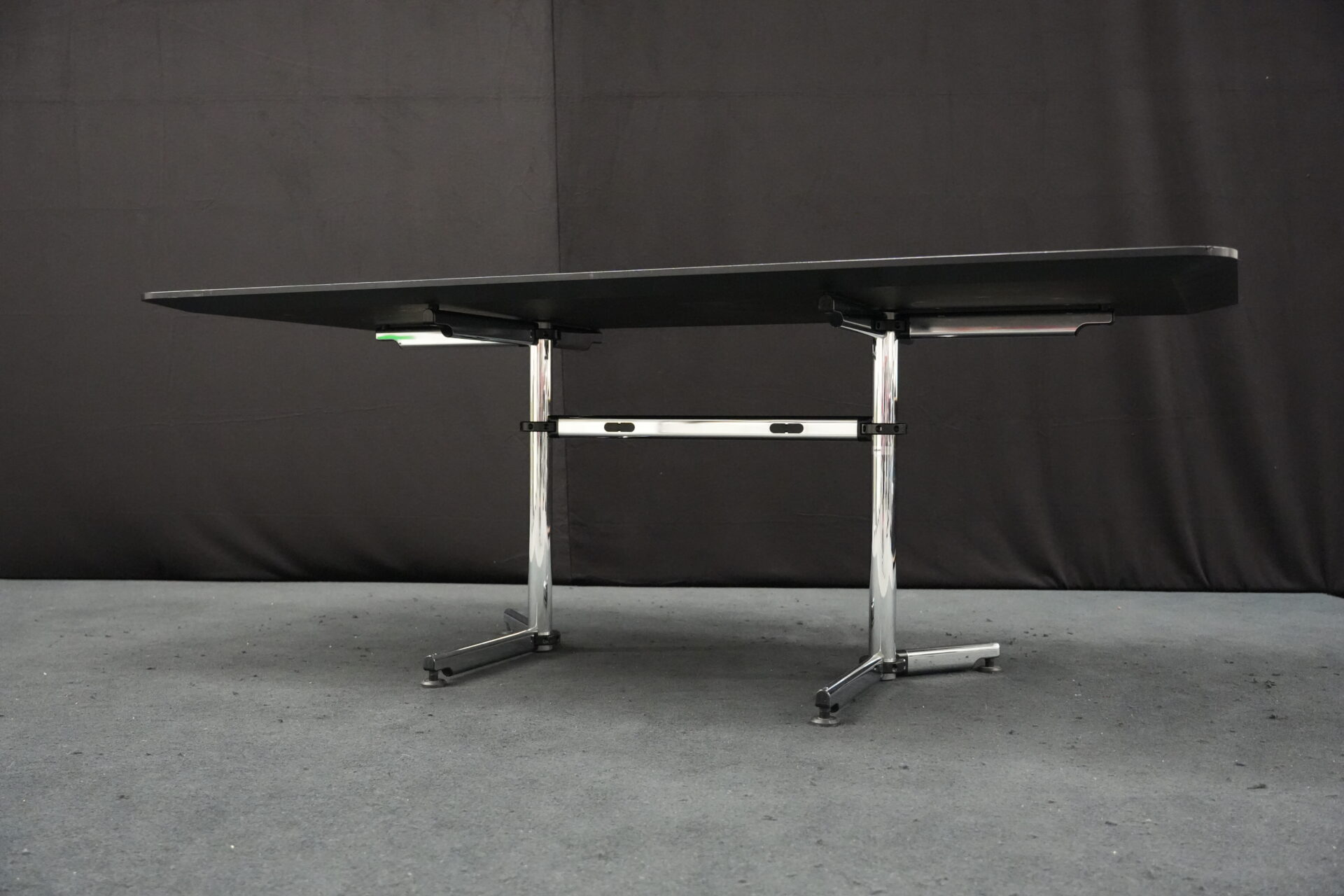 USM Kitos Schreibtisch / Konferenztisch Kunstharz / Schwarz 200 x 100 cm | Marke: USM Kitos | Tischplatte: schwarz | Gestell: Kitos verchromt (nicht demontierbar) | Abmessungen: H: 74cm | B: 200cm | T: 100cm