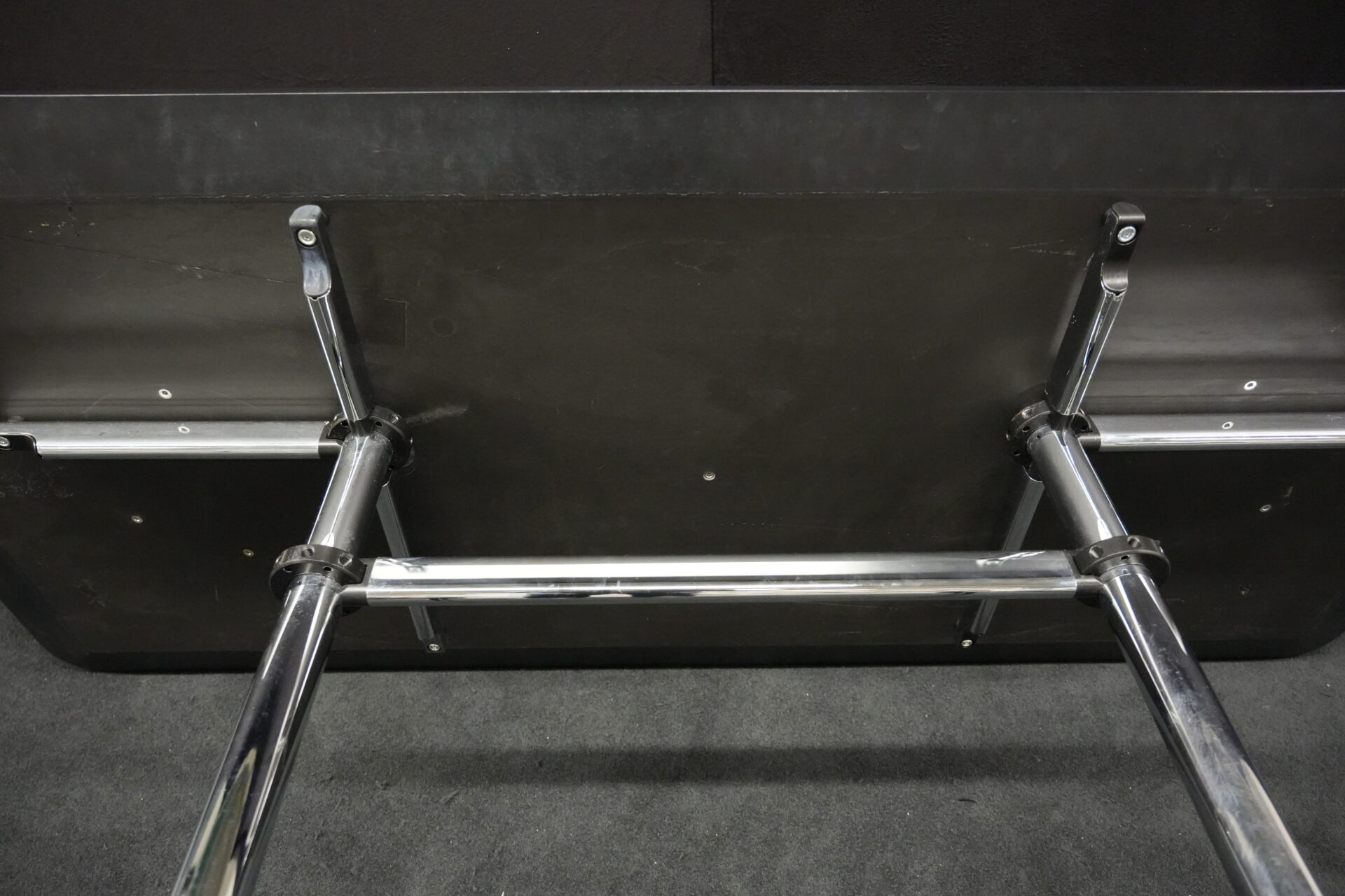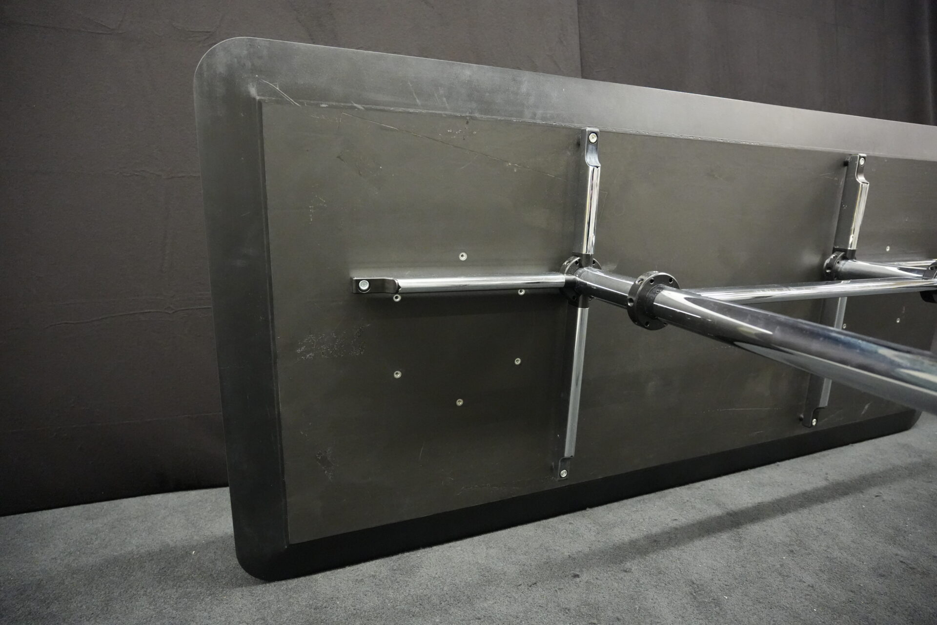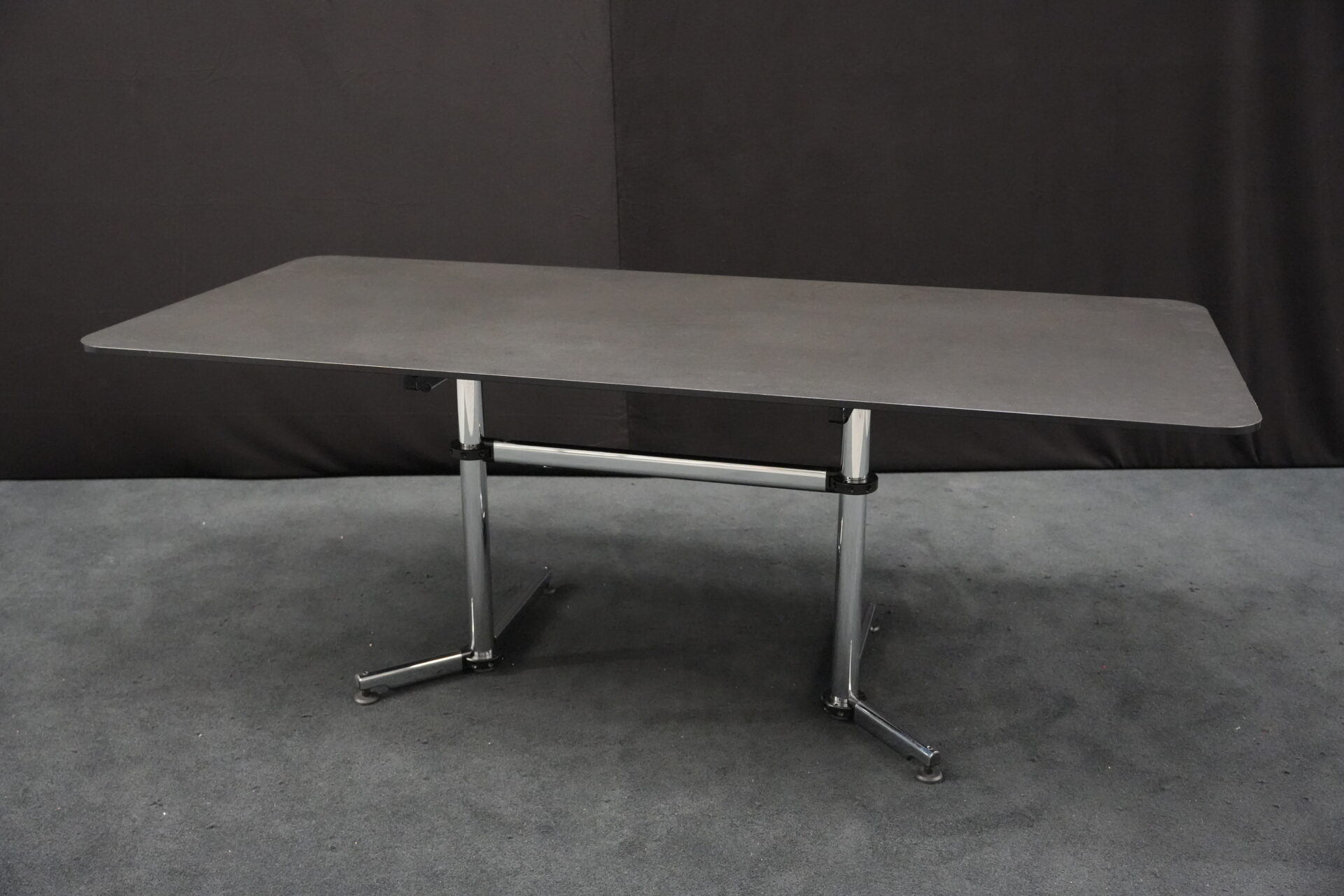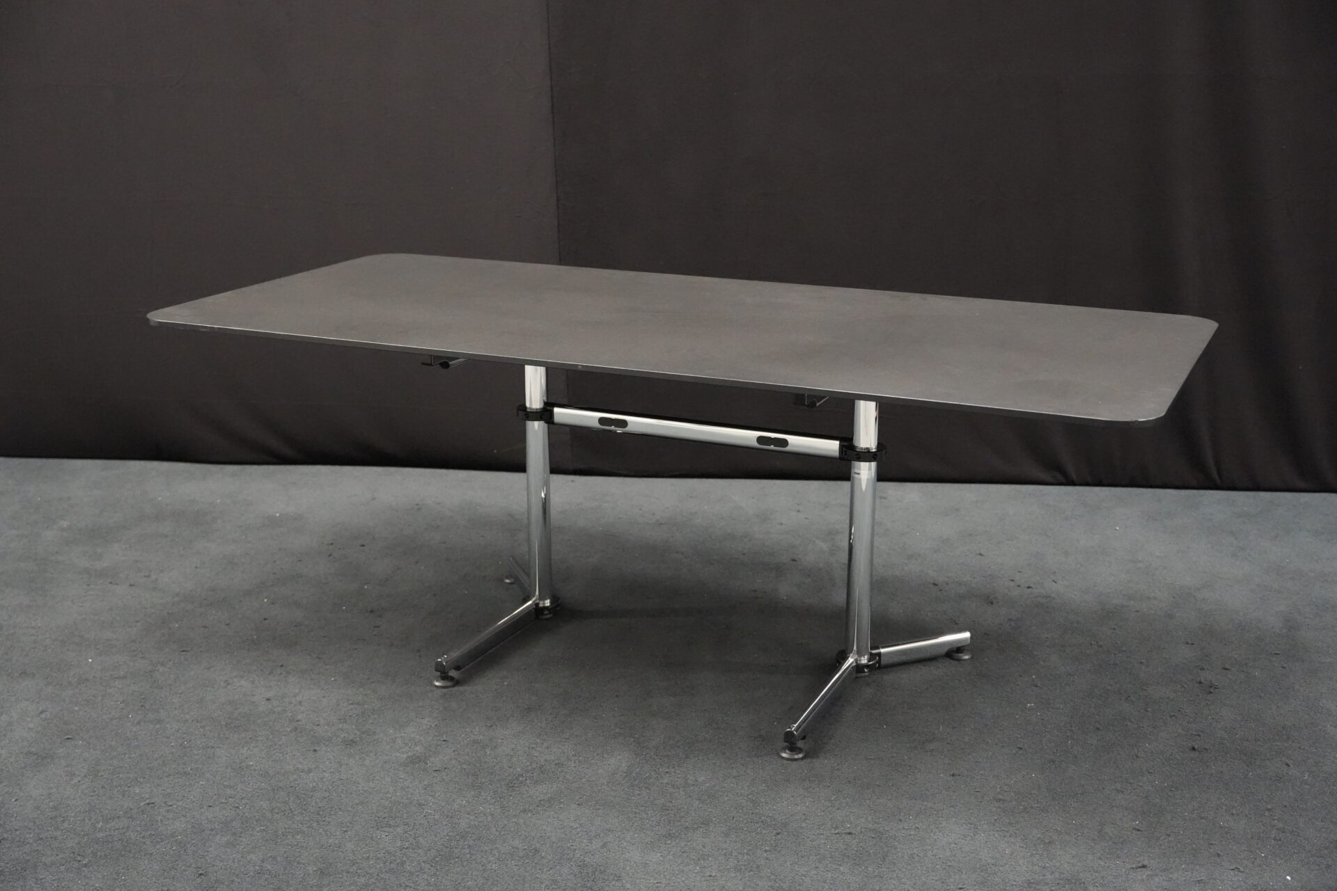 USM Kitos Schreibtisch / Konferenztisch Kunstharz / Schwarz 200 x 100 cm | Marke: USM Kitos | Tischplatte: schwarz | Gestell: Kitos verchromt (nicht demontierbar) | Abmessungen: H: 74cm | B: 200cm | T: 100cm