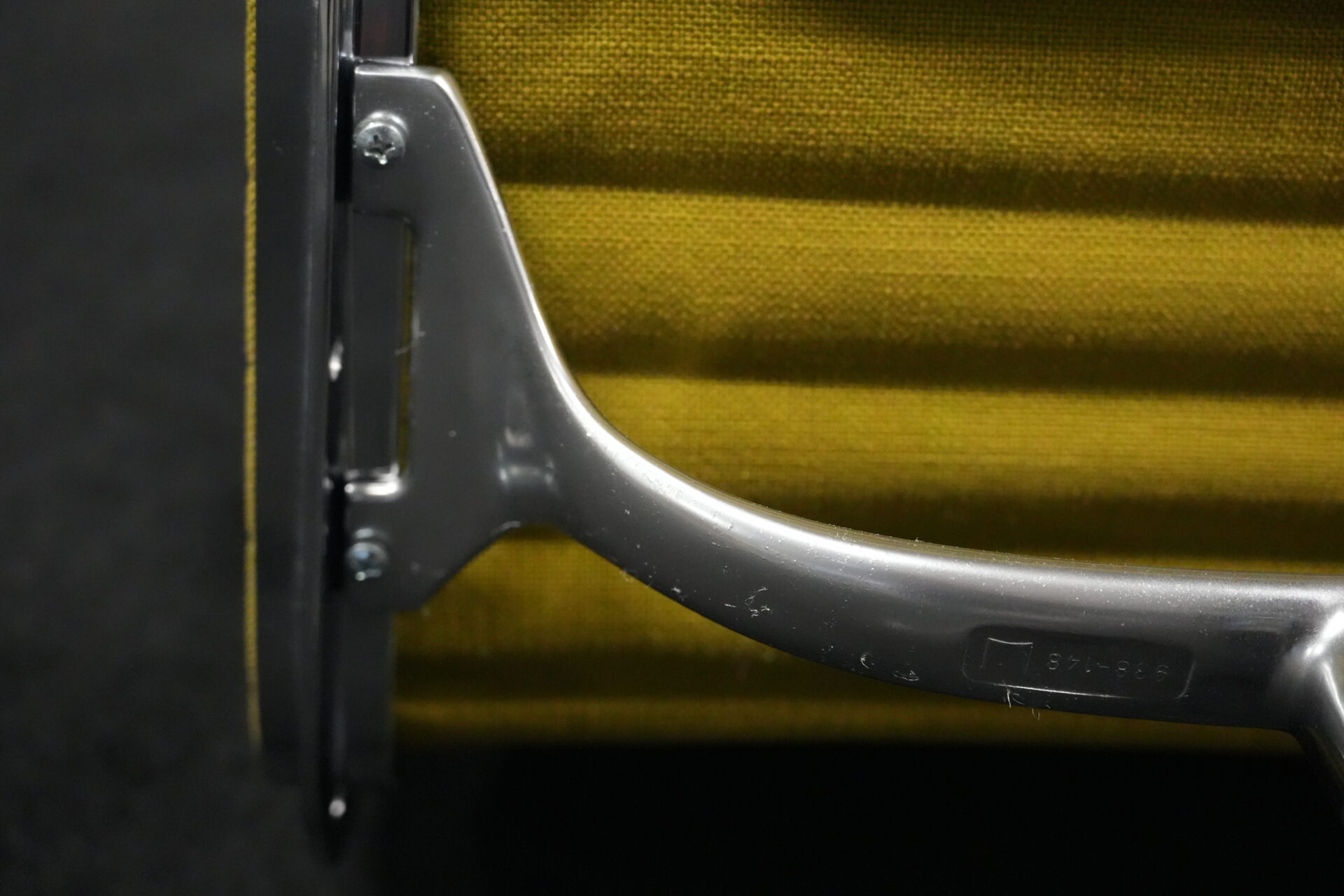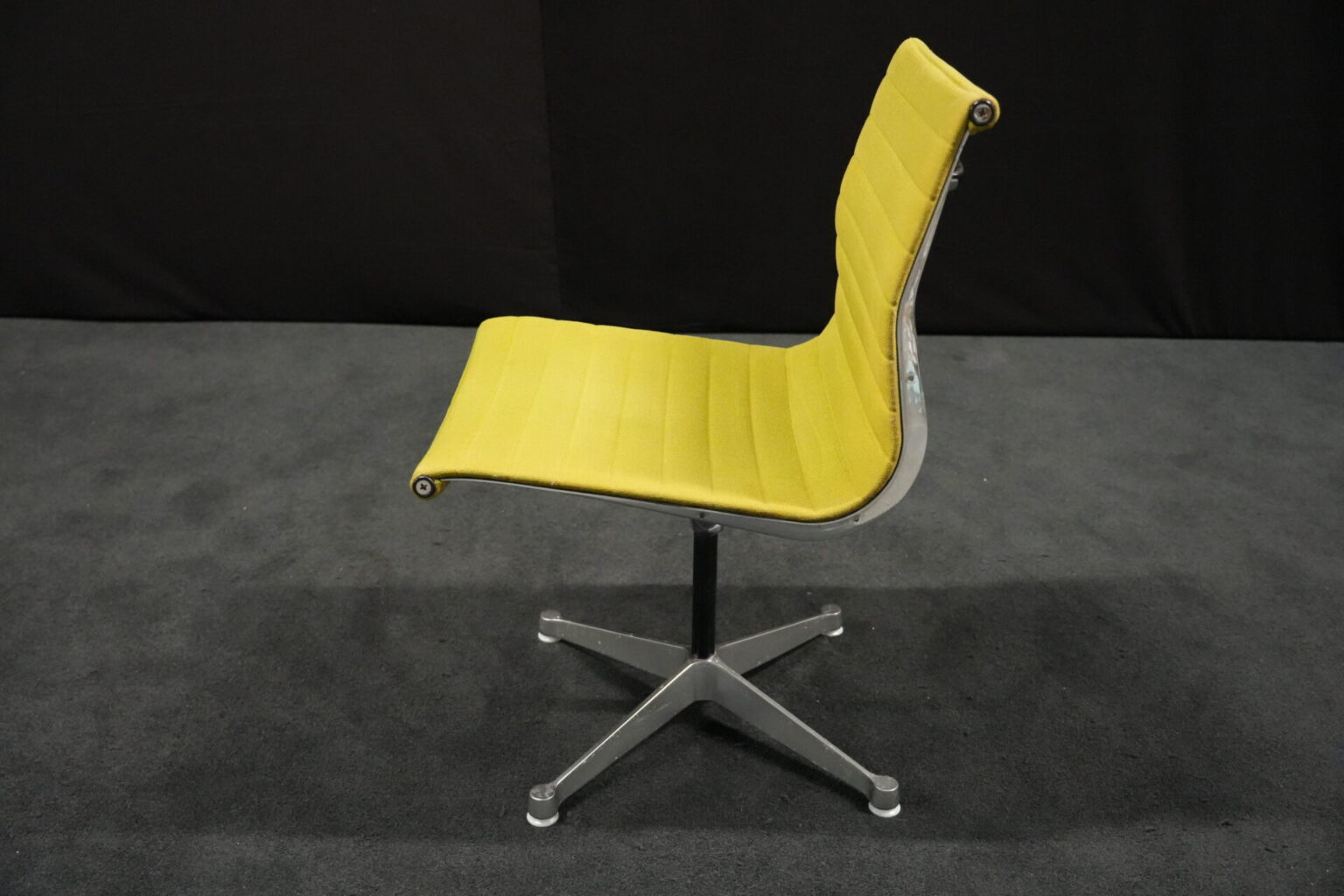 Vitra EA 101 Aluminium Chair Hopsak /gelb-lindgrün 71 (drehbar) | Marke: Vitra | Bezug: Hopsac / gelb-lindgrün 71 | Gestell: Aluminium-Druckguss verchromt |Ausstattung: drehbar, ohne Armlehnen 4-Sternfuß | Abmessungen: H: 84,5cm | SH: 42,5cm | B: 50cm | T: 34,8cm