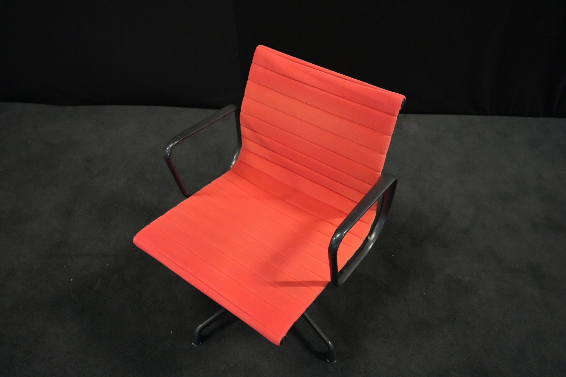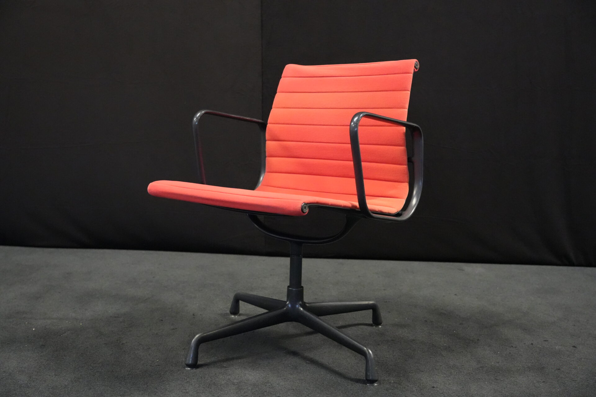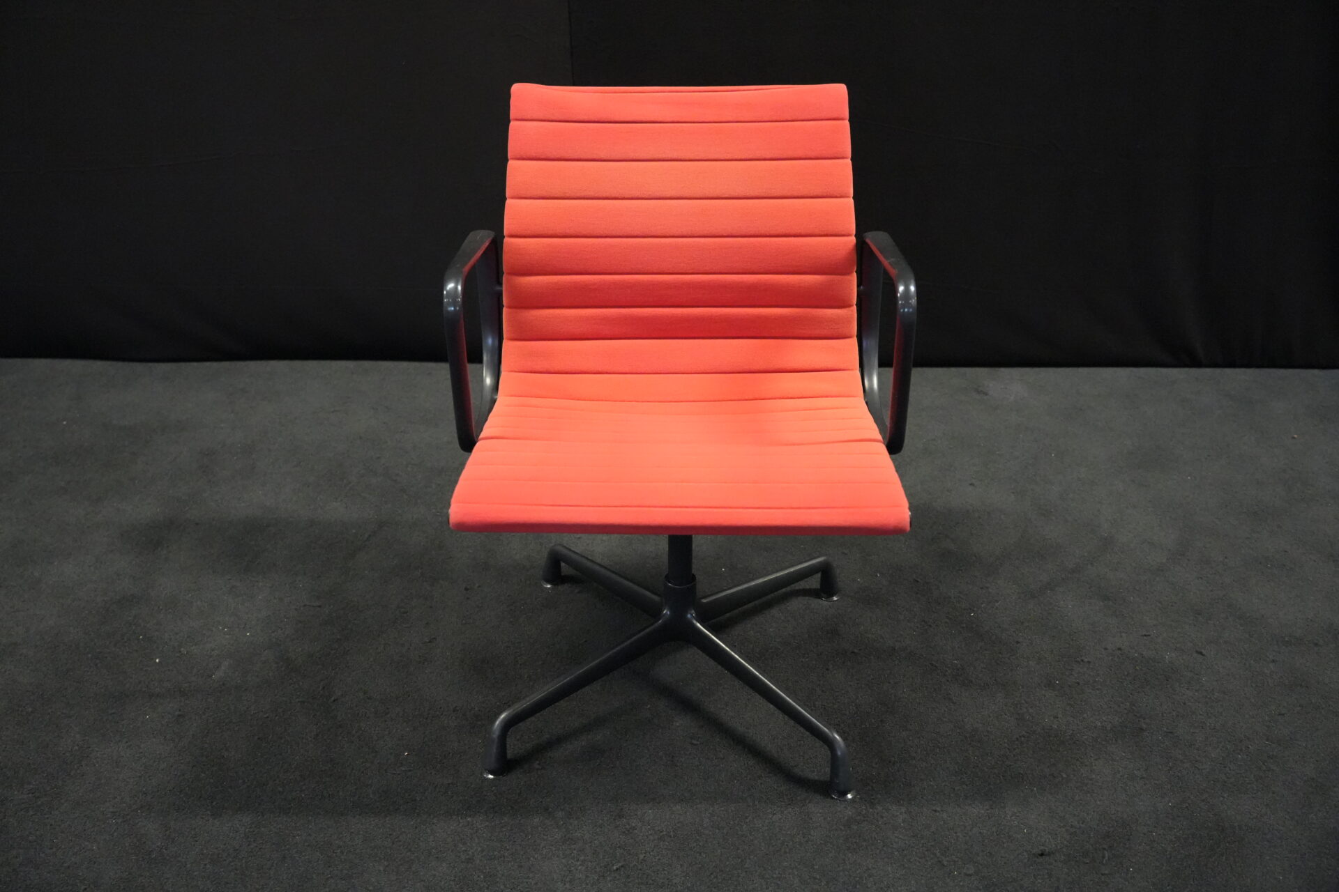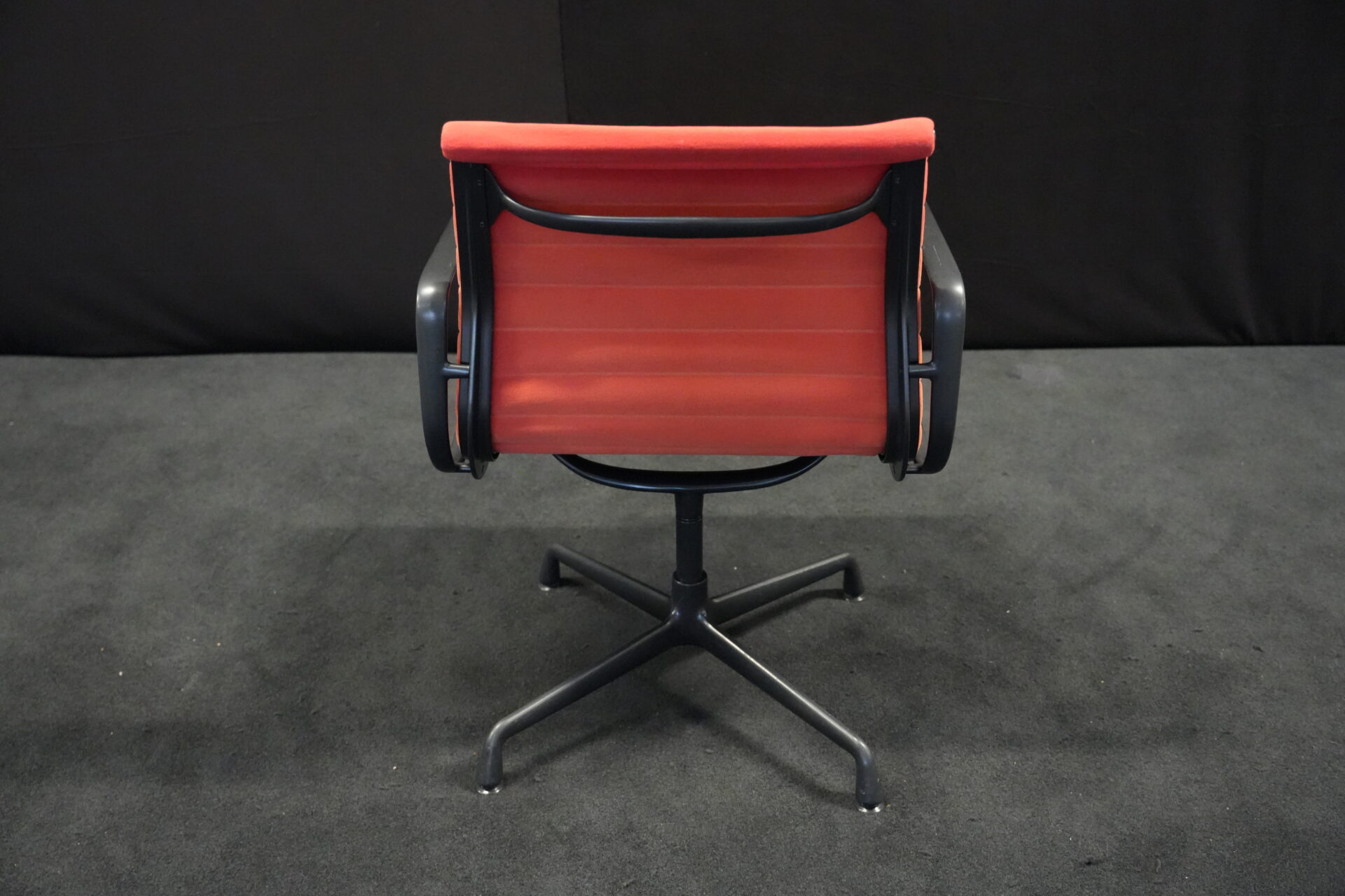 Vitra EA 108 Hopsak / rot (drehbar) | Marke: Vitra | Bezug: Hopsak / rot | Gestell: Aluminium-Druckguss schwarz |Ausstattung: drehbar mit Armlehnen mittelhohe Rückenlehne 4-Sternfuß | Abmessungen: H: 83cm | SH: 40cm | B: 58cm | T: 59cm