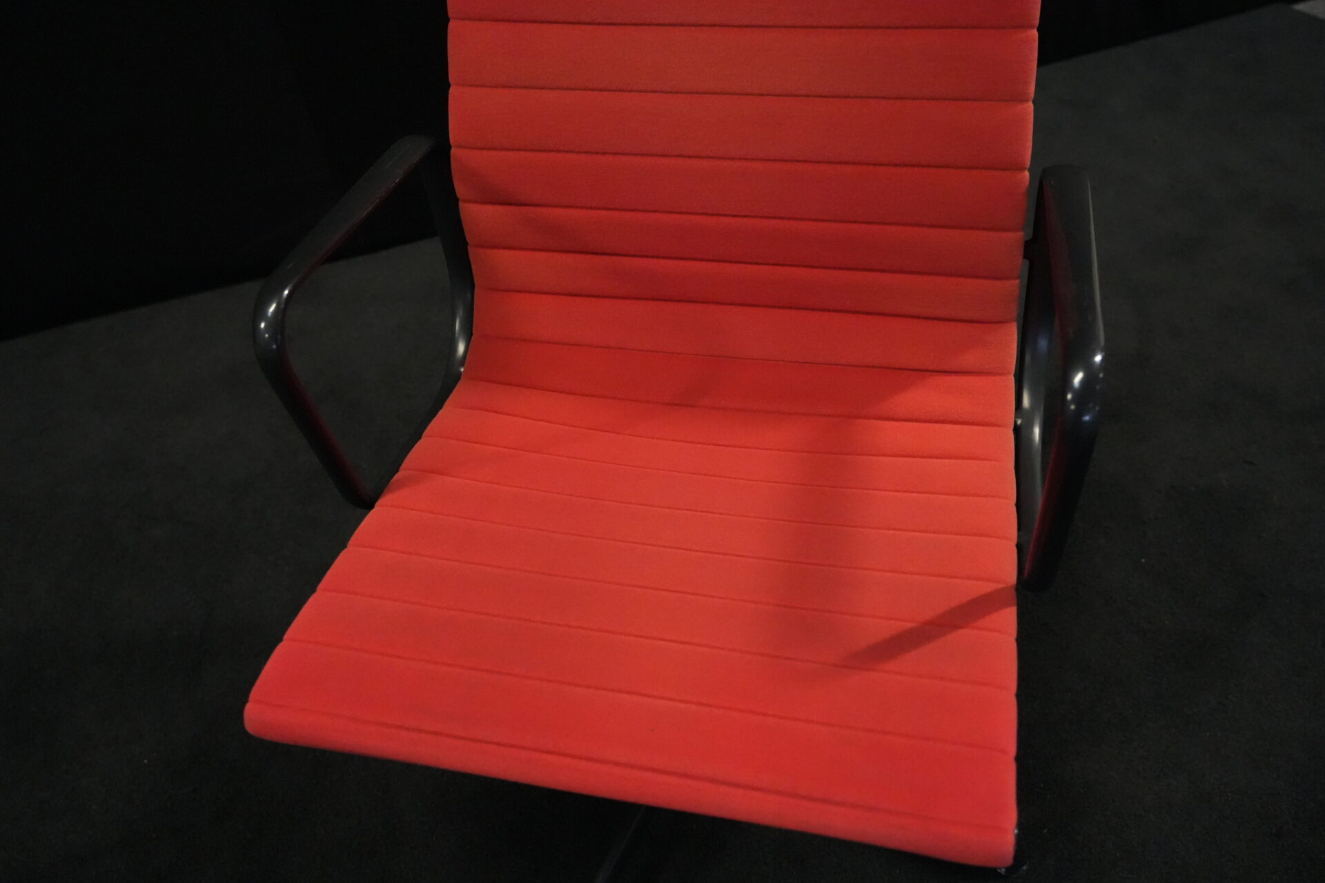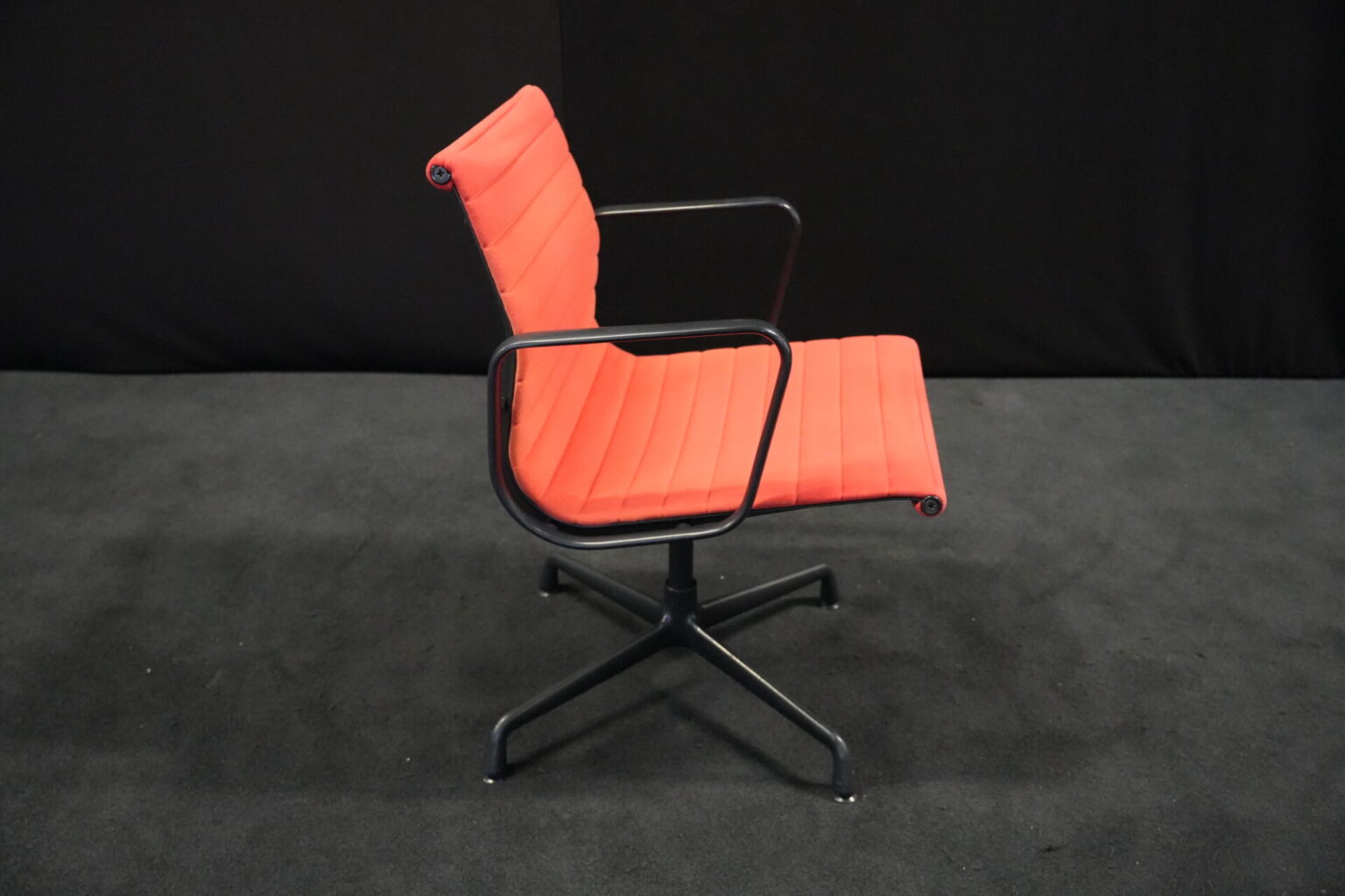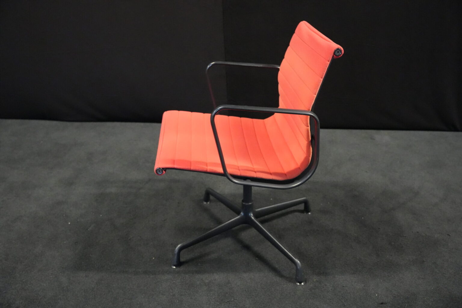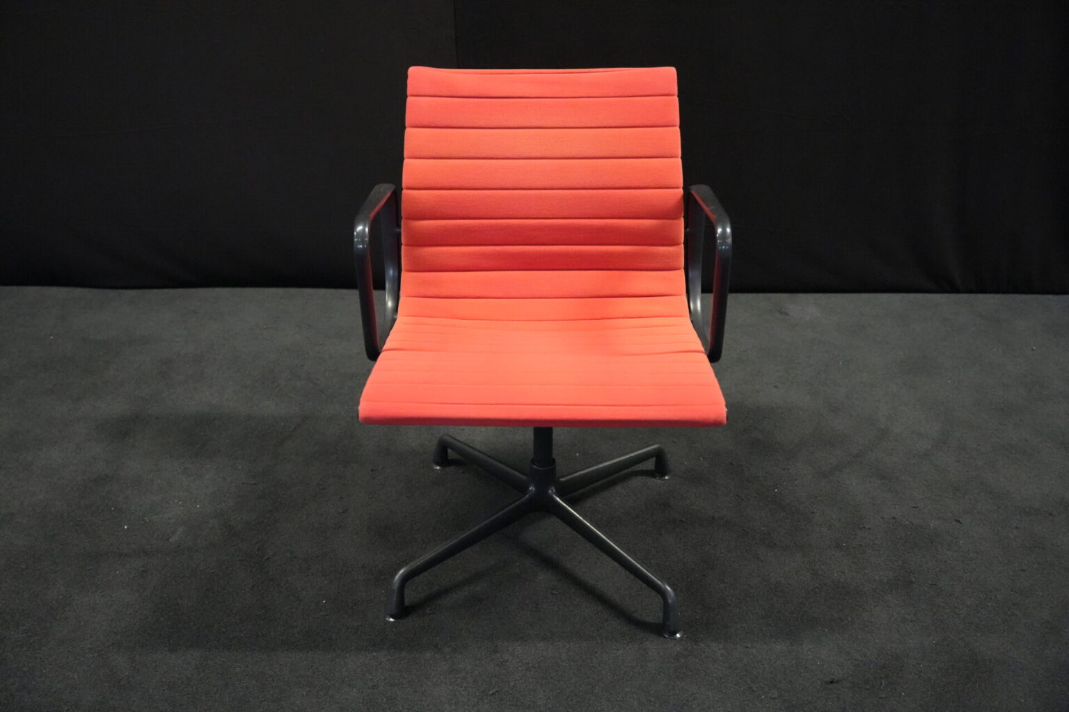 Vitra EA 108 Hopsak / rot (drehbar) | Marke: Vitra | Bezug: Hopsak / rot | Gestell: Aluminium-Druckguss schwarz |Ausstattung: drehbar mit Armlehnen mittelhohe Rückenlehne 4-Sternfuß | Abmessungen: H: 83cm | SH: 40cm | B: 58cm | T: 59cm