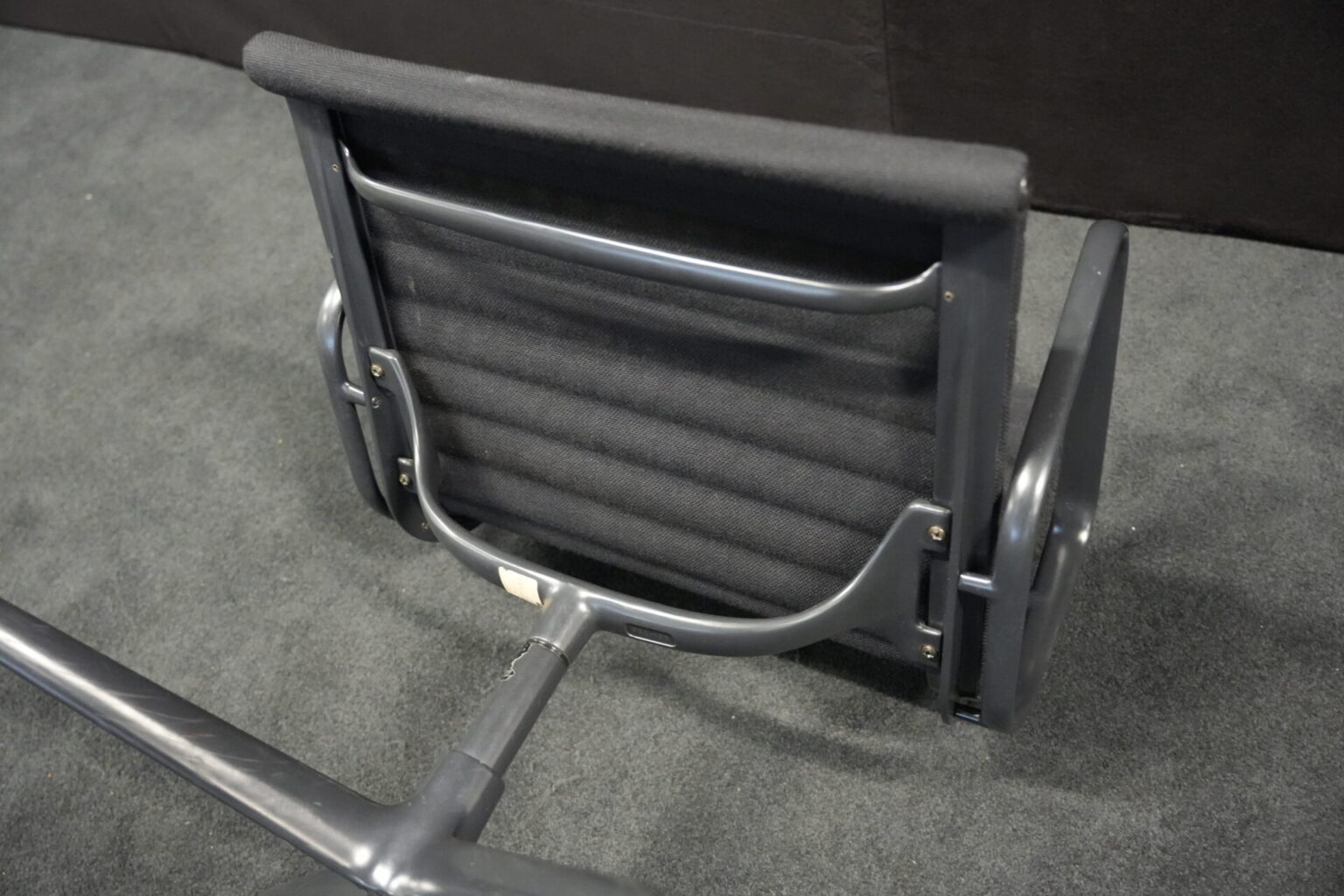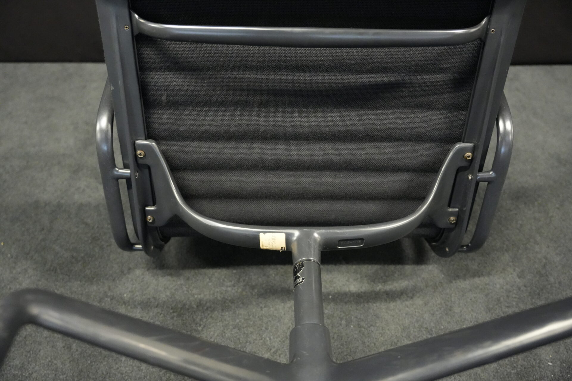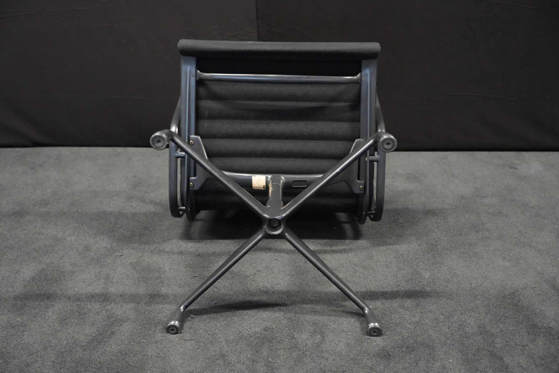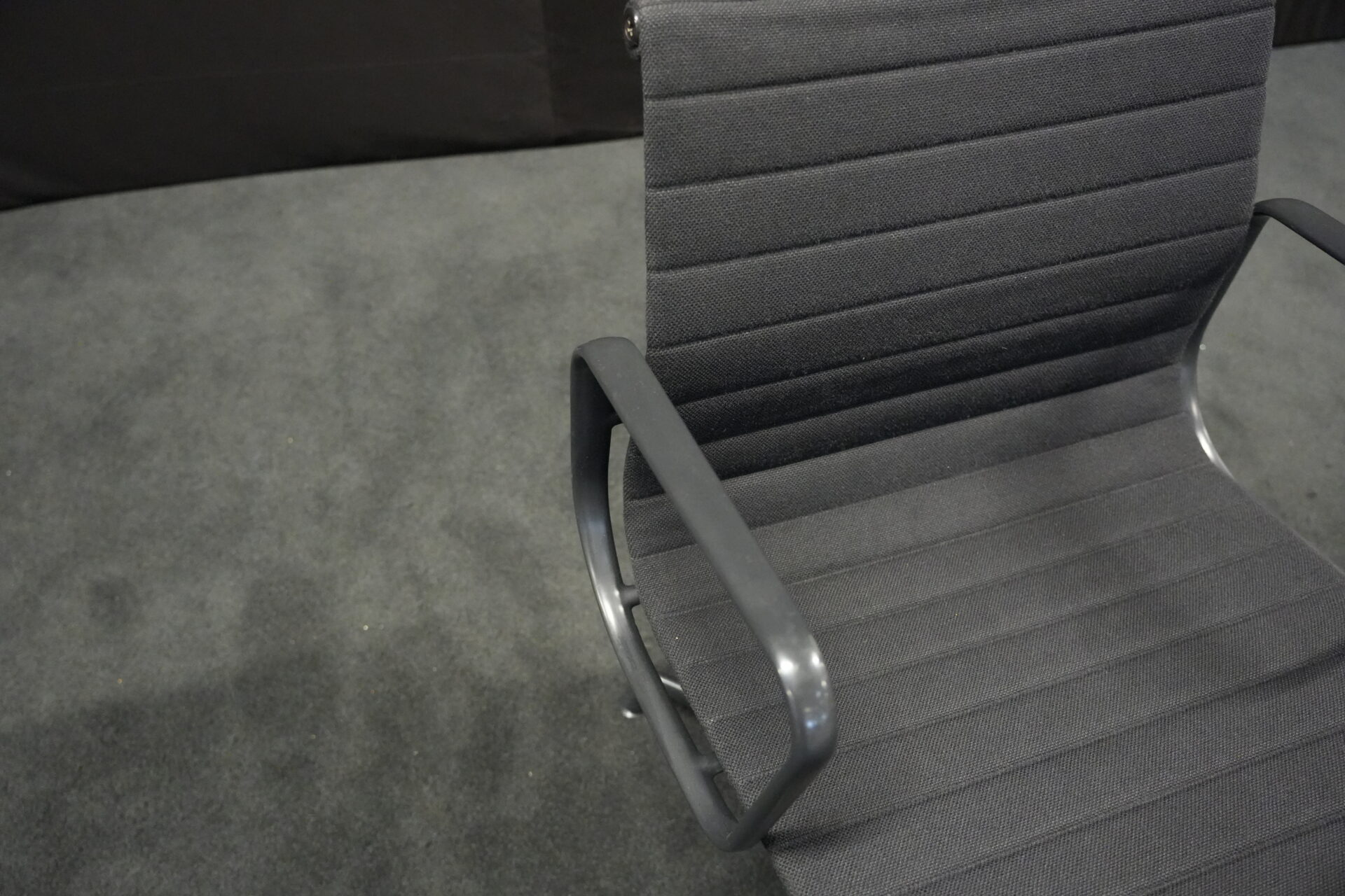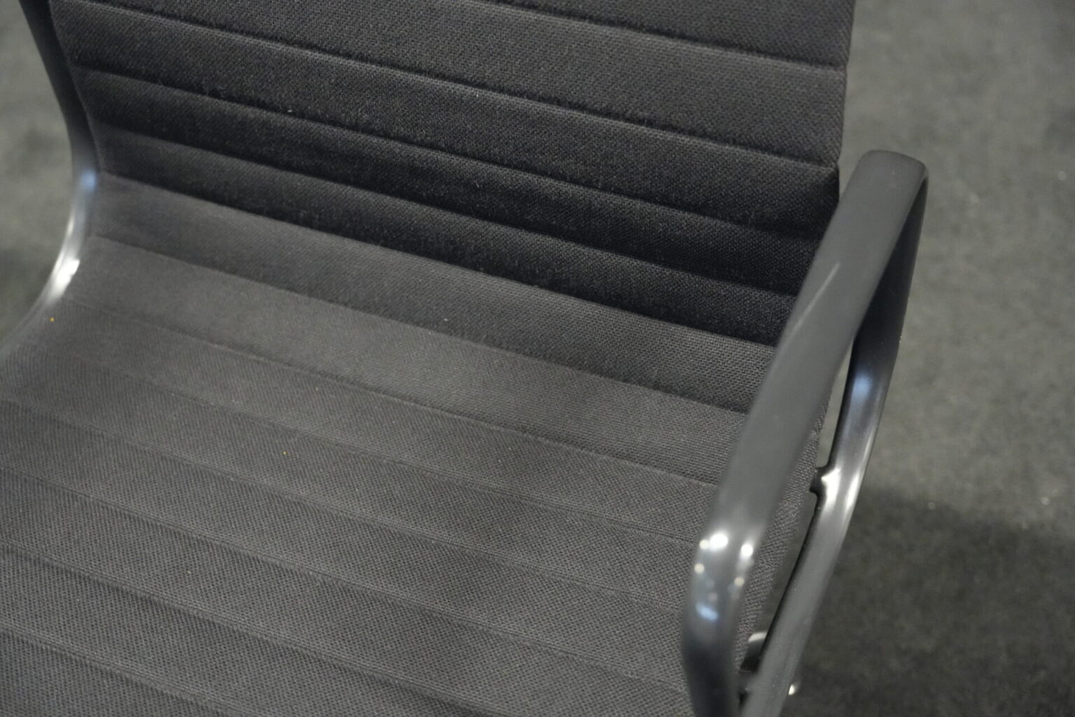 Vitra EA 108 Hopsak / schwarz (drehbar) | Marke: Vitra | Bezug: Hopsak / schwarz | Gestell: Aluminium-Druckguss schwarz | Ausstattung: mit Armlehnen und mittelhoher Rückenlehne, 4-Sternfuß | Abmessungen: H: 83cm | SH: 40cm | B: 58cm | T: 59cm
