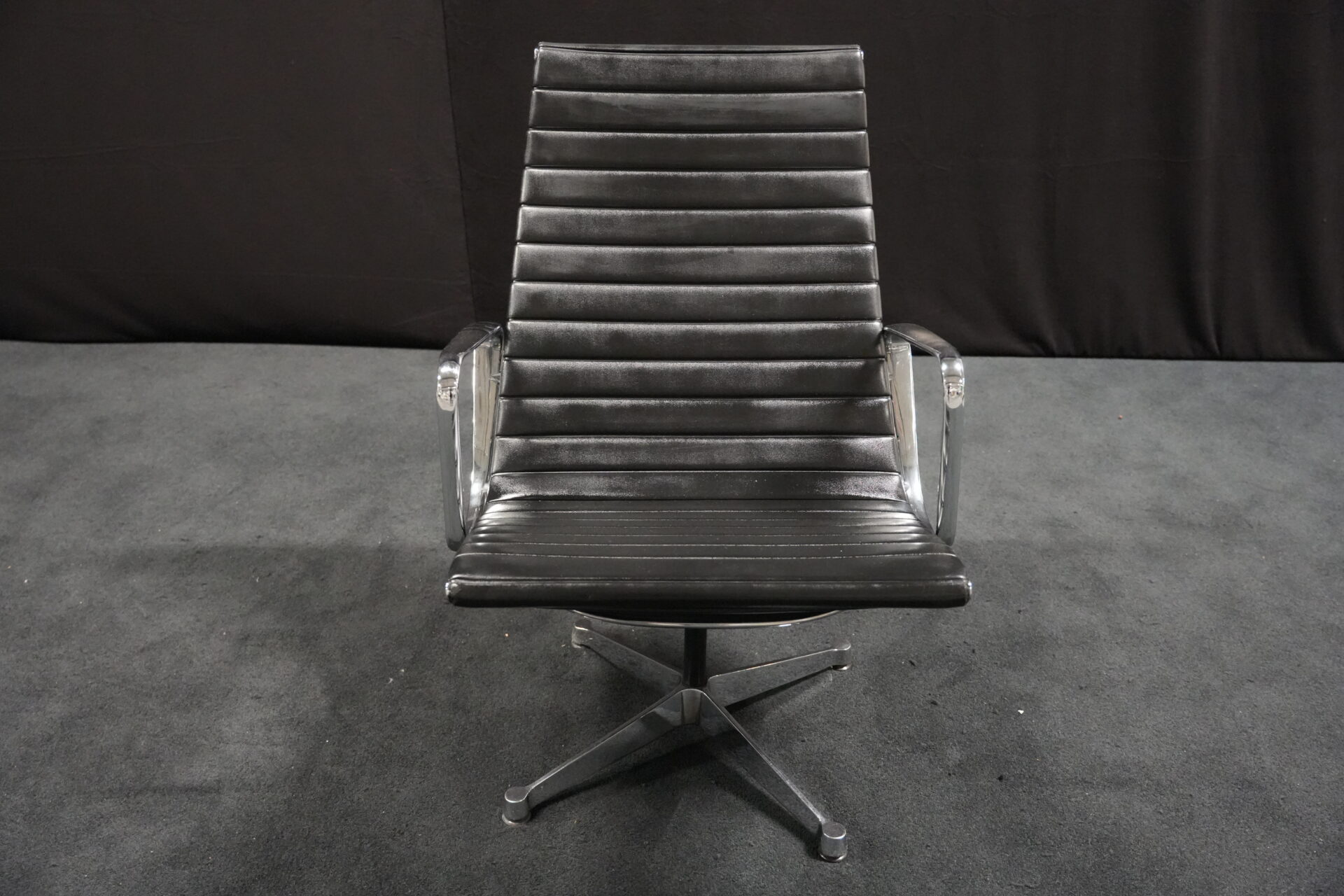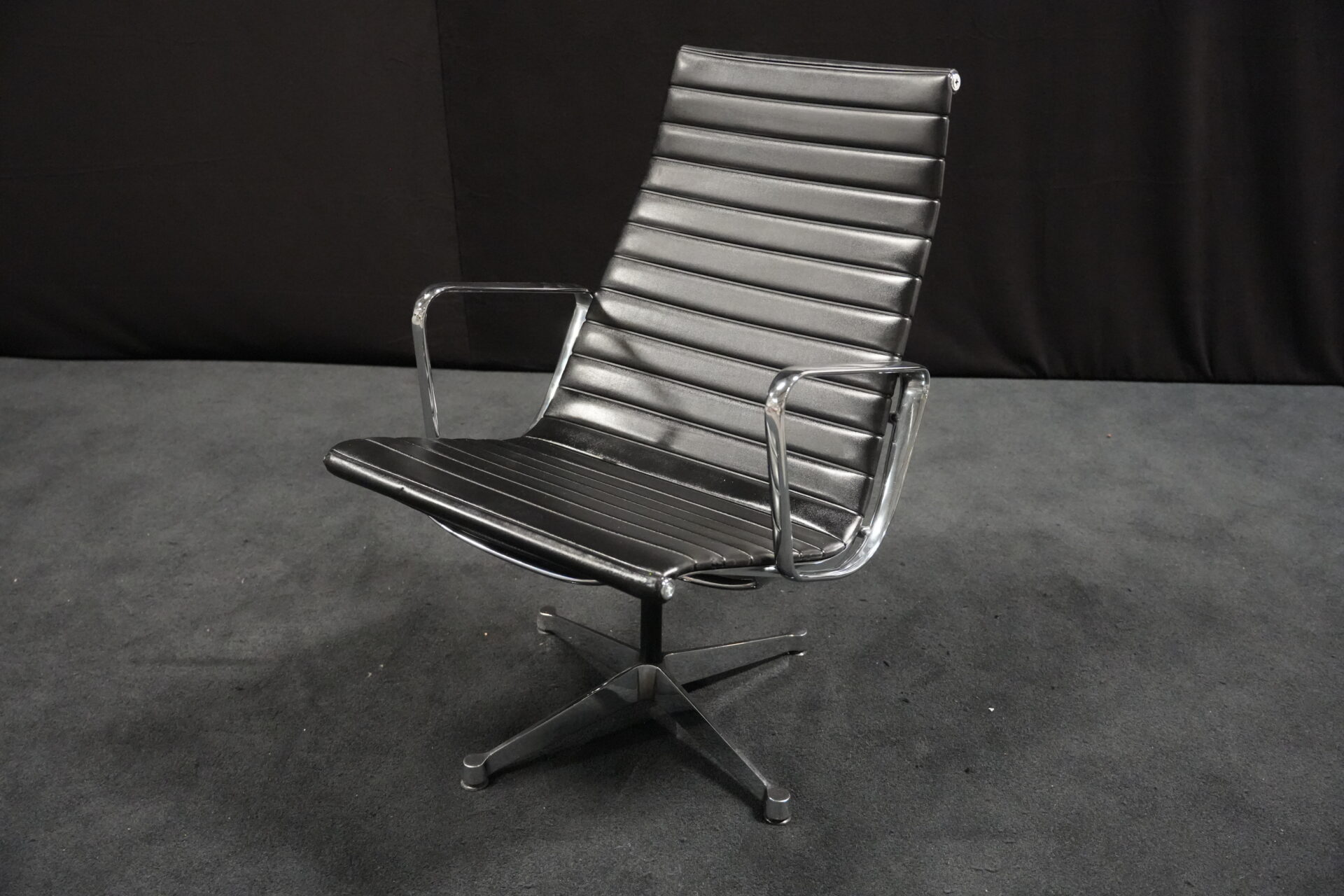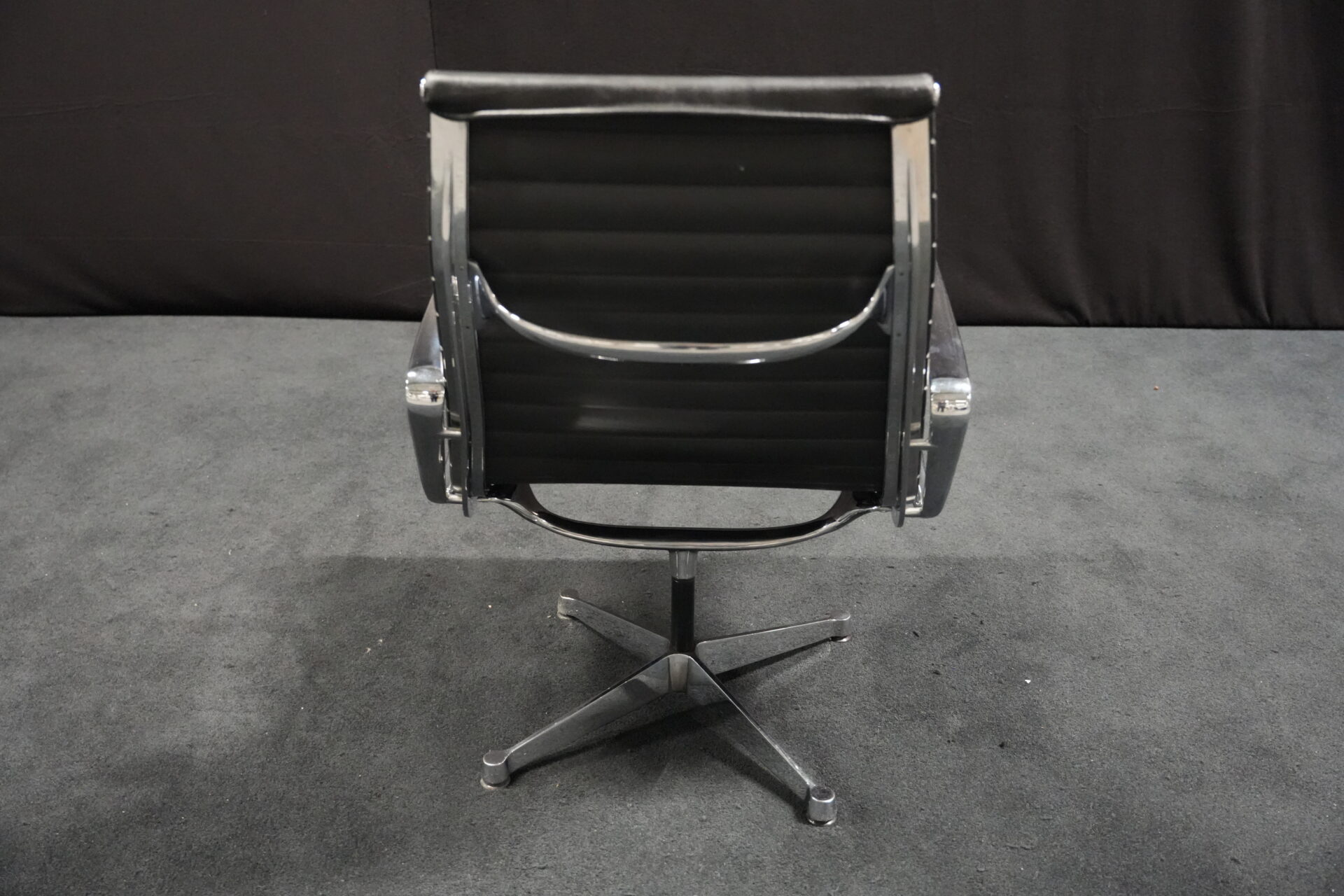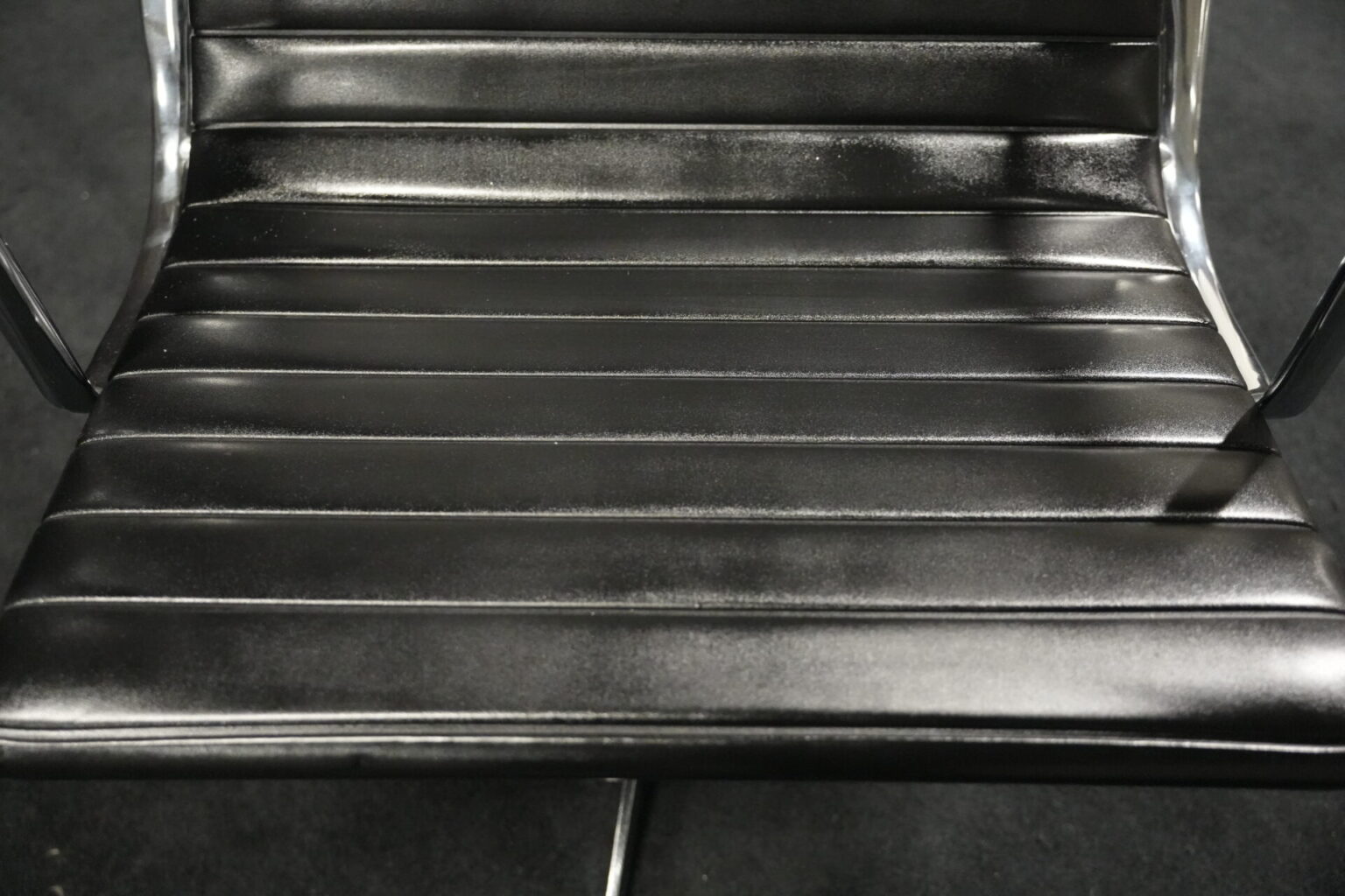 Vitra EA 116 Leder / Schwarz (drehbar) | Marke: Vitra | Bezug: Leder / schwarz | Rückseite: Leder / schwarz | Gestell: Aluminium-Druckguss verchromt |Ausstattung: mit Armlehnen hohe Rückenlehne 4-Sternfuß | Abmessungen: H: 90cm | SH: 35cm | B: 62cm | T: 72cm