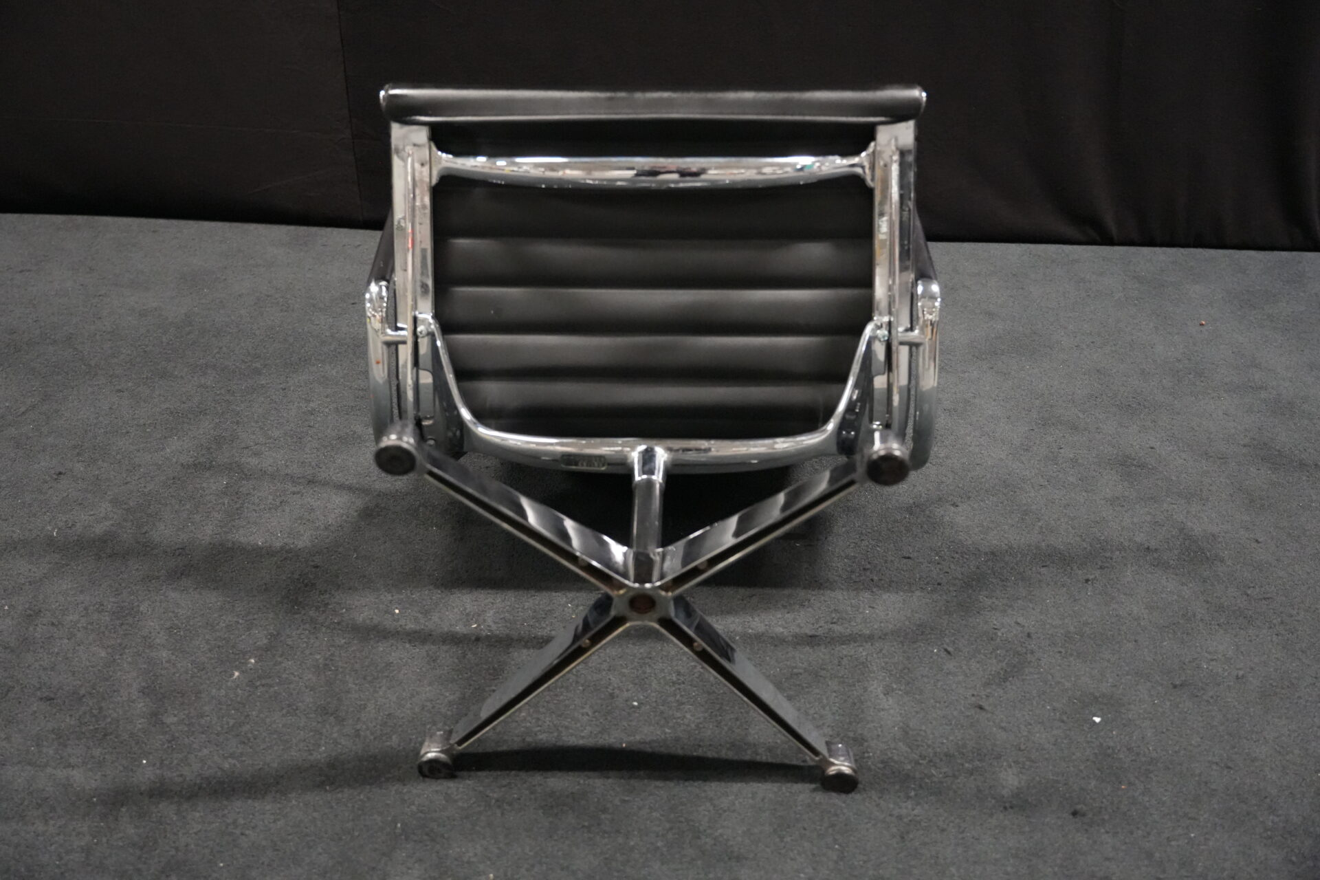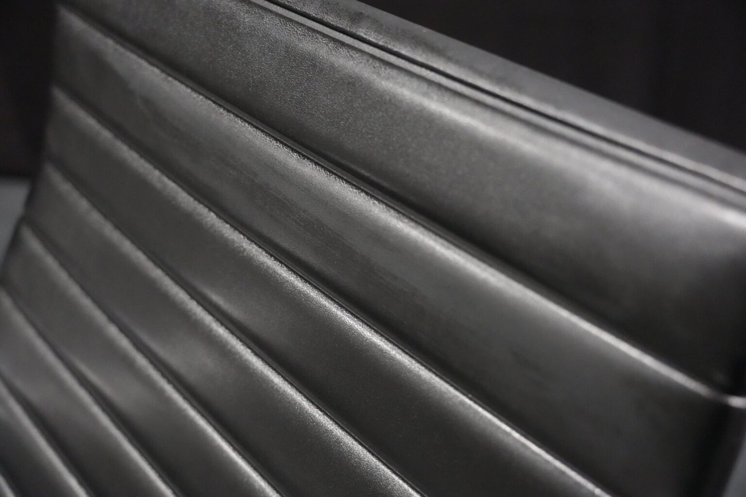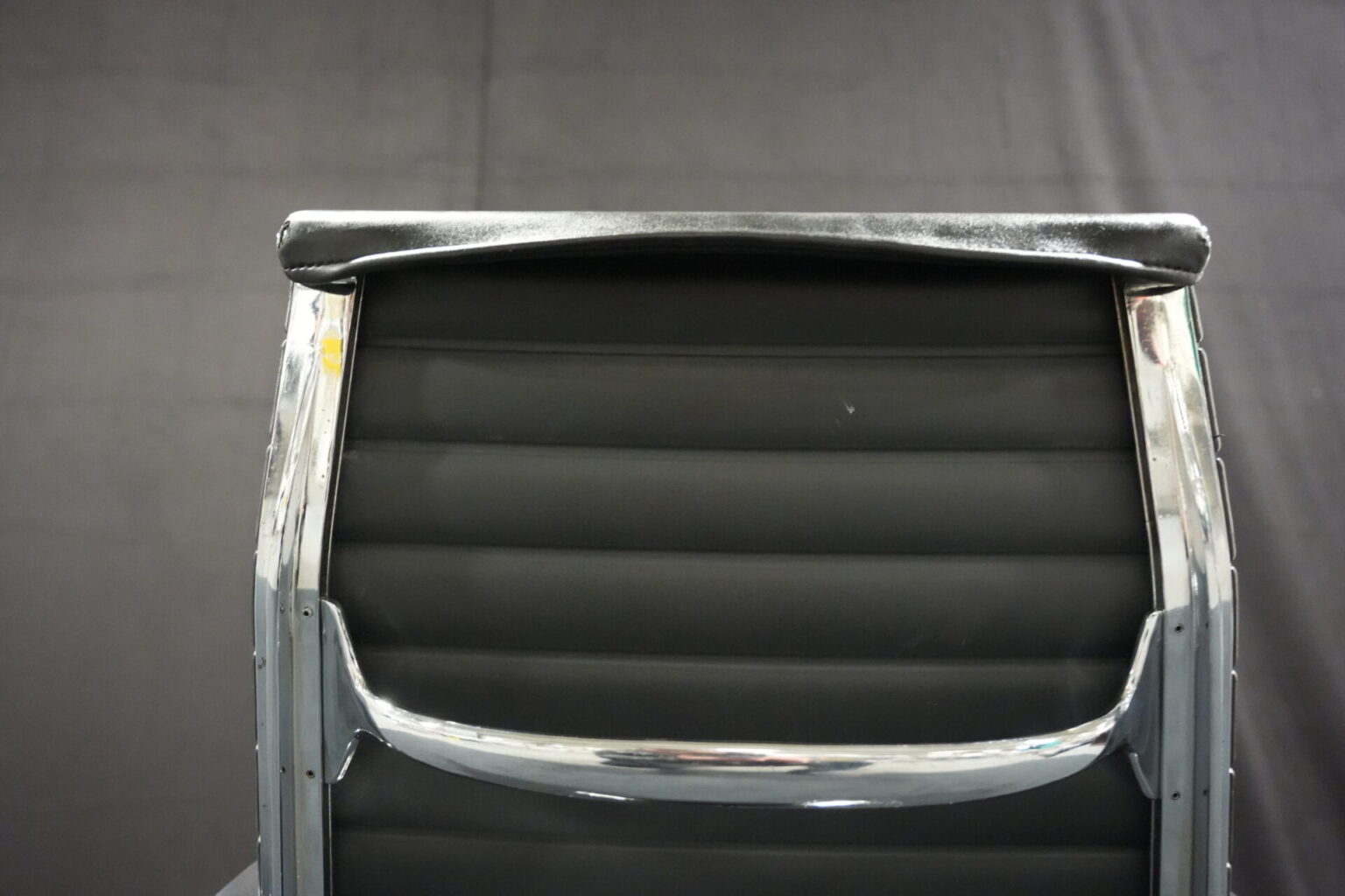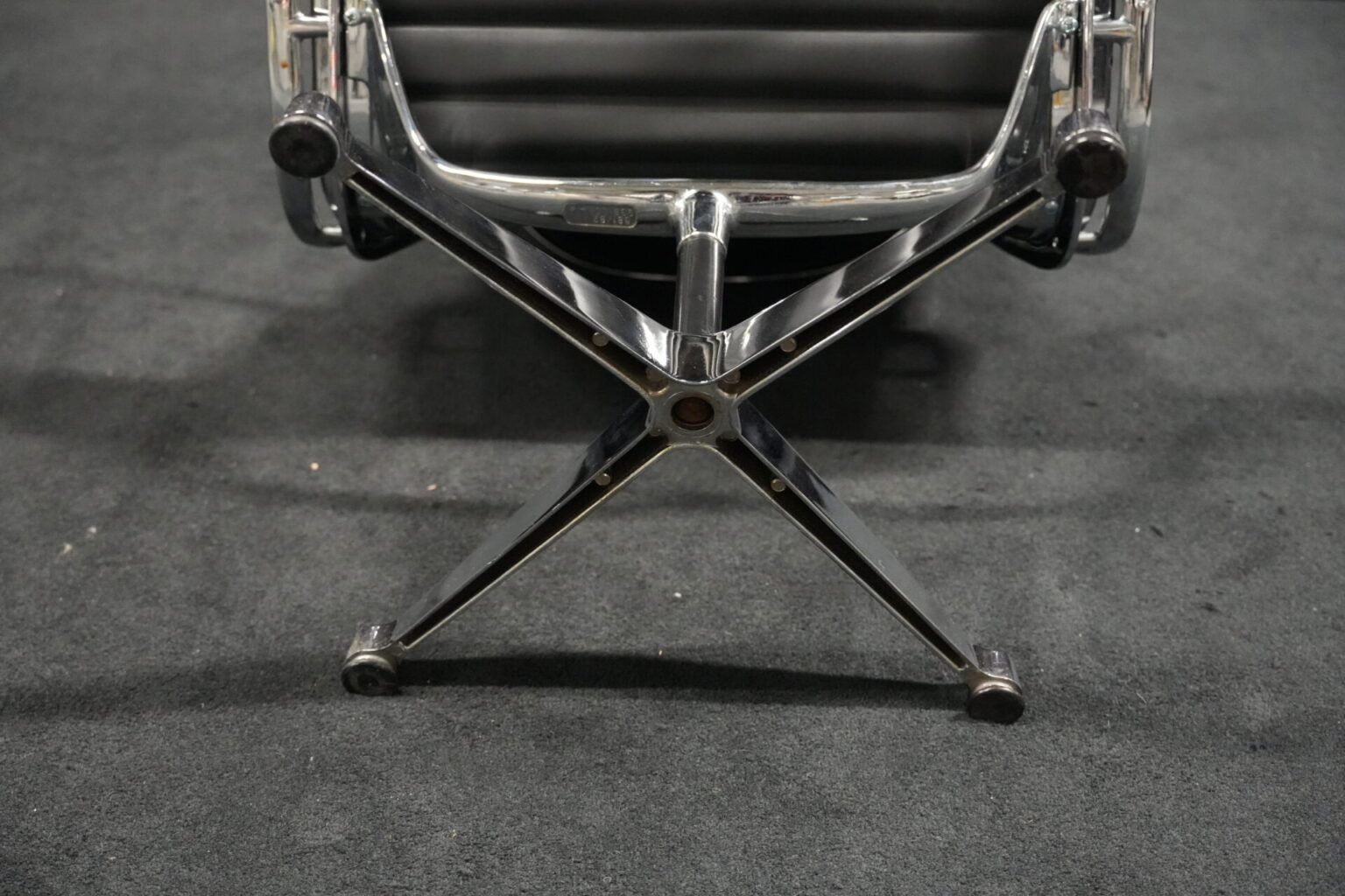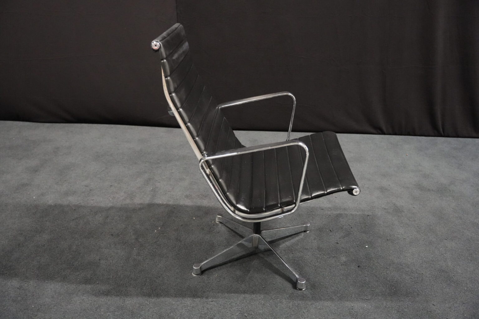 Vitra EA 116 Leder / Schwarz (drehbar) | Marke: Vitra | Bezug: Leder / schwarz | Rückseite: Leder / schwarz | Gestell: Aluminium-Druckguss verchromt |Ausstattung: mit Armlehnen hohe Rückenlehne 4-Sternfuß | Abmessungen: H: 90cm | SH: 35cm | B: 62cm | T: 72cm