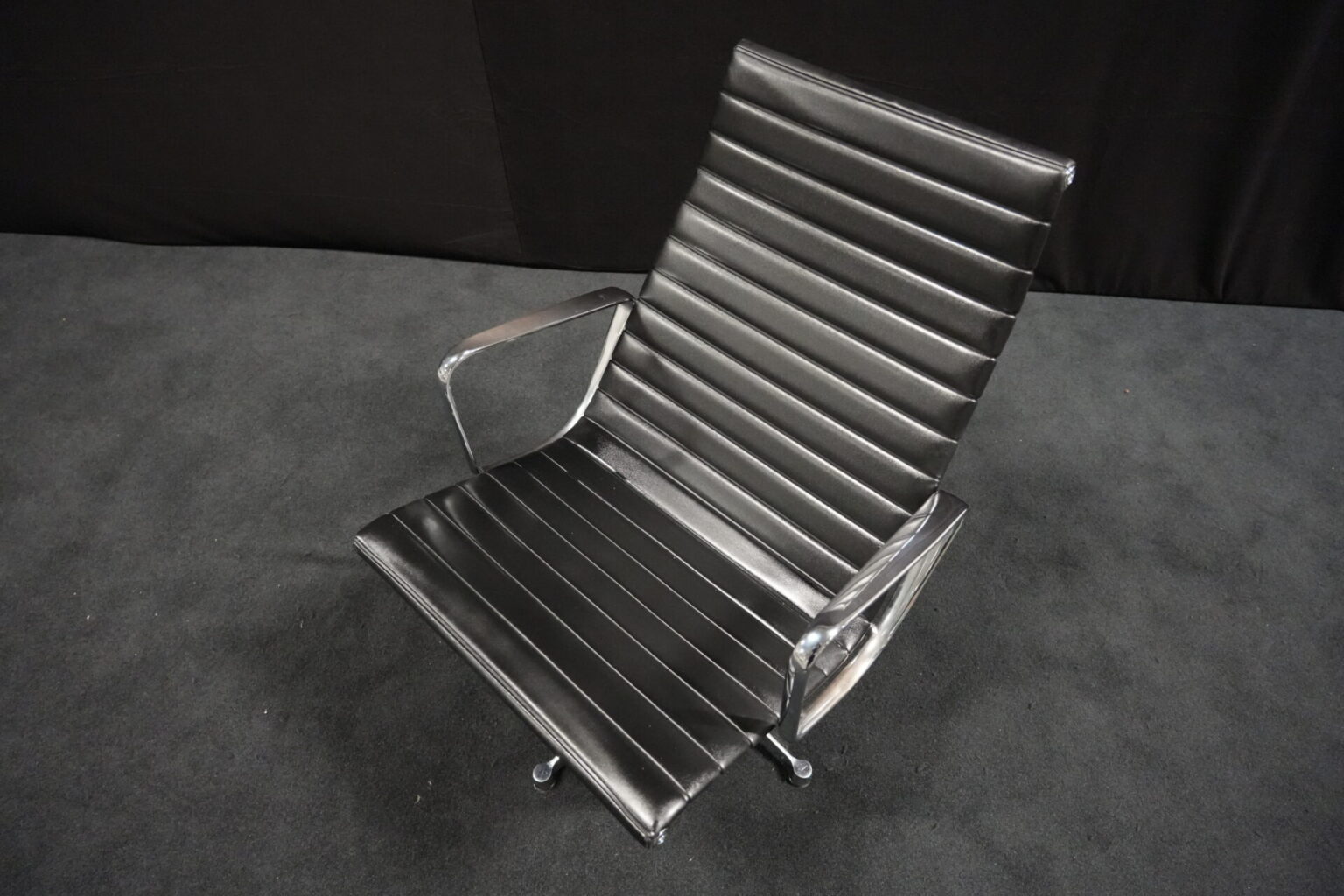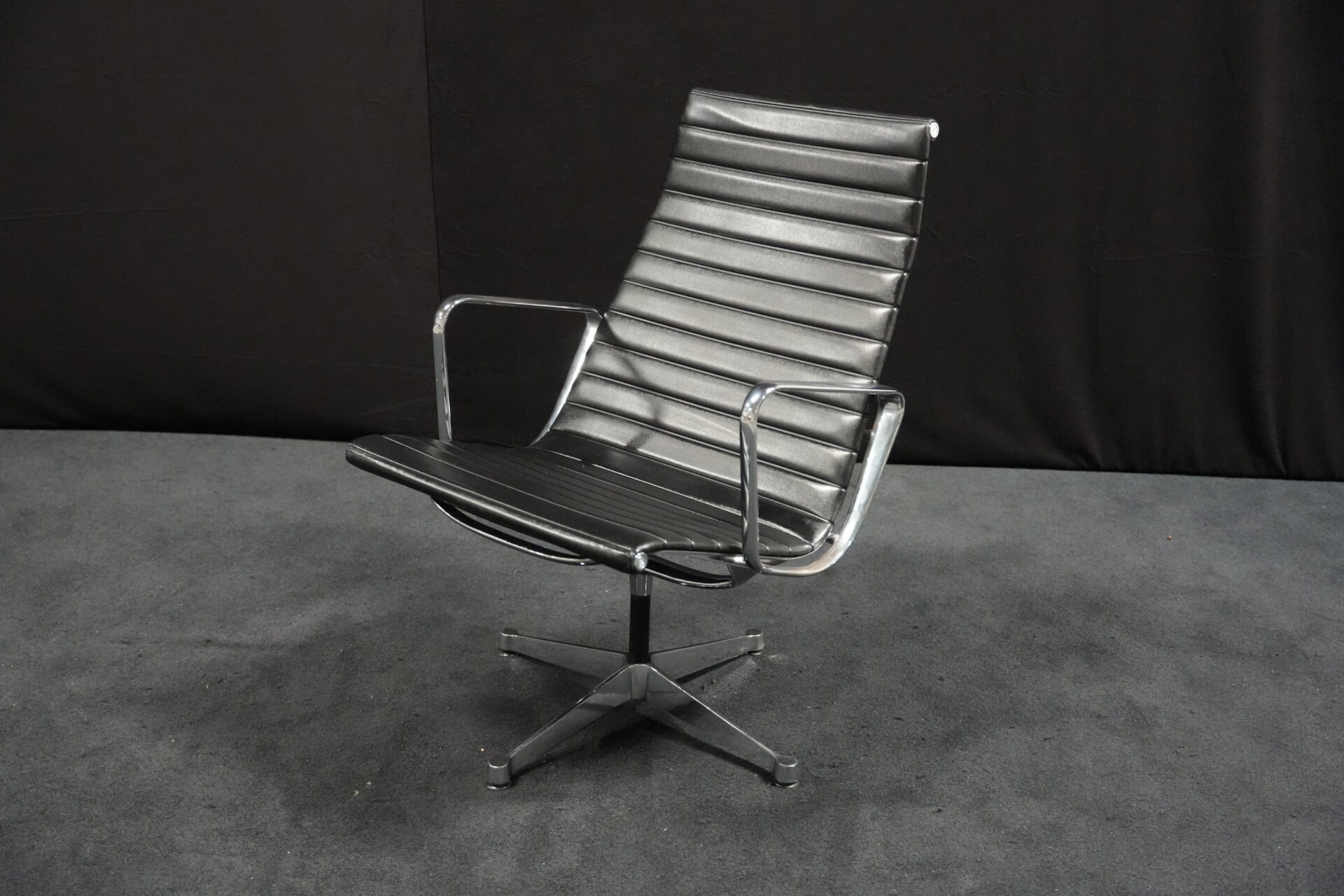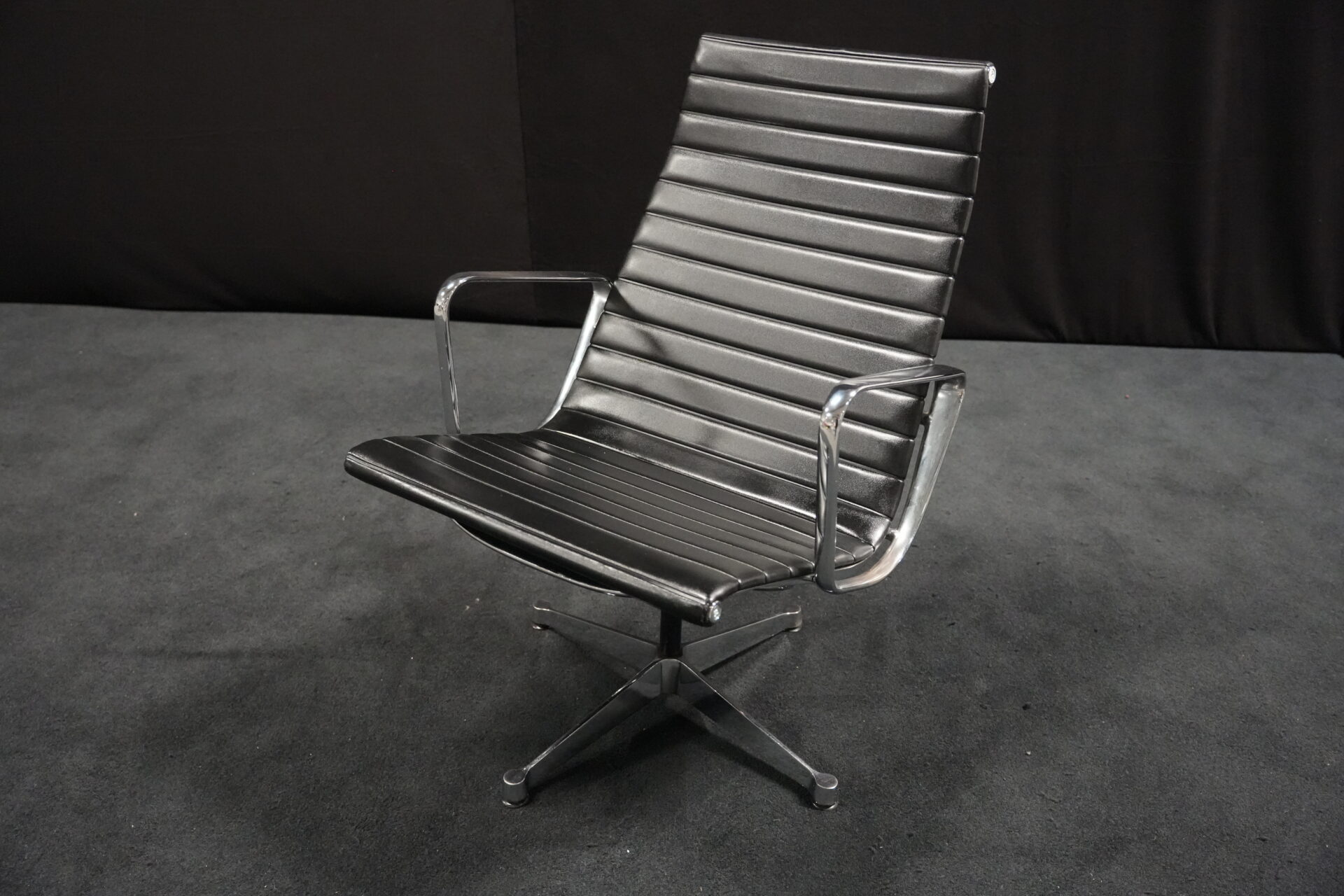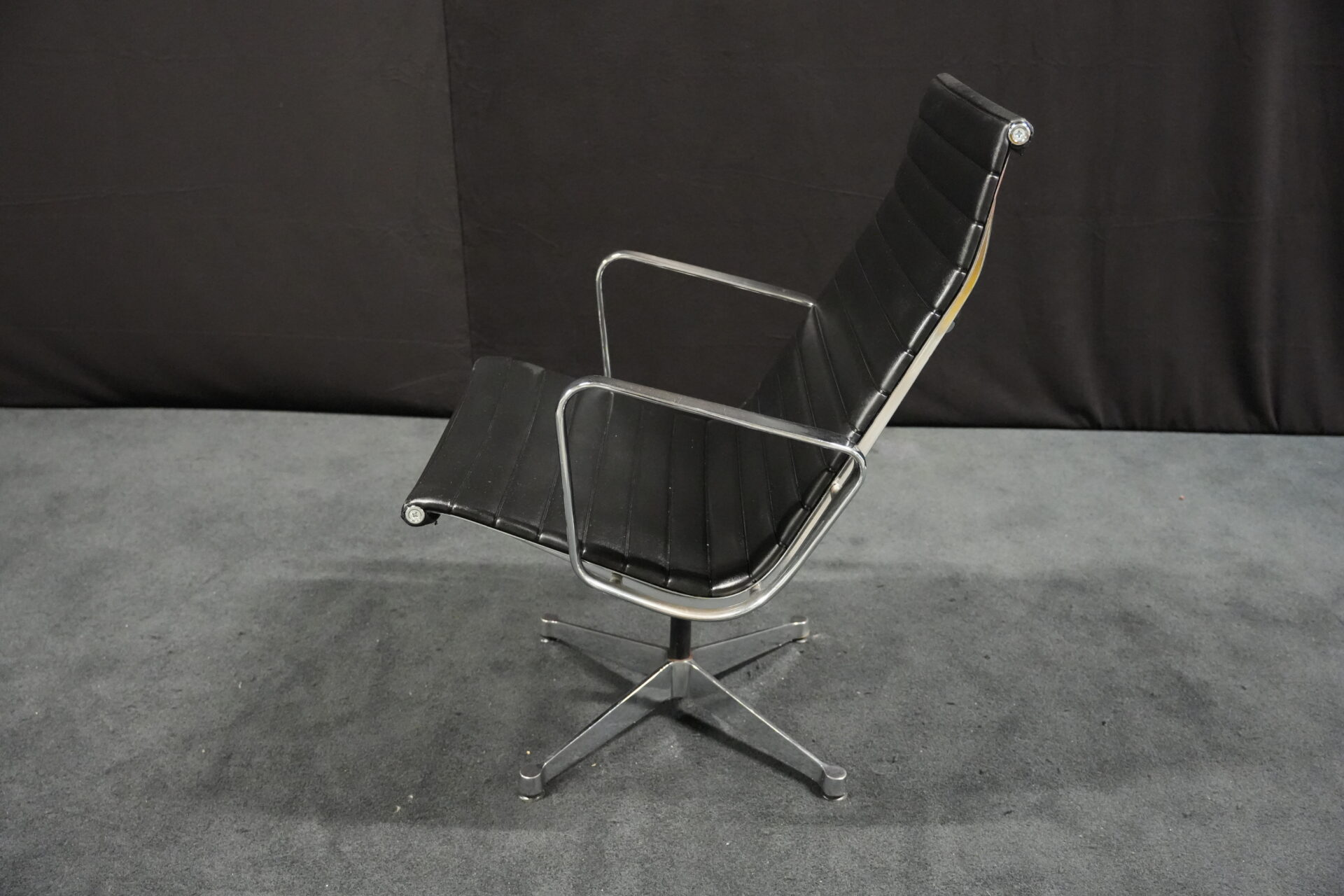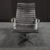 Vitra EA 116 Leder / Schwarz (drehbar) | Marke: Vitra | Bezug: Leder / schwarz | Rückseite: Leder / schwarz | Gestell: Aluminium-Druckguss verchromt |Ausstattung: mit Armlehnen hohe Rückenlehne 4-Sternfuß | Abmessungen: H: 90cm | SH: 35cm | B: 62cm | T: 72cm