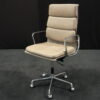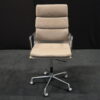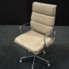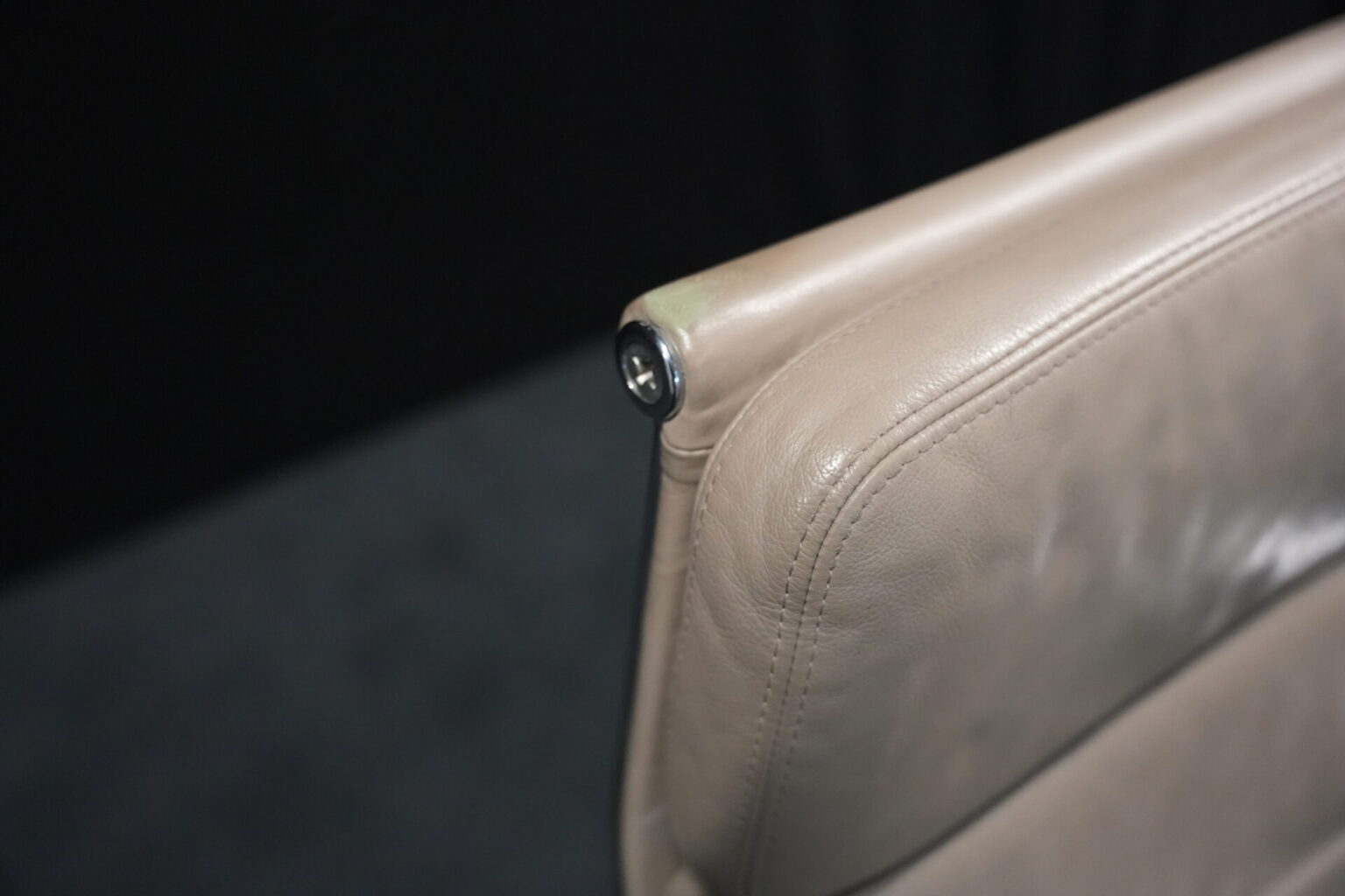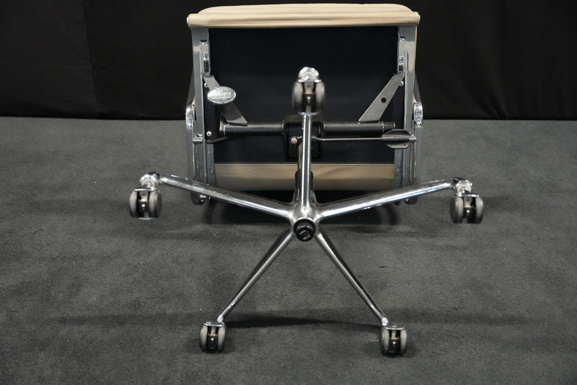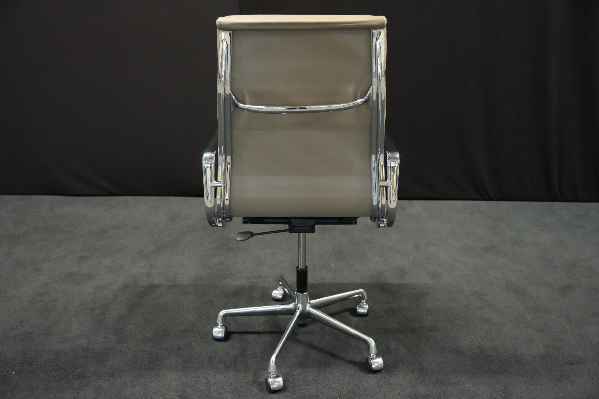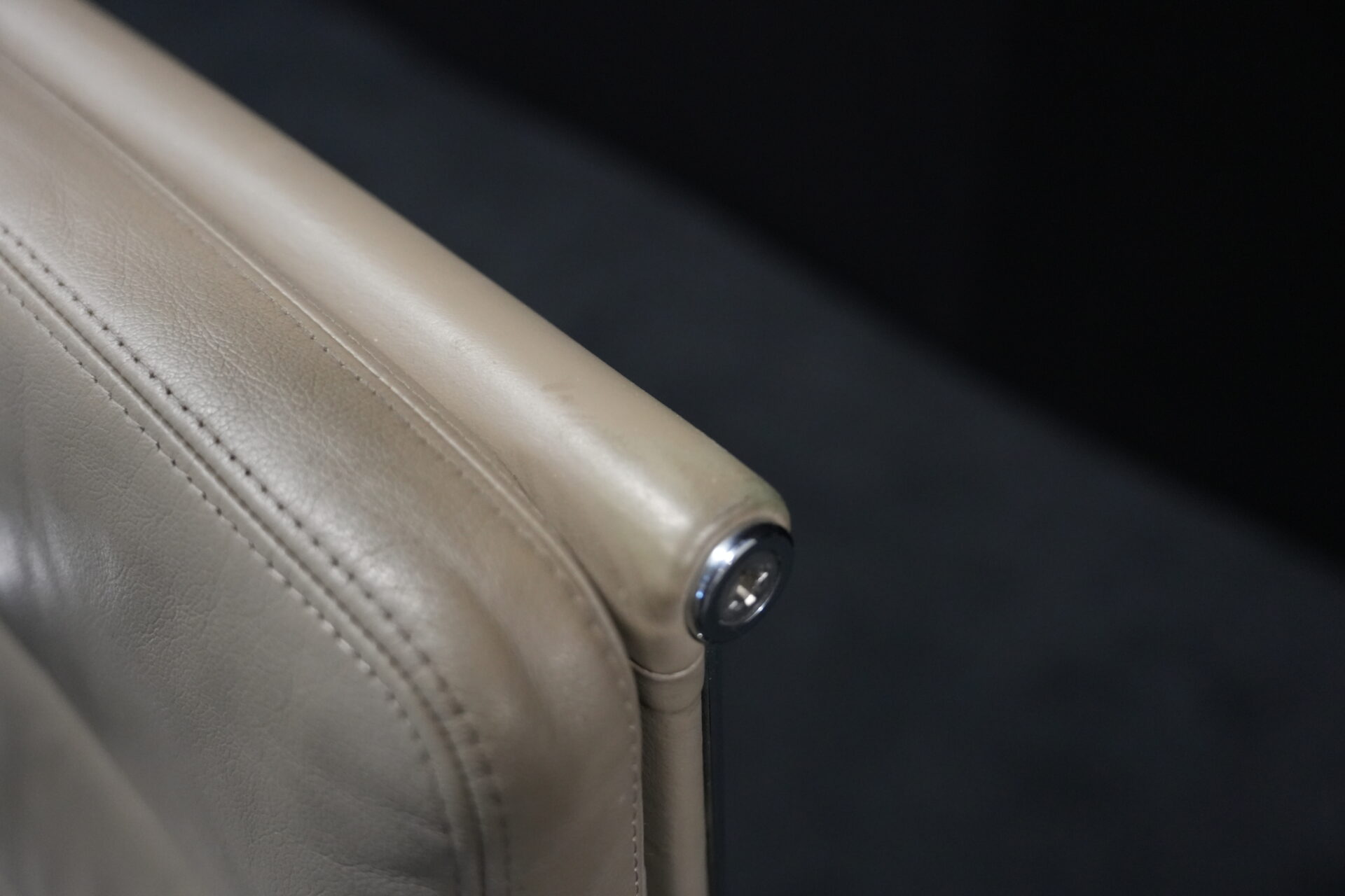 Vitra EA 219 Leder / Dunkelbeige / Grau | Marke: Vitra | Bezug: Soft Pad Leder / dunkelbeige | Gestell: Aluminium-Druckguss verchromt | Rückseite: Leder / dunkelbeige |Ausstattung: drehbar, mit Armlehnen