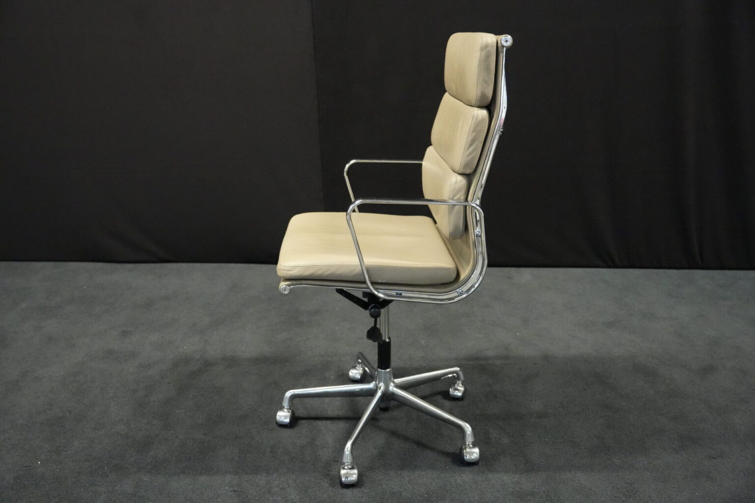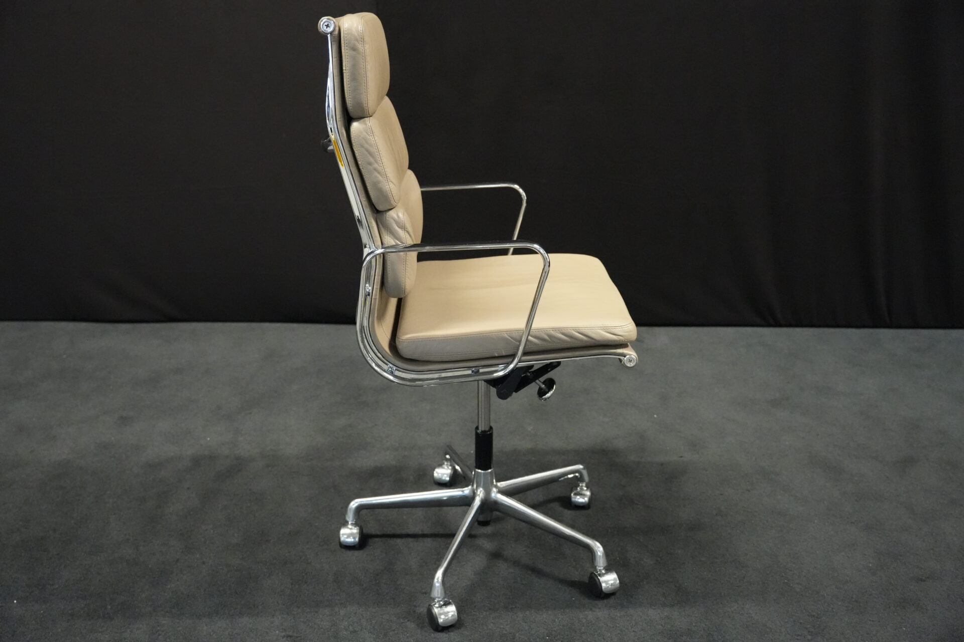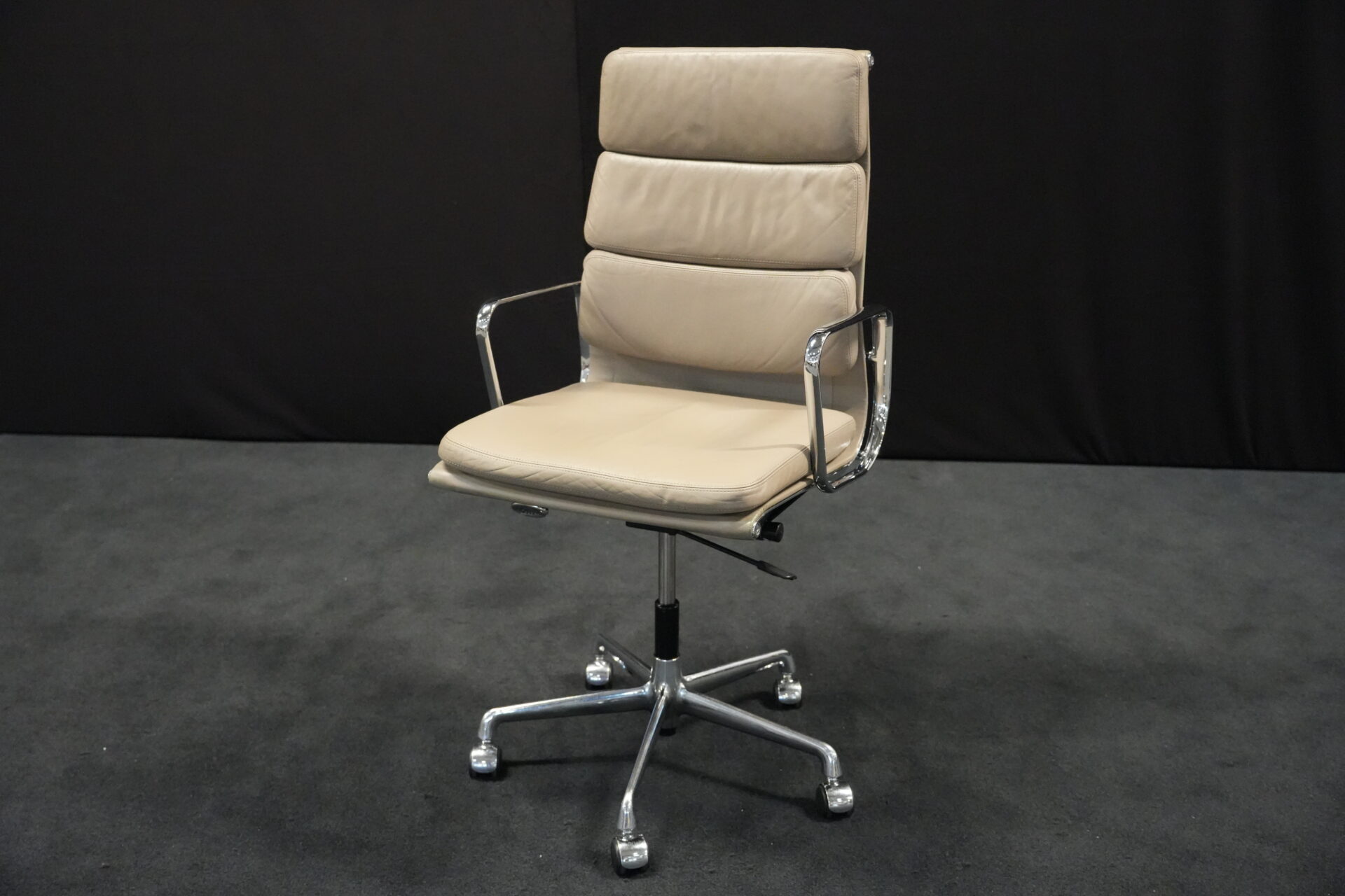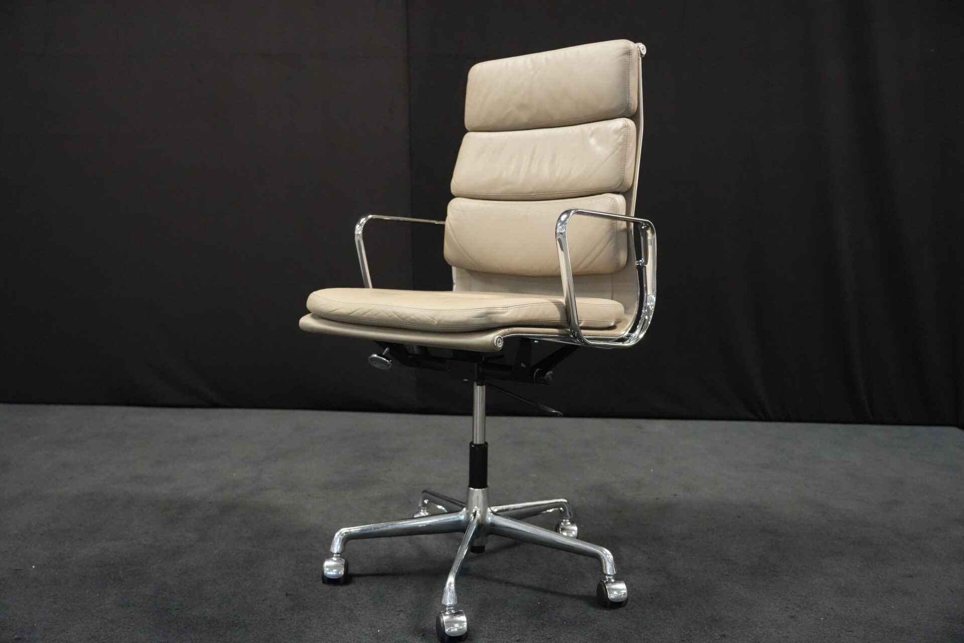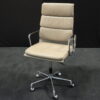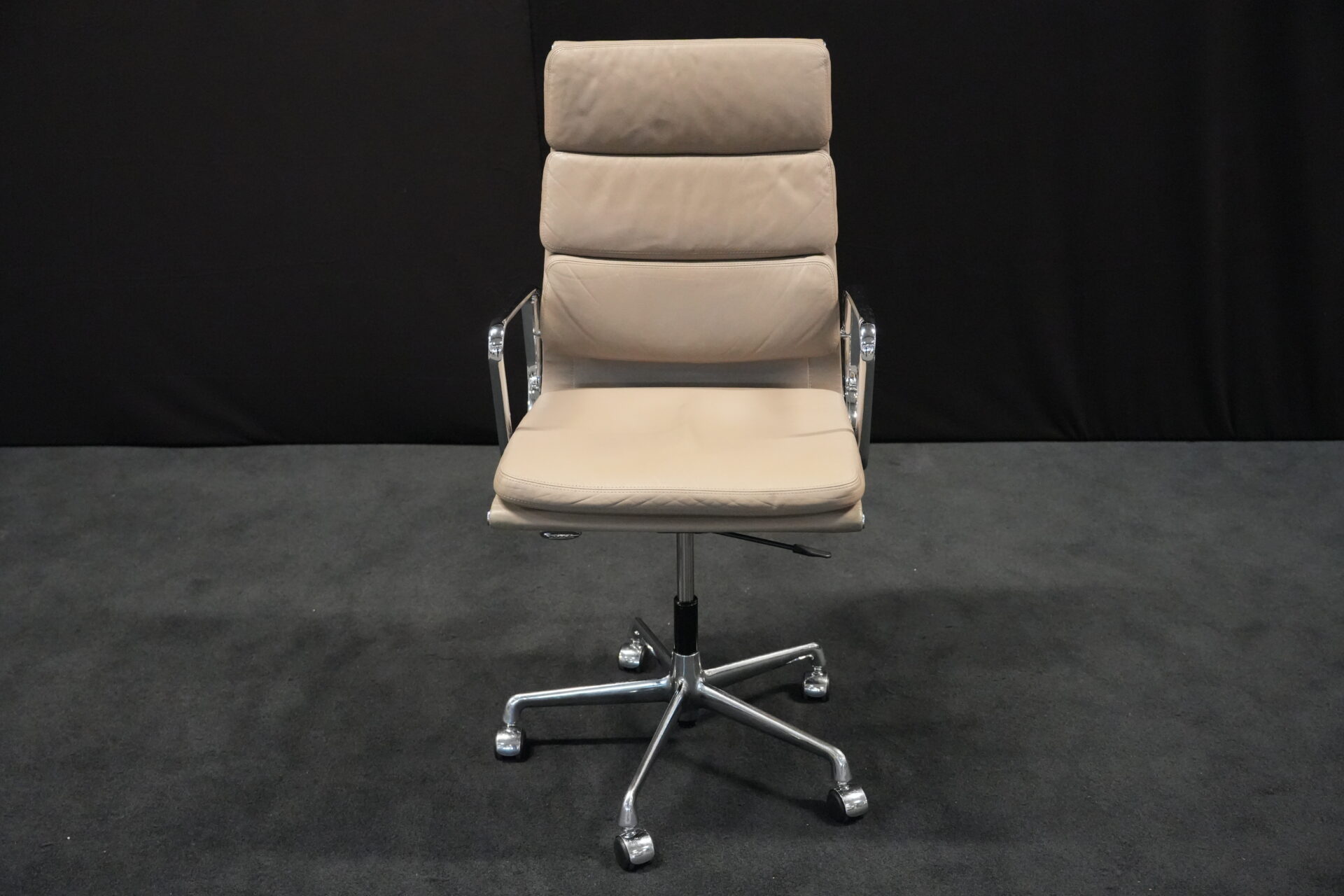 Vitra EA 219 Leder / Dunkelbeige / Grau | Marke: Vitra | Bezug: Soft Pad Leder / dunkelbeige | Gestell: Aluminium-Druckguss verchromt | Rückseite: Leder / dunkelbeige |Ausstattung: drehbar, mit Armlehnen