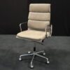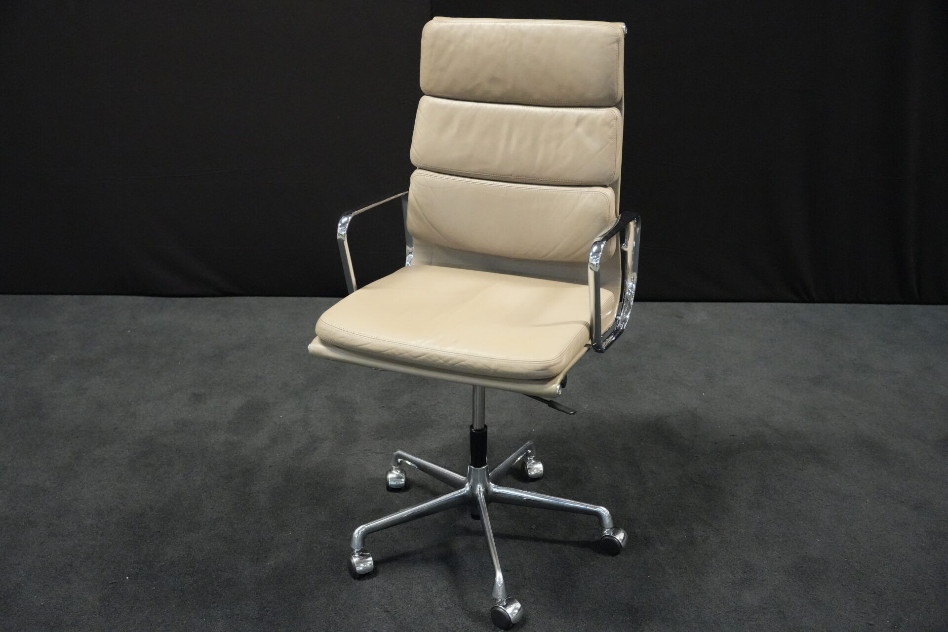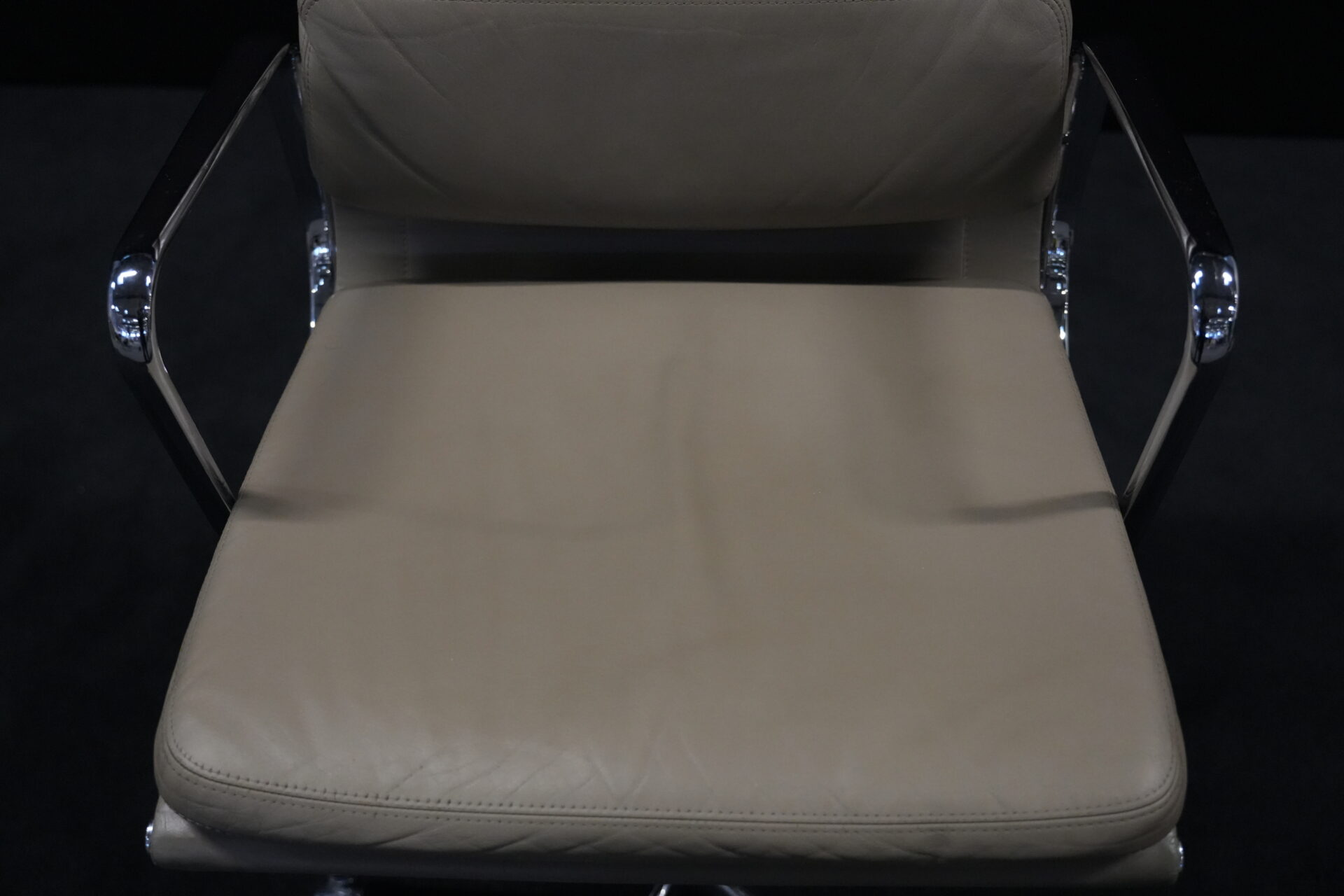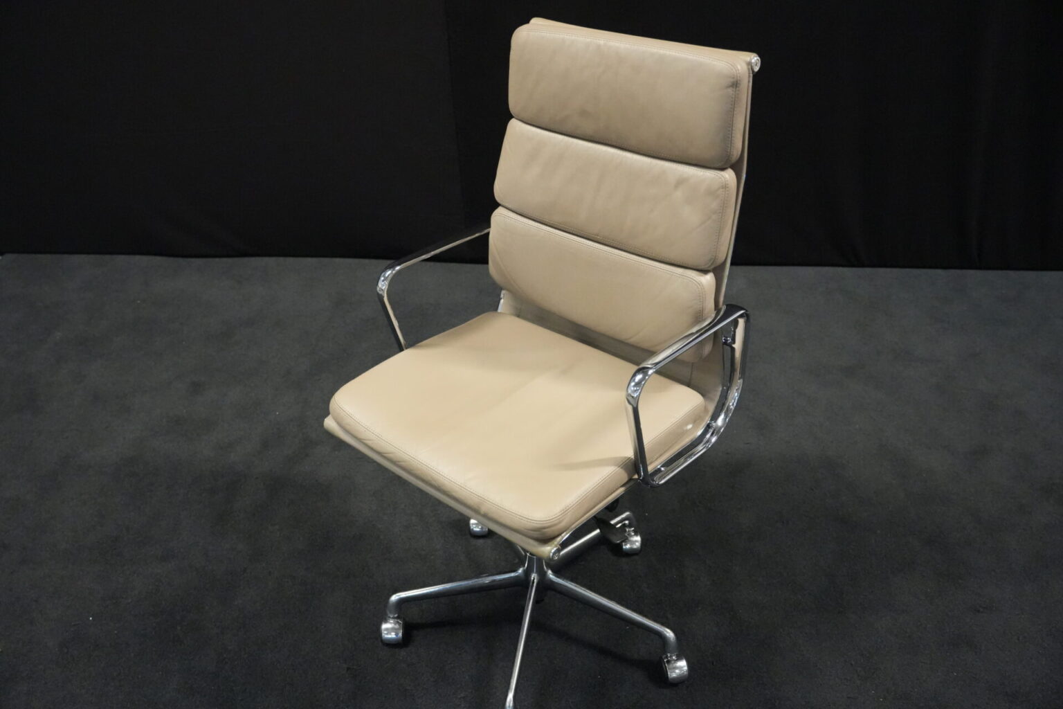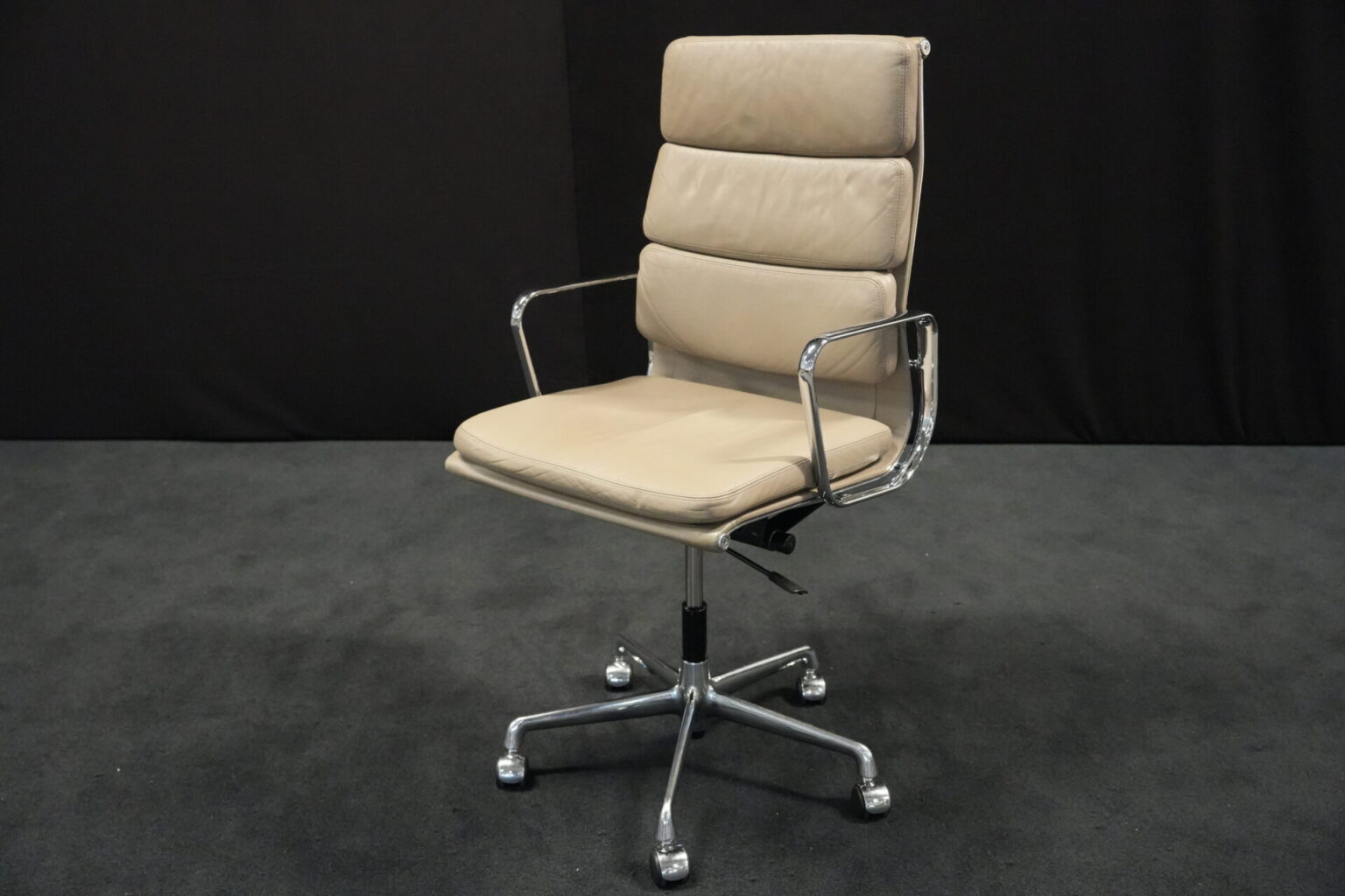 Vitra EA 219 Leder / Dunkelbeige / Grau | Marke: Vitra | Bezug: Soft Pad Leder / dunkelbeige | Gestell: Aluminium-Druckguss verchromt | Rückseite: Leder / dunkelbeige |Ausstattung: drehbar, mit Armlehnen