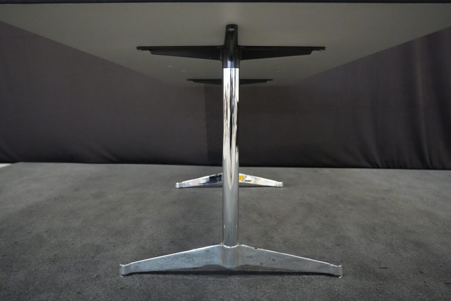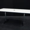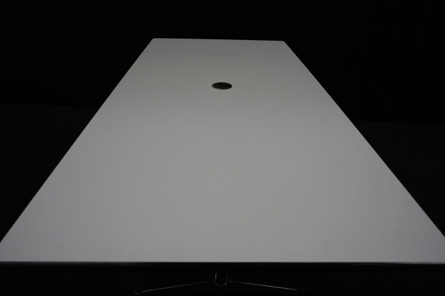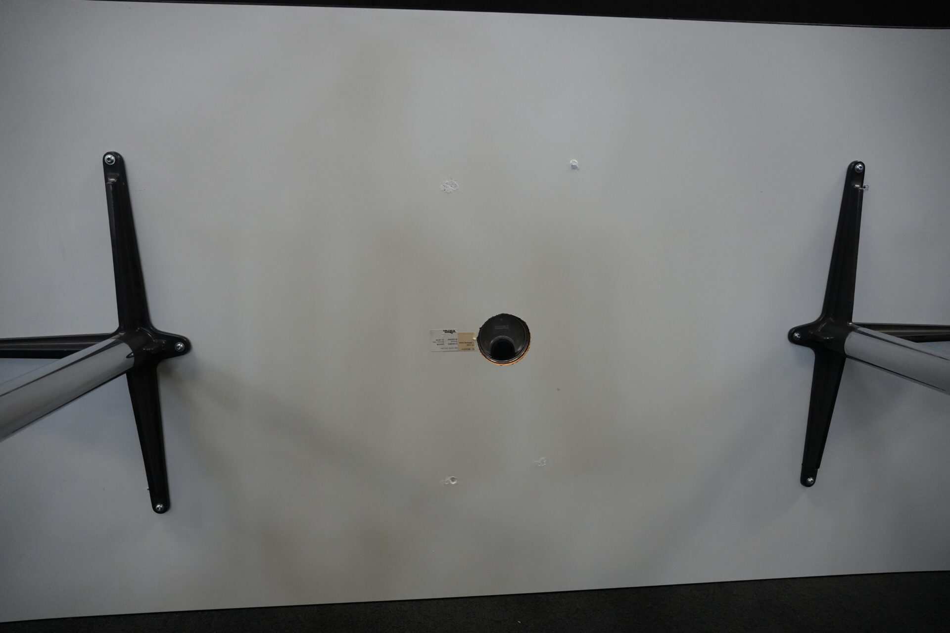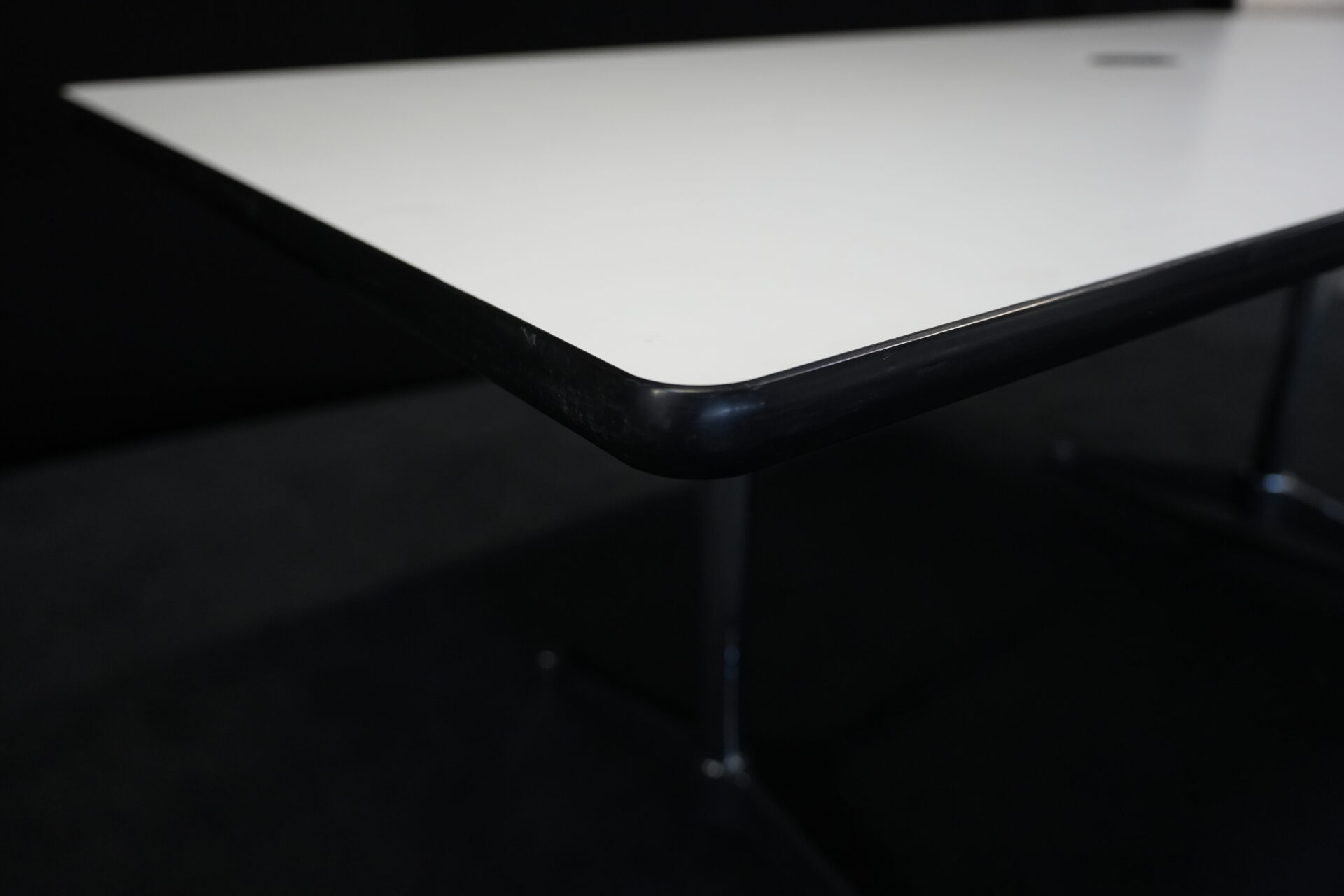 Vitra Tisch Kunstharz / weiß | Marke: Vitra | Tischplatte: weiß | Gestell: verchromt | Ausstattung: Kabel-Loch in der Mitte | Abmessungen: H: 73cm | B: 194cm | T: 90cm