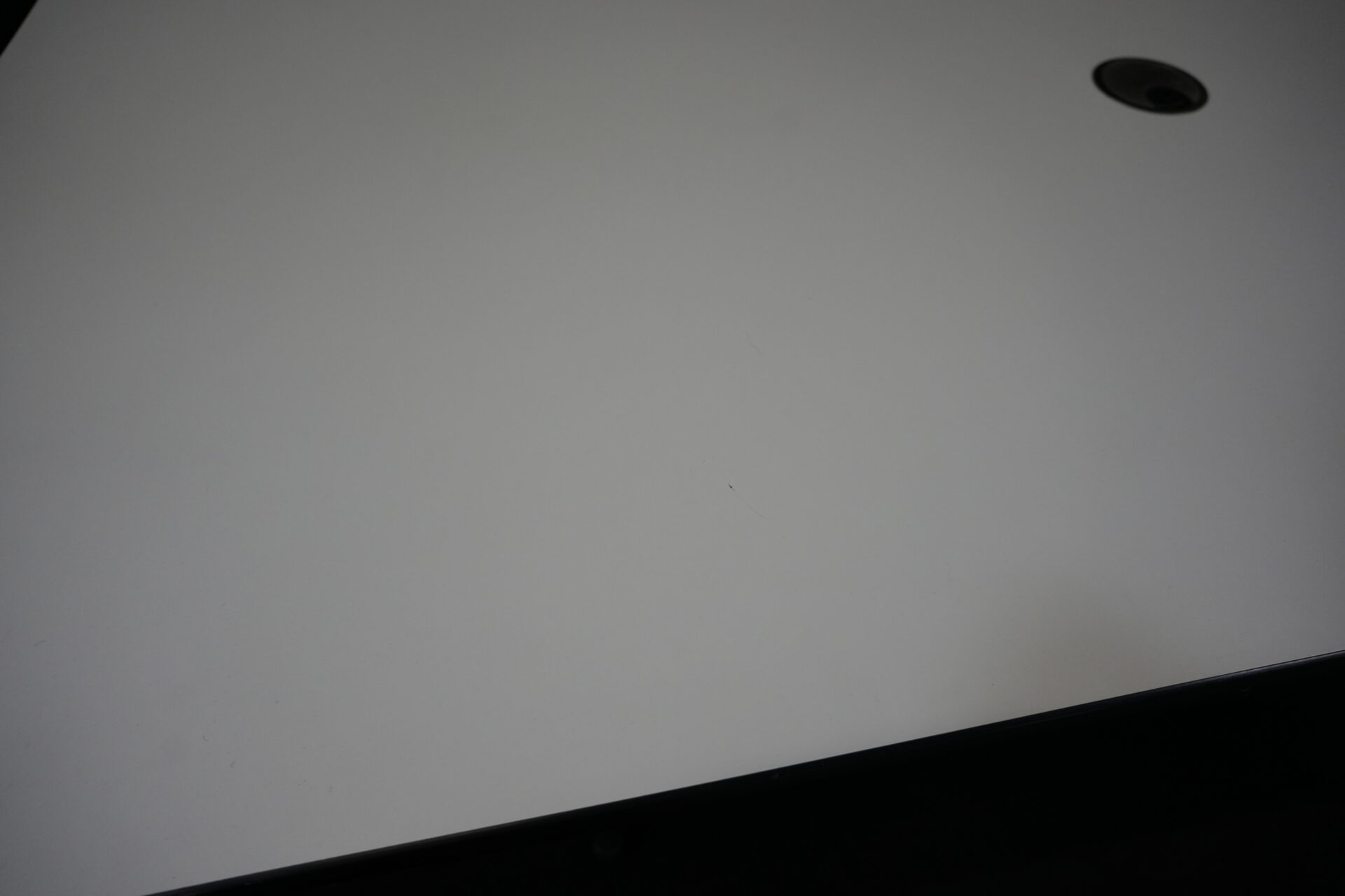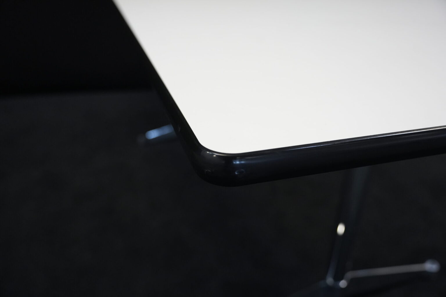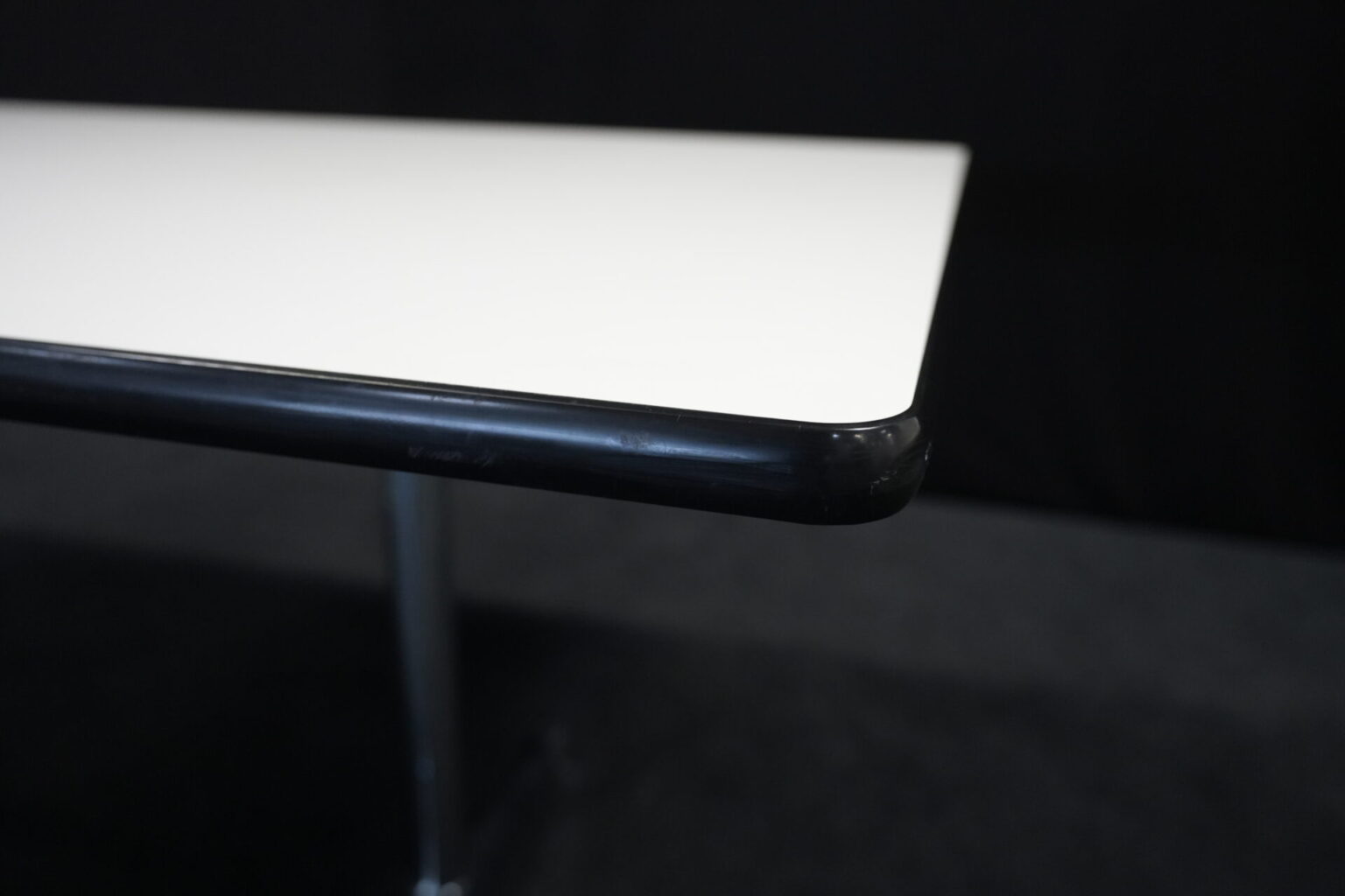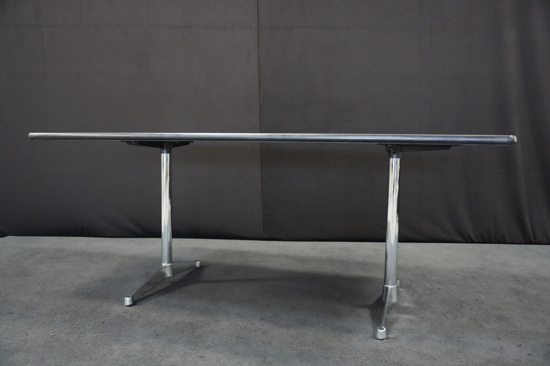 Vitra Tisch Kunstharz / weiß | Marke: Vitra | Tischplatte: weiß | Gestell: verchromt | Ausstattung: Kabel-Loch in der Mitte | Abmessungen: H: 73cm | B: 194cm | T: 90cm
