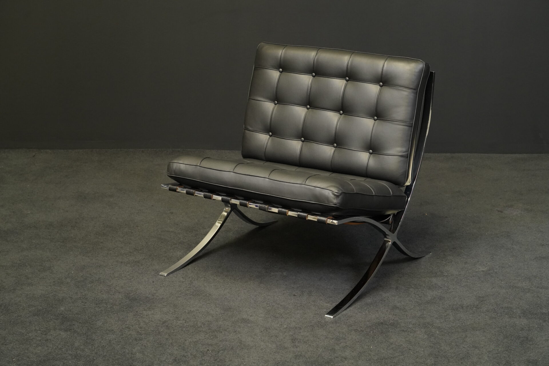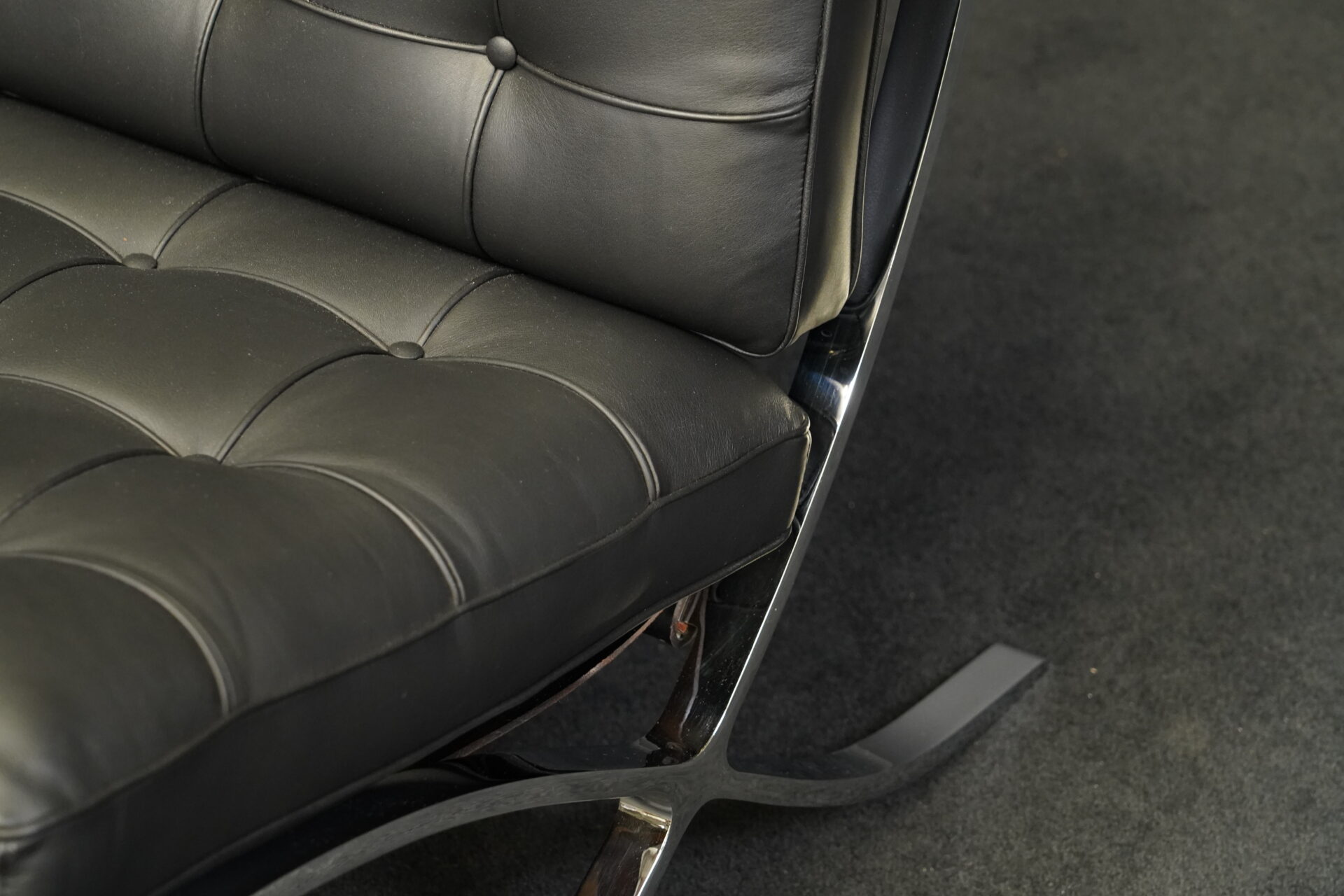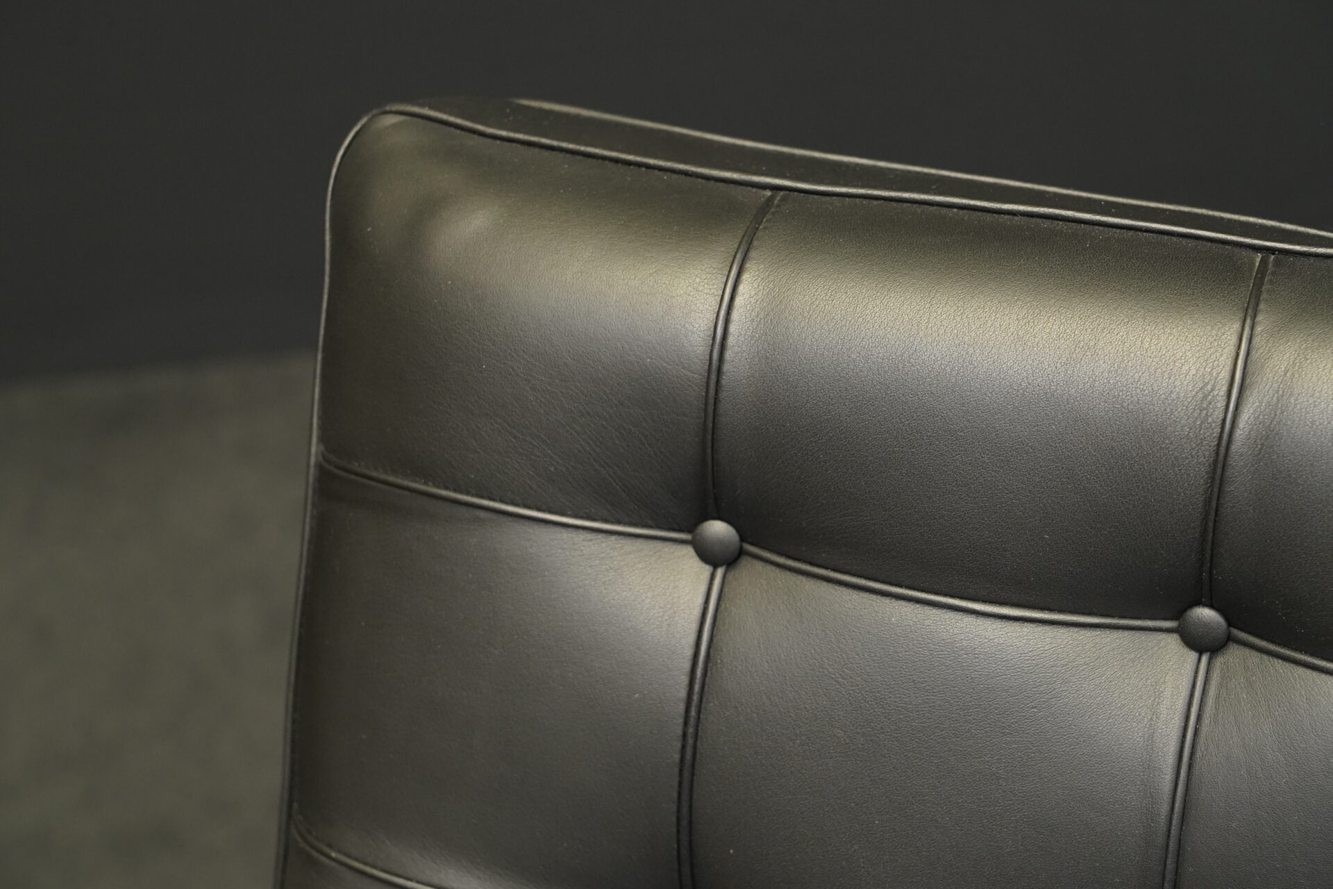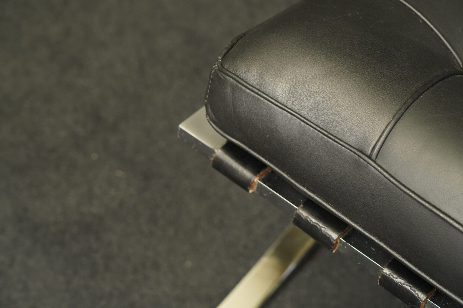Leder | Schwarz | Gestell verchromt | H: 79cm | SH: 33-43cm | B: 74cm | T: 77cm