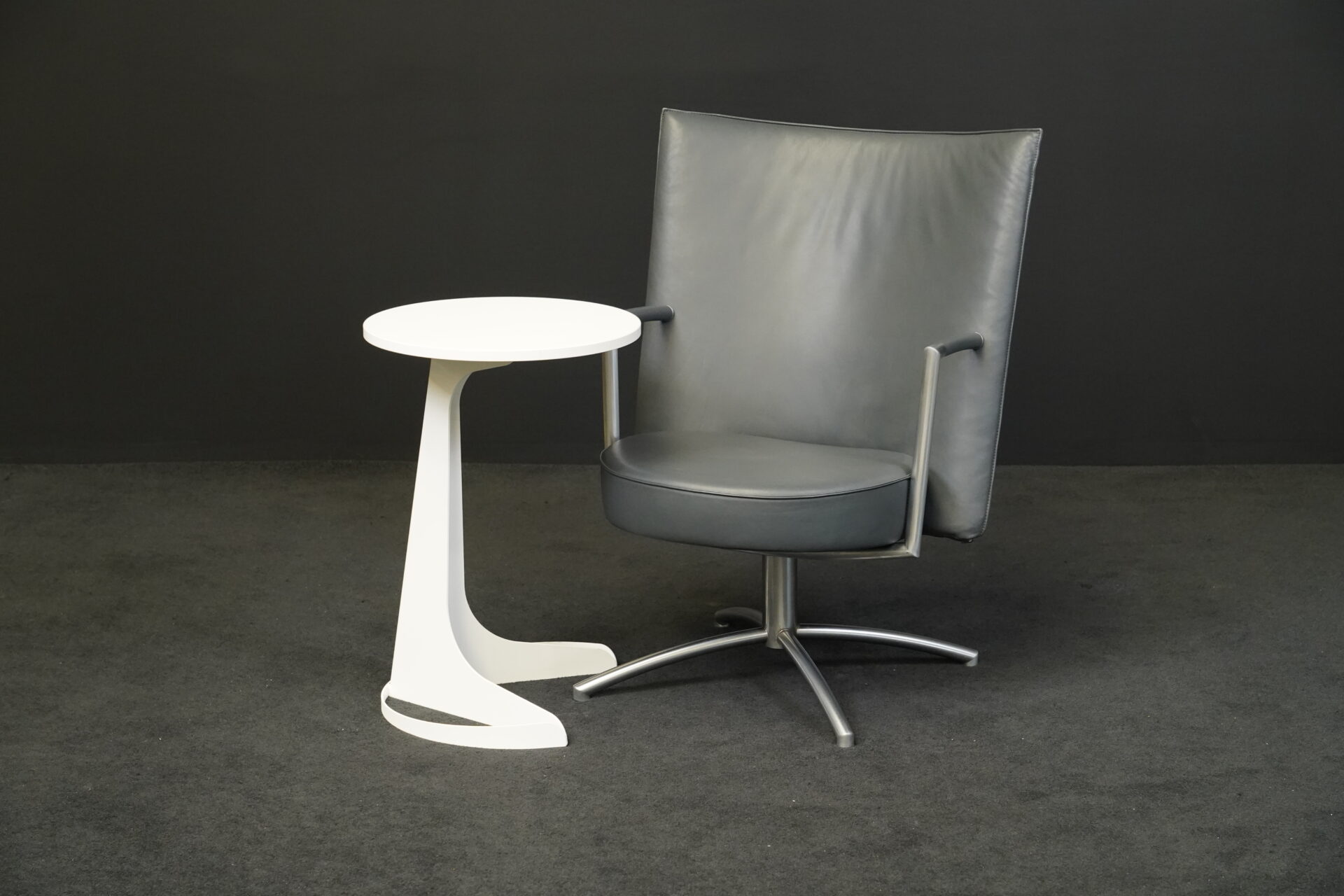 Sessel | Leder | Schwarz | Gestell Alu poliert | drehbar | H: 90cm | SH: 43cm | B: 71cm | T: 60cm