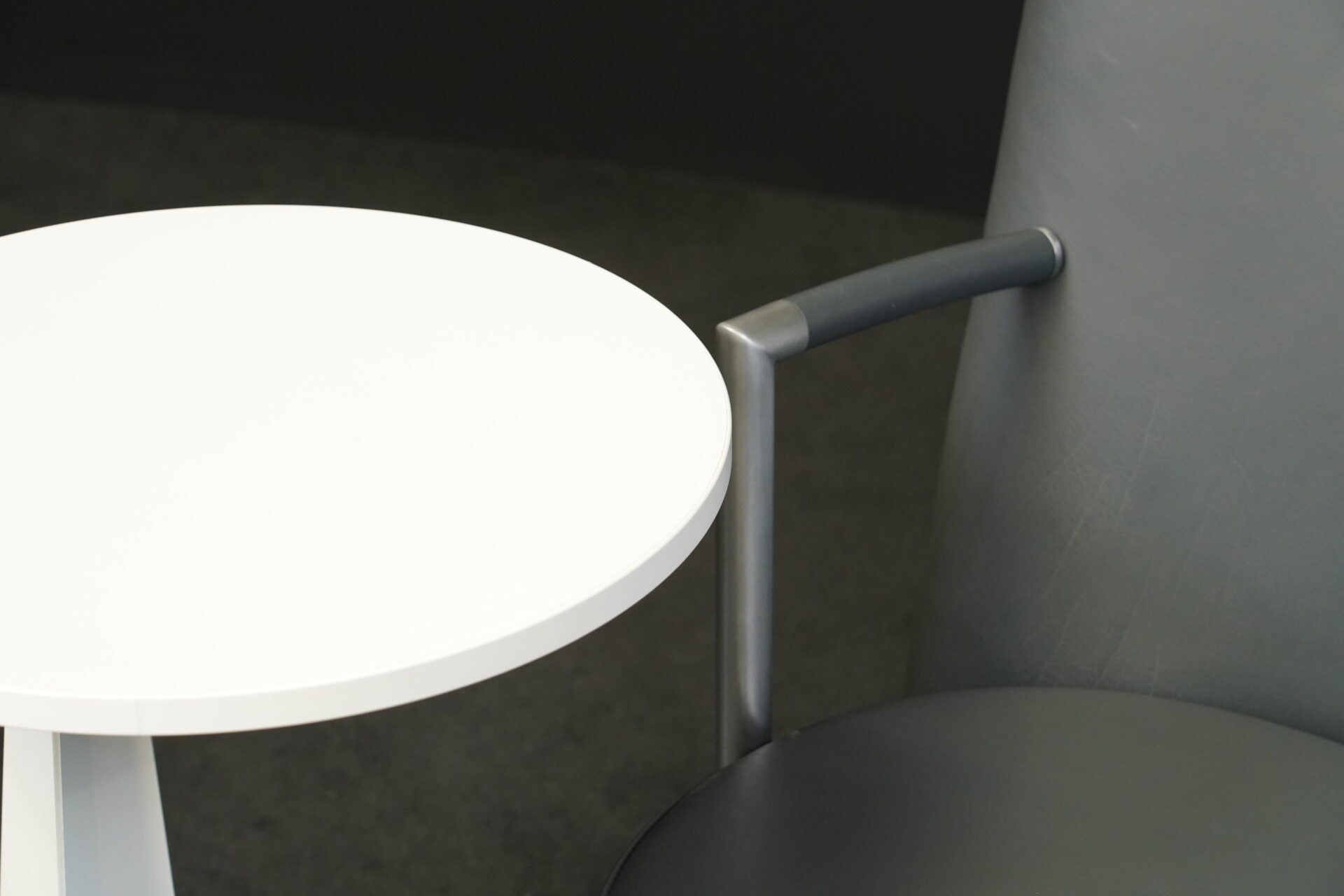 2er Set EJ70 Sessel Partner Leder Schwarz & Beistelltisch Weiß