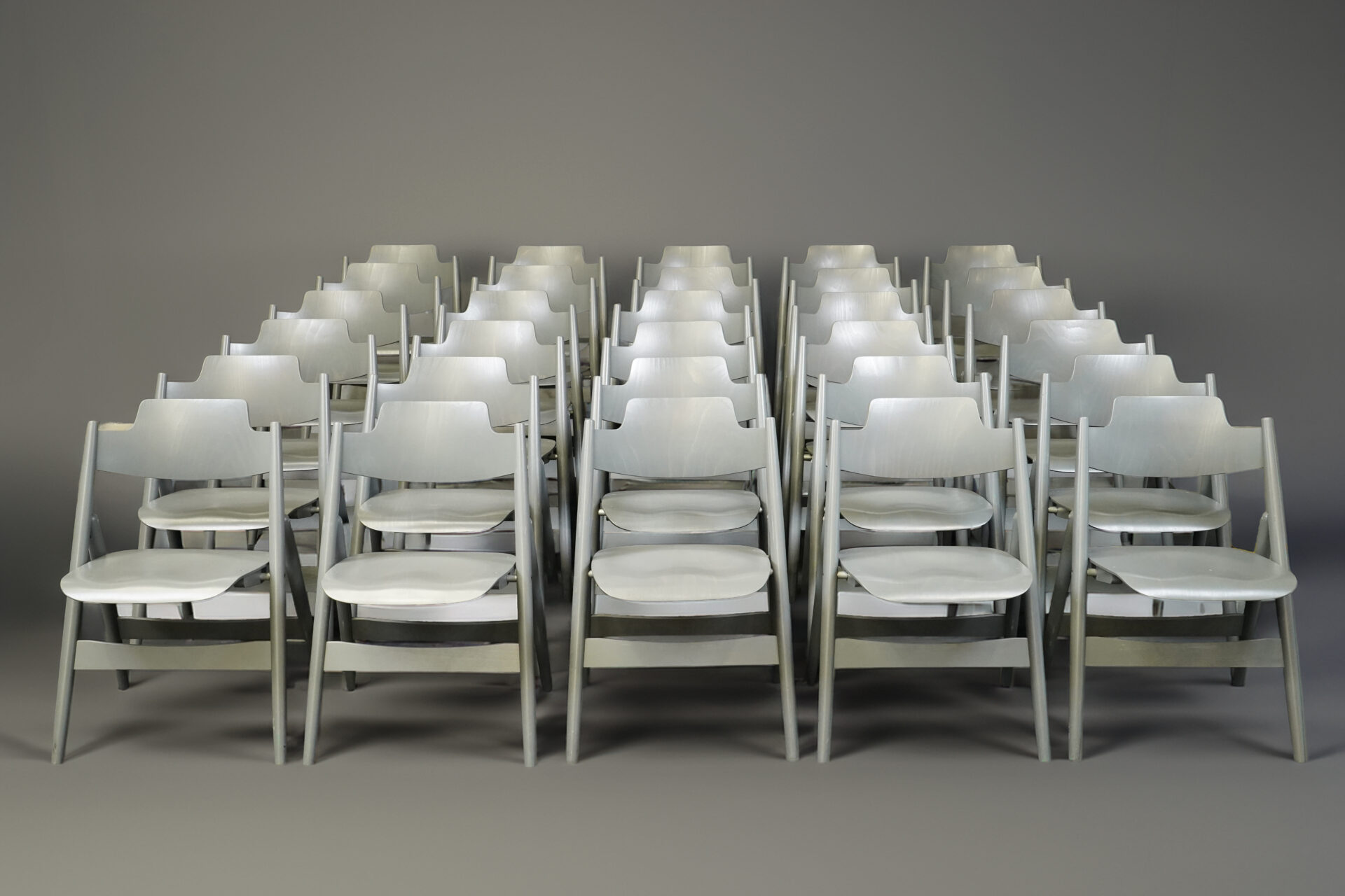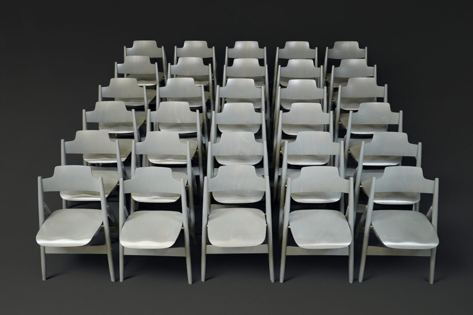 Set aus 30 Stühlen | Holz | Grau | klappbar | H: 77,5cm | SH: ca. 44,5cm | B: 50cm | T: ca. 48cm