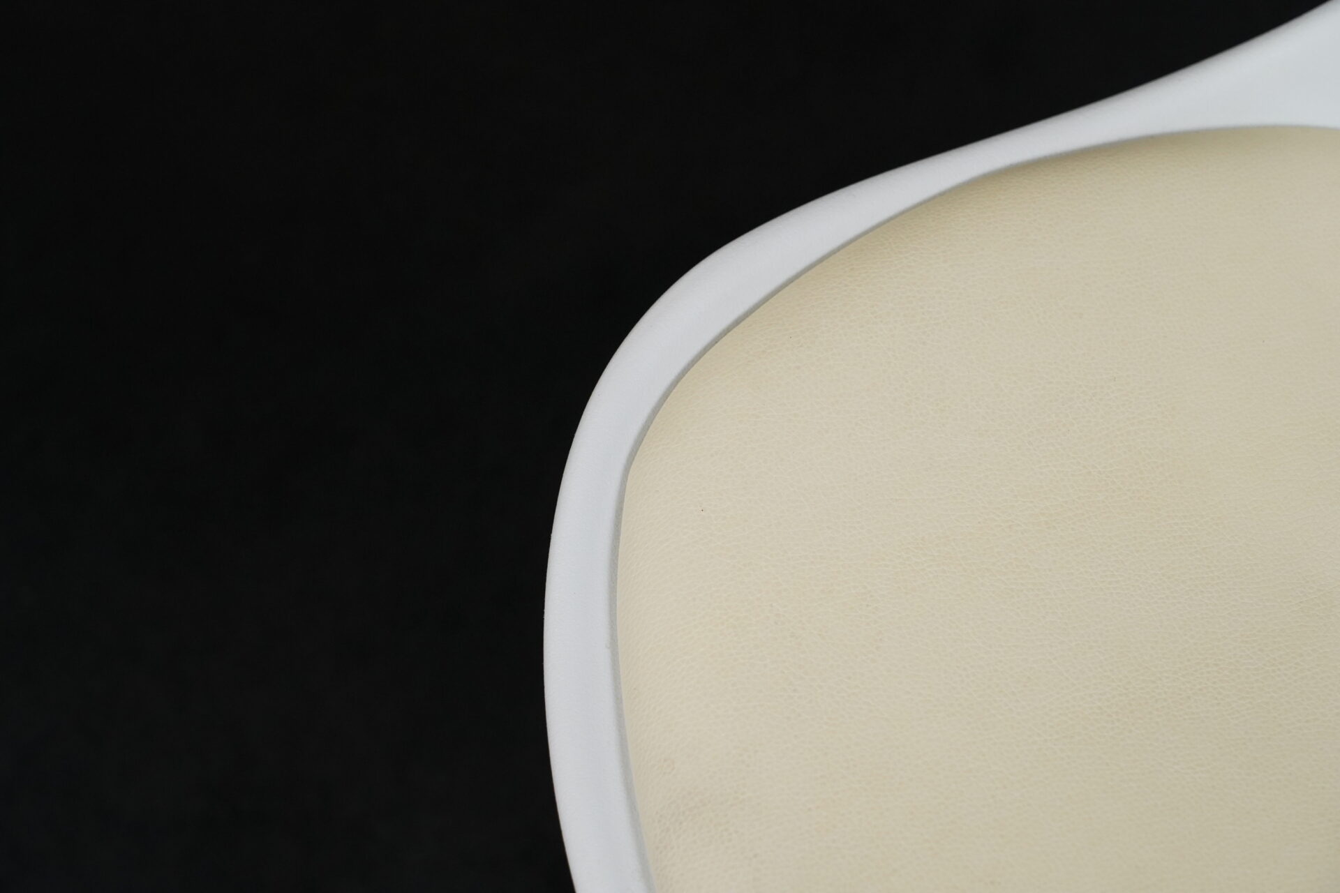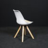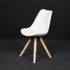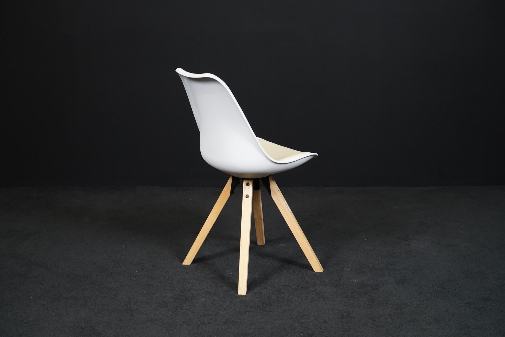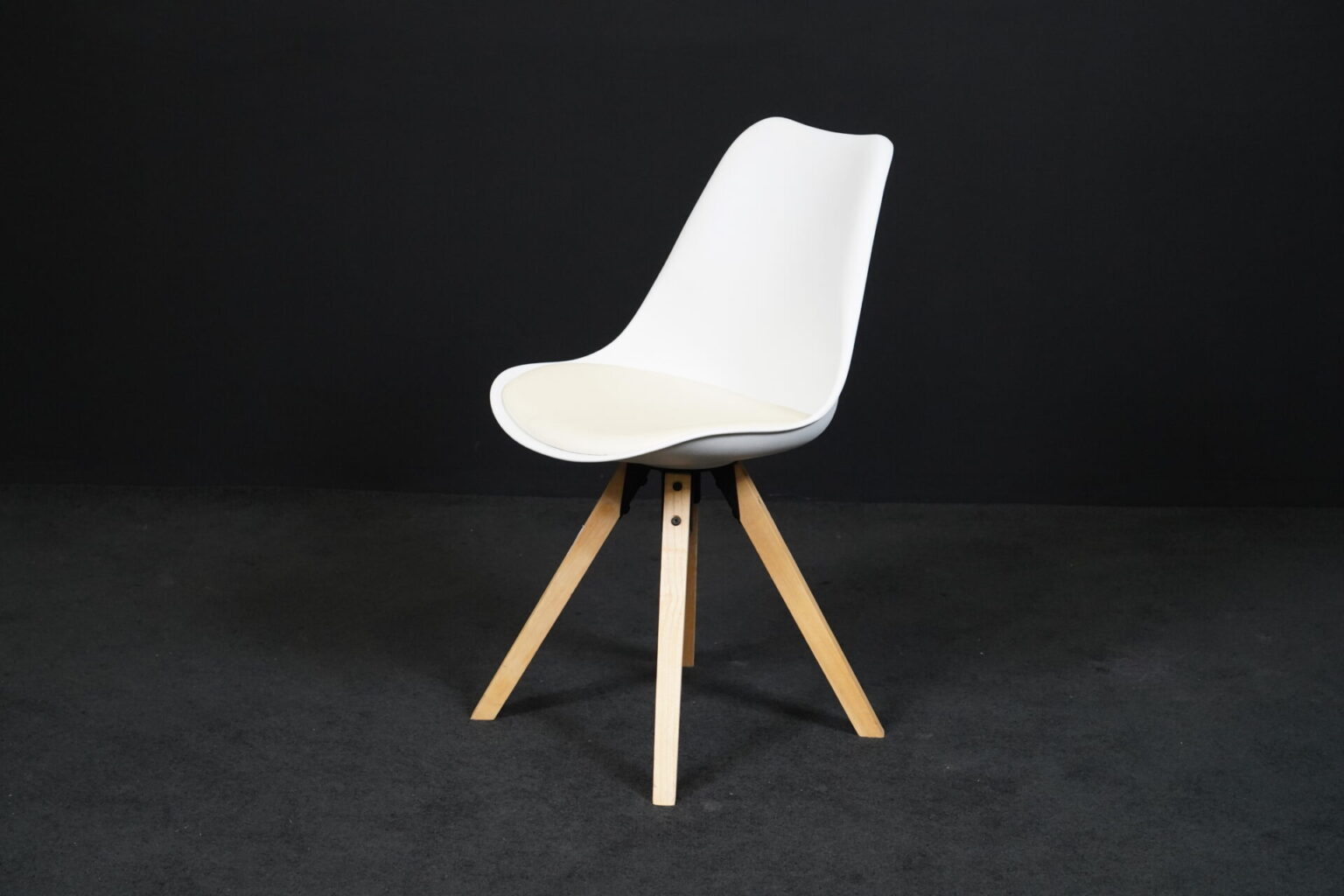 Kunststoff | Weiß | Sitzfläche Hopsak Beige | Gestell Holz | H: 85cm | SH: 49cm | B: 48cm | T: 52cm