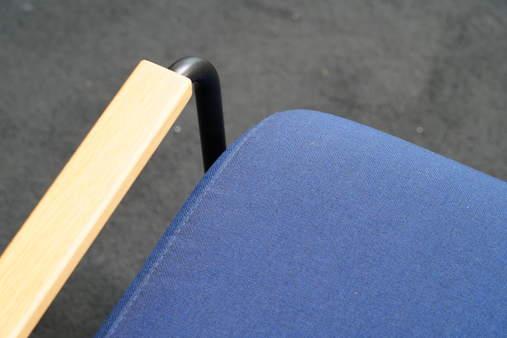 Hopsak | Blau | Gestell Metall Schwarz | Mit Holzauflagen | H: 70cm | SH: 44cm | B: 68cm | T: ca. 86cm