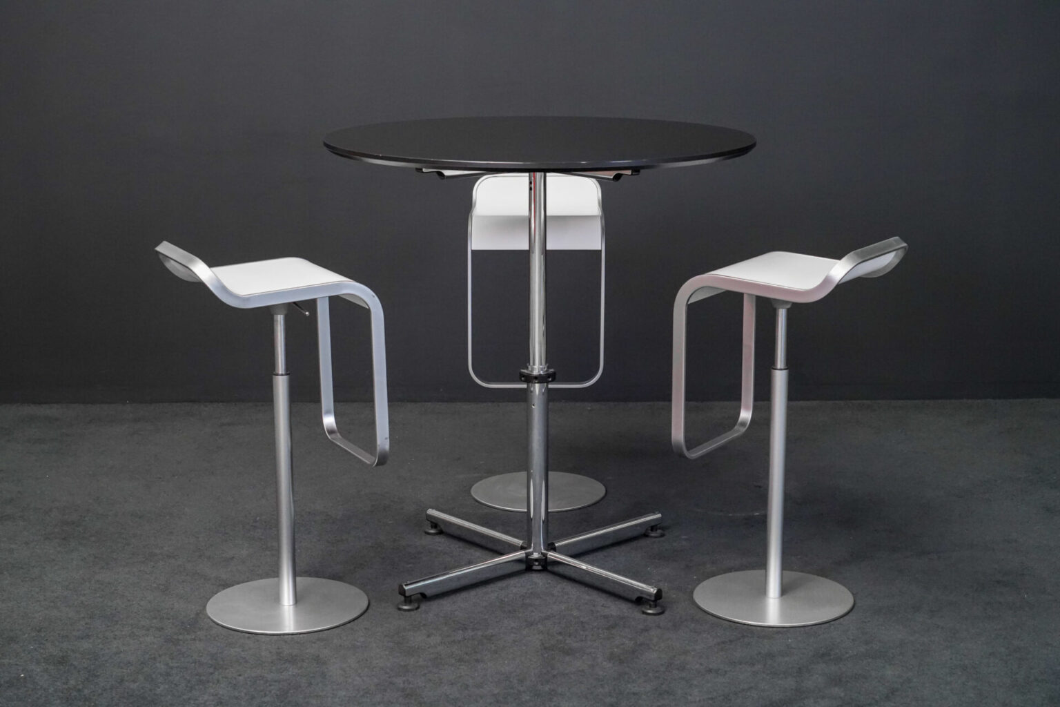 USM Kitos / Lapalma Set aus Konferenztisch Kunstharz Schwarz + 3x Lapalma Barhocker LEM Kunststoff Weiß
