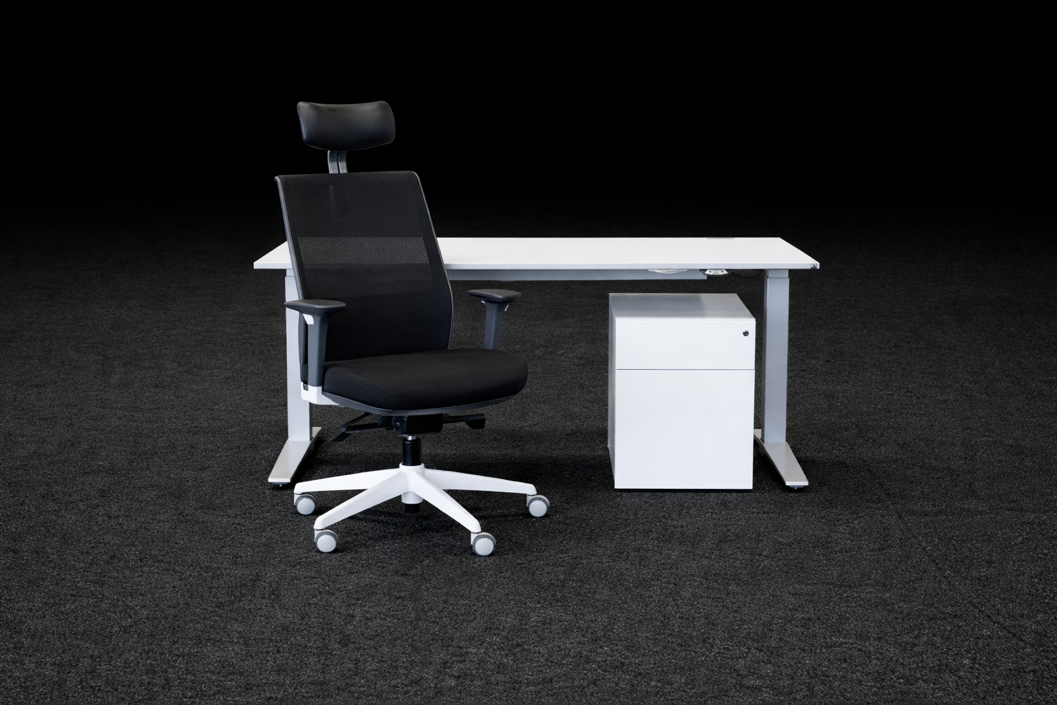 Poste de travail en électrique K&N. Höhenv. Bureau + Chaise pivotante de bureau Inwerk + conteneur mobile Walter Knoll